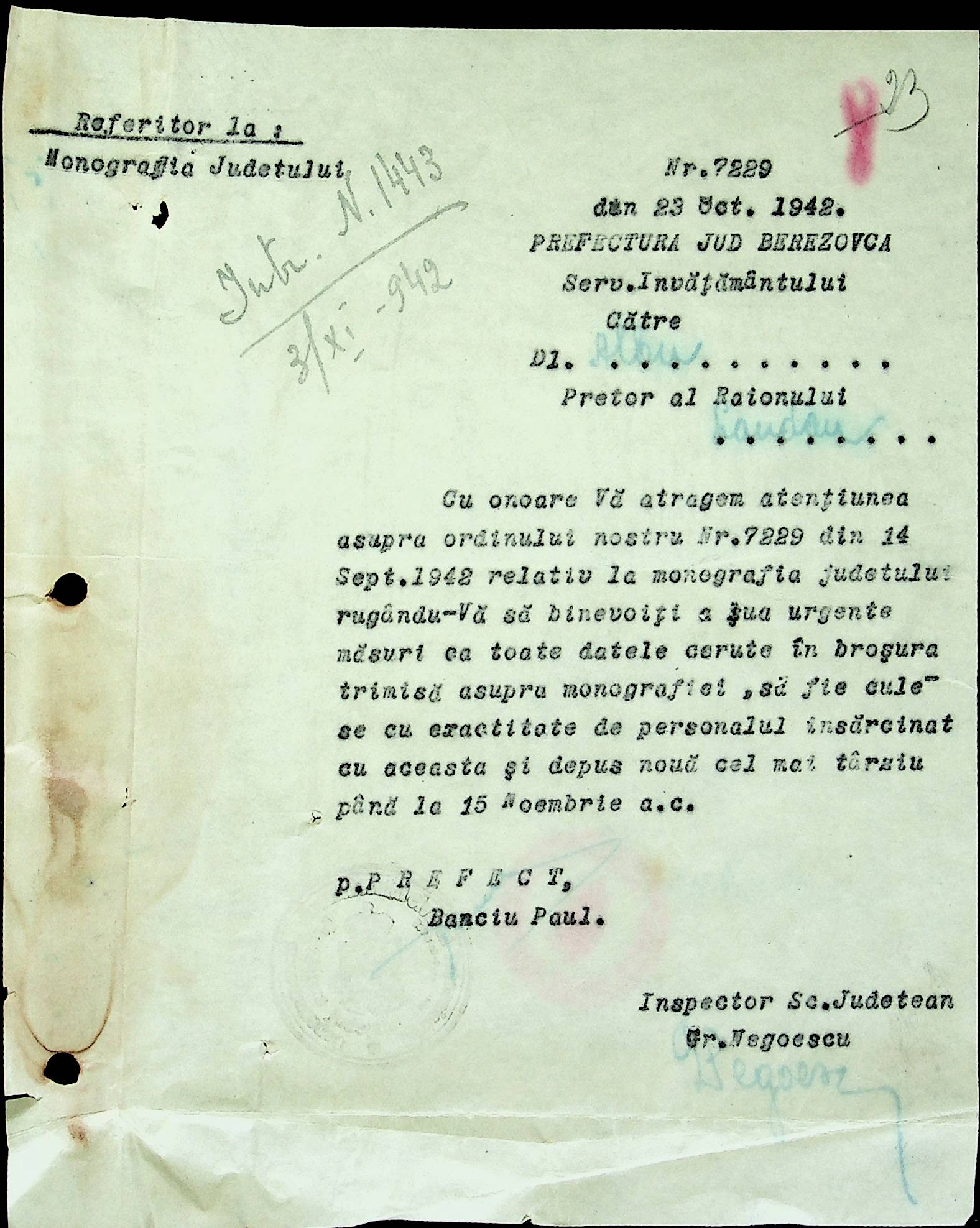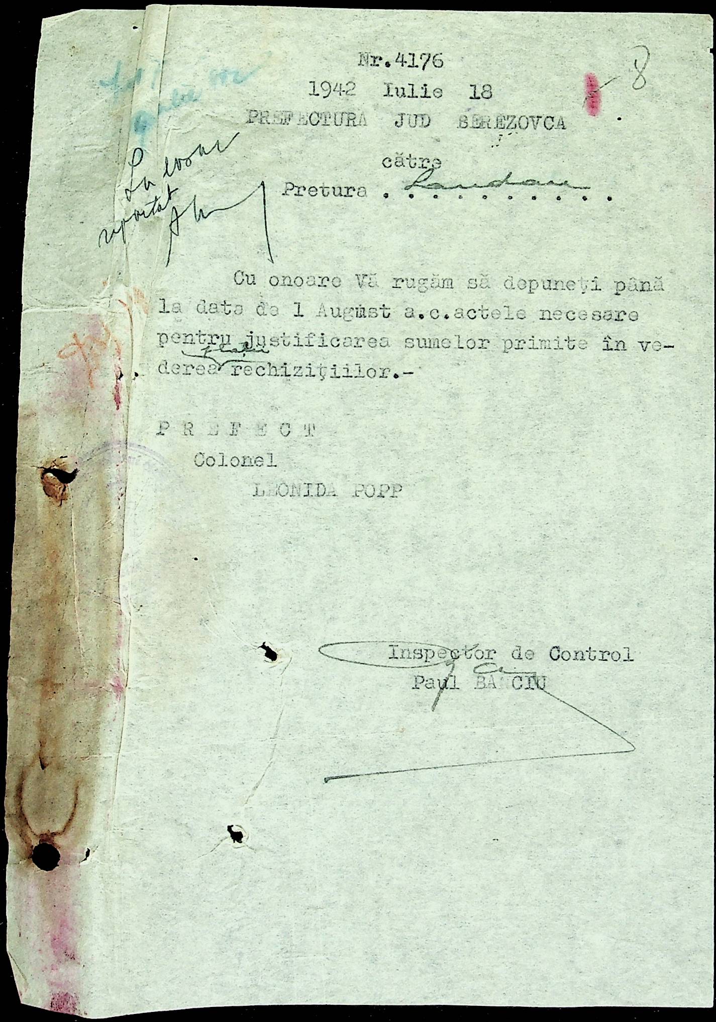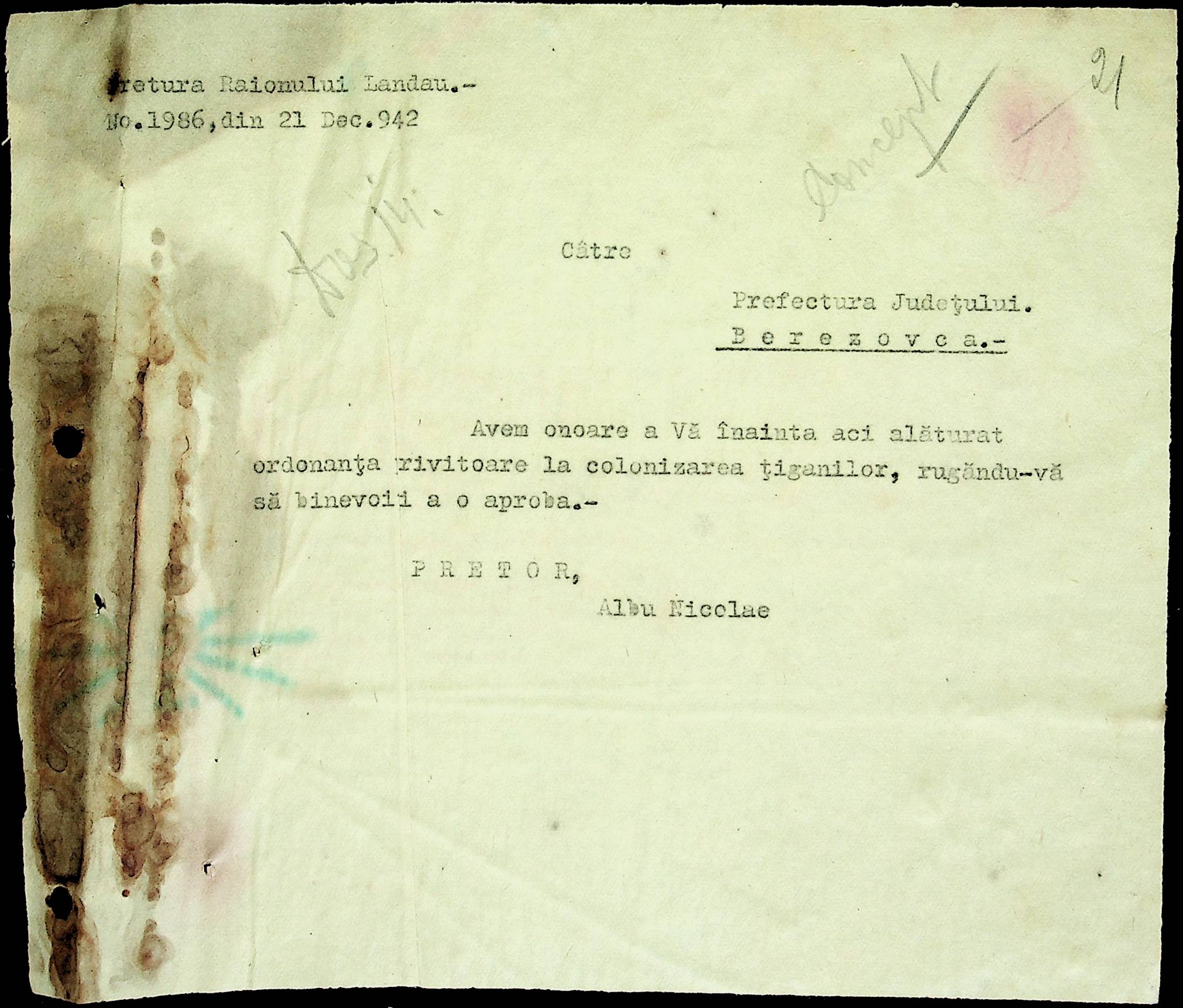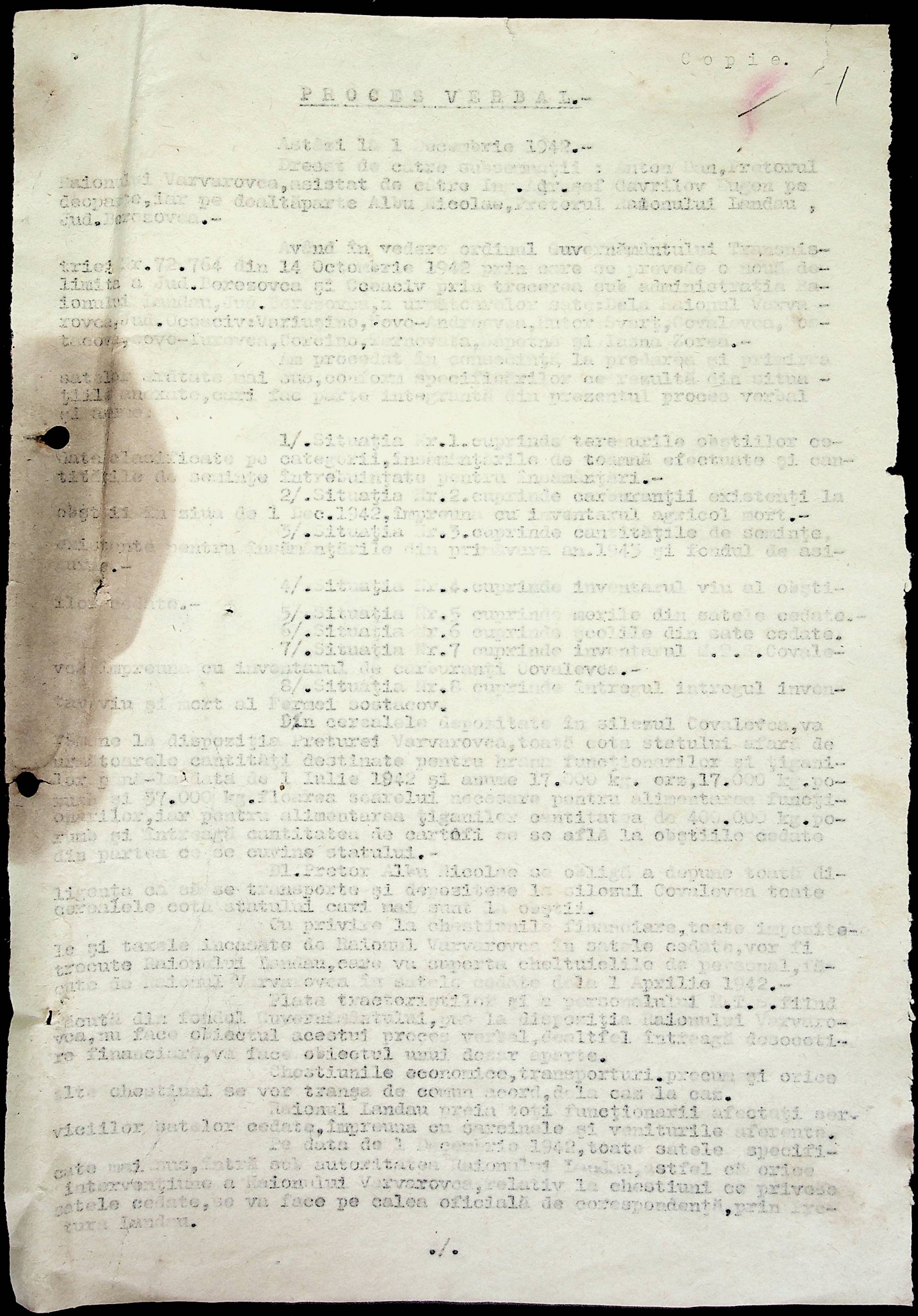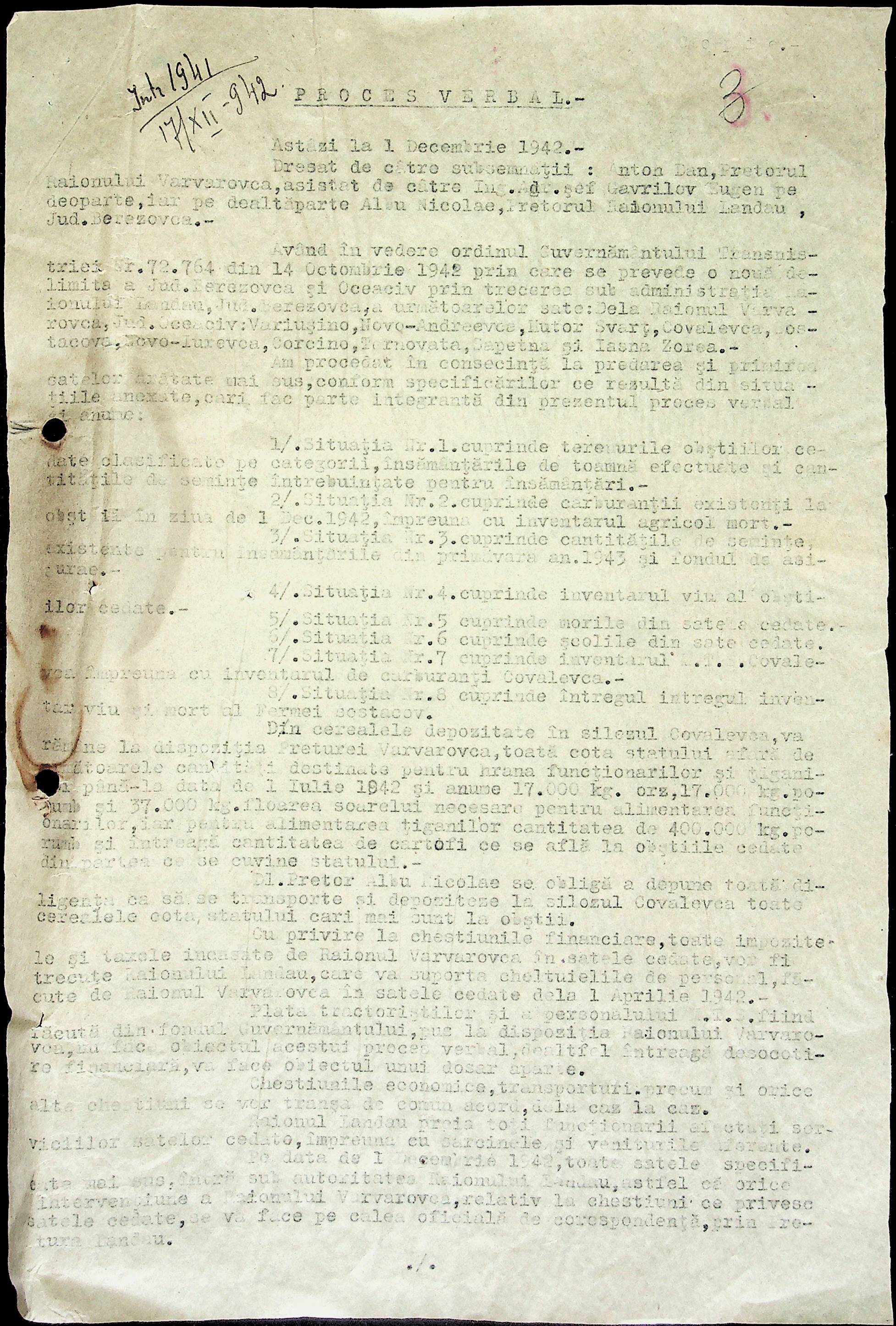 • • • • Справа № 12 “Копії інструкцій та постанов цивільного губернатора Трансністрії про правила відправки товарів залізницею, організацію єврейського гетто та використання єврейських спеціалістів на роботі; наказ претора Ландауського району про будівництво бараків для циган-колоністів”