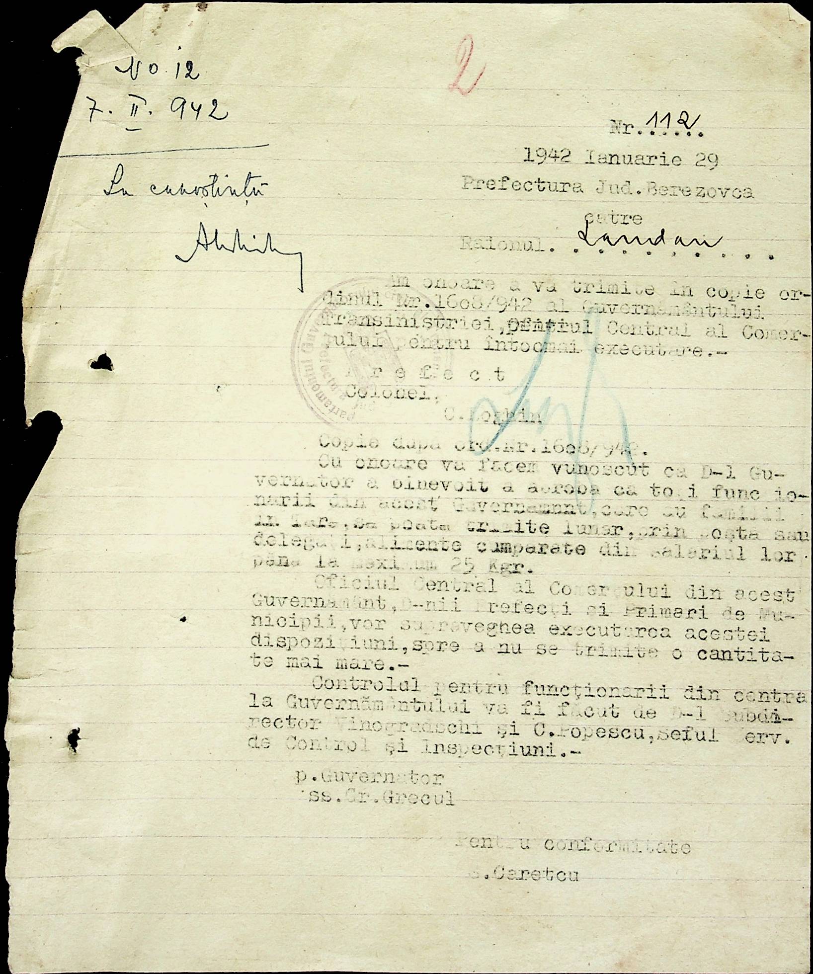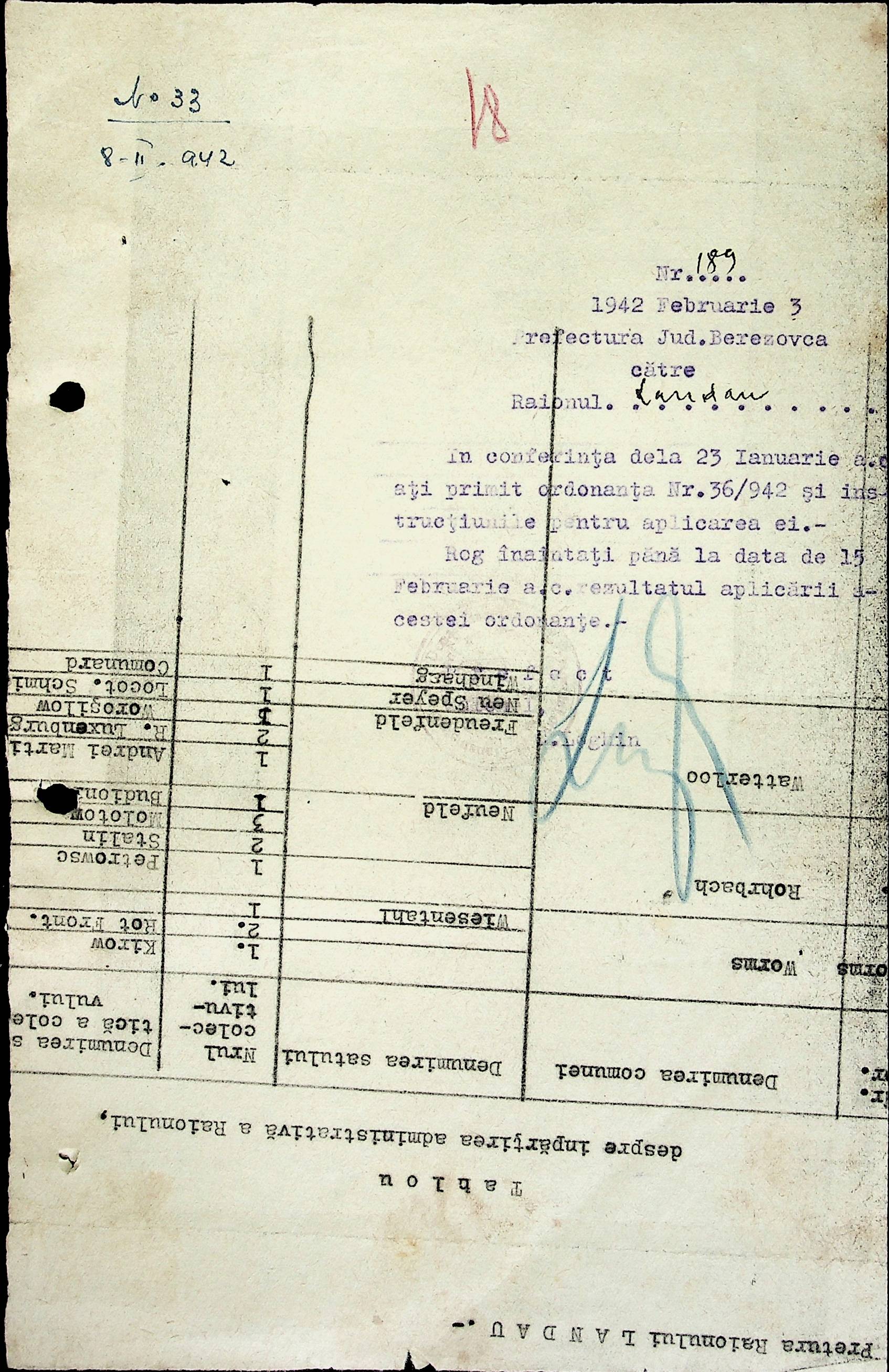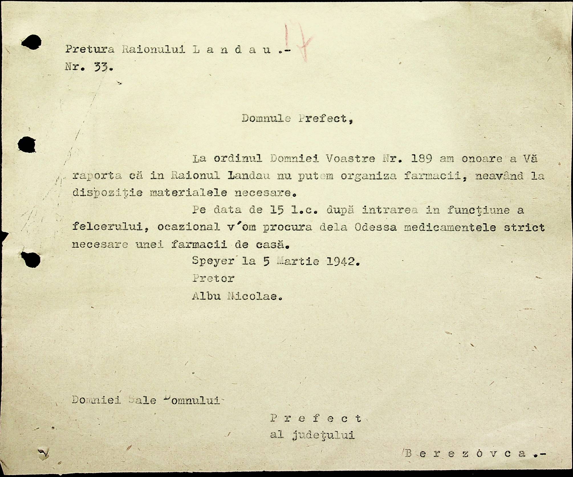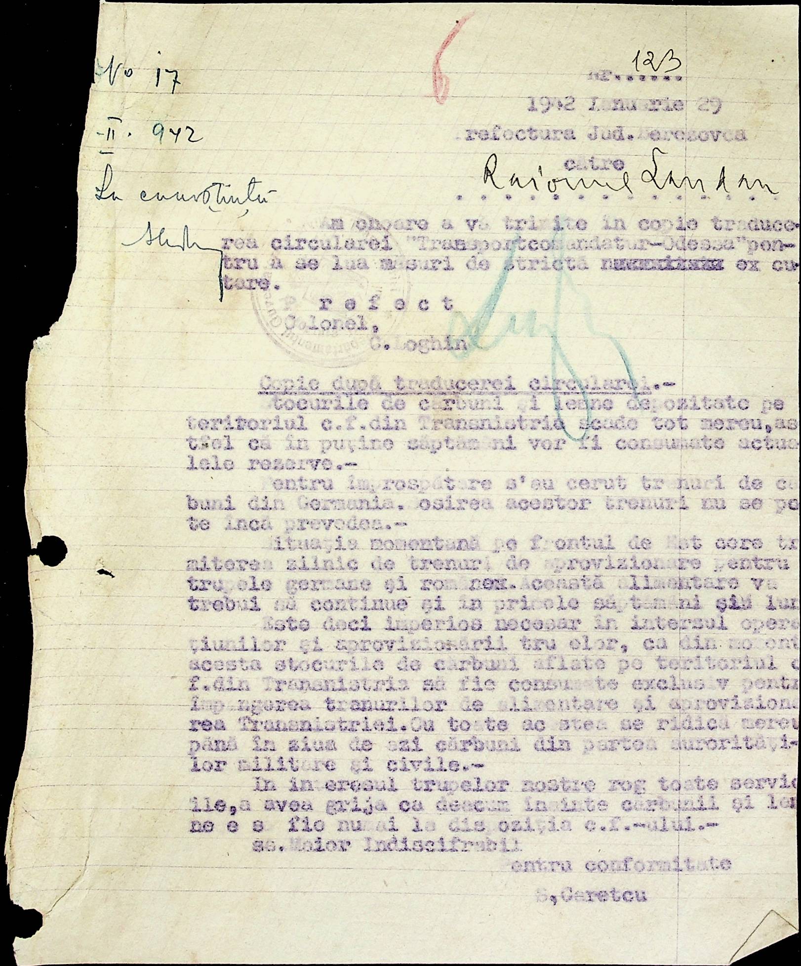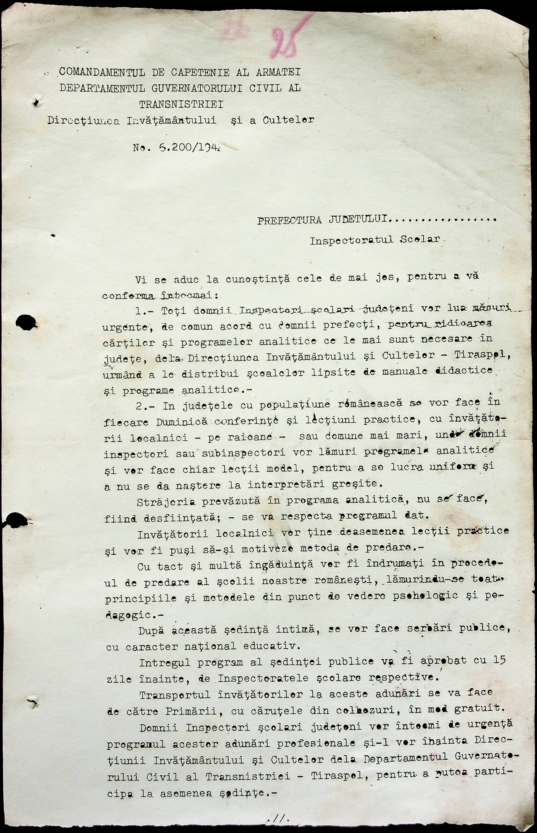 • • • • Справа № 13 Інструкції, накази цивільного губернатора Трансністрії, листування з префектурою Березівського повіту про мобілізацію населення на розчищення територій від снігу, залучення вчителів та учнів до польових робіт, надання дозволу румунським співробітникам на відправку посилок до Румунії