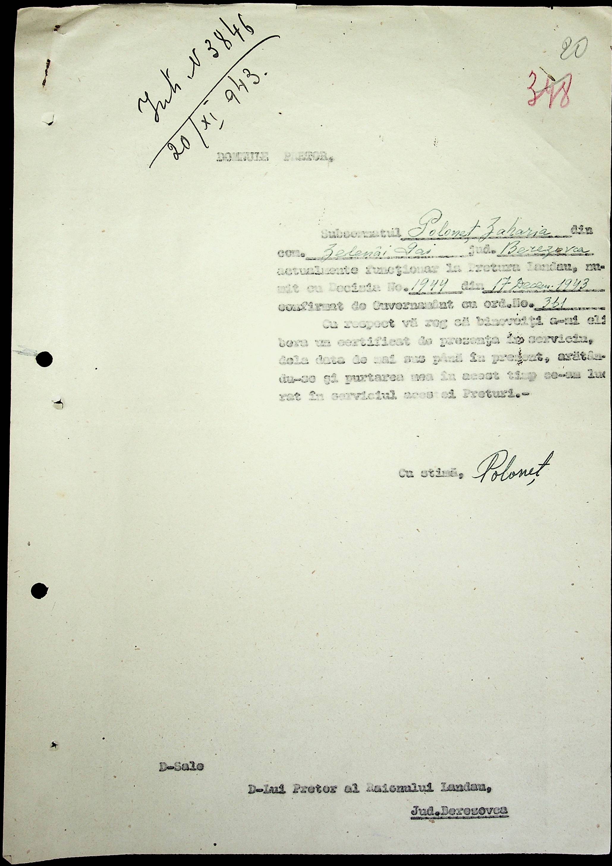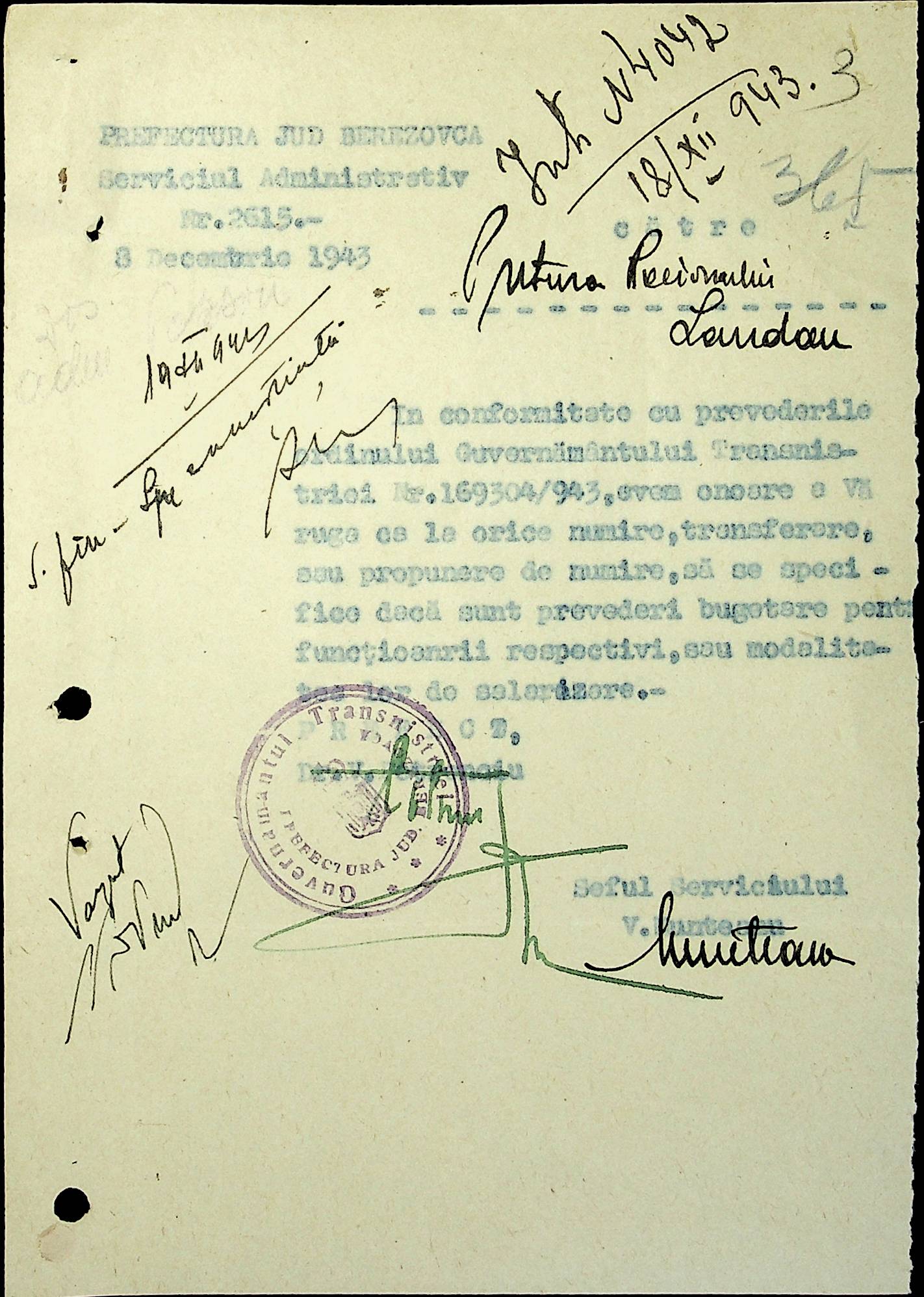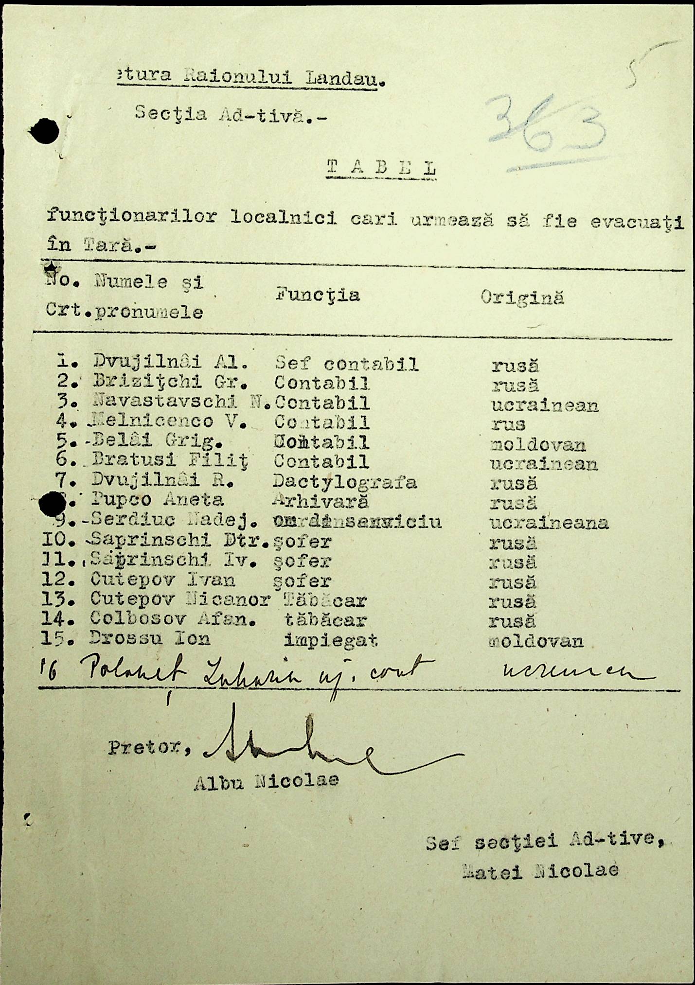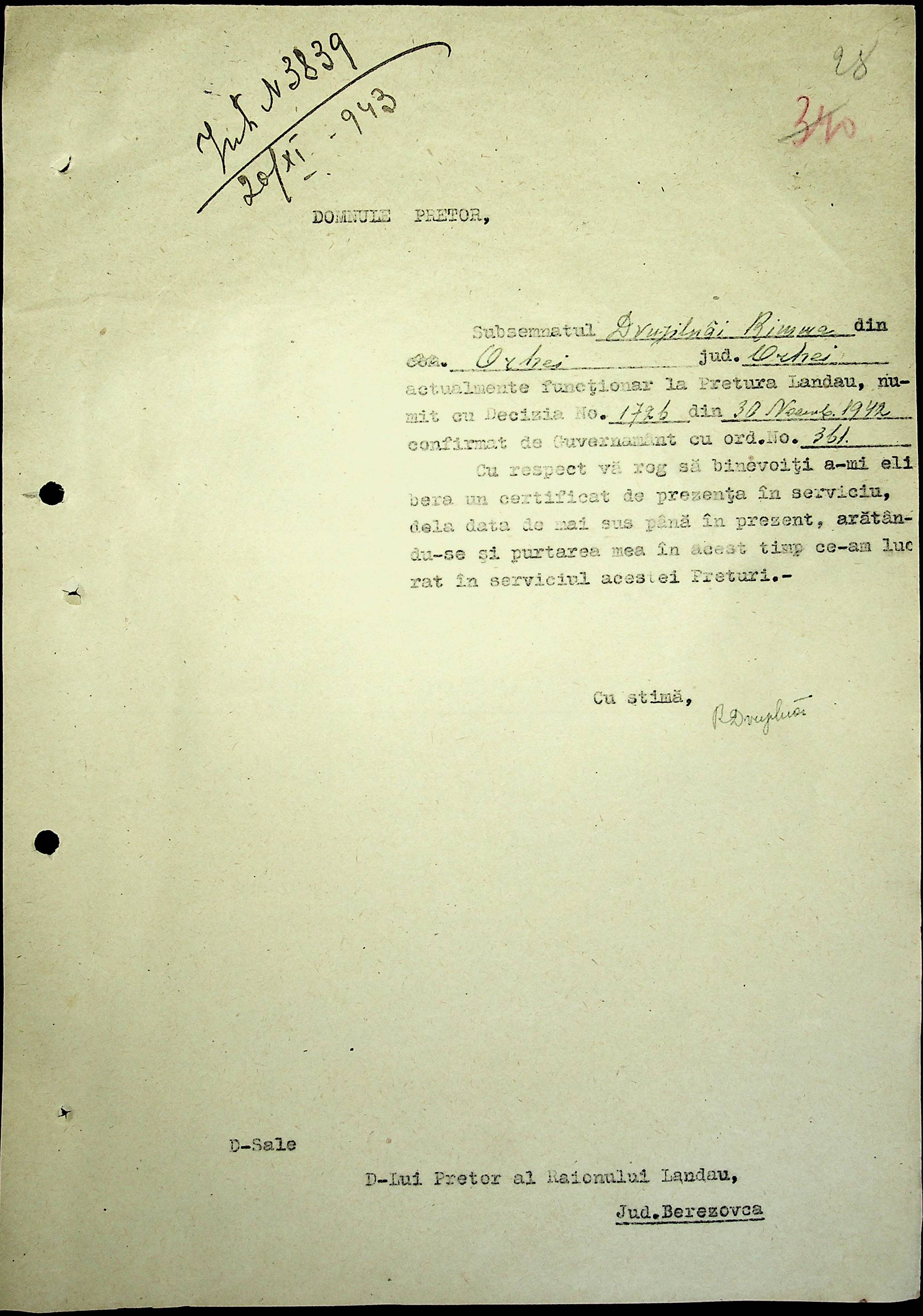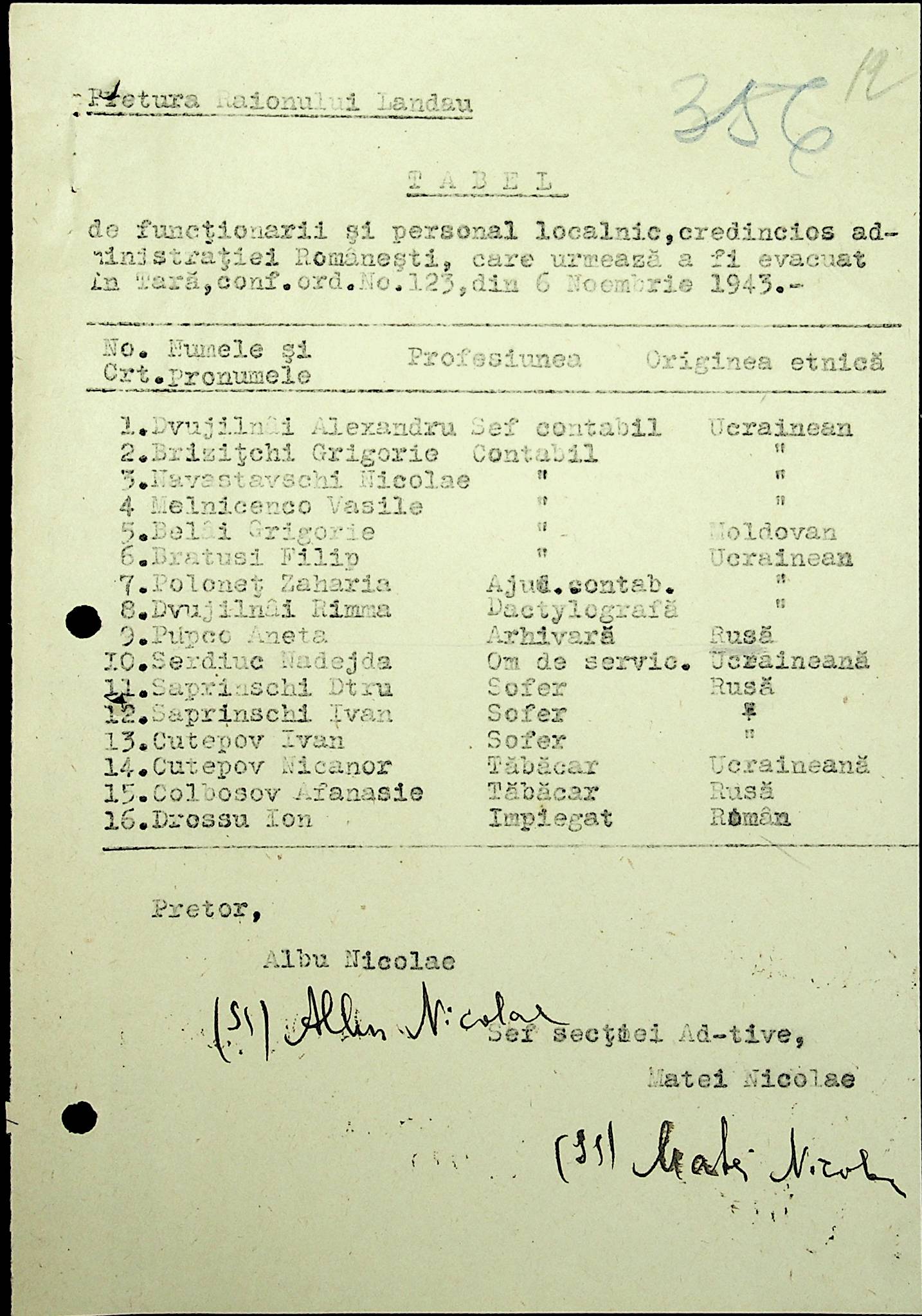 • • • • Справа № 17 Постанови та обіжник претора Ландауського району про порядок призначення та звільнення працівників, прохання різних осіб Ландауського району про прийом на роботу. Список місцевих службовців, які працюють на румунську адміністрацію і призначені для виїзду в Румунію