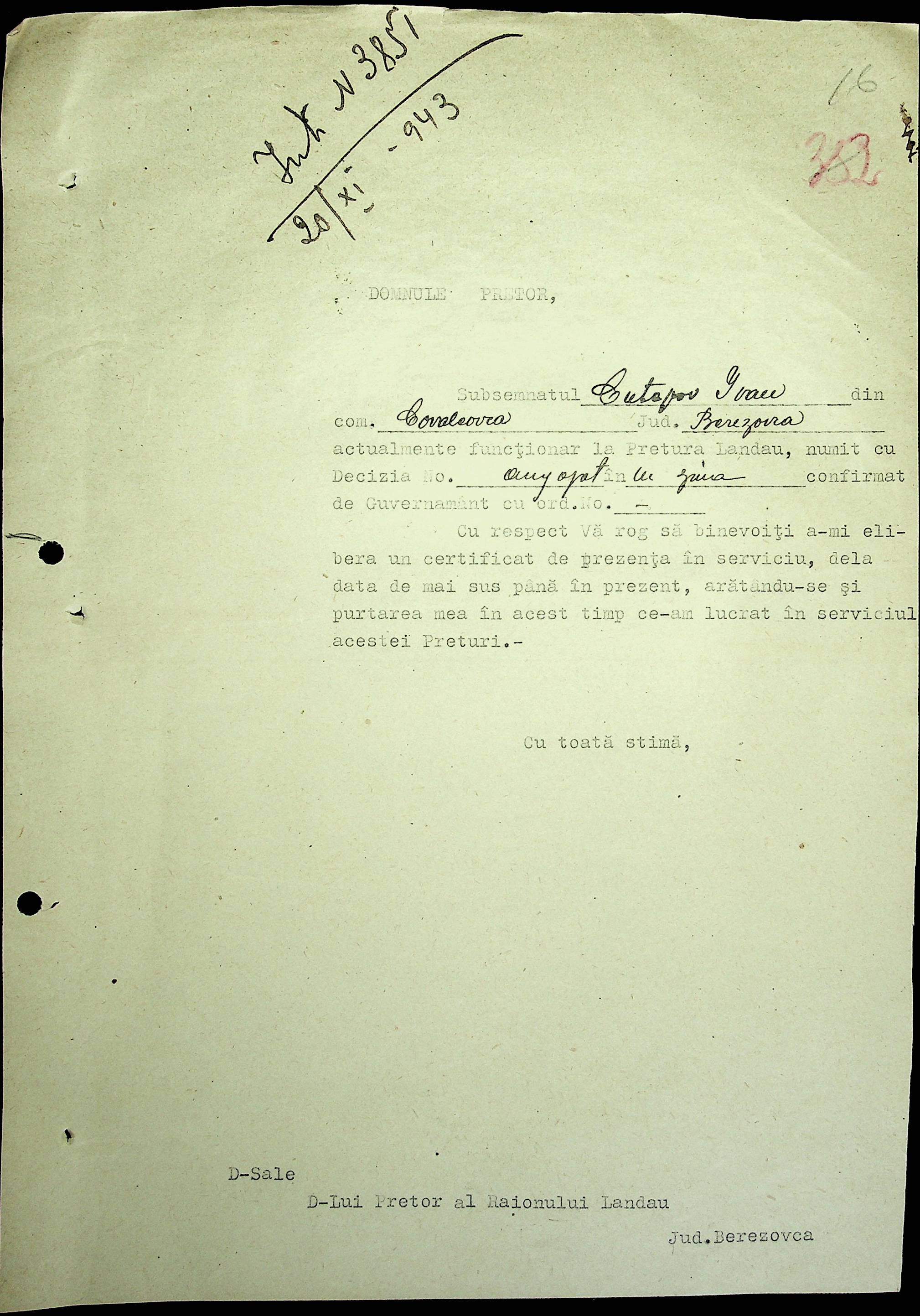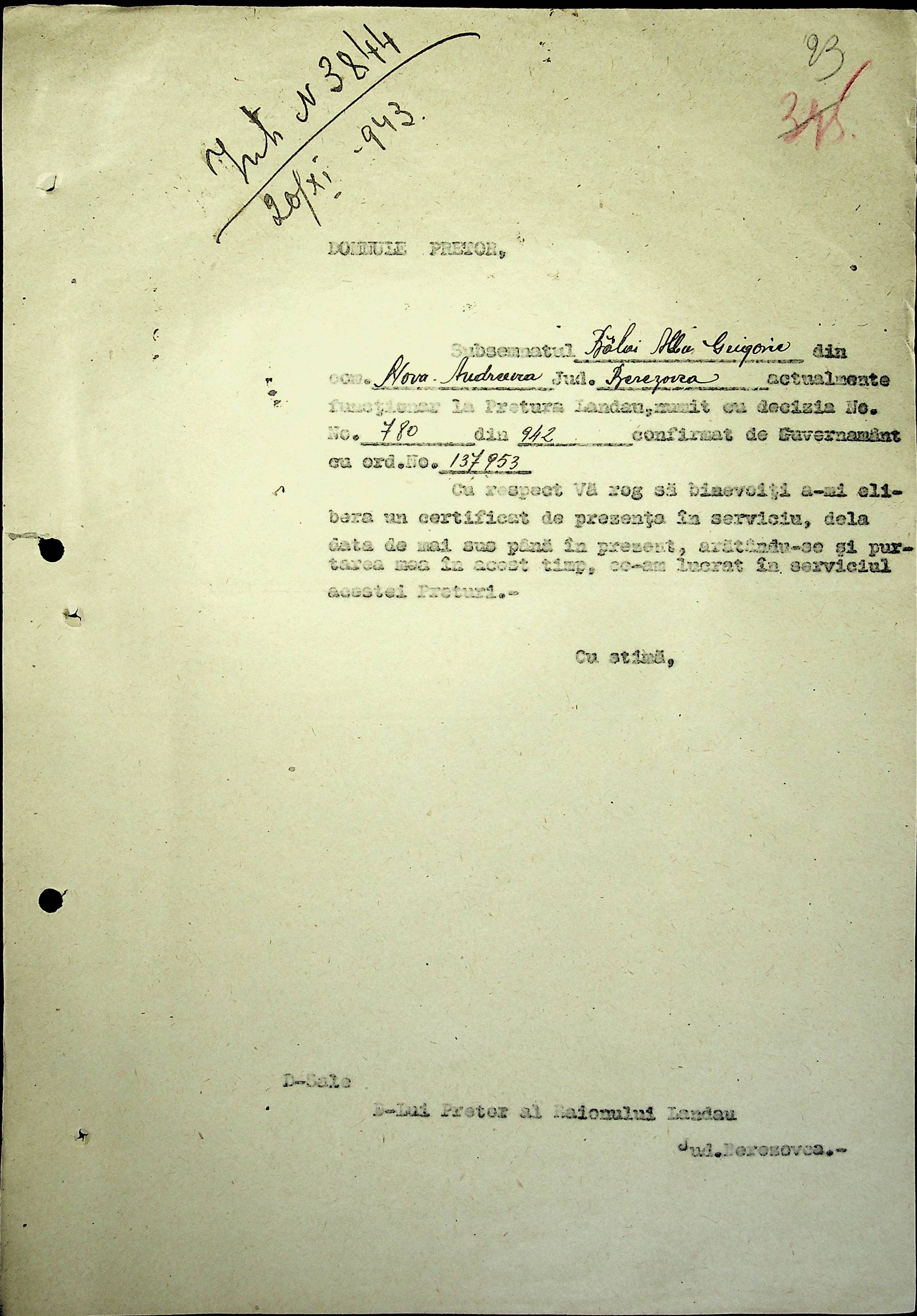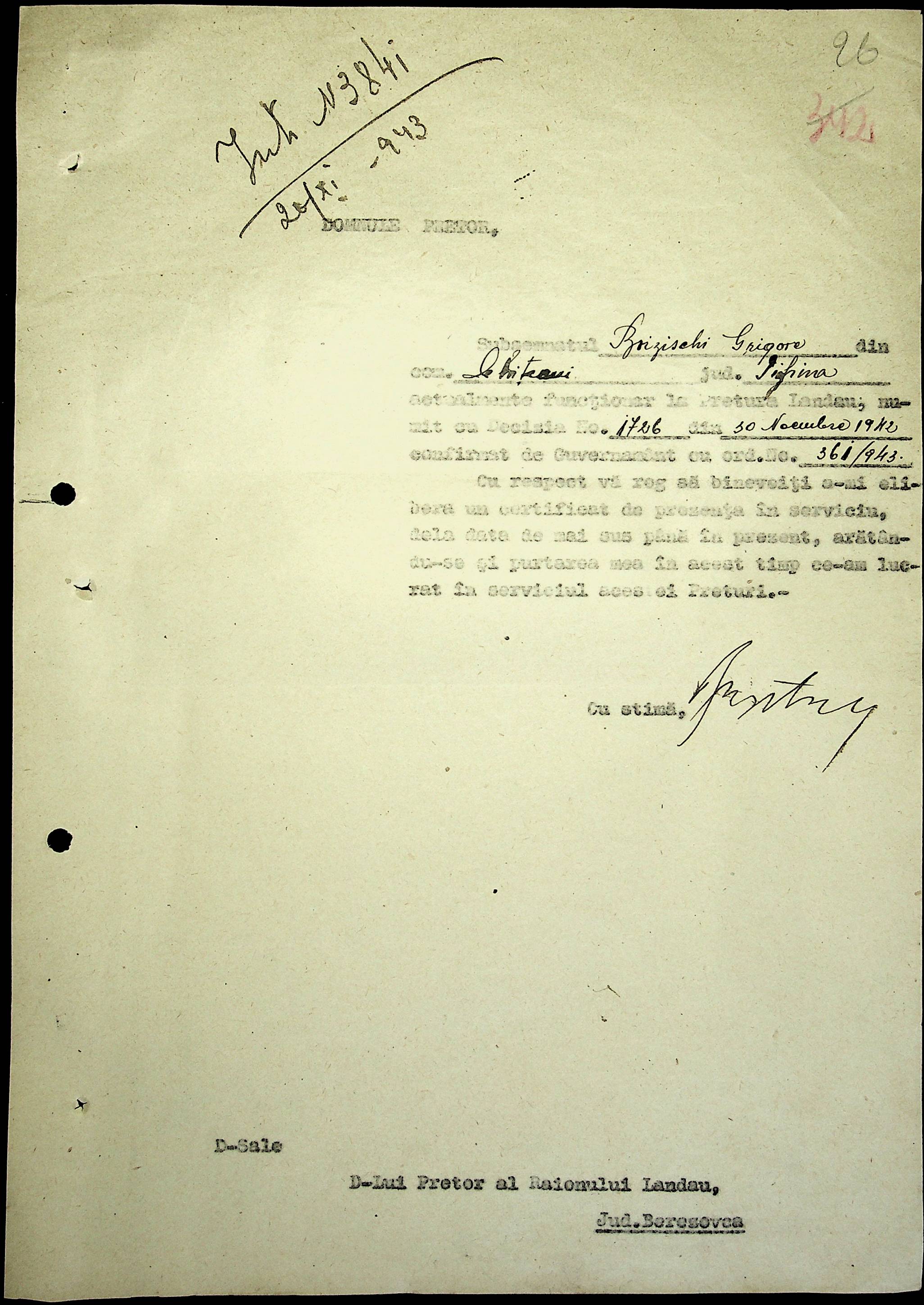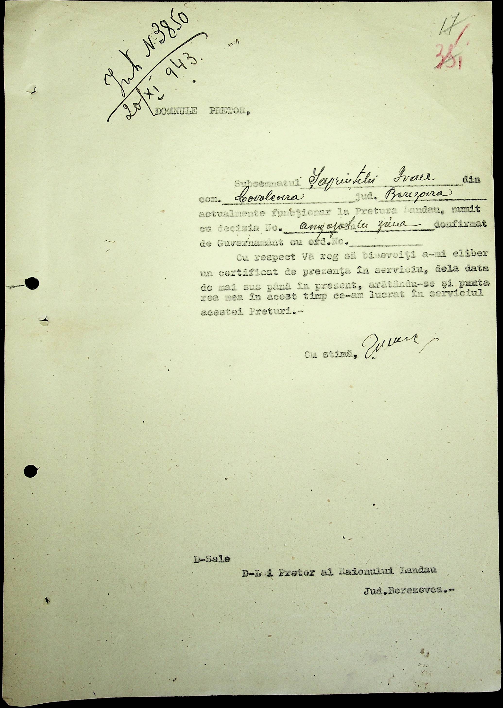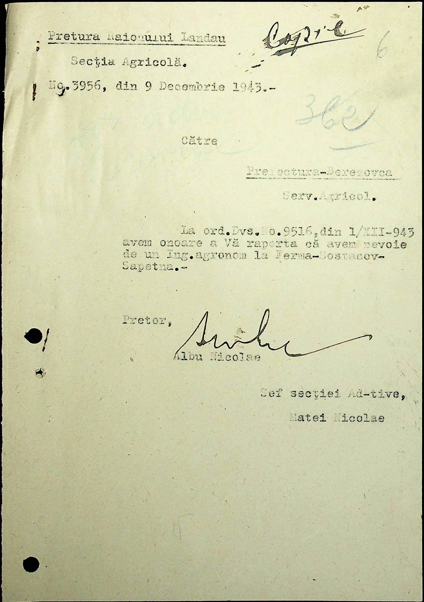 • • • • Справа № 17 Постанови та обіжник претора Ландауського району про порядок призначення та звільнення працівників, прохання різних осіб Ландауського району про прийом на роботу. Список місцевих службовців, які працюють на румунську адміністрацію і призначені для виїзду в Румунію