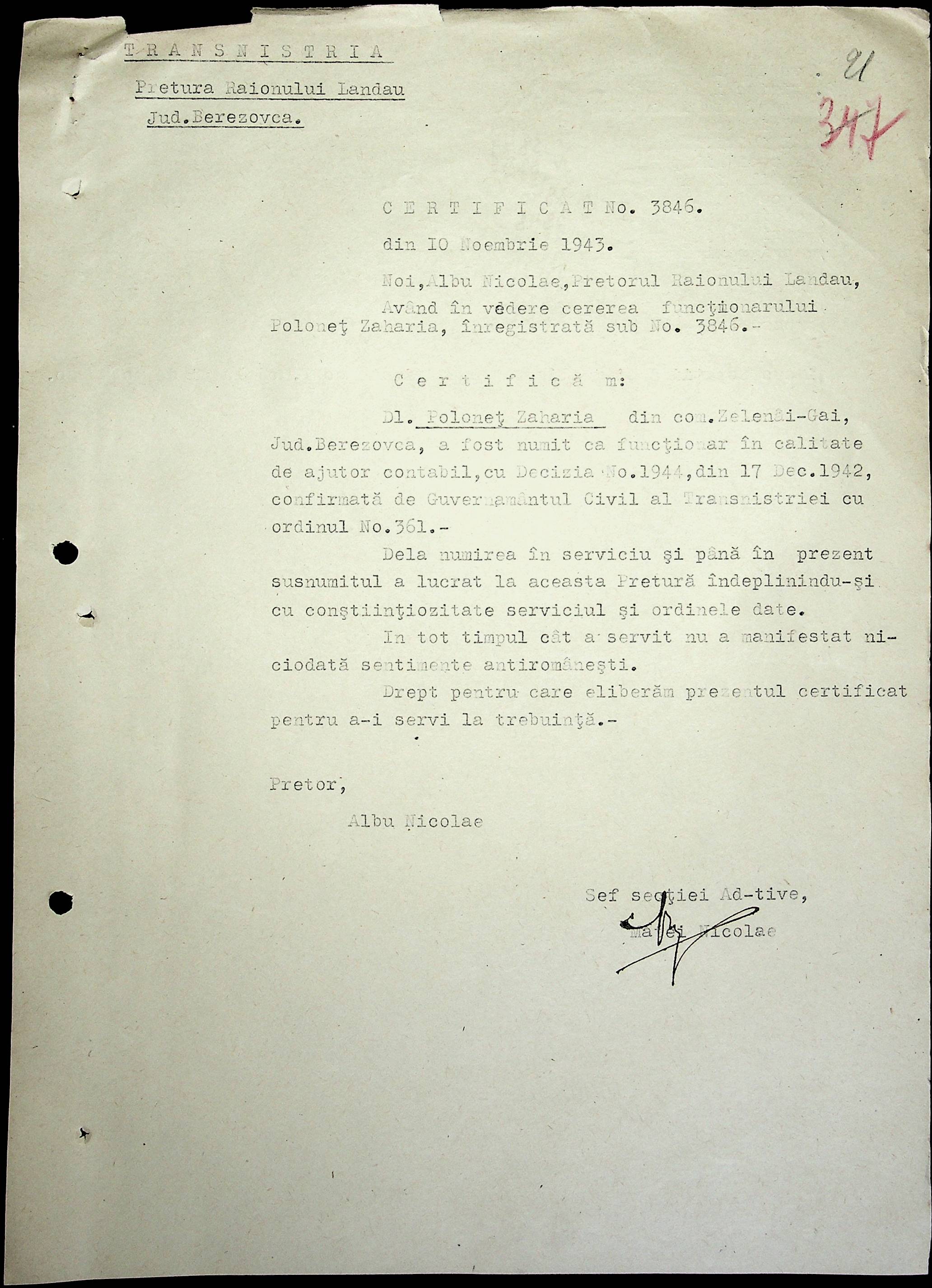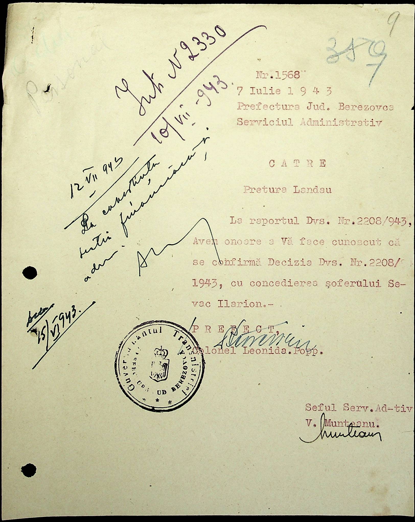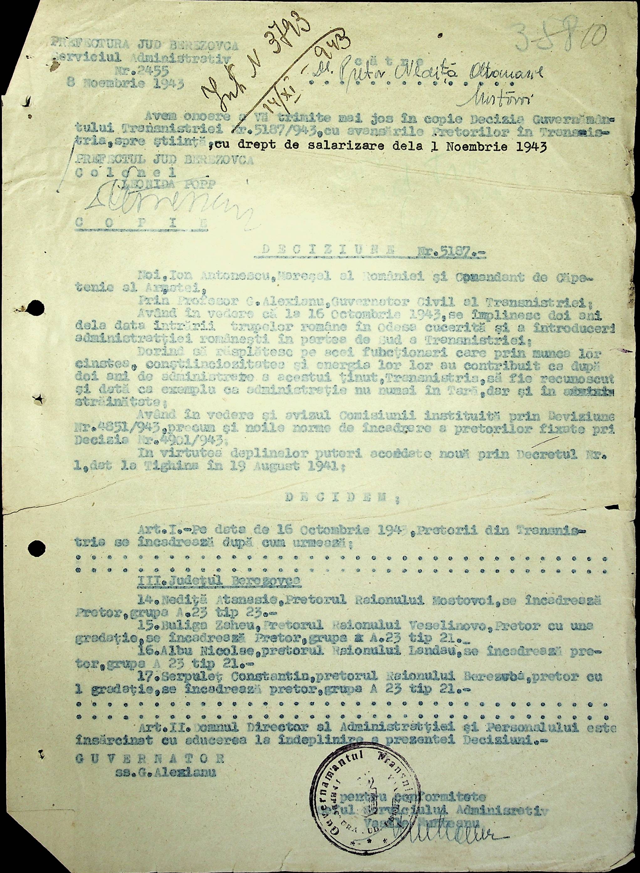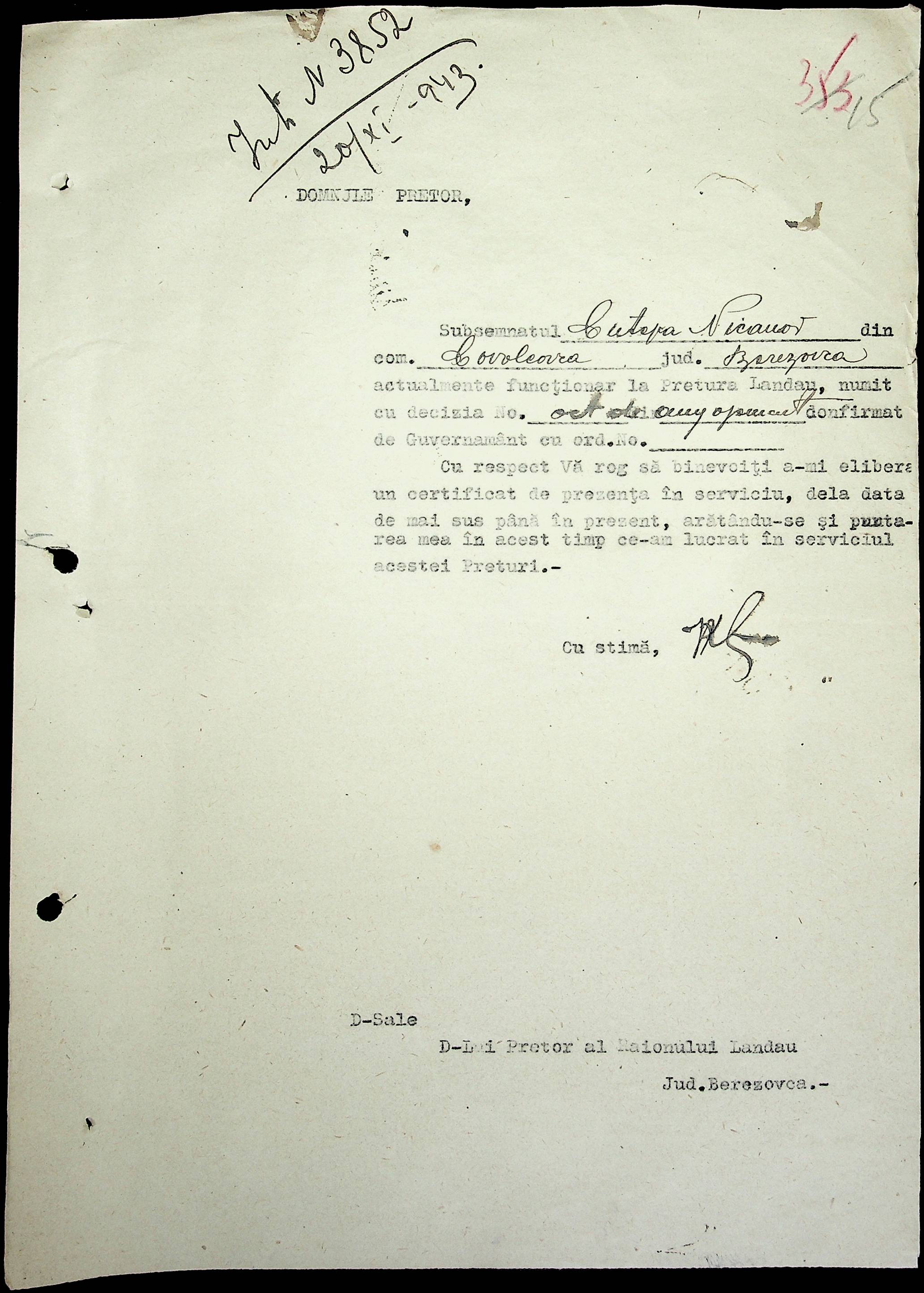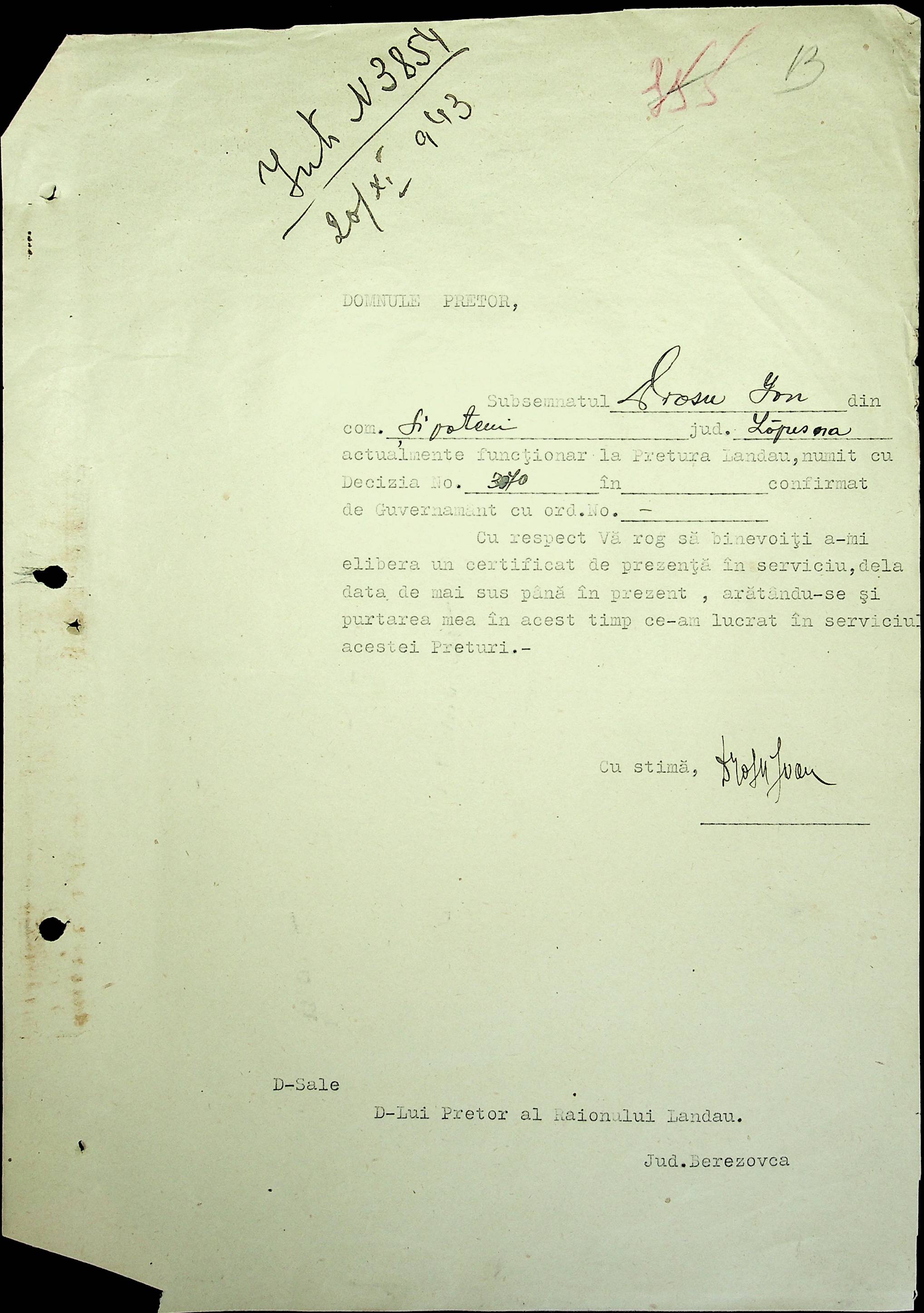 • • • • Справа № 17 Постанови та обіжник претора Ландауського району про порядок призначення та звільнення працівників, прохання різних осіб Ландауського району про прийом на роботу. Список місцевих службовців, які працюють на румунську адміністрацію і призначені для виїзду в Румунію