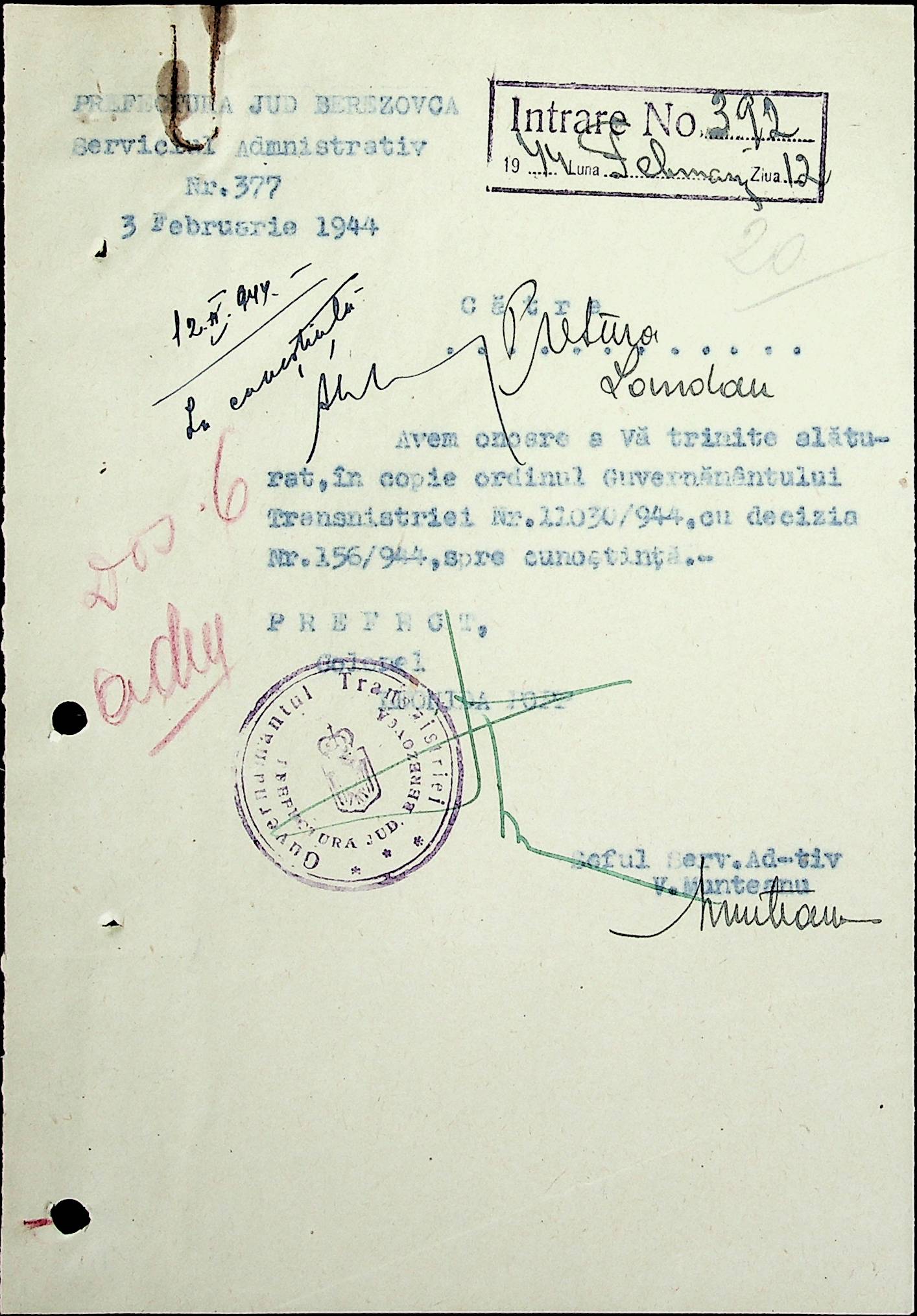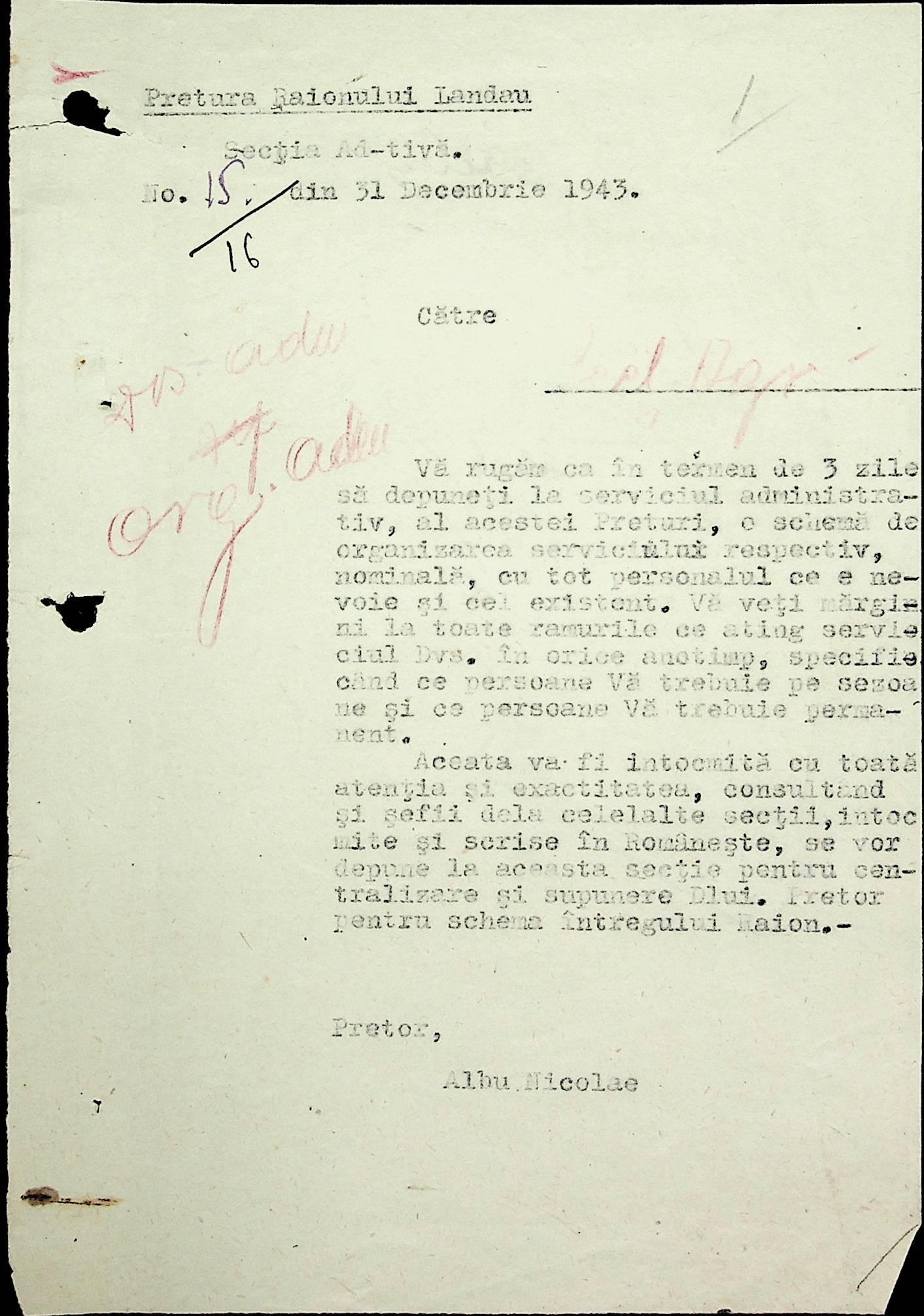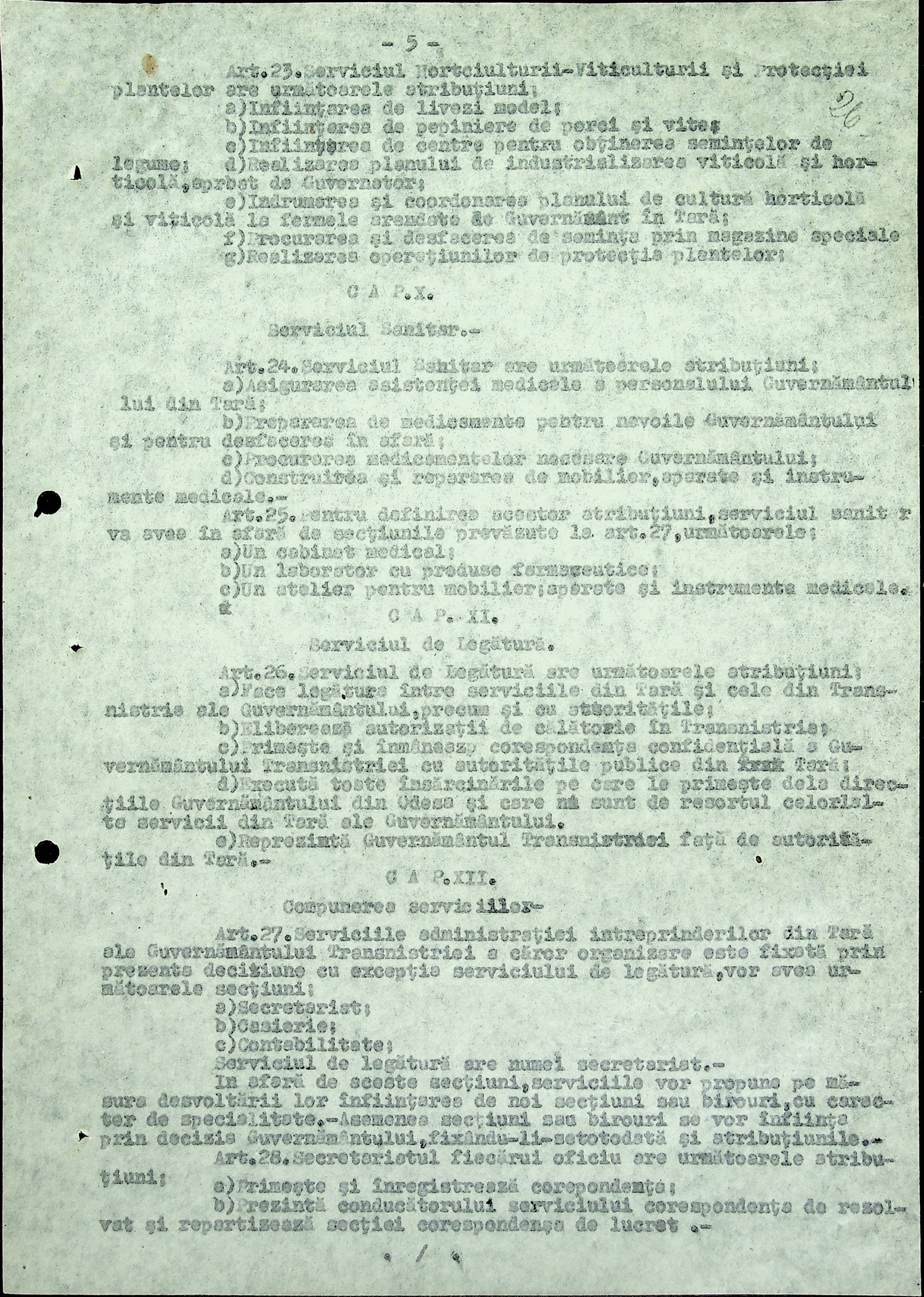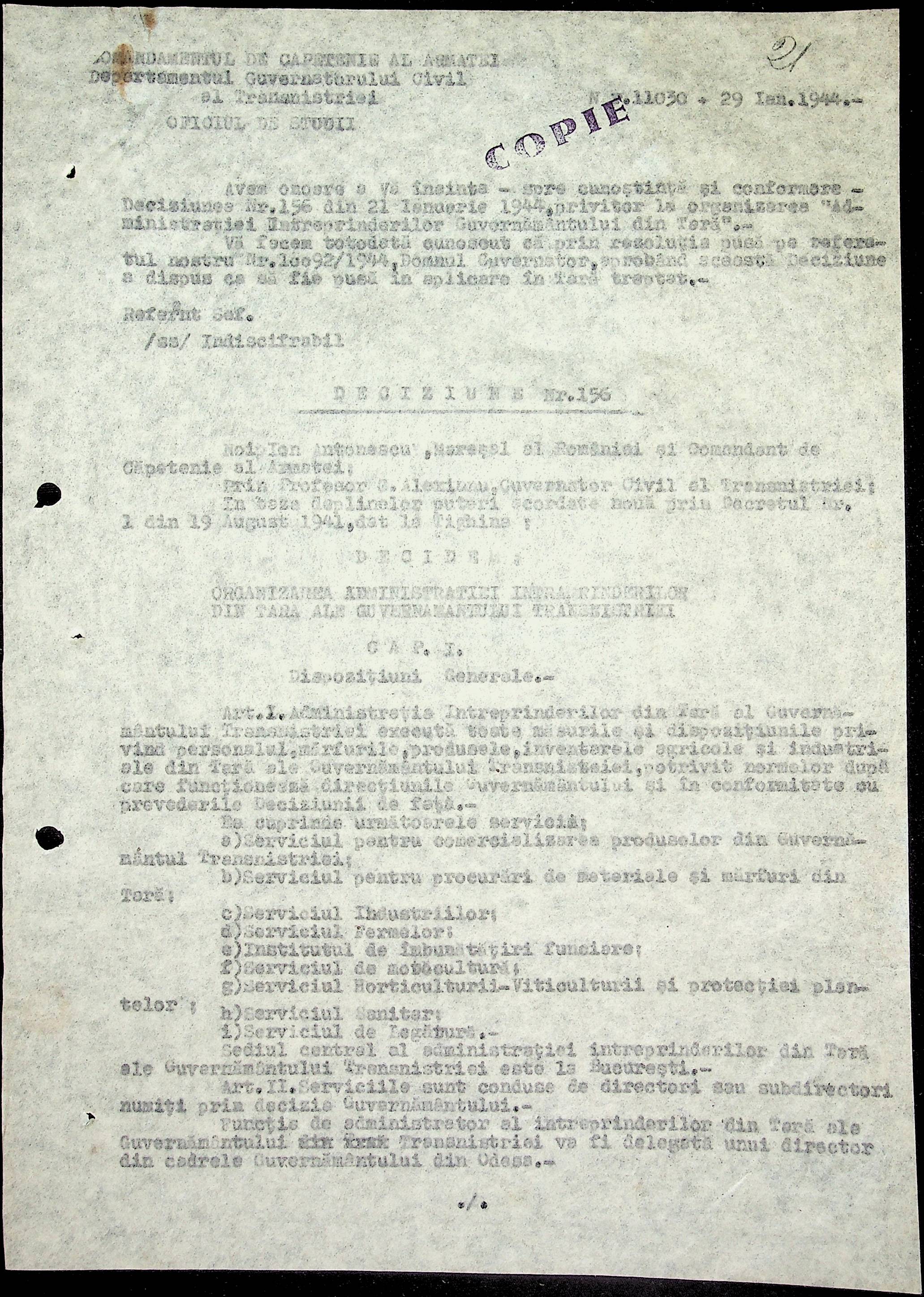 • • • • Справа № 18 Копія постанови цивільного губернатора Трансністрії про систему адміністративного управління підприємствами губернаторства; листування з префектурою Березівського повіту про подання схеми організаційної структури претури. Схема претури Ландауського району відповідно до відділів і посад, список співробітників