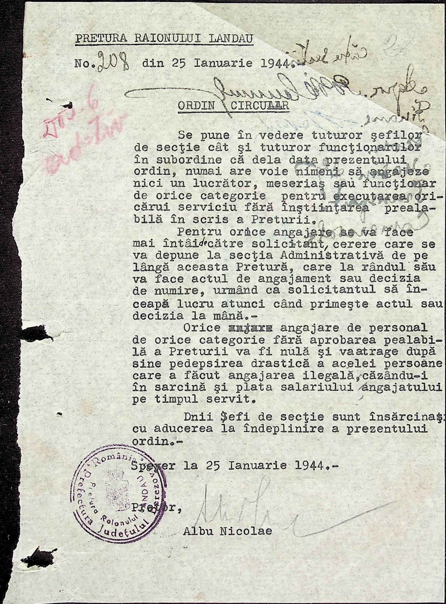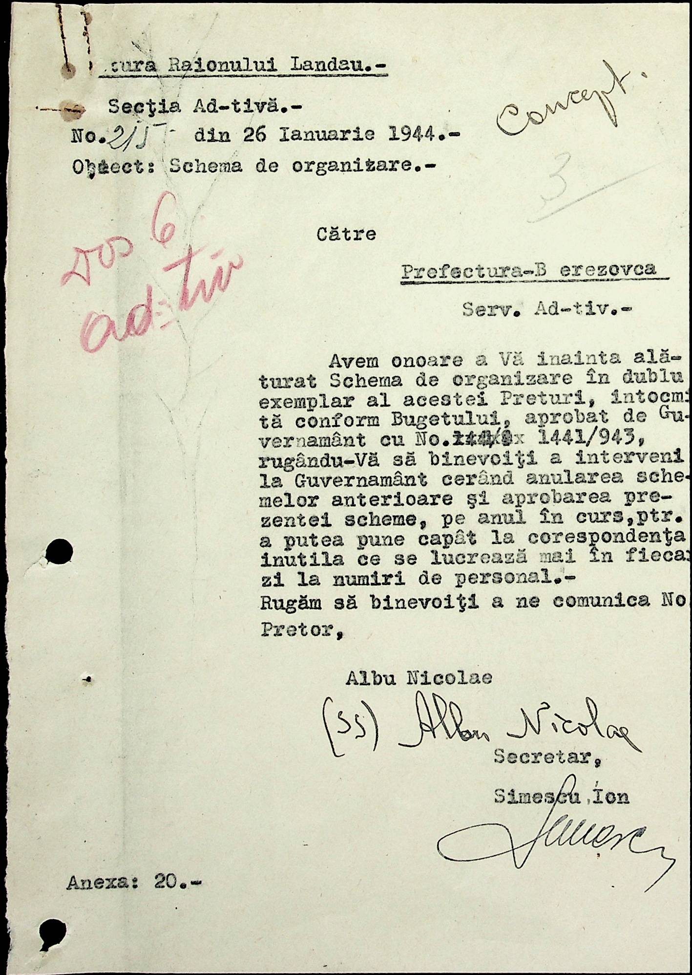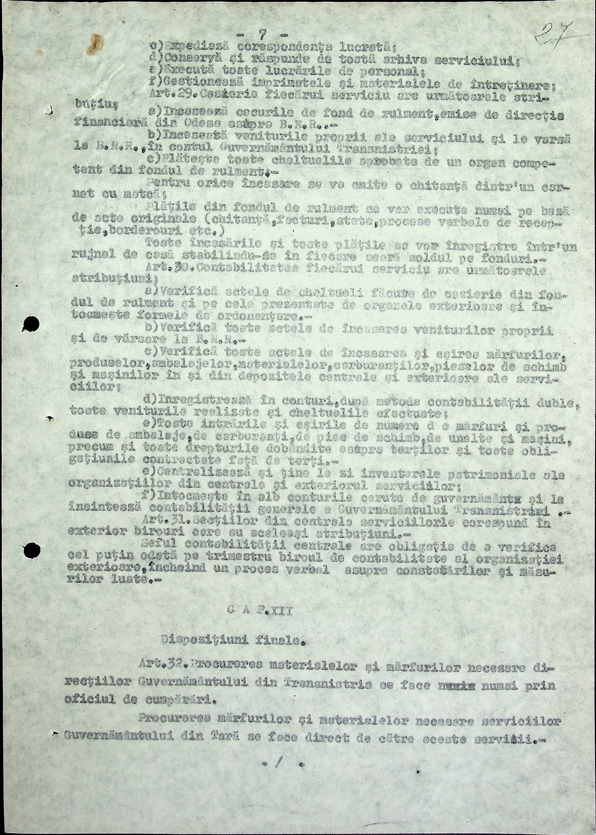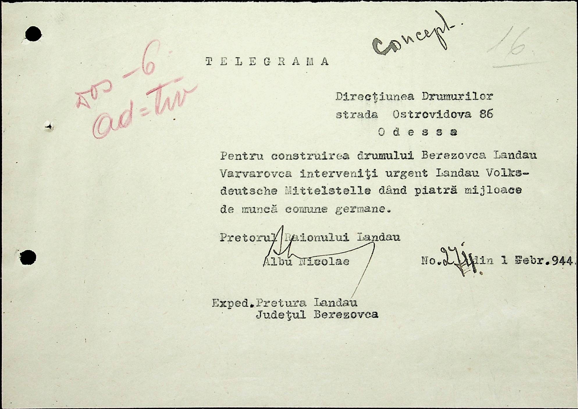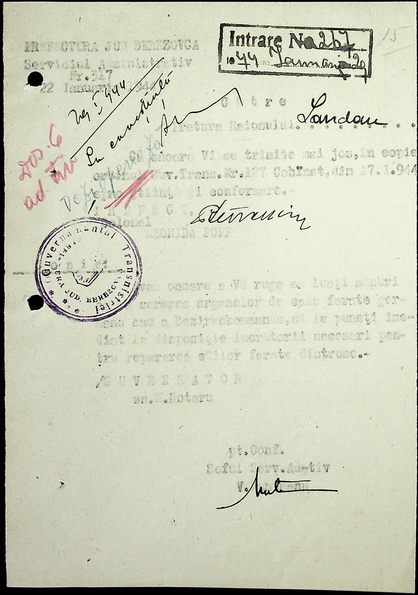 • • • • Справа № 18 Копія постанови цивільного губернатора Трансністрії про систему адміністративного управління підприємствами губернаторства; листування з префектурою Березівського повіту про подання схеми організаційної структури претури. Схема претури Ландауського району відповідно до відділів і посад, список співробітників