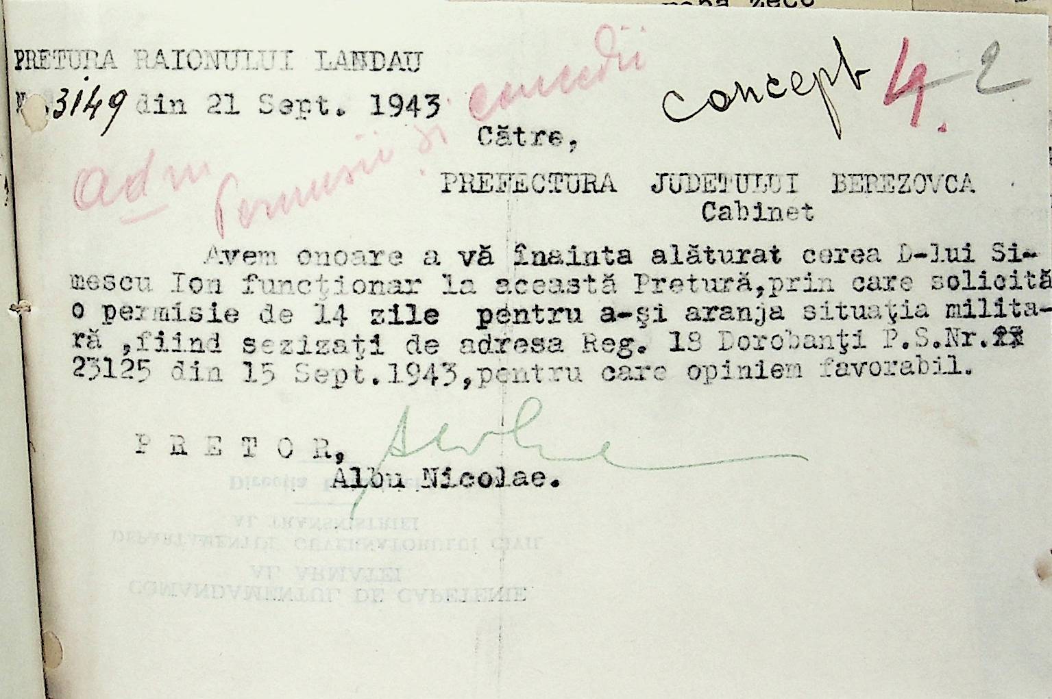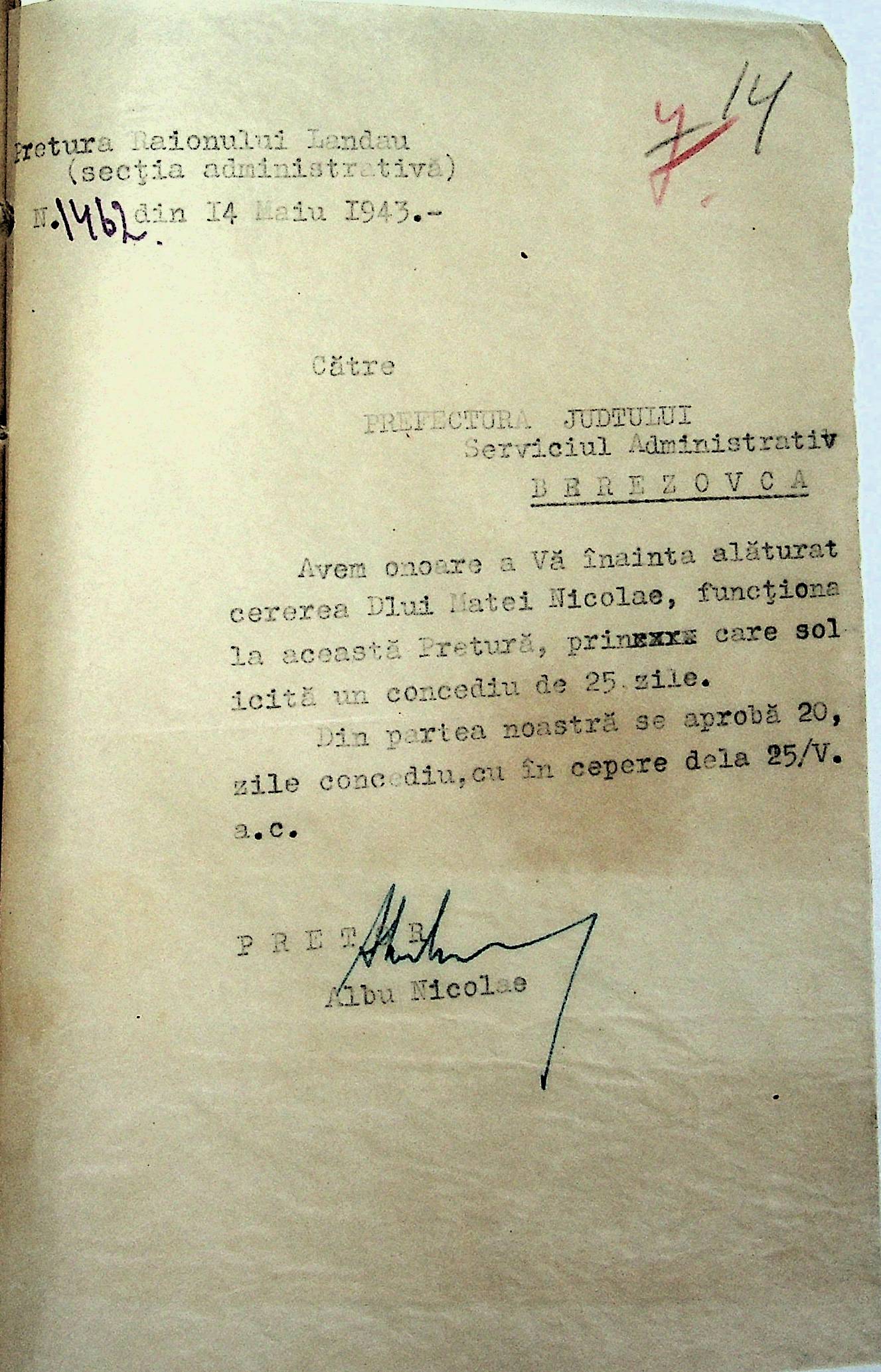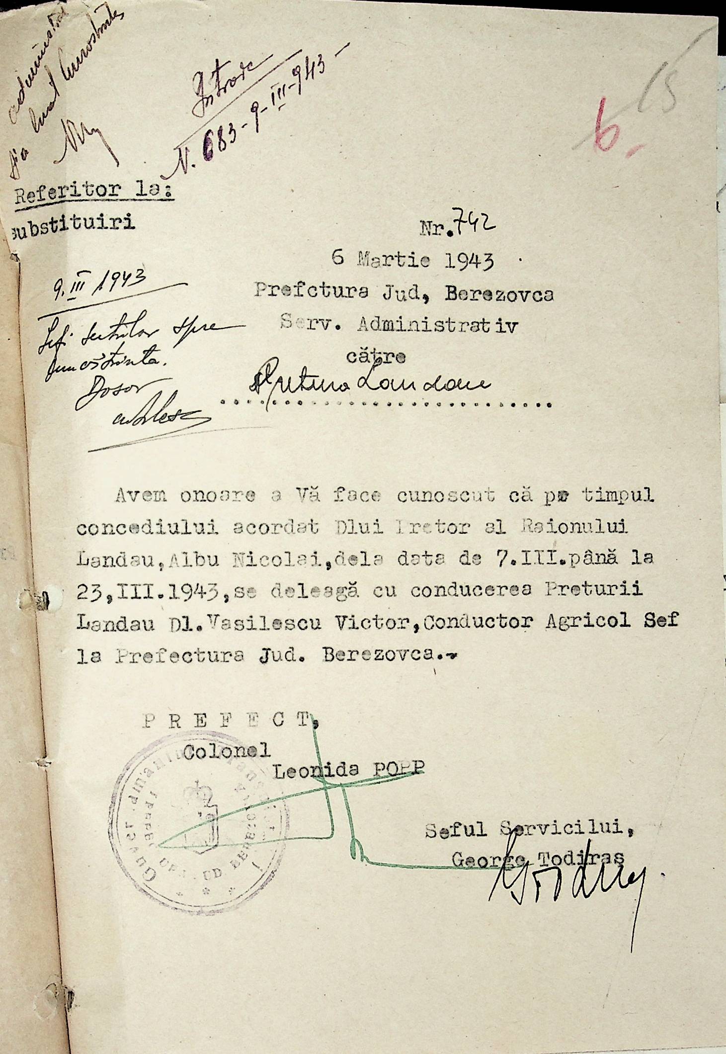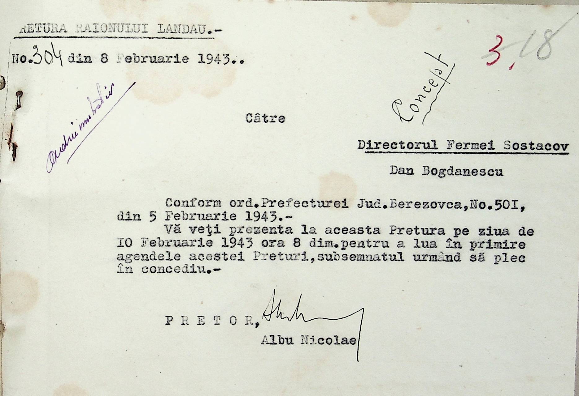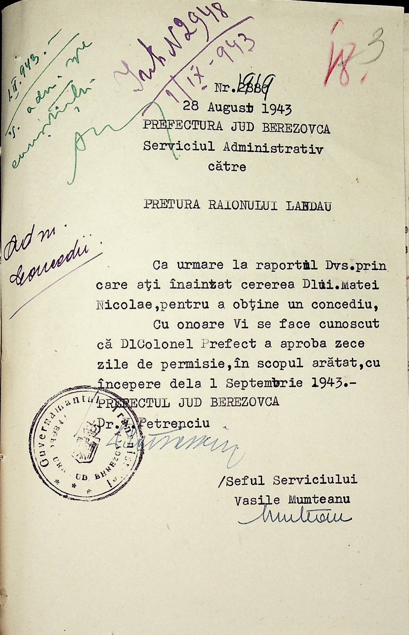 • • • • Справа № 19 Копія обіжника адміністративної дирекції губернаторства Трансністрії про заборону перебування на території Трансністрії родичів співробітників, які прибули з Румунії; листування з префектурою Березівського повіту про надання дозволу на відпустку окремим співробітникам претури