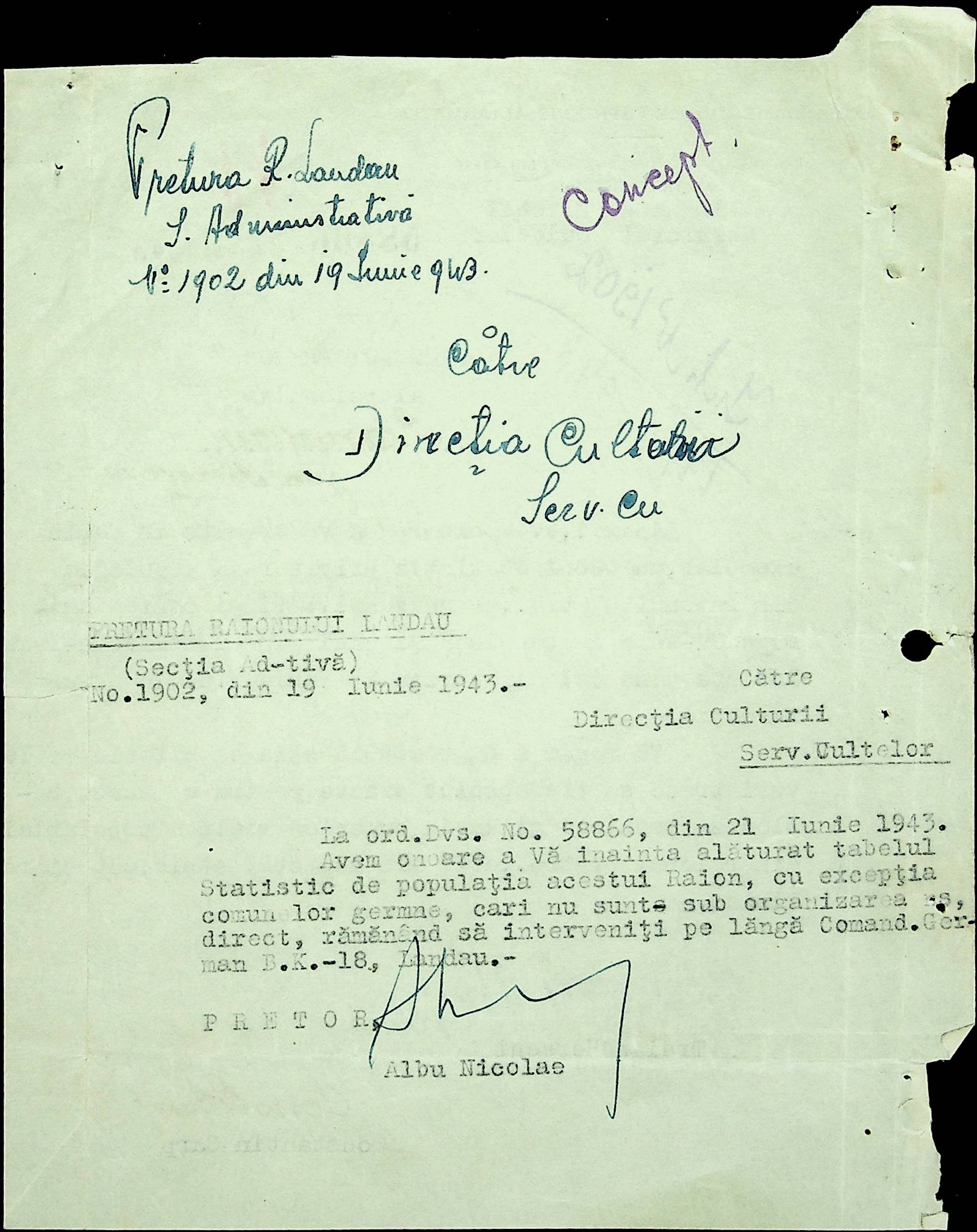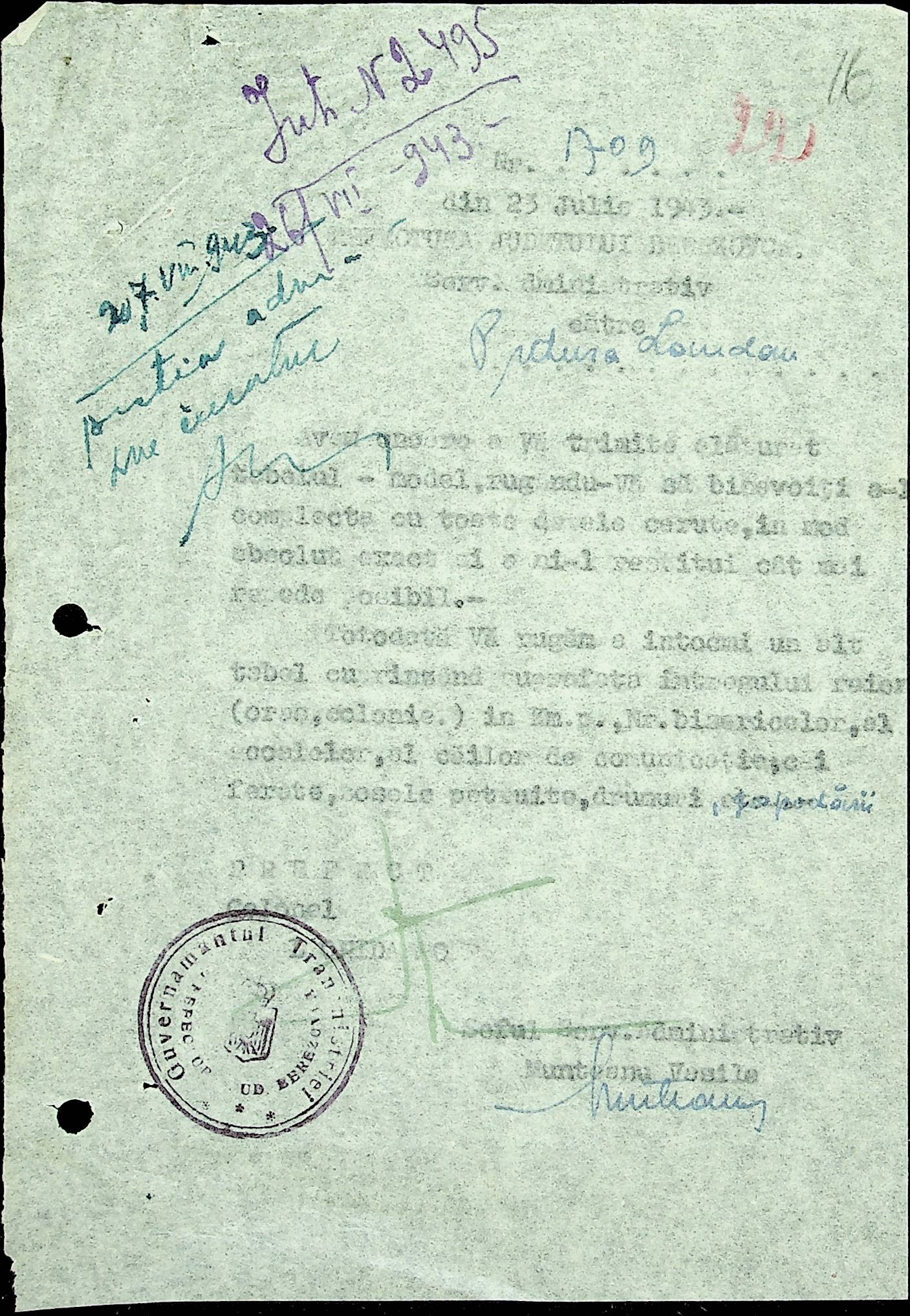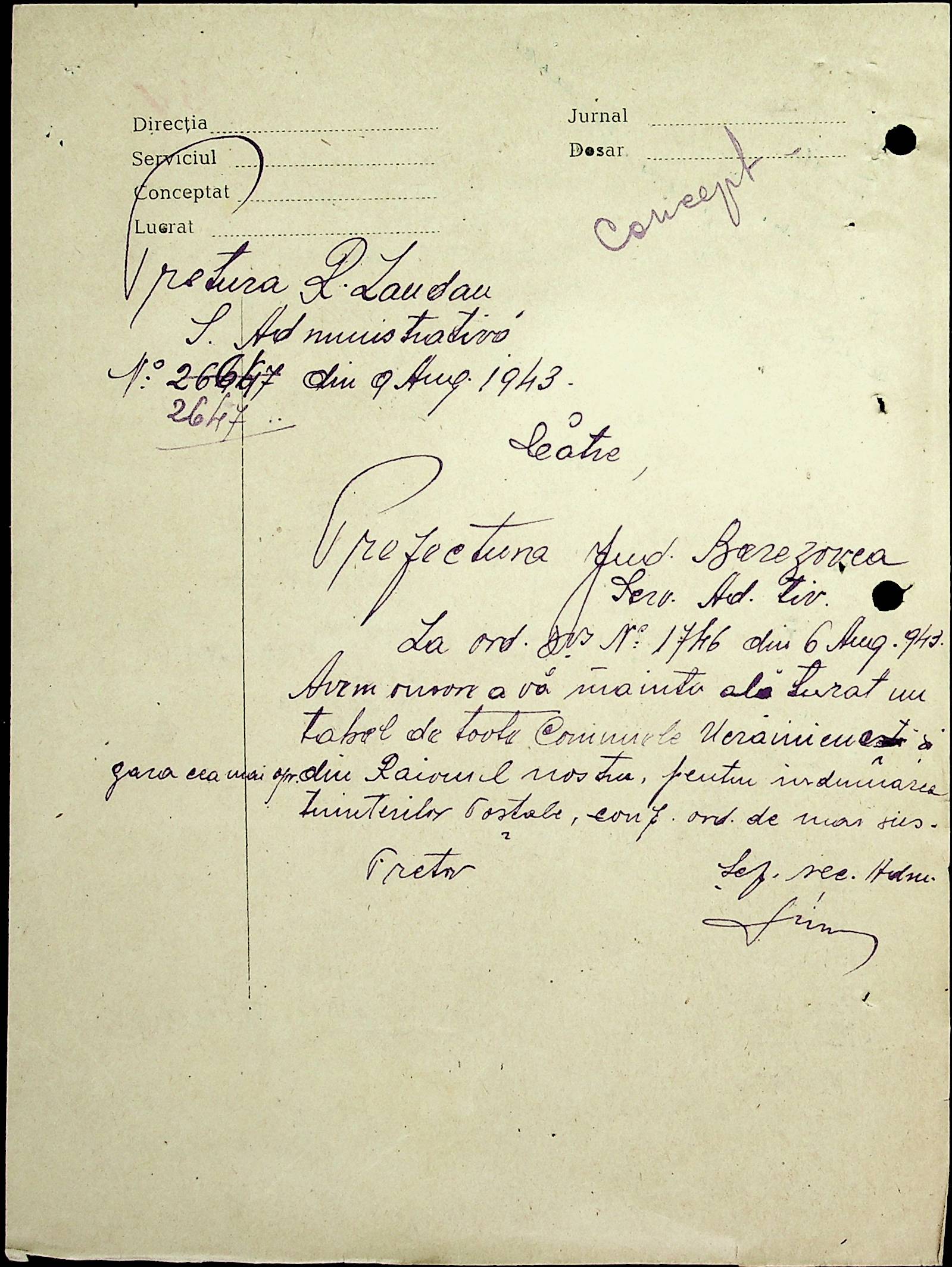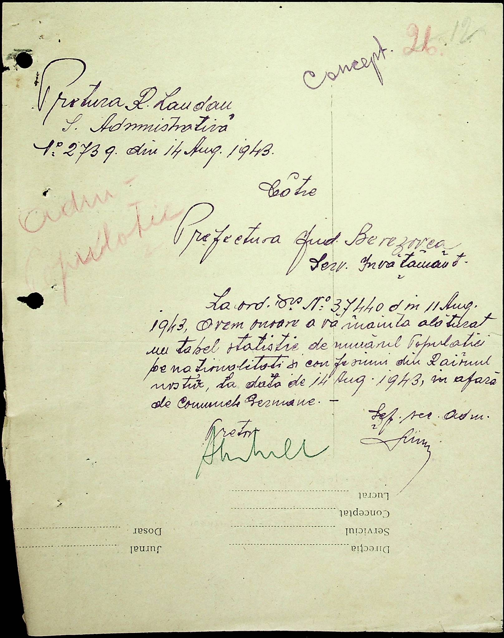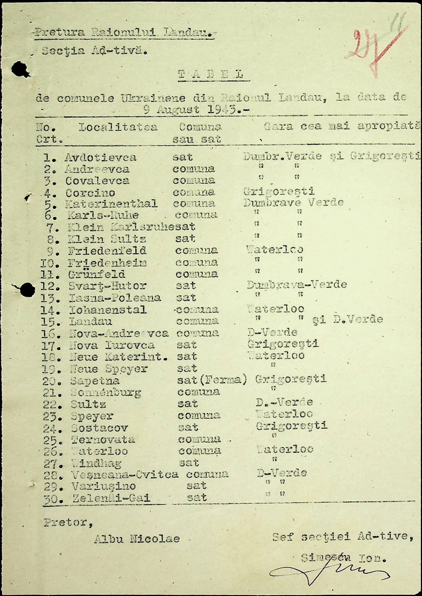 • • • • Справа № 20 Обіжник дирекції культури губернаторства Трансністрії про порядок роботи типографій Трансністрії; листування з адміністративним відділом Березівської префектури і примаріями про складання списку з точною вказівкою будівель та місцевості, що зайняті німцями; статистичні відомості про жителів району за національною ознакою і віросповіданням; про збір географічних карт по примаріях та представлення їх в претуру