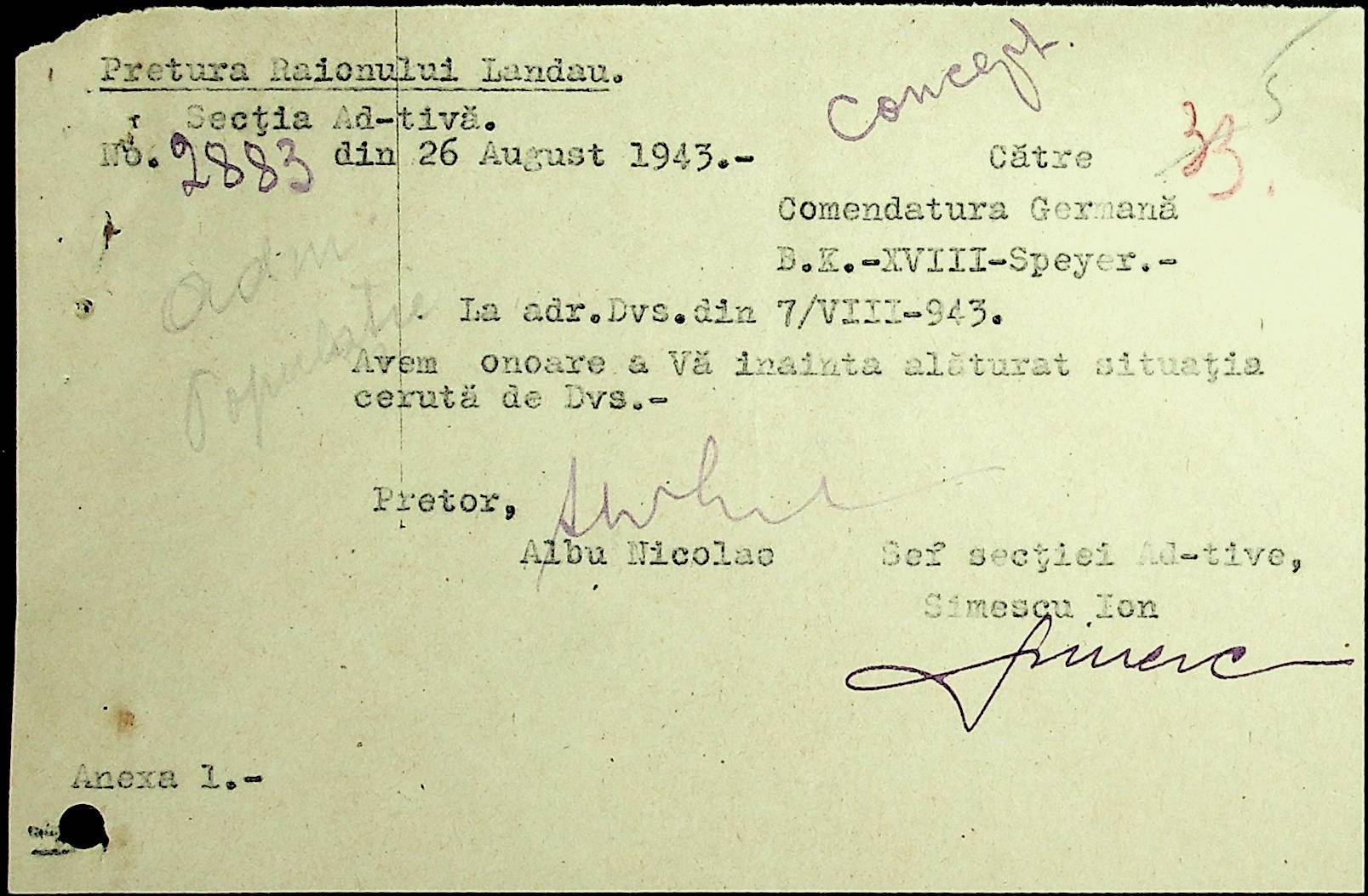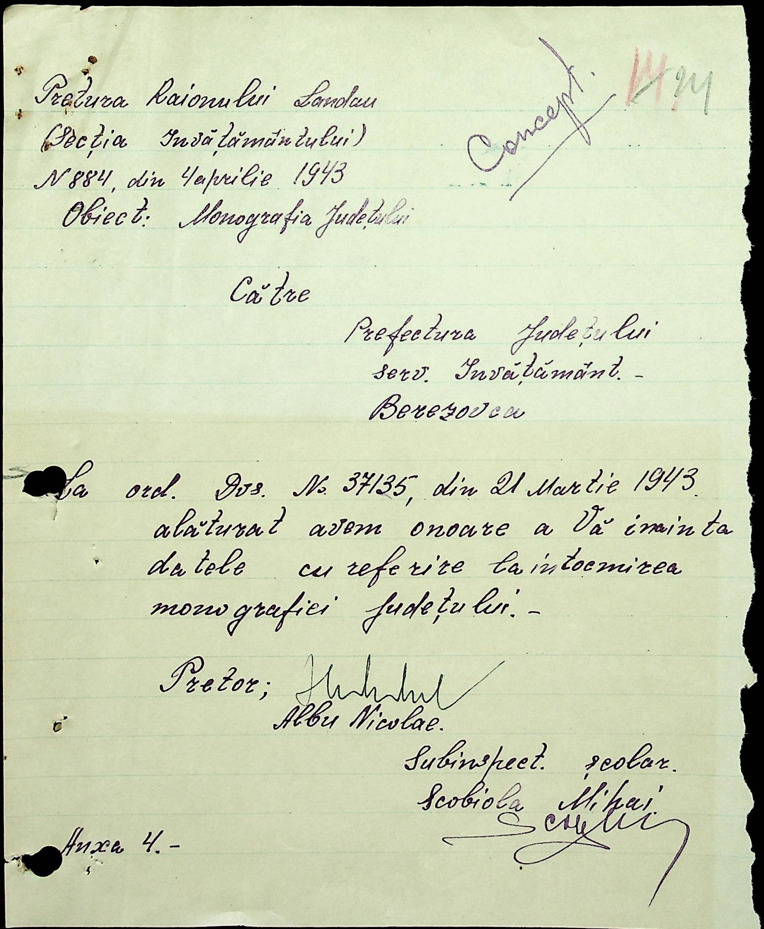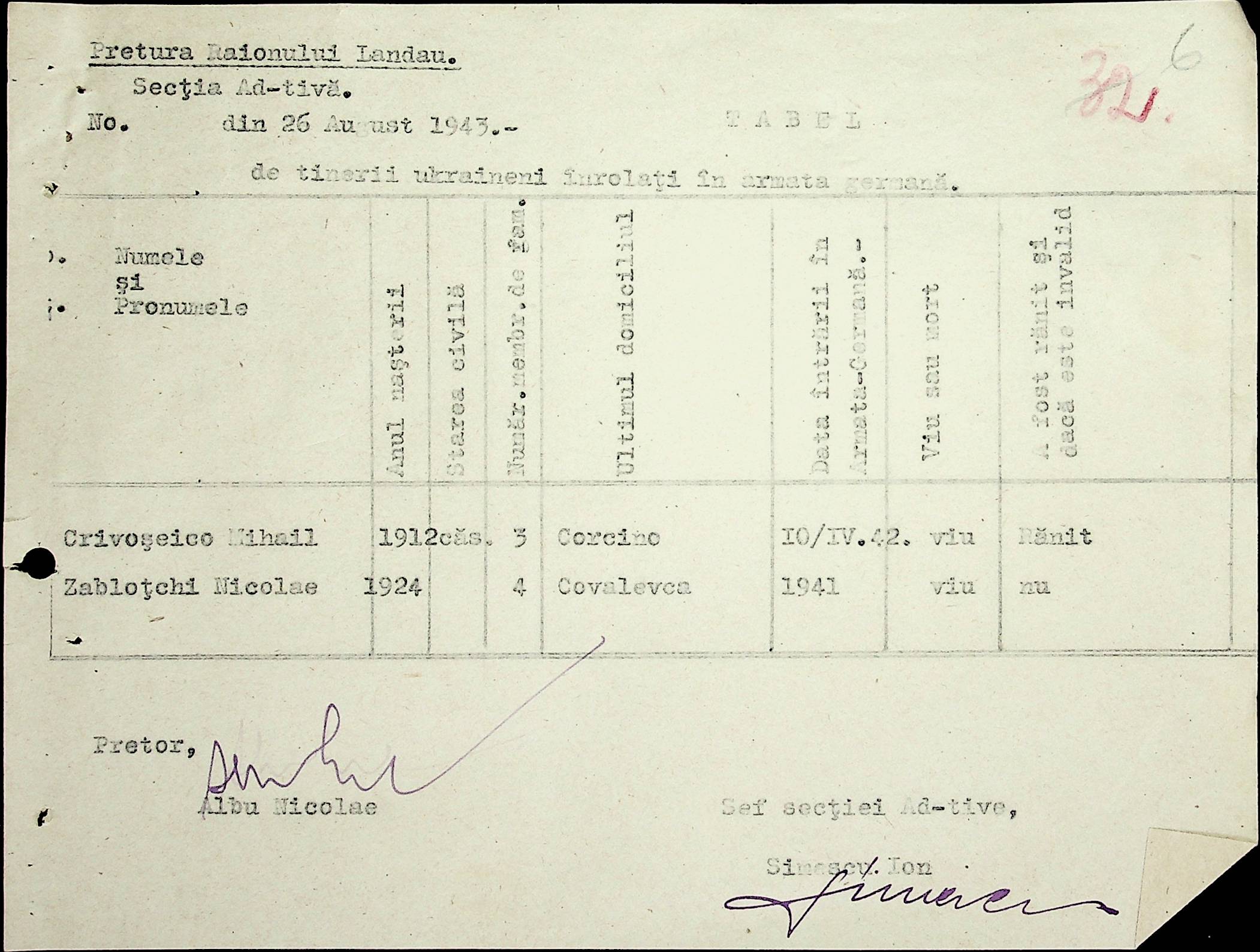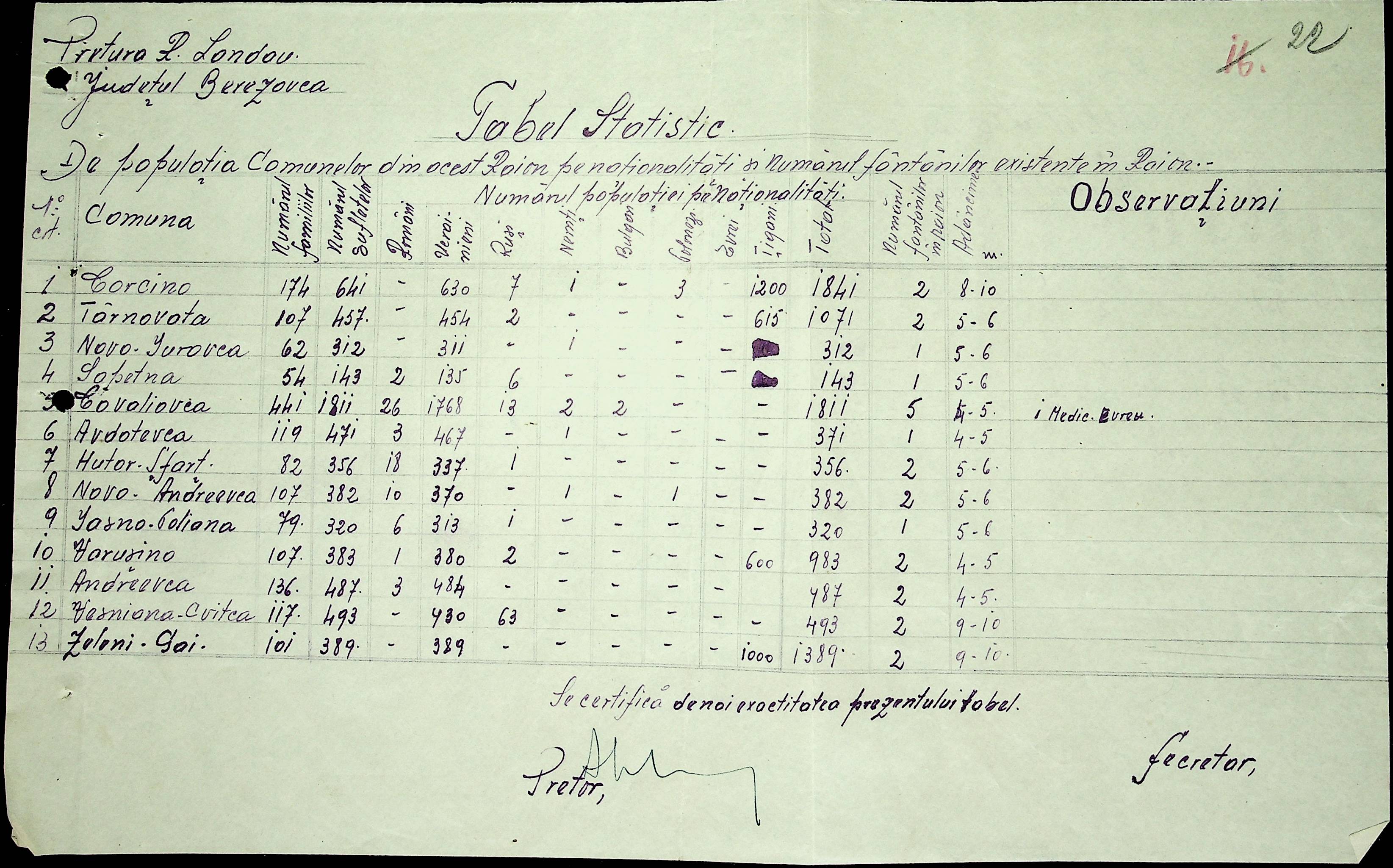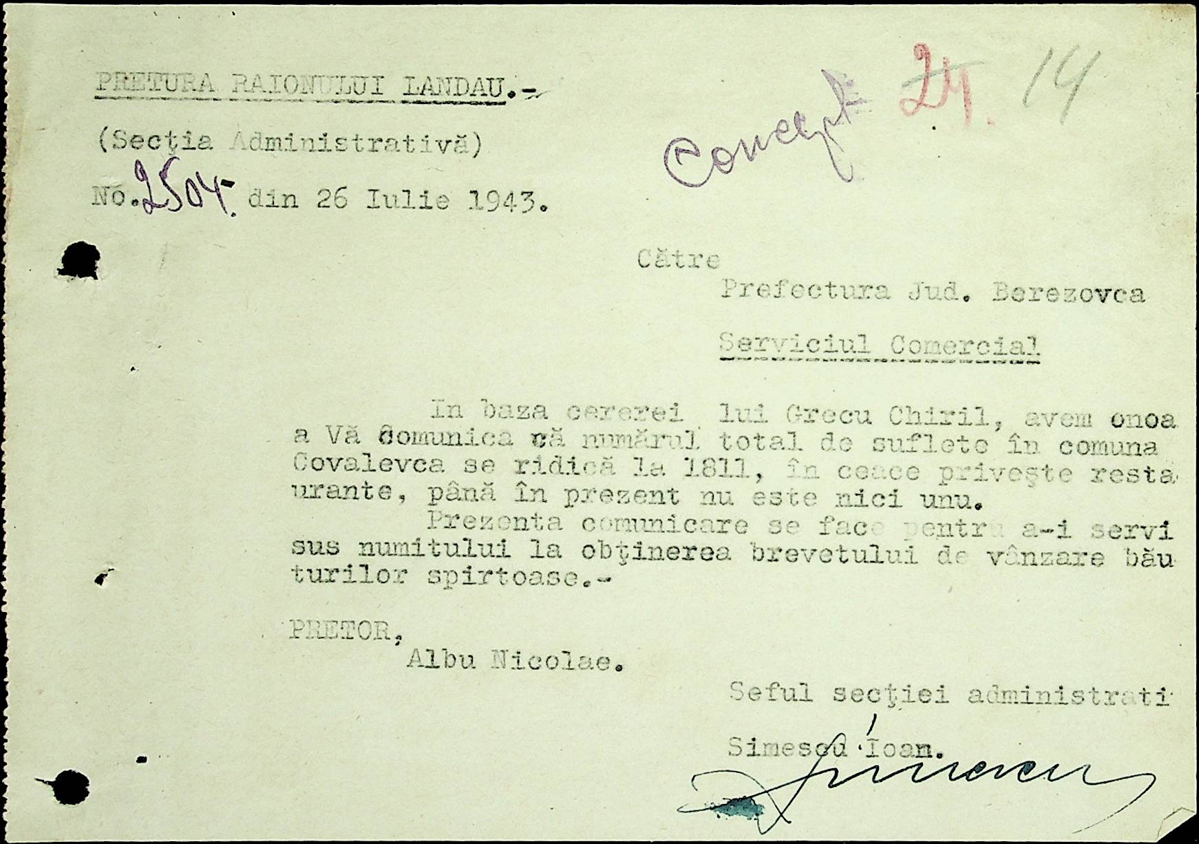• • • • Справа № 20 Обіжник дирекції культури губернаторства Трансністрії про порядок роботи типографій Трансністрії; листування з адміністративним відділом Березівської префектури і примаріями про складання списку з точною вказівкою будівель та місцевості, що зайняті німцями; статистичні відомості про жителів району за національною ознакою і віросповіданням; про збір географічних карт по примаріях та представлення їх в претуру