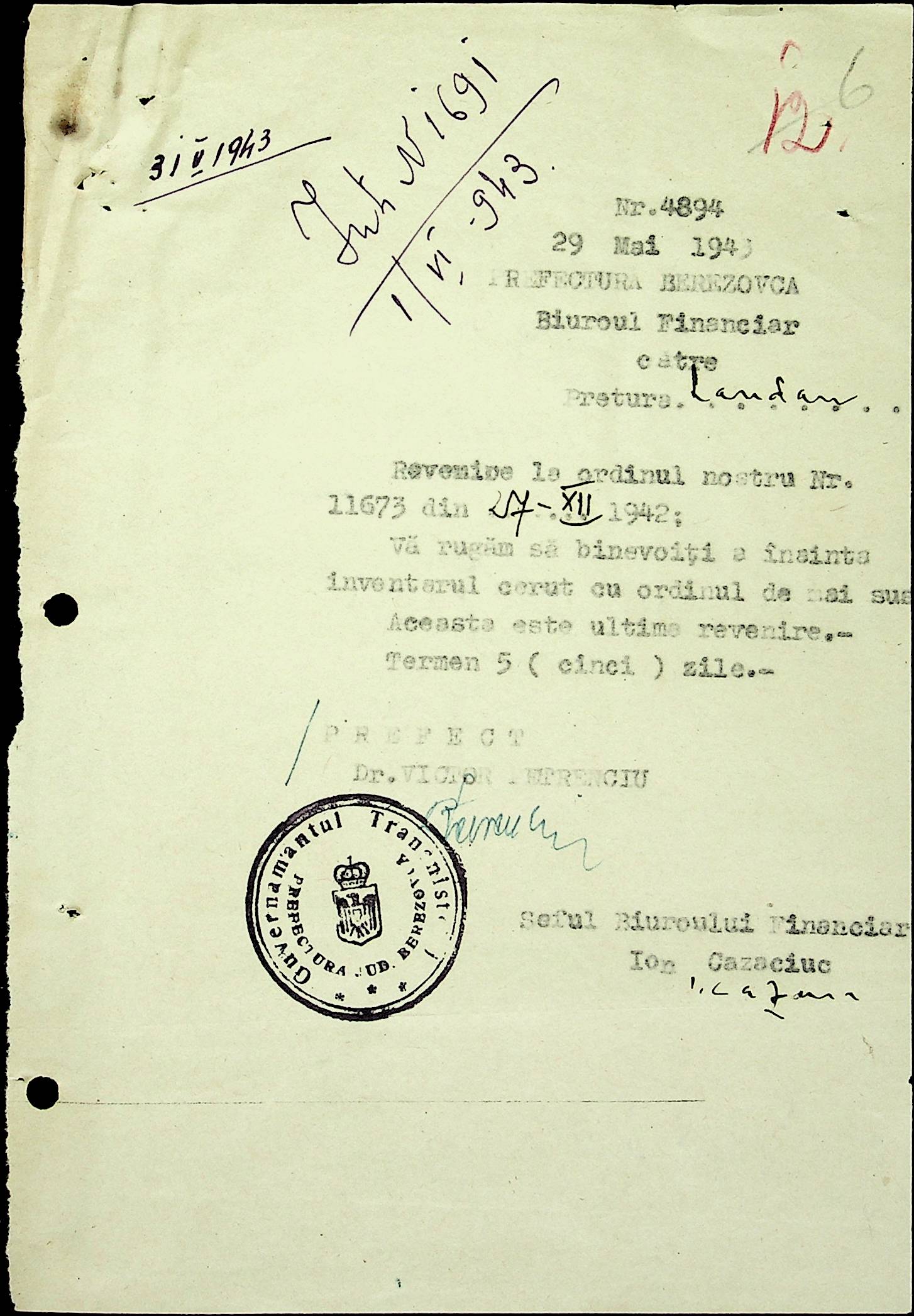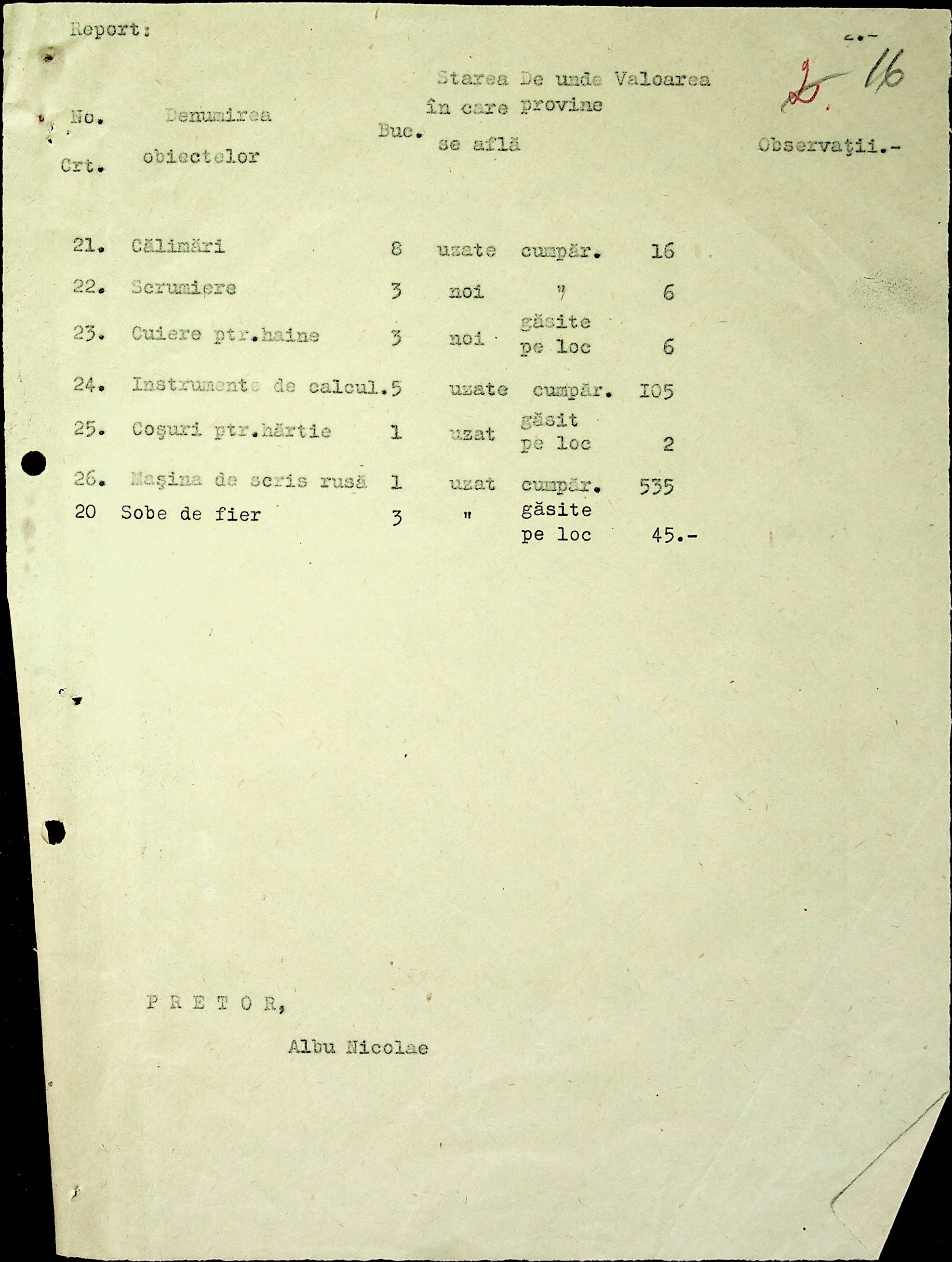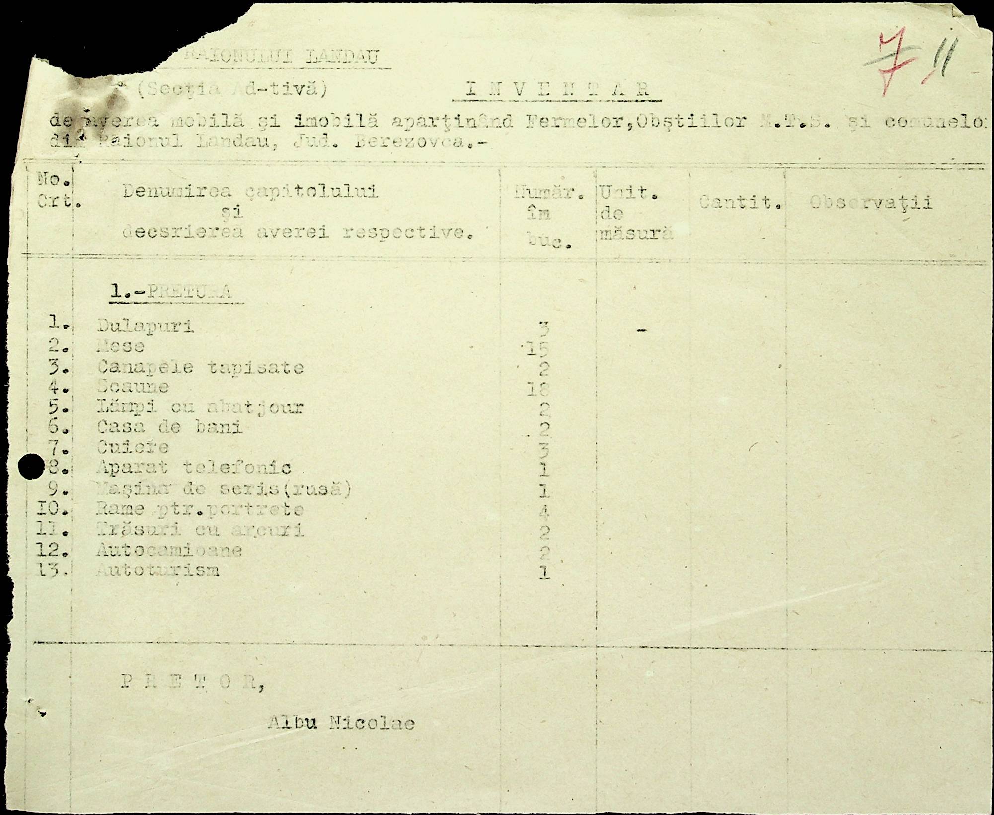 • • • • Справа № 21 Листування з префектурою Березівського повіту про надання інвентарних описів майна установ Ландауського району. Опис меблів претури Ландауського району