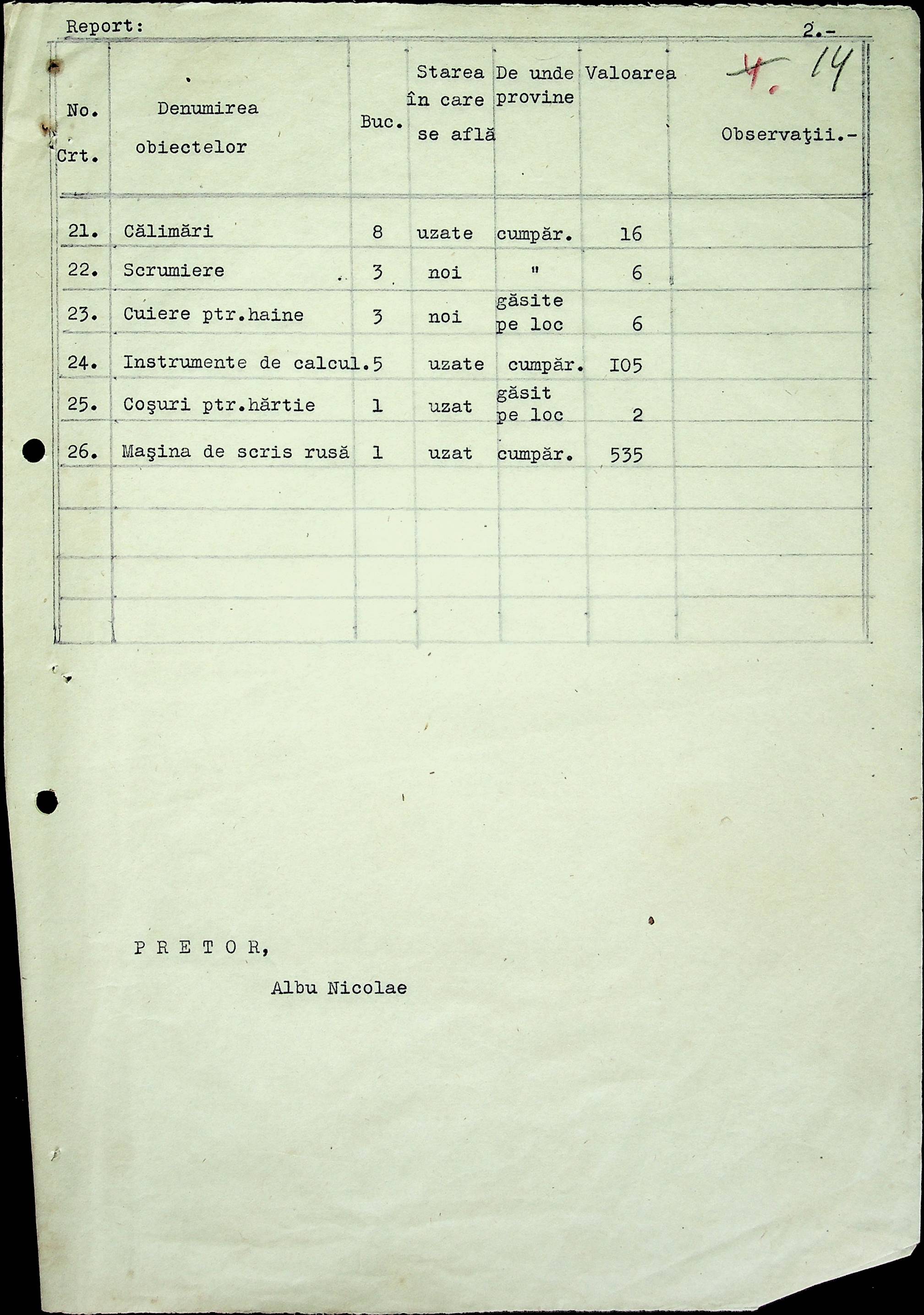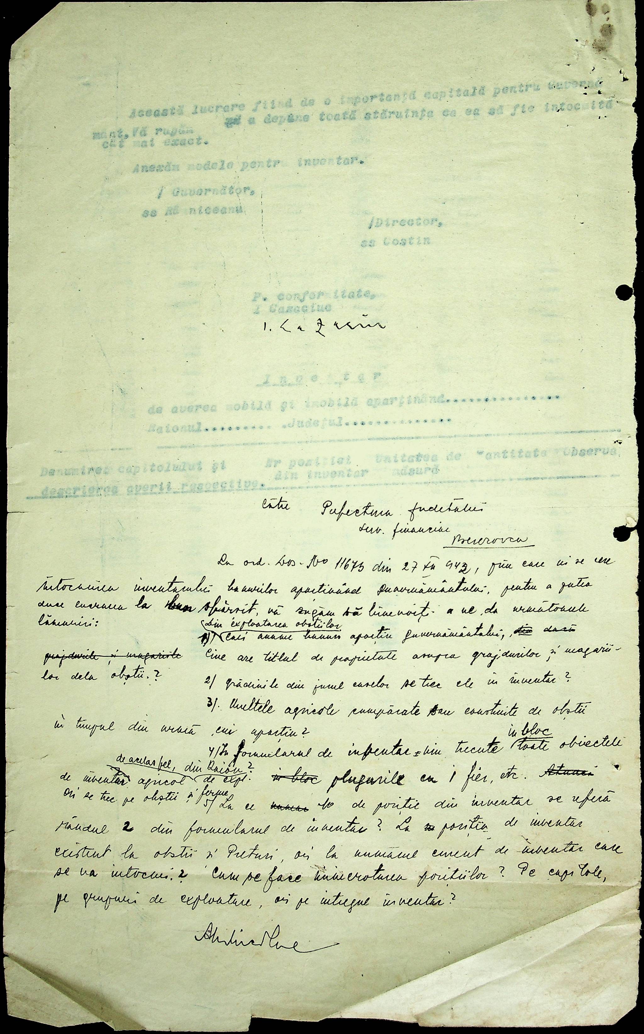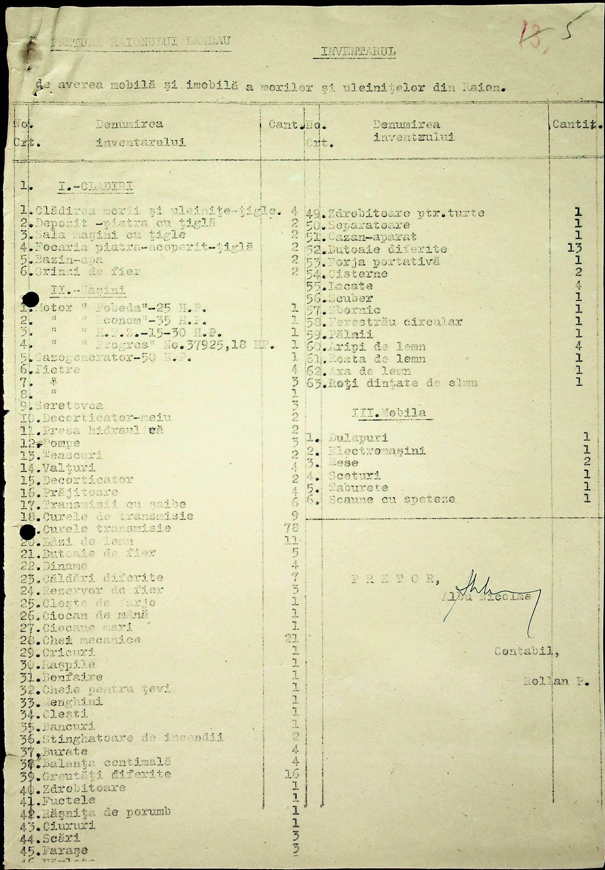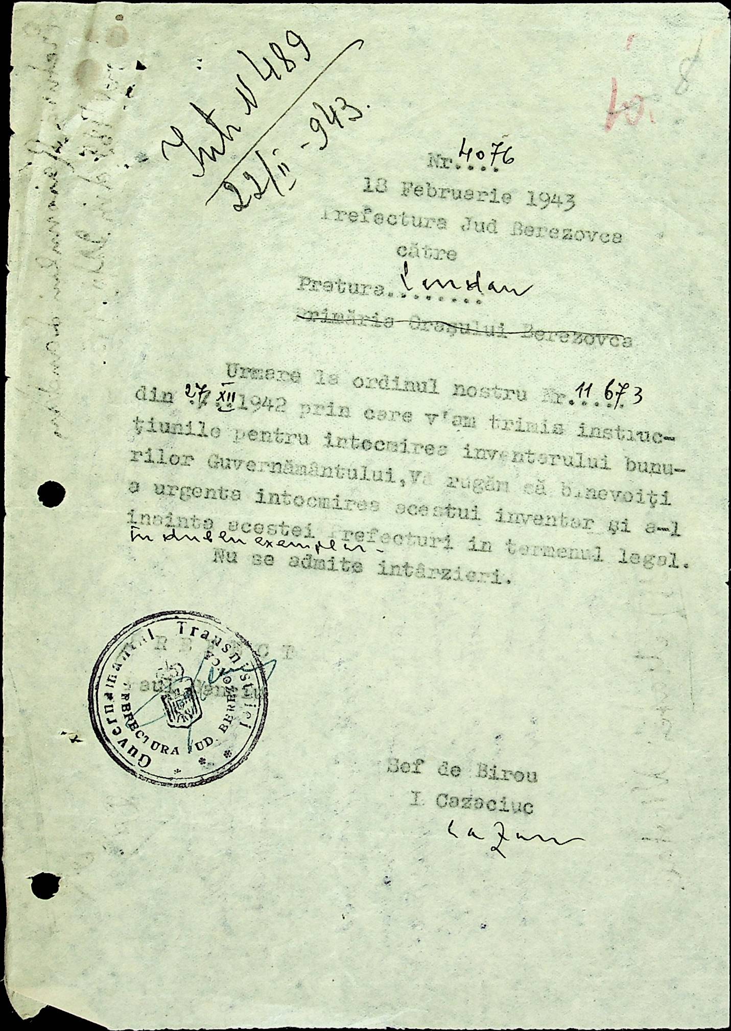 • • • • Справа № 21 Листування з префектурою Березівського повіту про надання інвентарних описів майна установ Ландауського району. Опис меблів претури Ландауського району