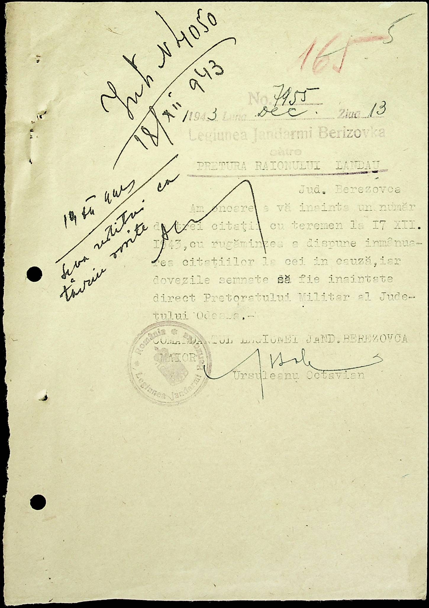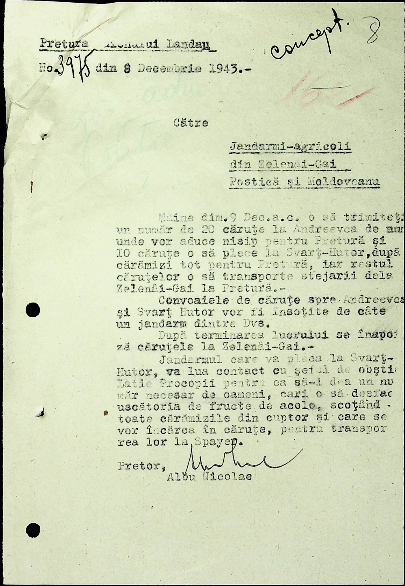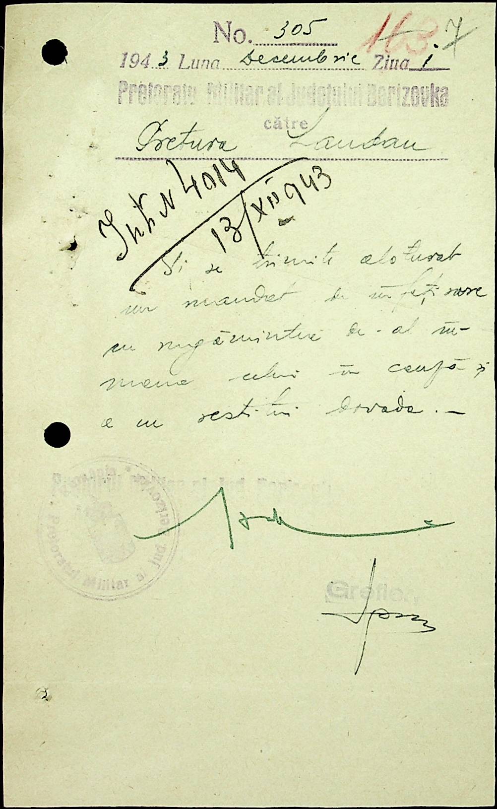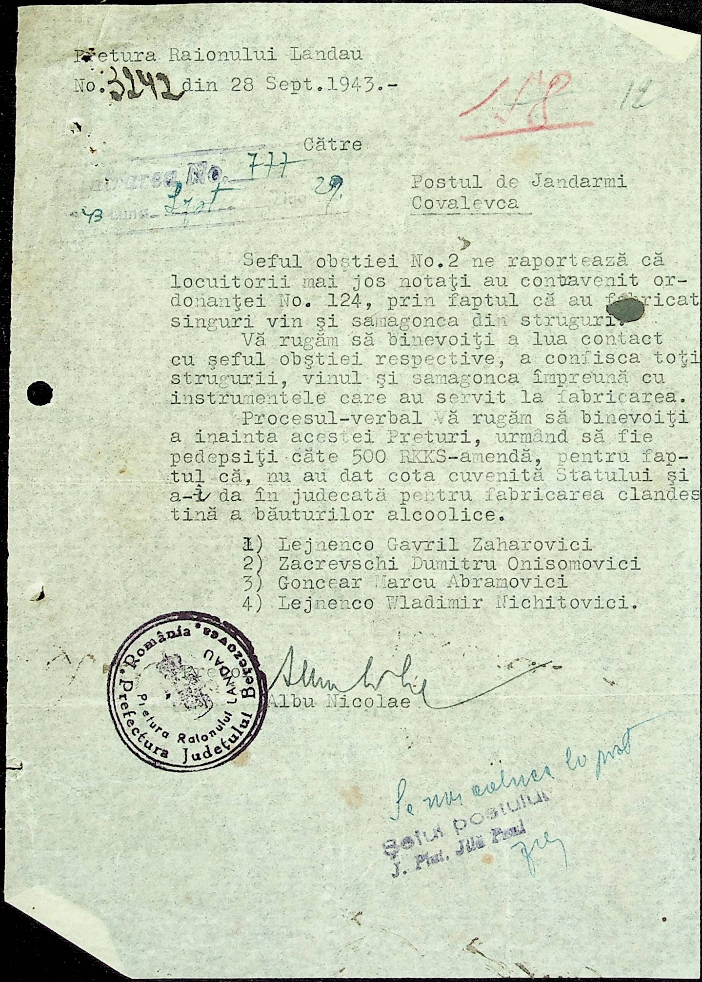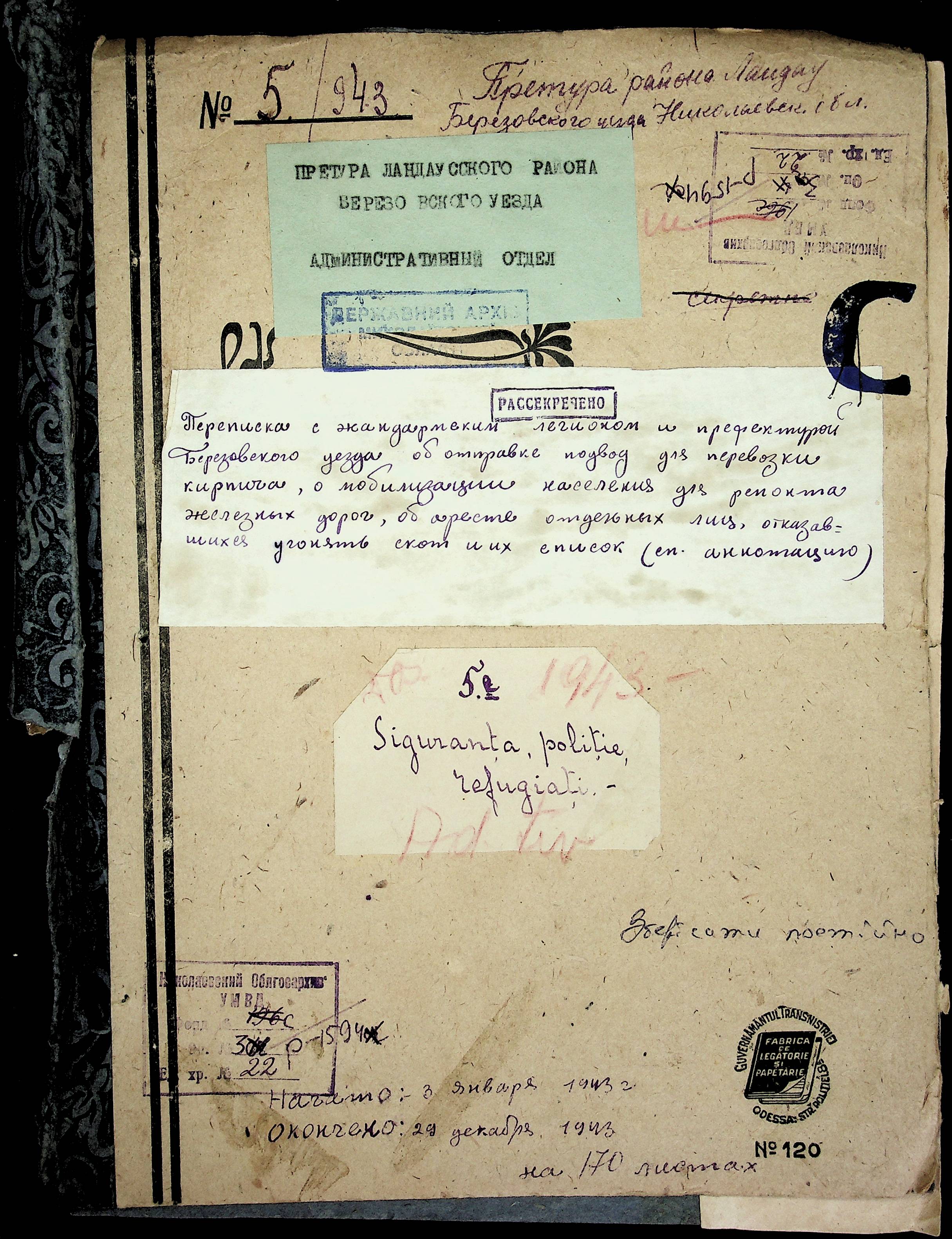 • • • • Справа № 22 Листування з жандармським легіоном і префектурою Березівського повіту про відправку підвод для перевезення цегли, залучення населення до ремонту залізниці, арешт окремих осіб, які відмовились від викрадення худоби та їх список. Список співробітників Ландауської претури