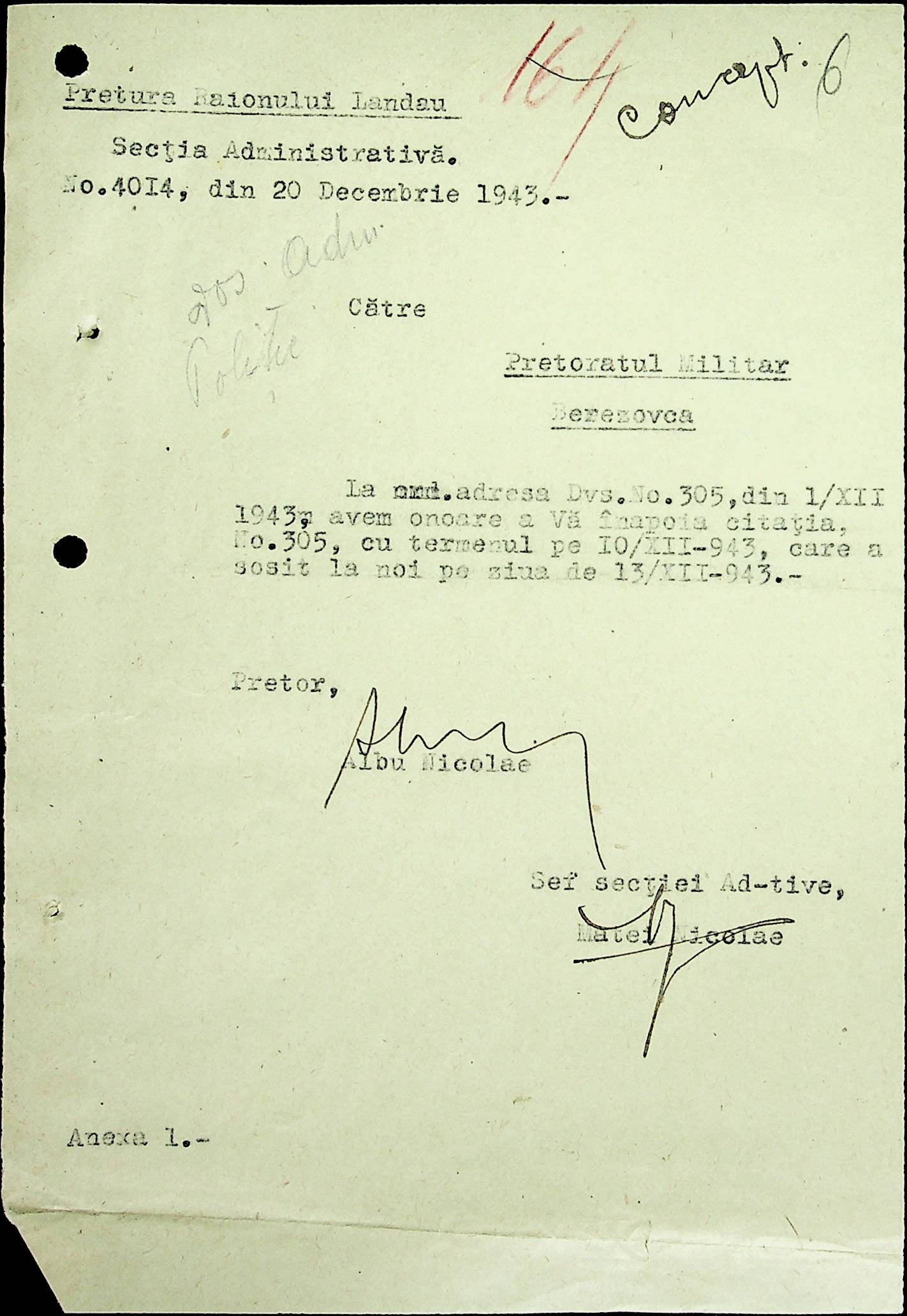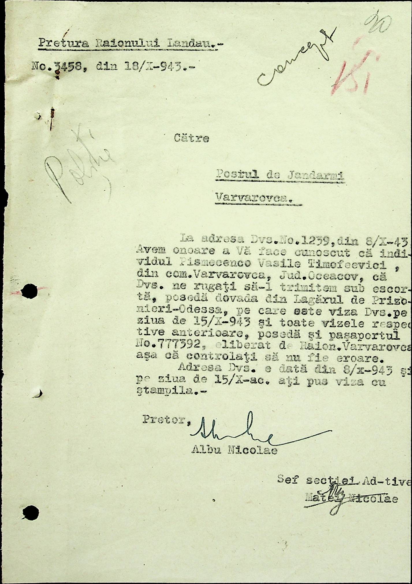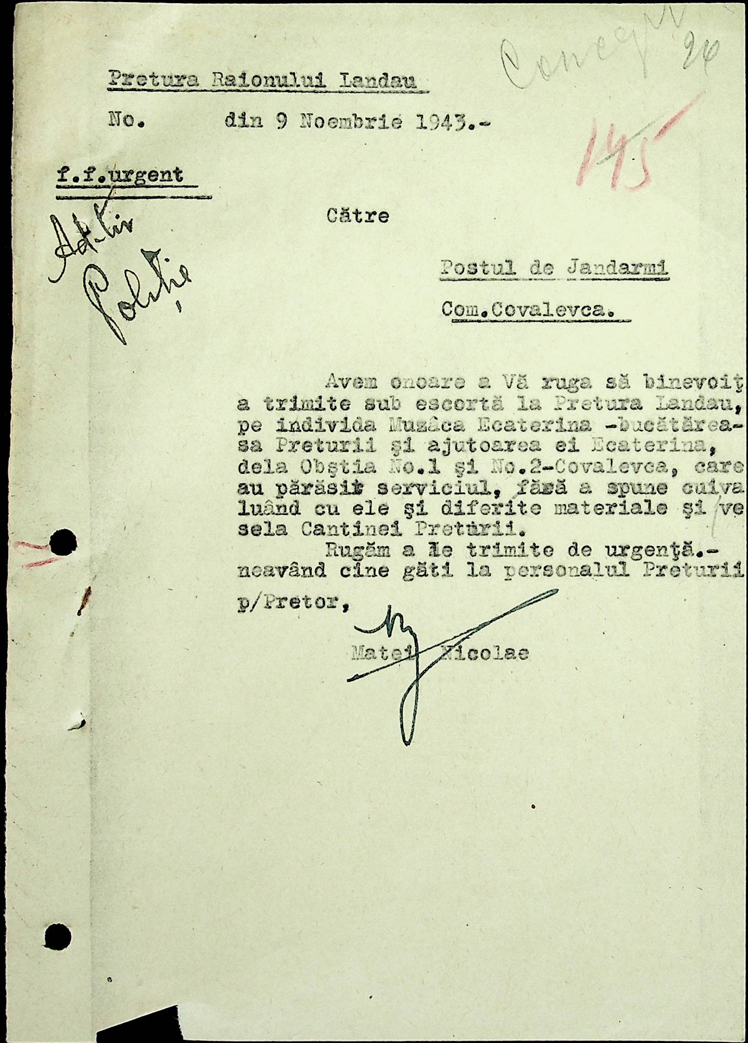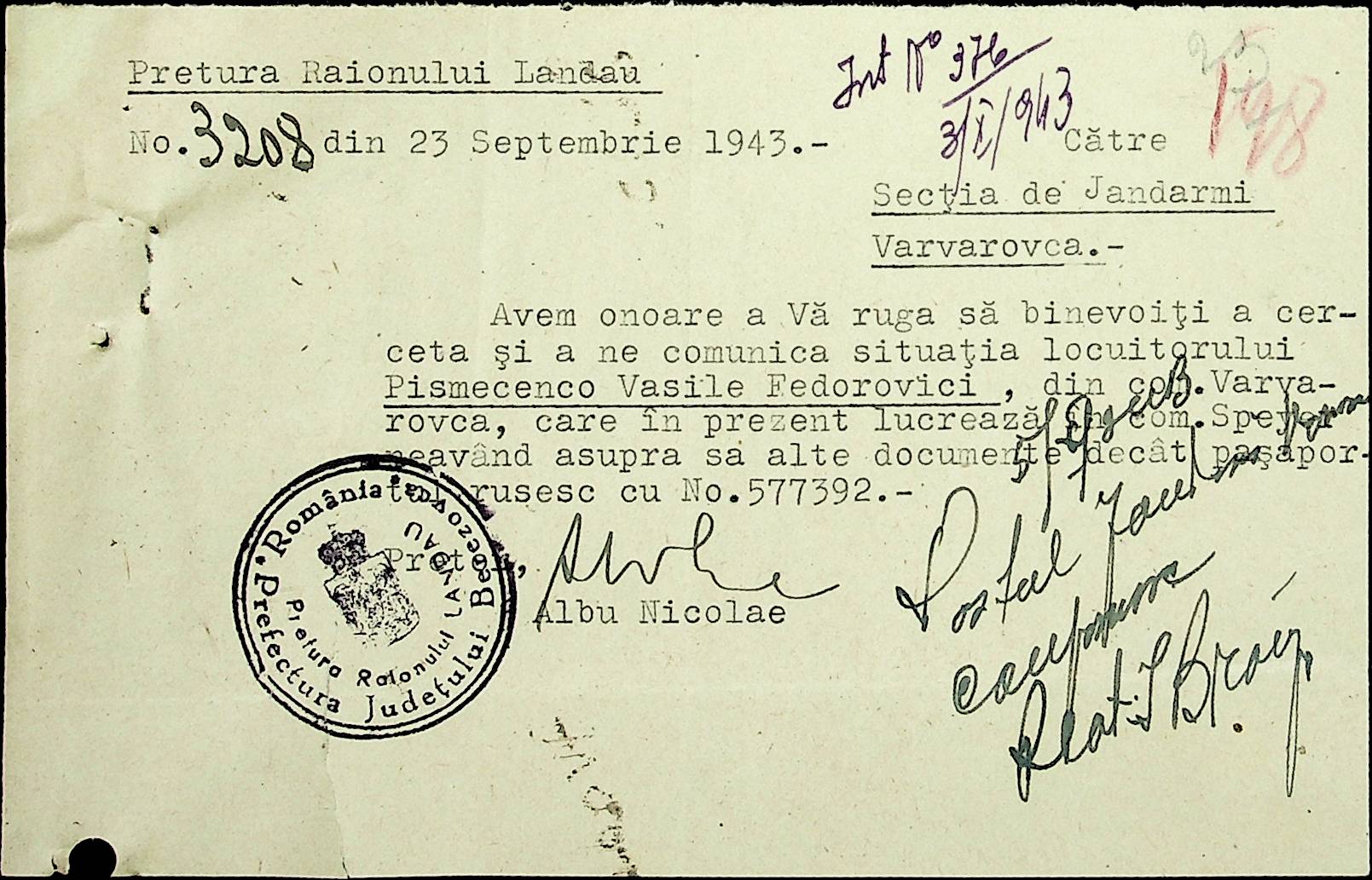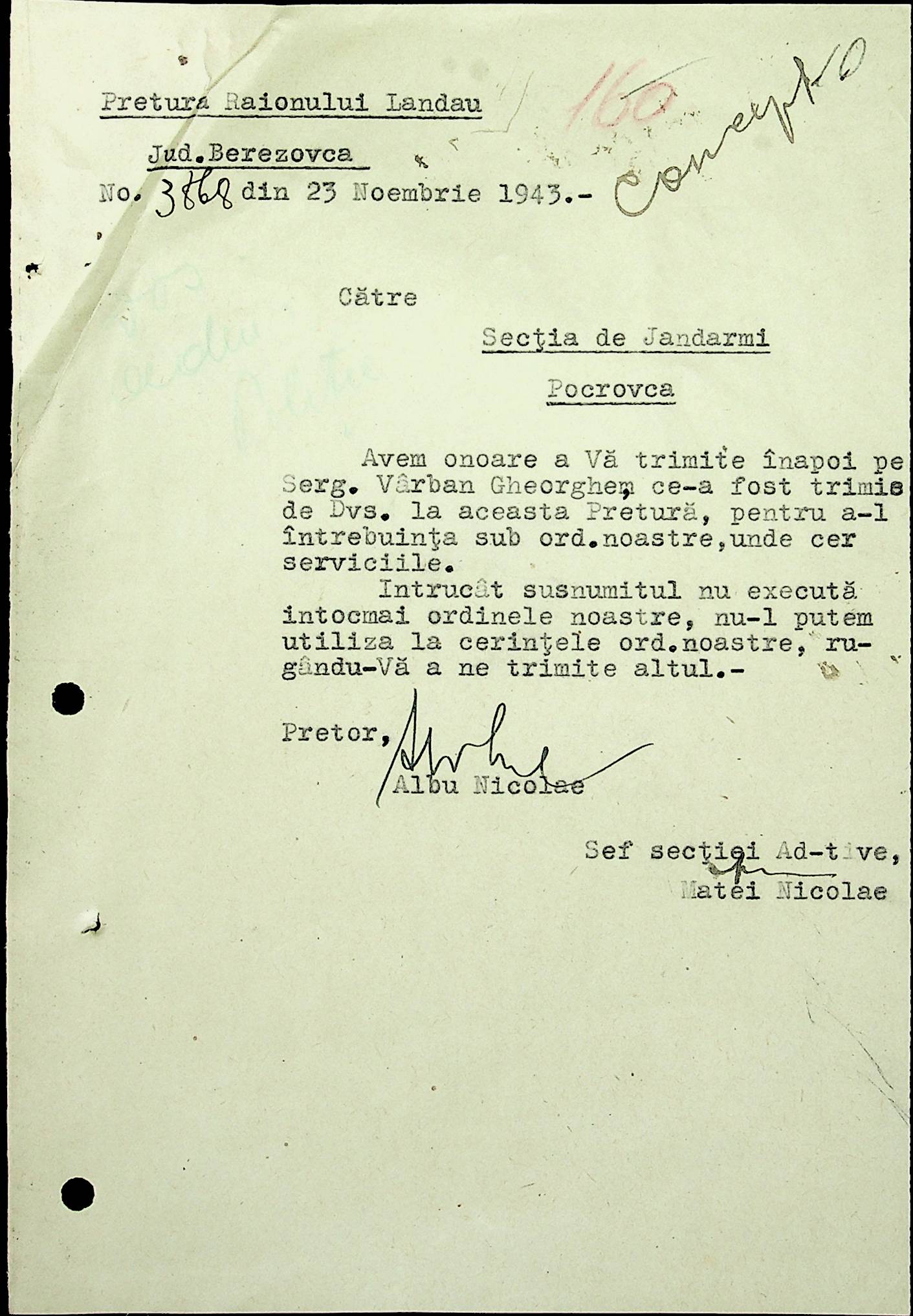 • • • • Справа № 22 Листування з жандармським легіоном і префектурою Березівського повіту про відправку підвод для перевезення цегли, залучення населення до ремонту залізниці, арешт окремих осіб, які відмовились від викрадення худоби та їх список. Список співробітників Ландауської претури
