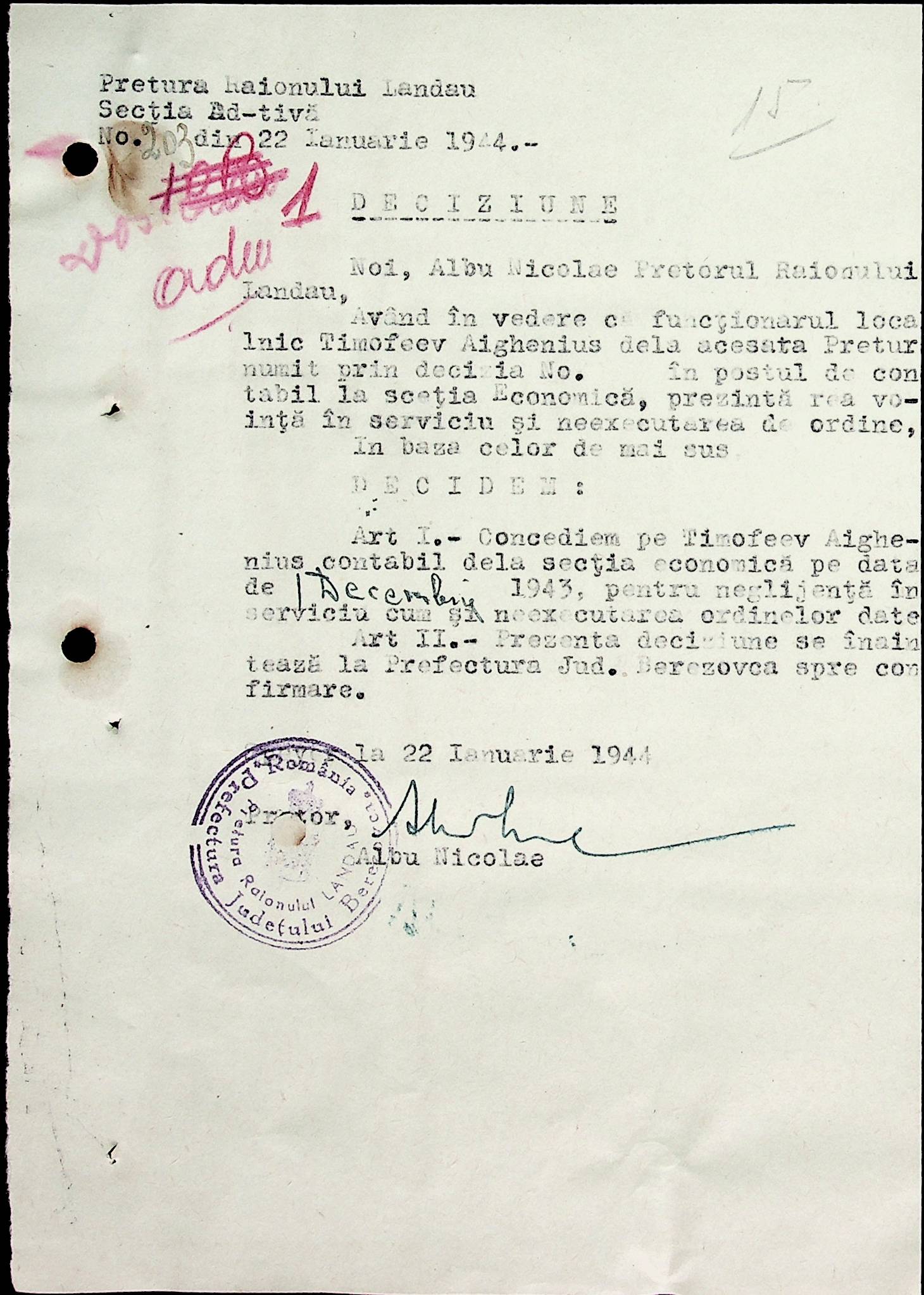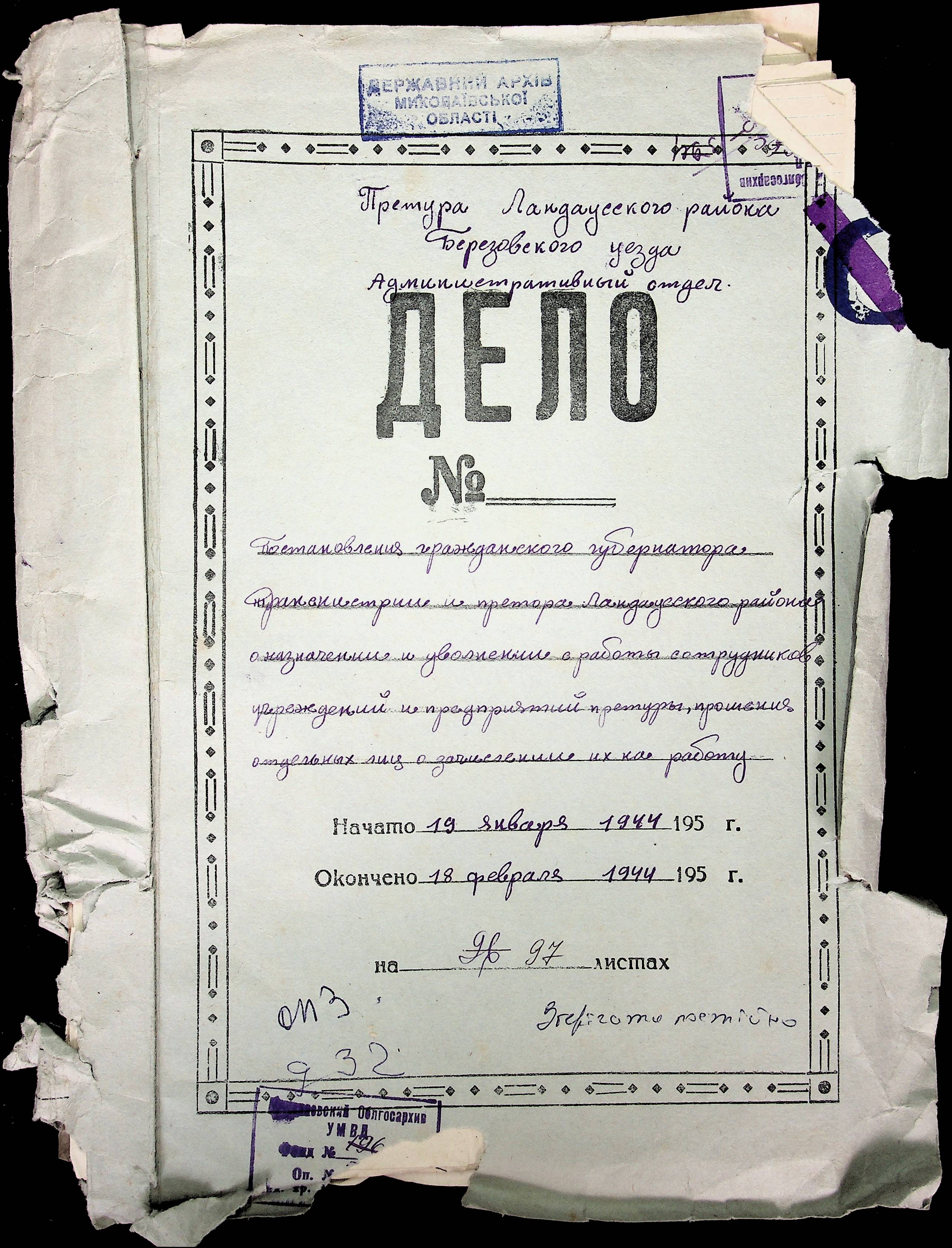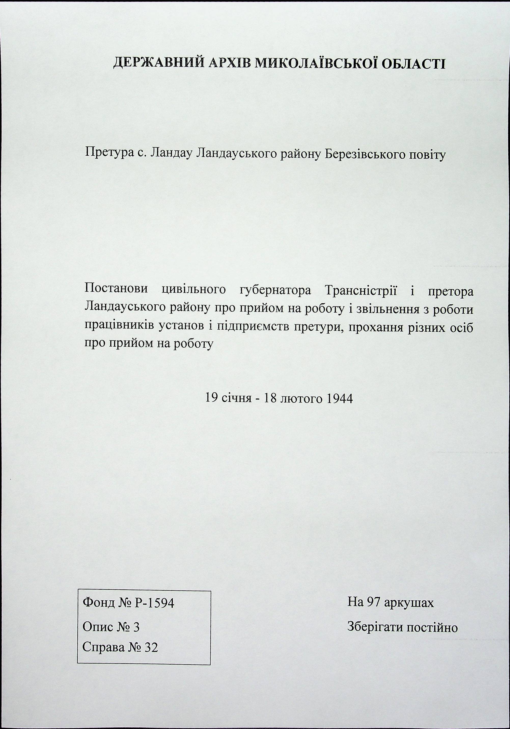 ◦ ◦ Фонд № Н-1594 “Претура Ландауського району”