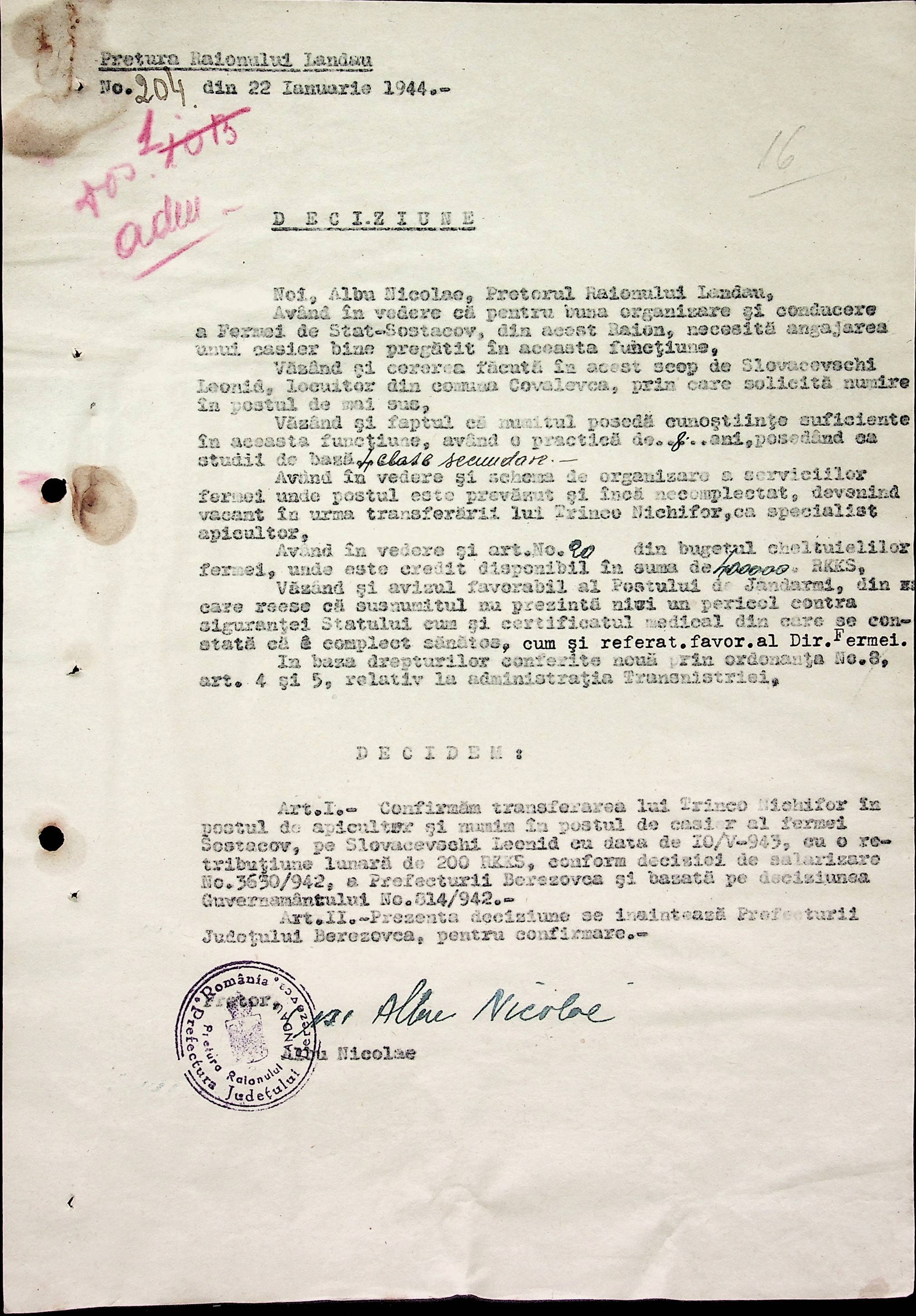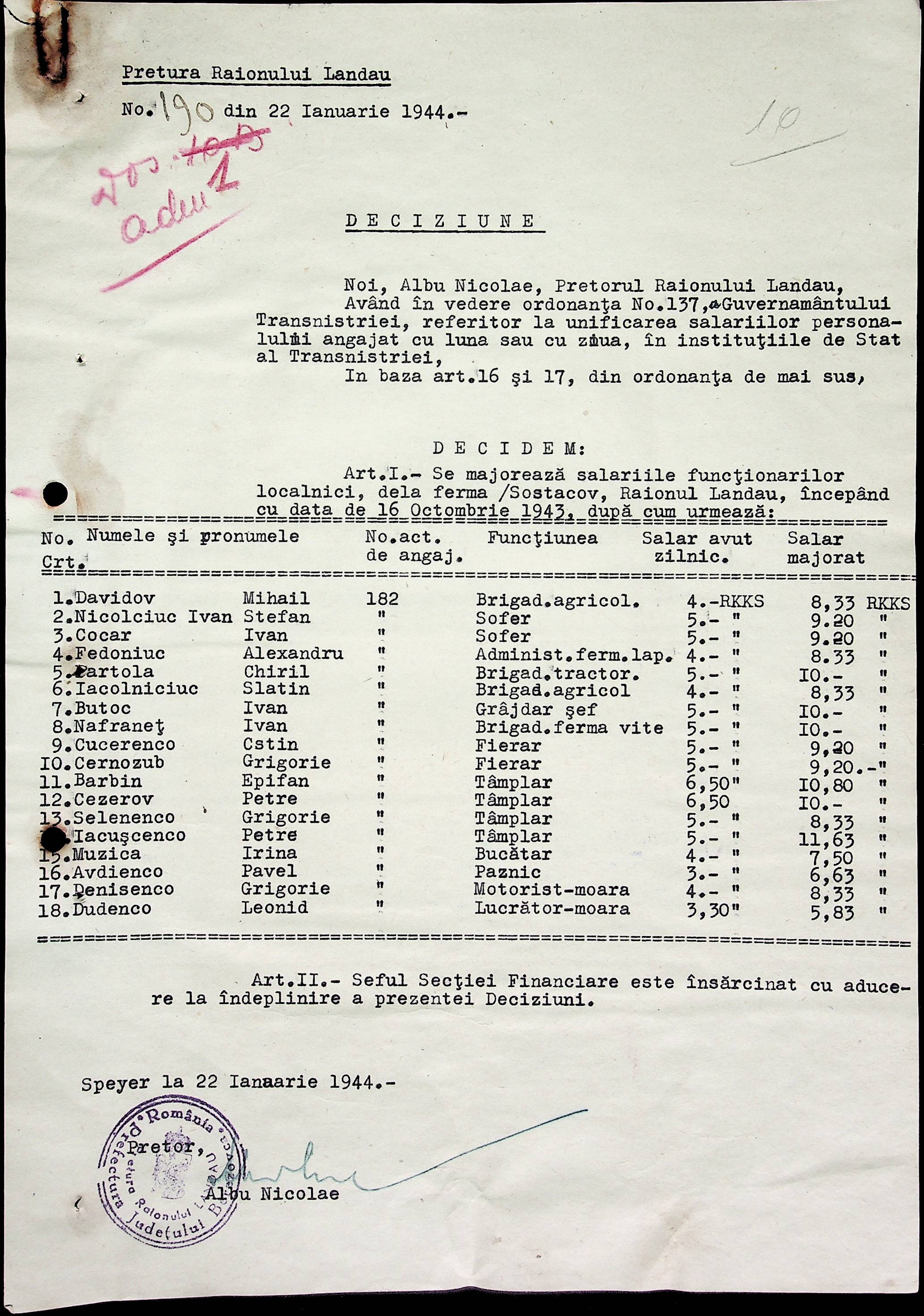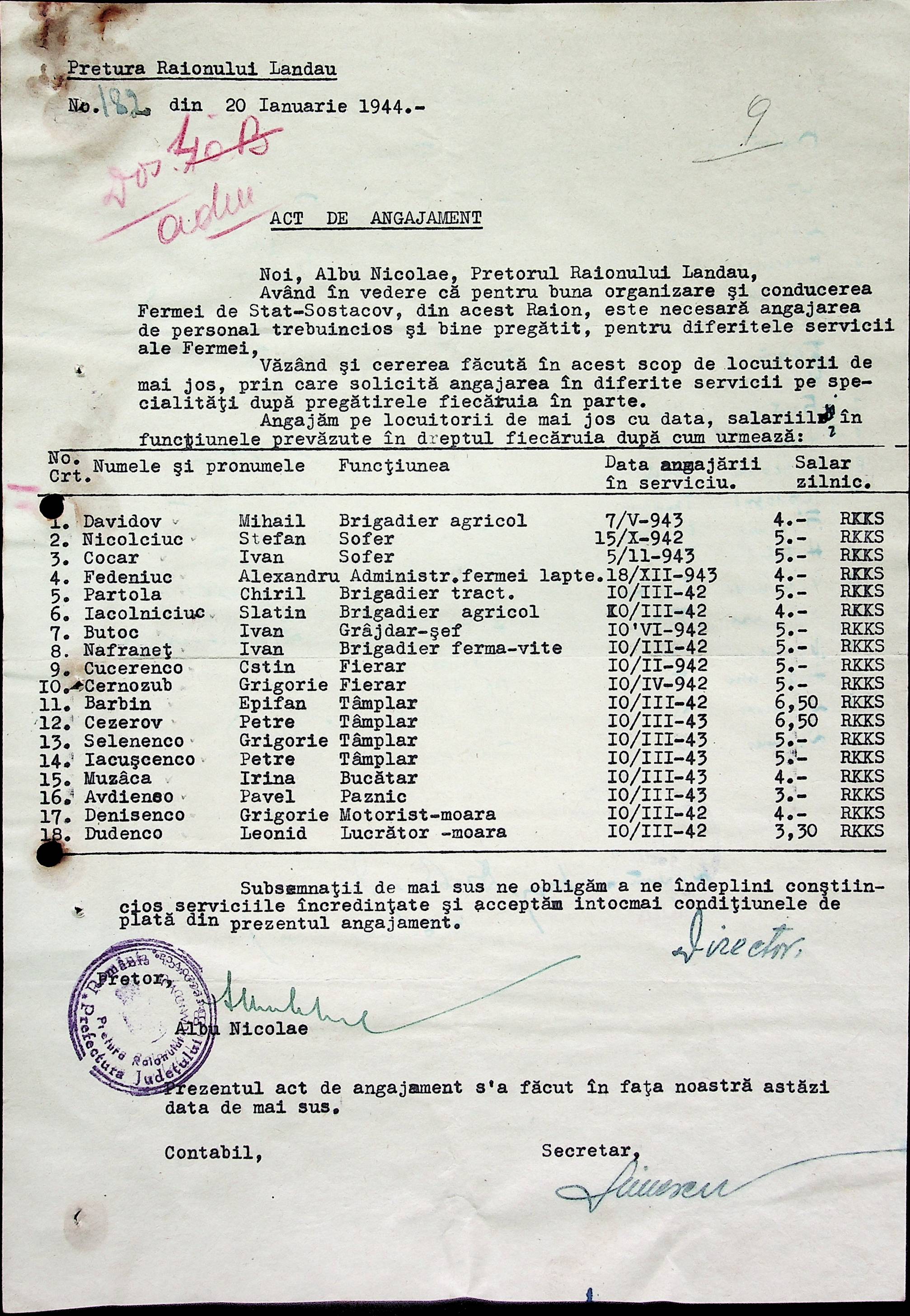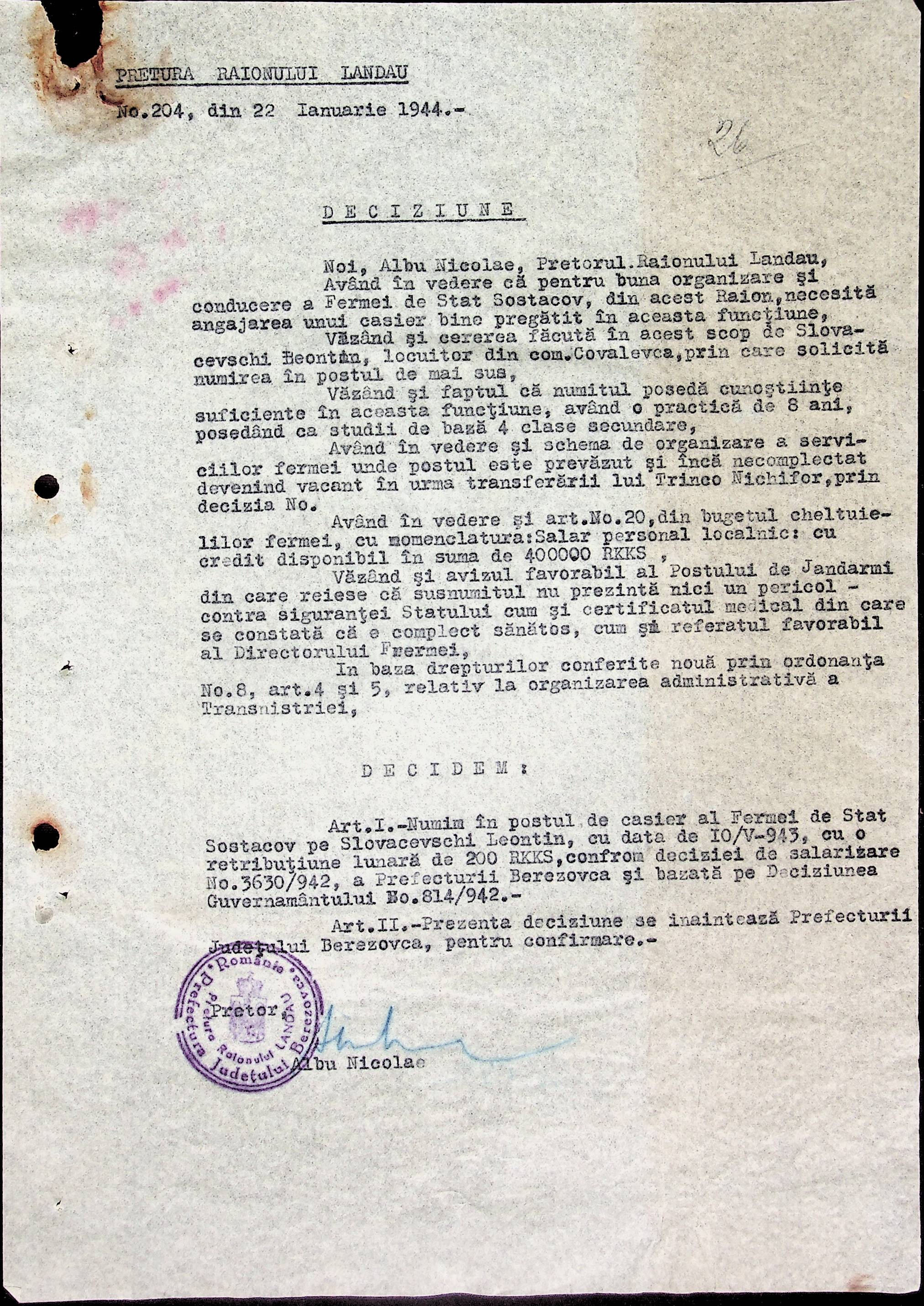 • • • • Справа № 32 Постанови цивільного губернатора Трансністрії і претора Ландауського району про прийом на роботу і звільнення з роботи працівників установ і підприємств претури, прохання різних осіб про прийом на роботу