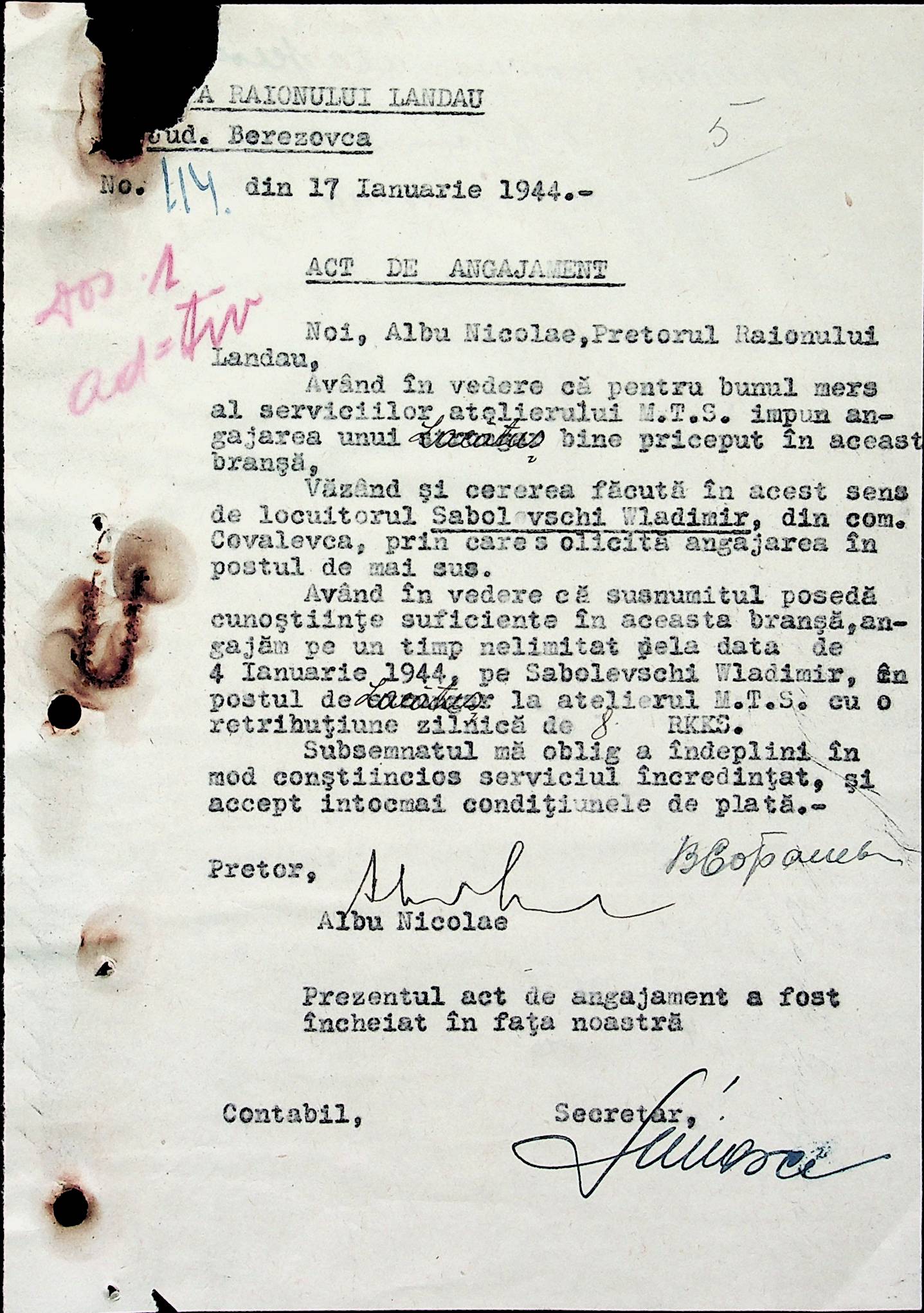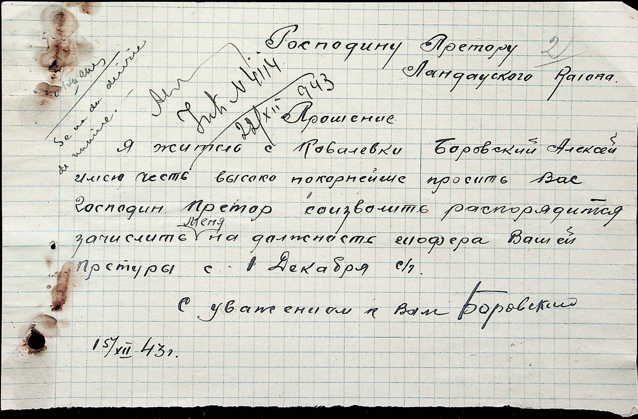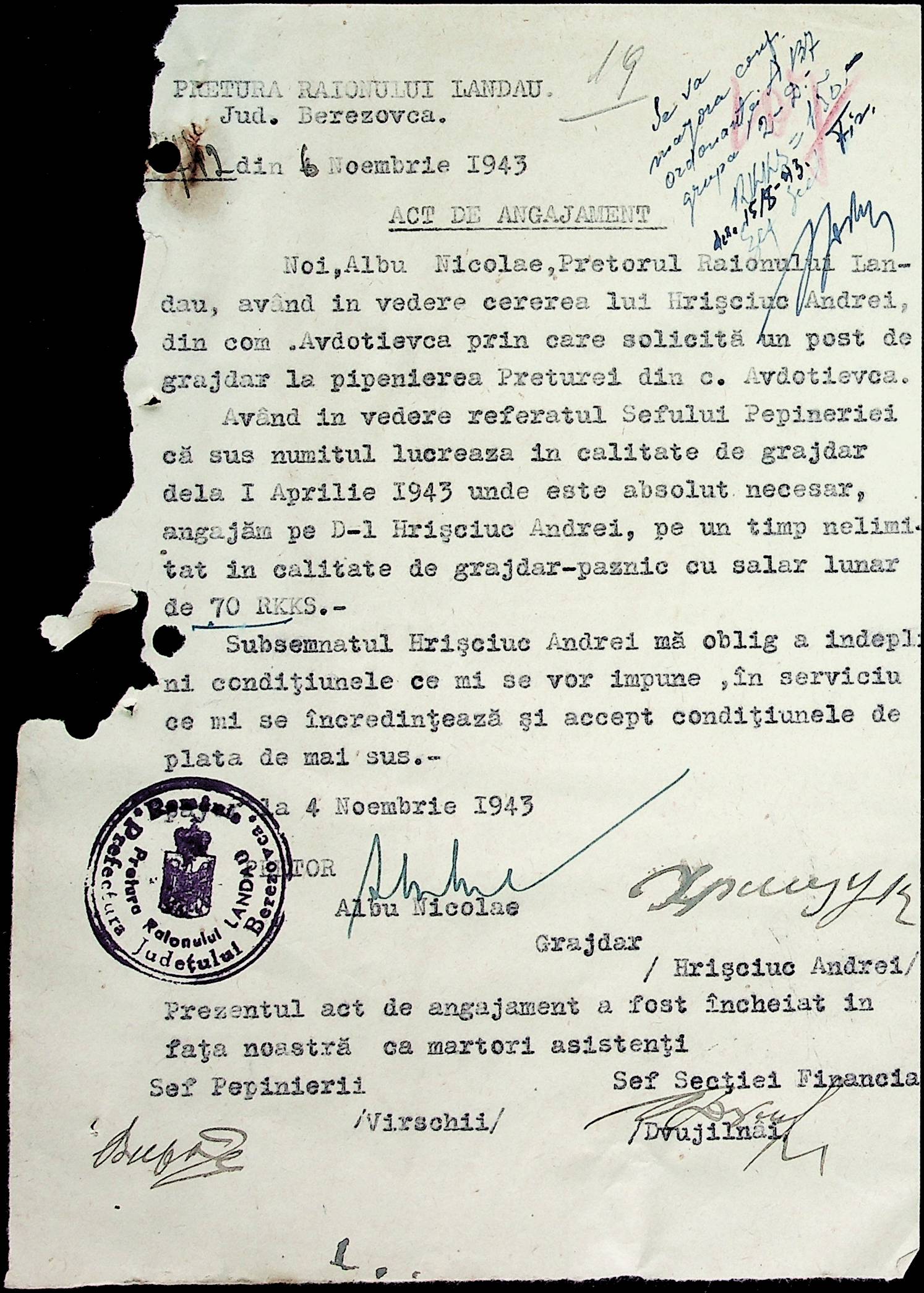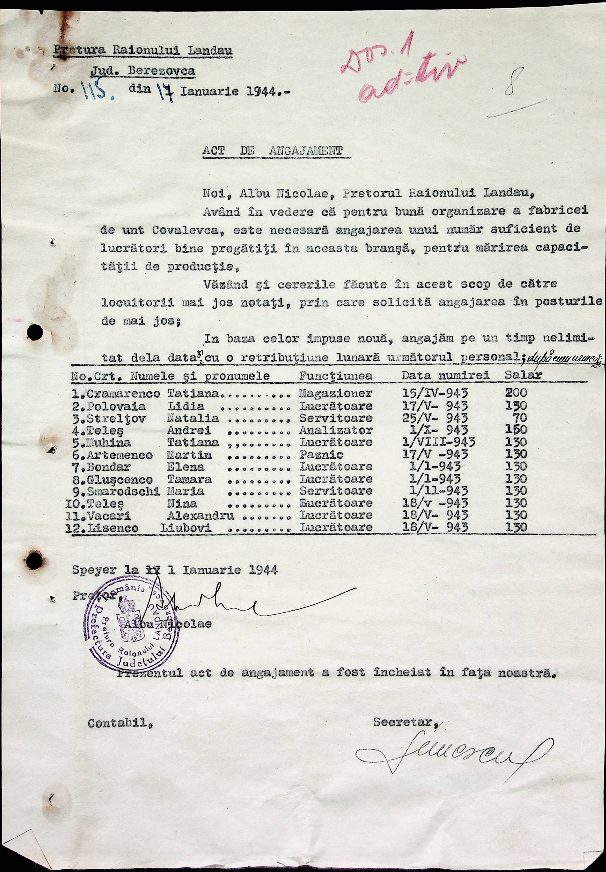 • • • • Справа № 32 Постанови цивільного губернатора Трансністрії і претора Ландауського району про прийом на роботу і звільнення з роботи працівників установ і підприємств претури, прохання різних осіб про прийом на роботу