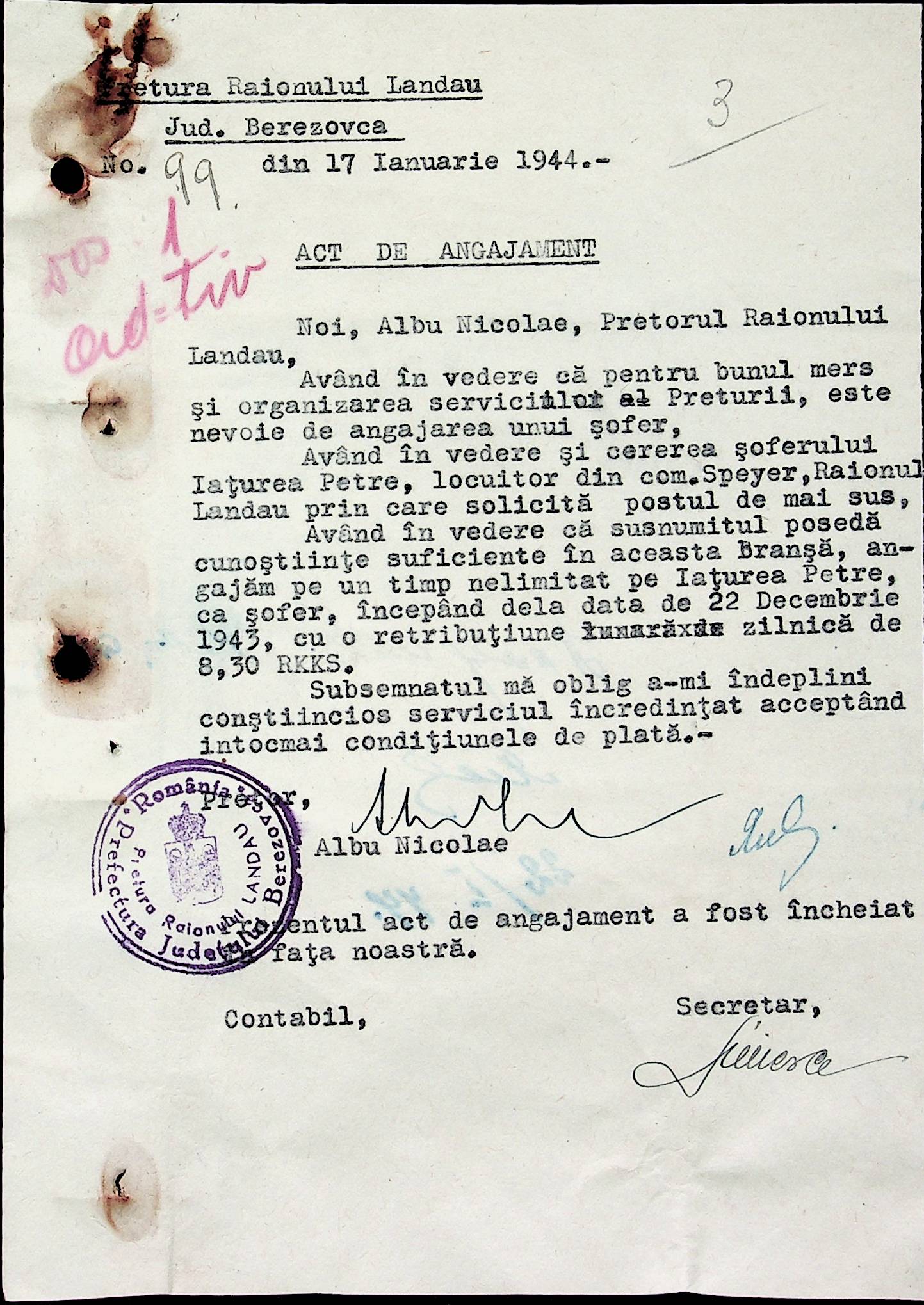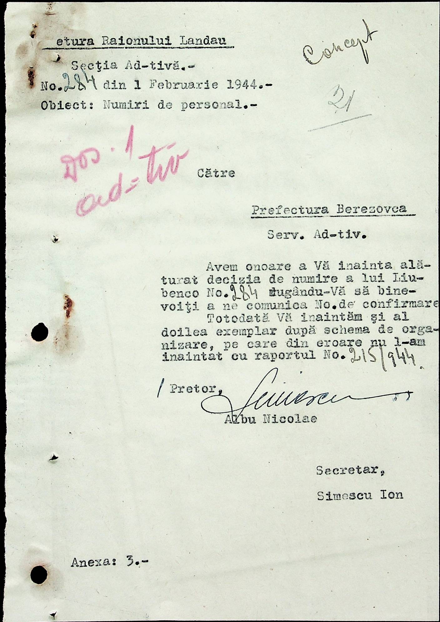 ◦ ◦ ◦ Опис № 3 справ постійного зберігання за 1941–1944 роки