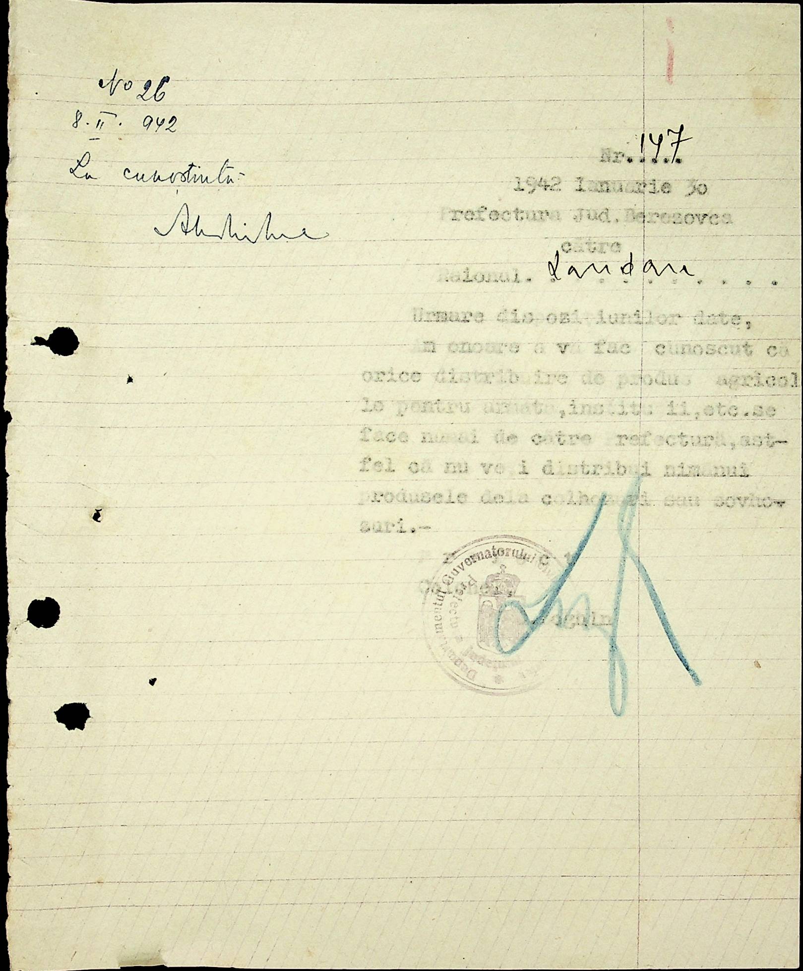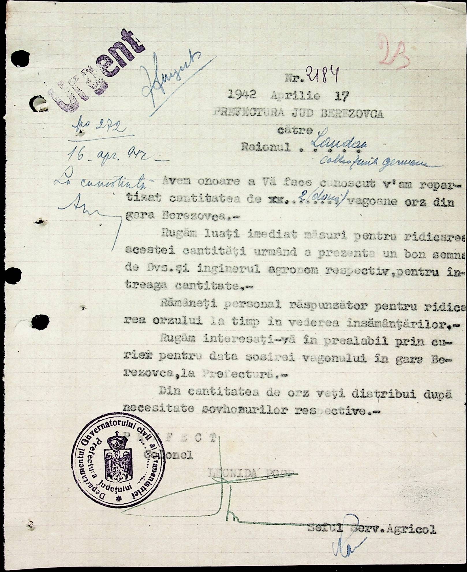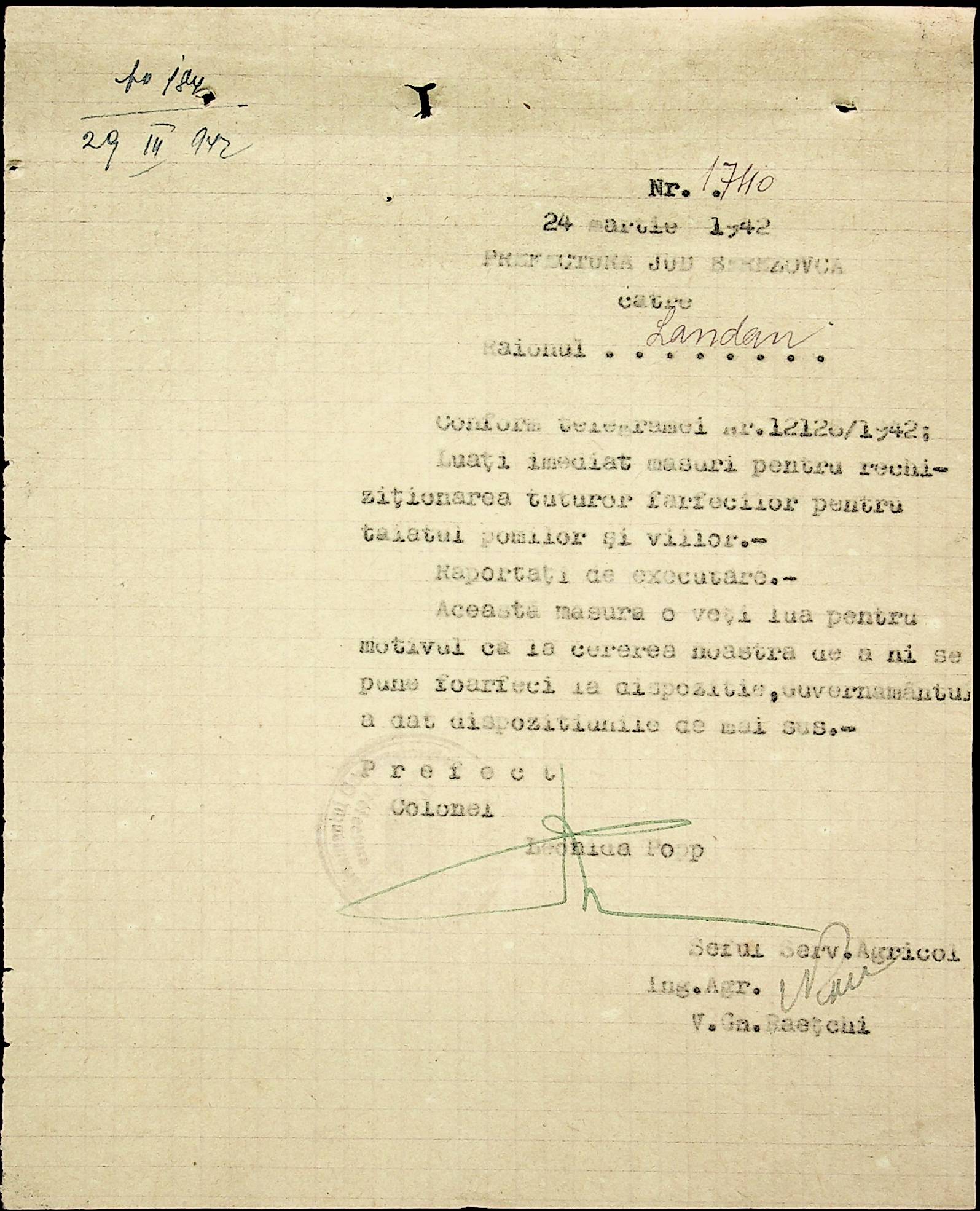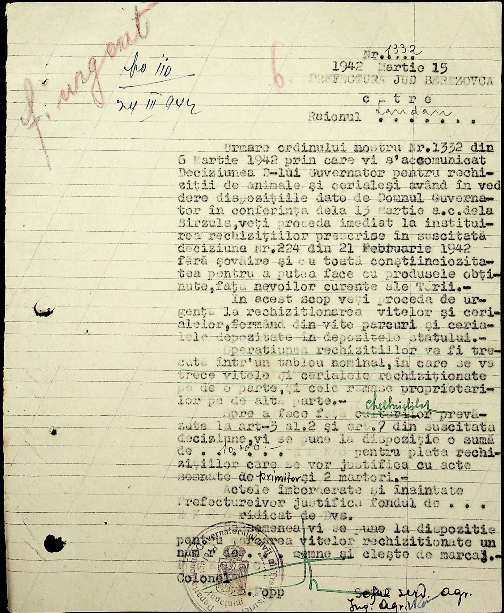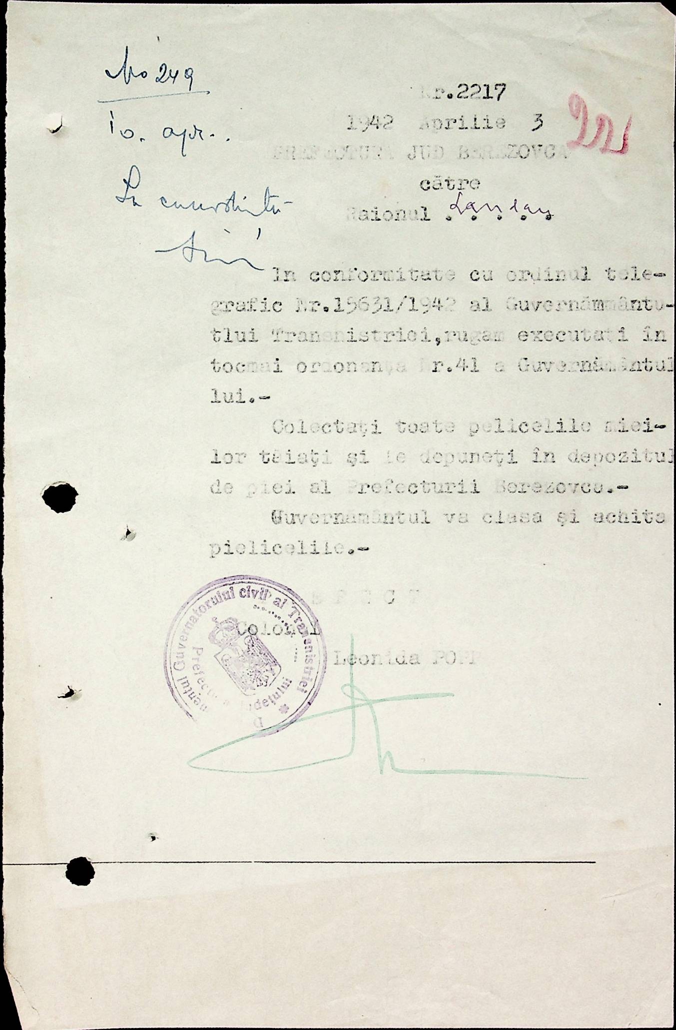 • • • • Справа № 40 Накази, постанови цивільного губернатора Трансністрії про облік та розподіл сільгосппродукції, встановлення цін, передачу вовни, що є на території Трансністрії у власність губернаторства, ремонт та відновлення реманенту сільськогосподарських общин, листування з префектурою Березівського повіту про видачу продуктів для німецько-румунської армії