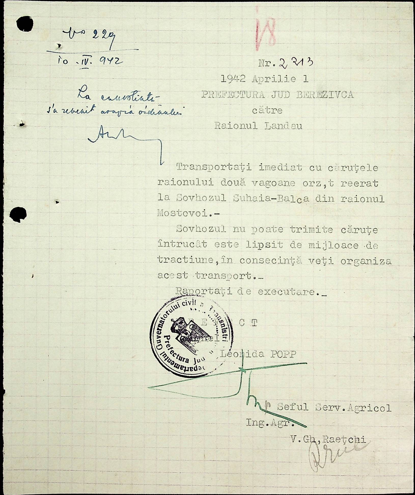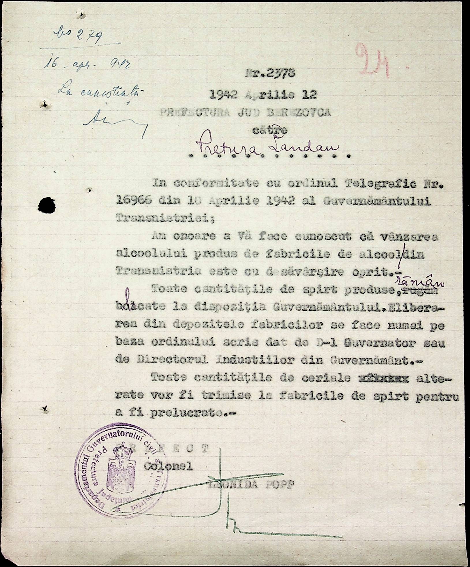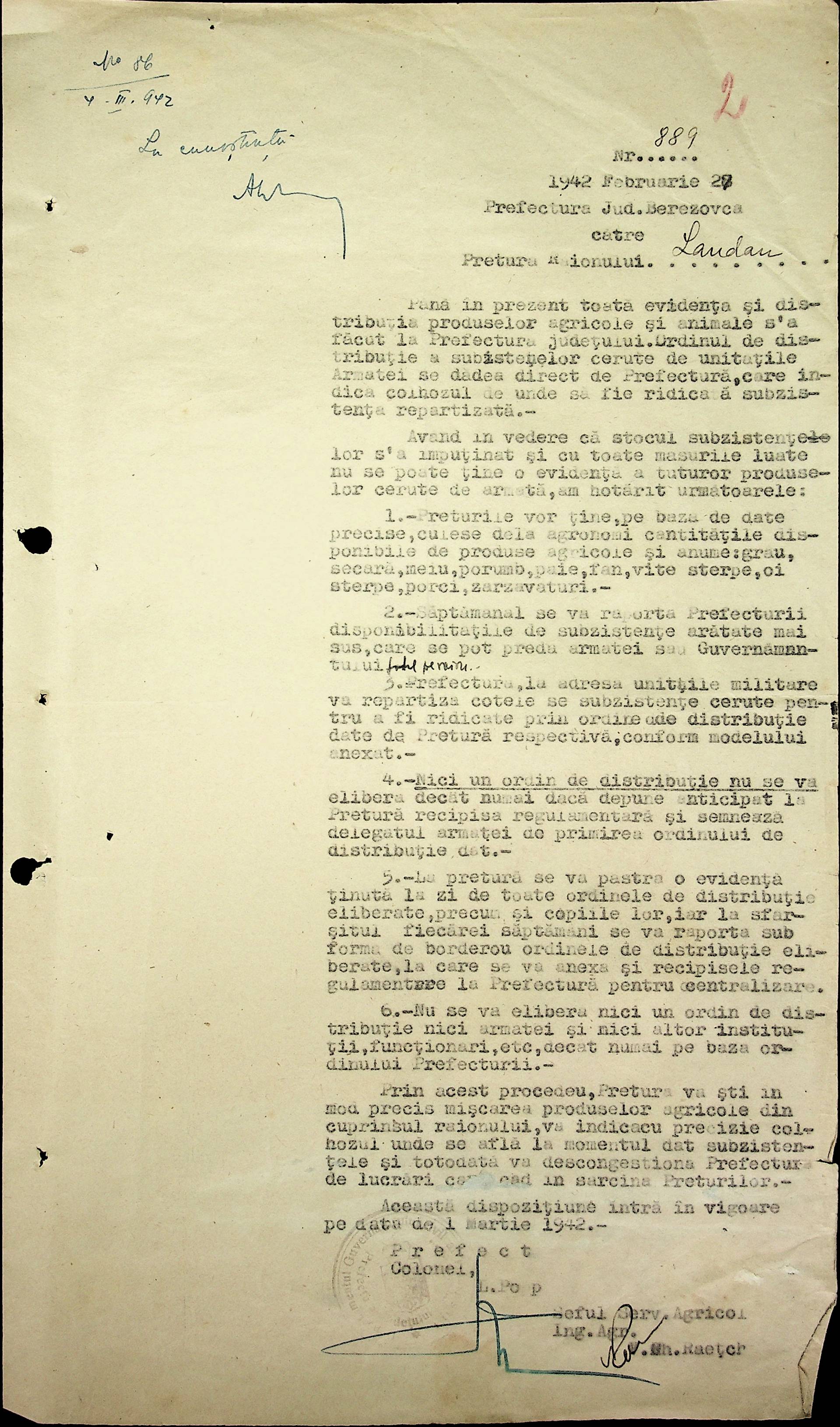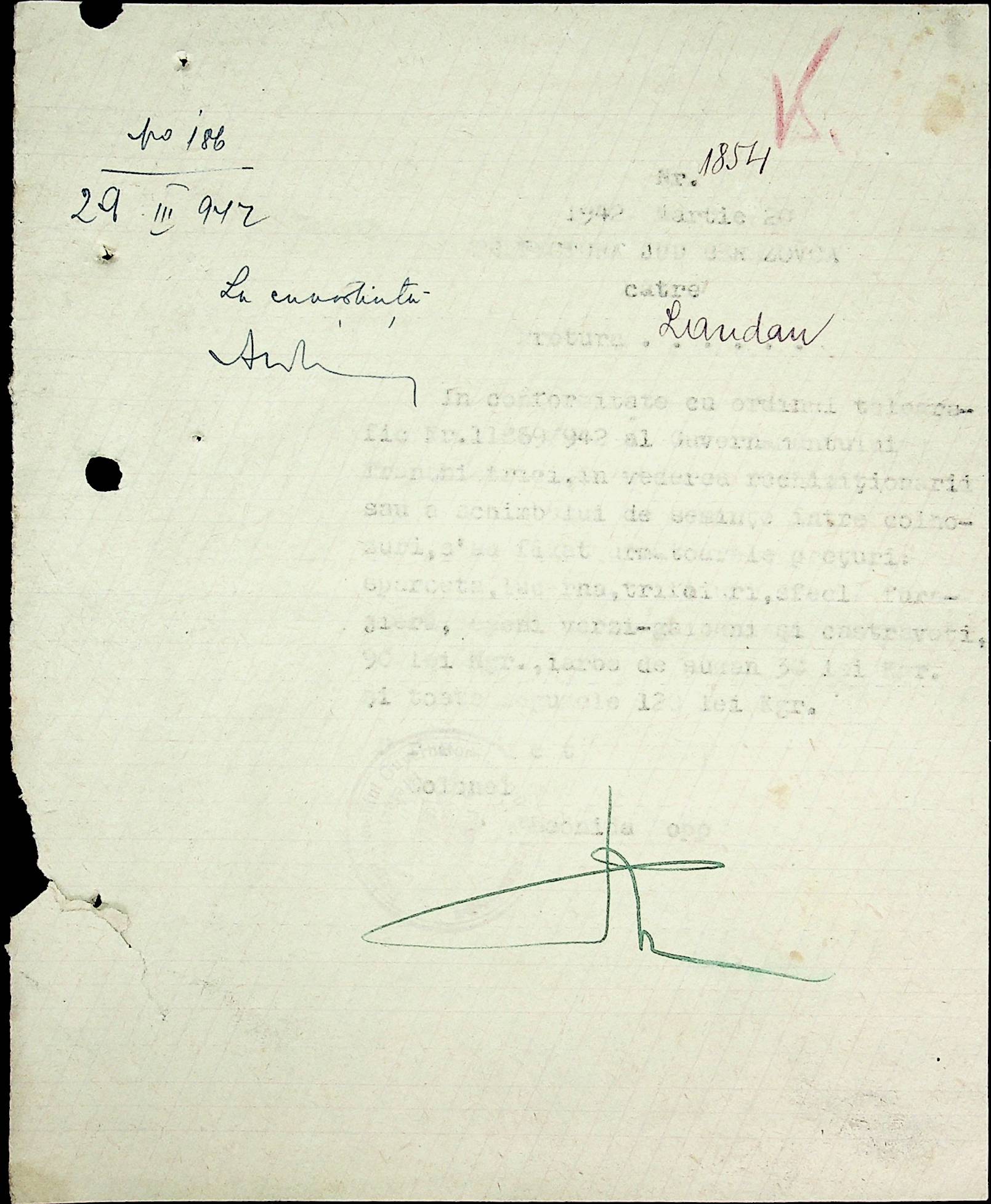 • • • • Справа № 40 Накази, постанови цивільного губернатора Трансністрії про облік та розподіл сільгосппродукції, встановлення цін, передачу вовни, що є на території Трансністрії у власність губернаторства, ремонт та відновлення реманенту сільськогосподарських общин, листування з префектурою Березівського повіту про видачу продуктів для німецько-румунської армії