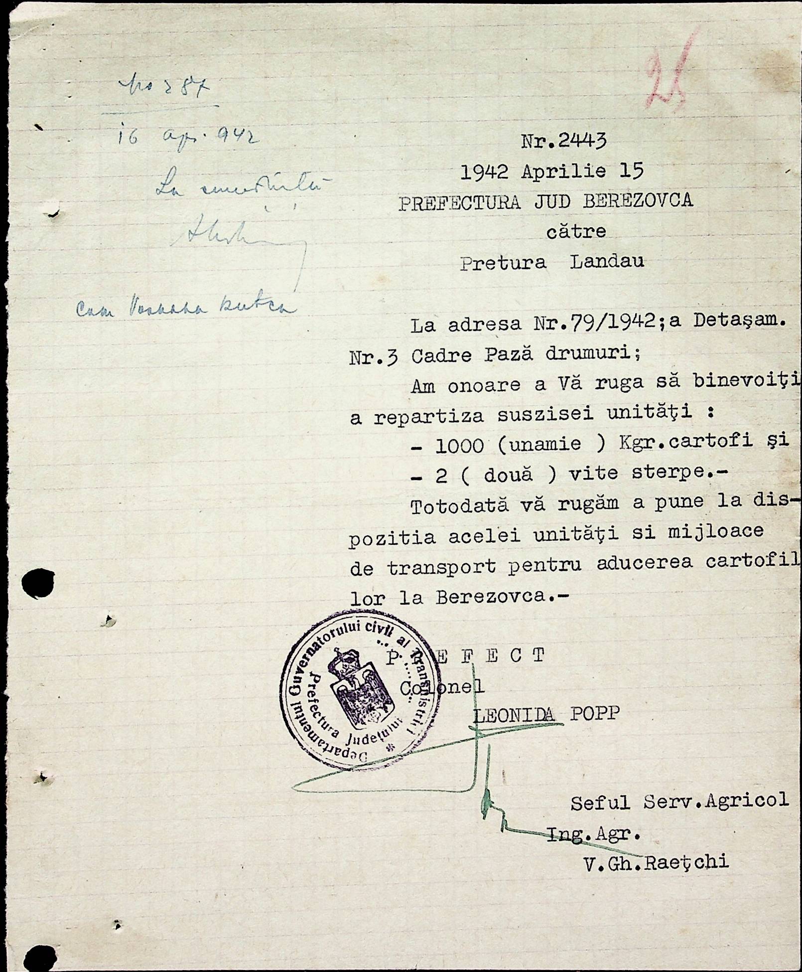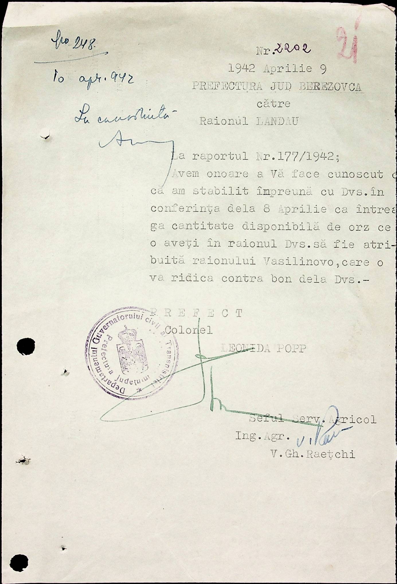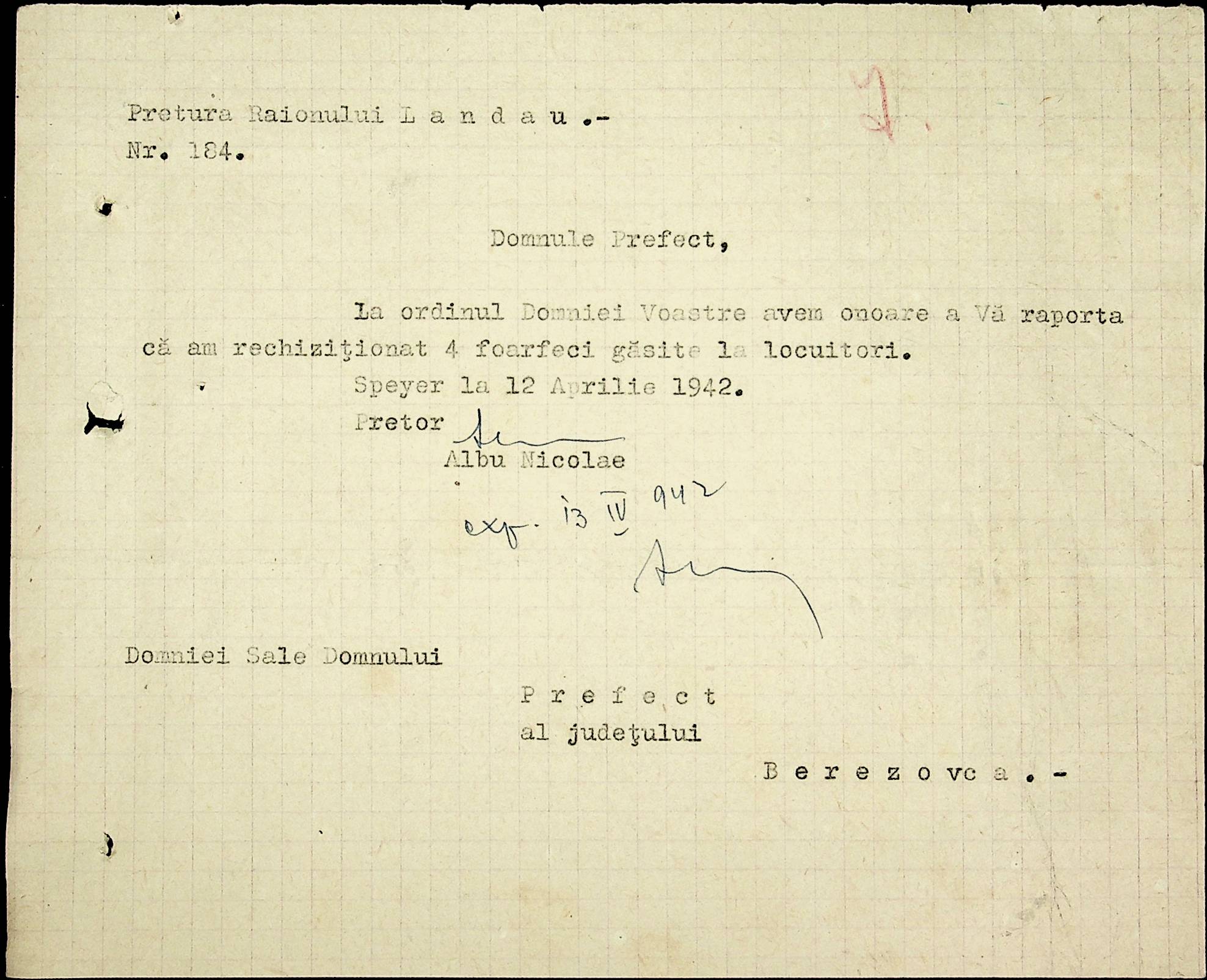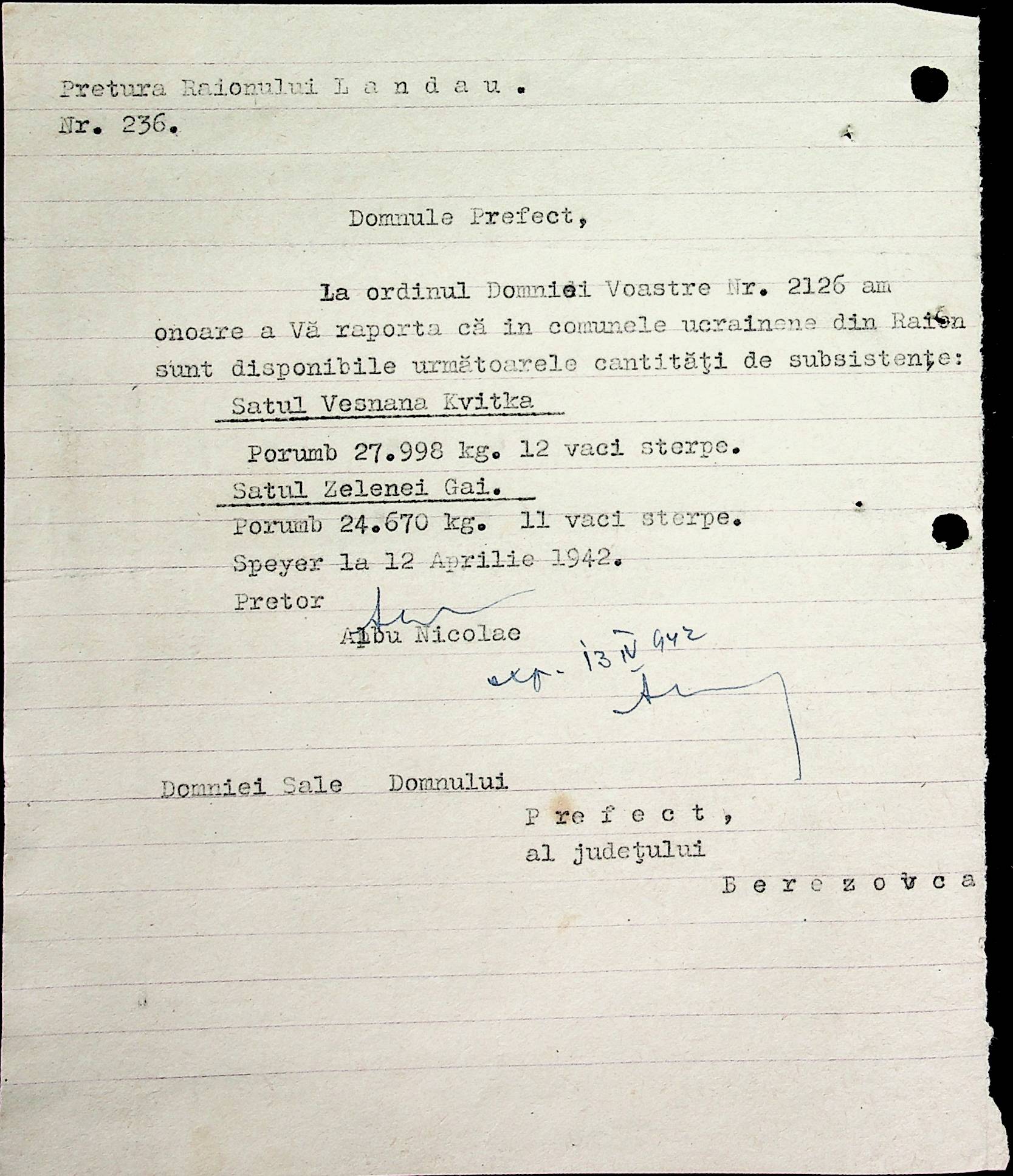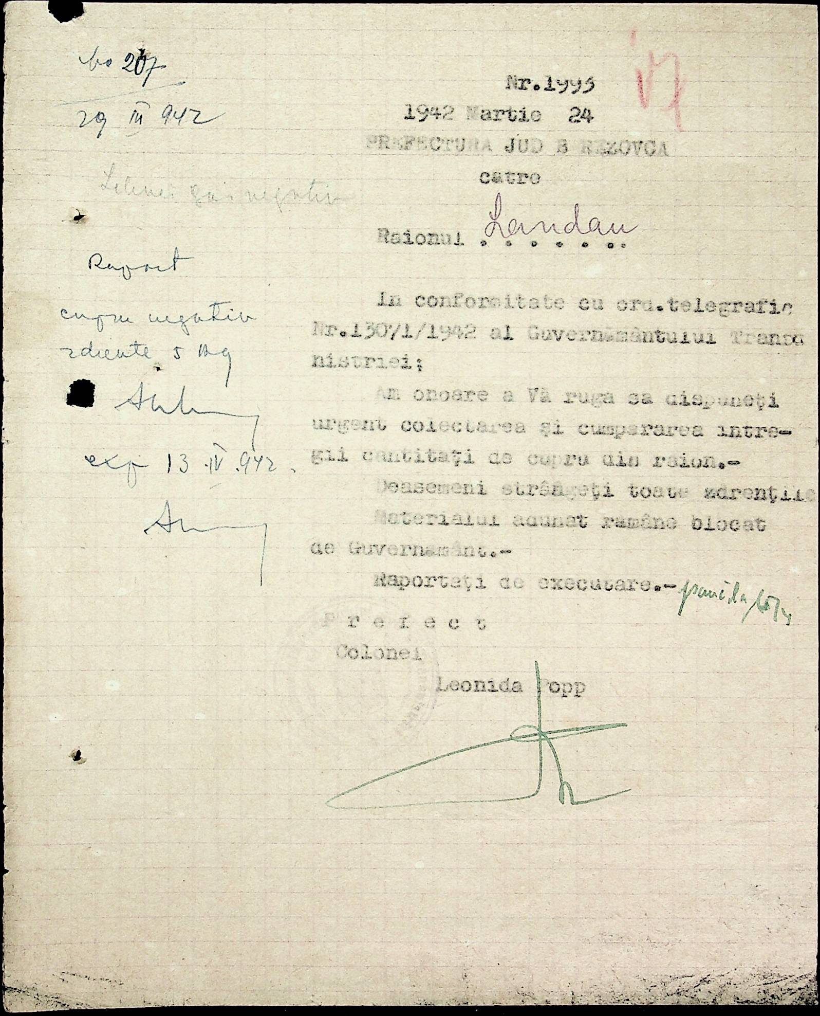 • • • • Справа № 40 Накази, постанови цивільного губернатора Трансністрії про облік та розподіл сільгосппродукції, встановлення цін, передачу вовни, що є на території Трансністрії у власність губернаторства, ремонт та відновлення реманенту сільськогосподарських общин, листування з префектурою Березівського повіту про видачу продуктів для німецько-румунської армії