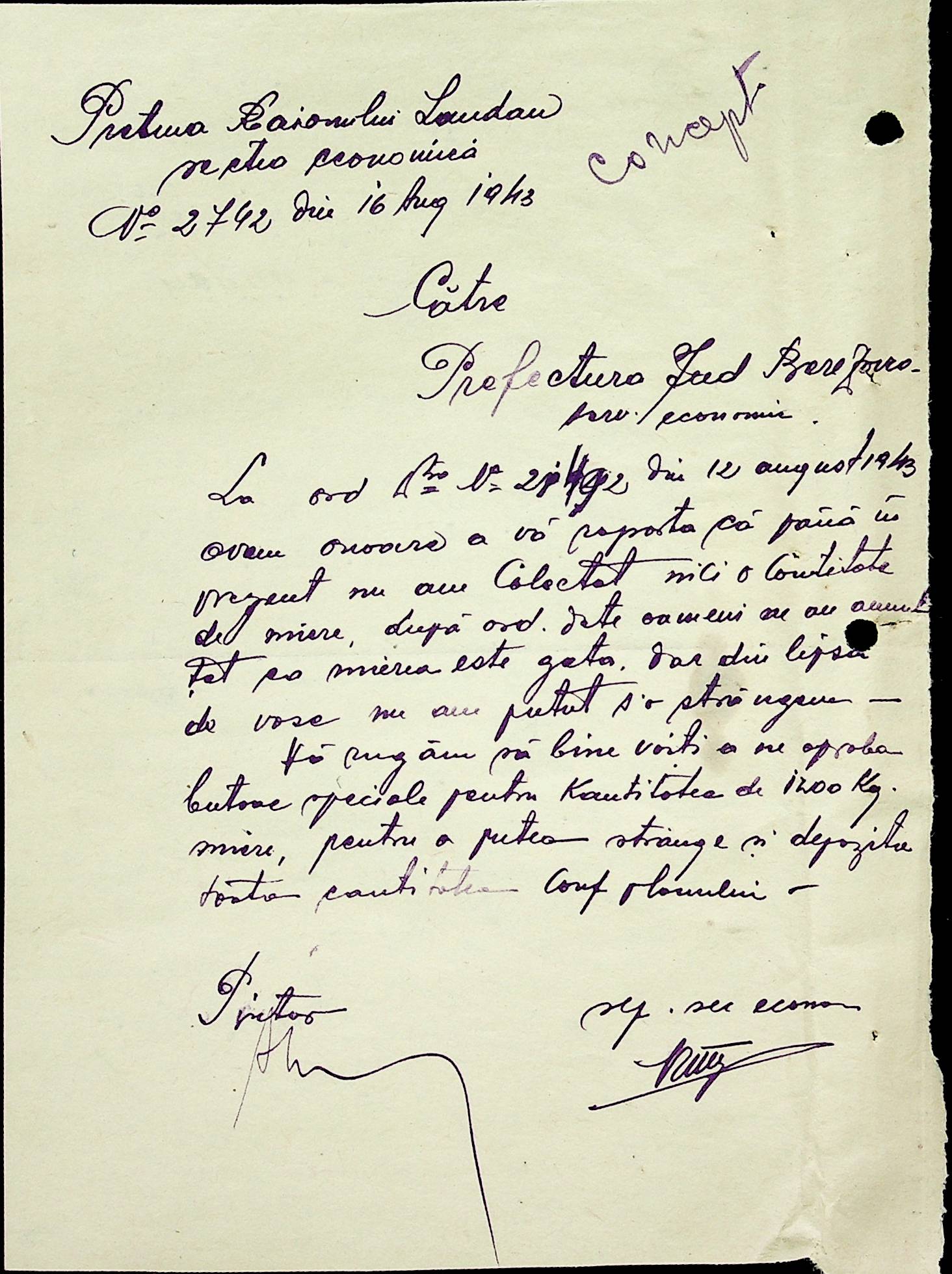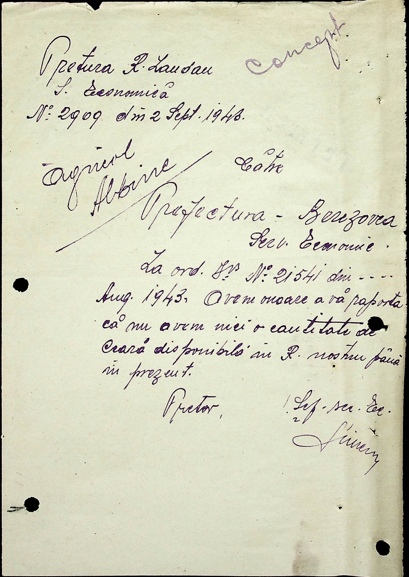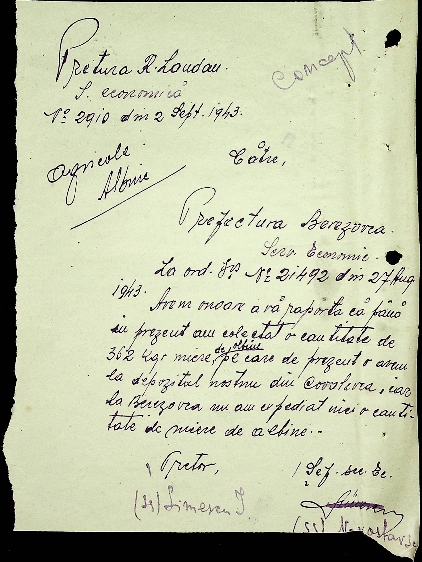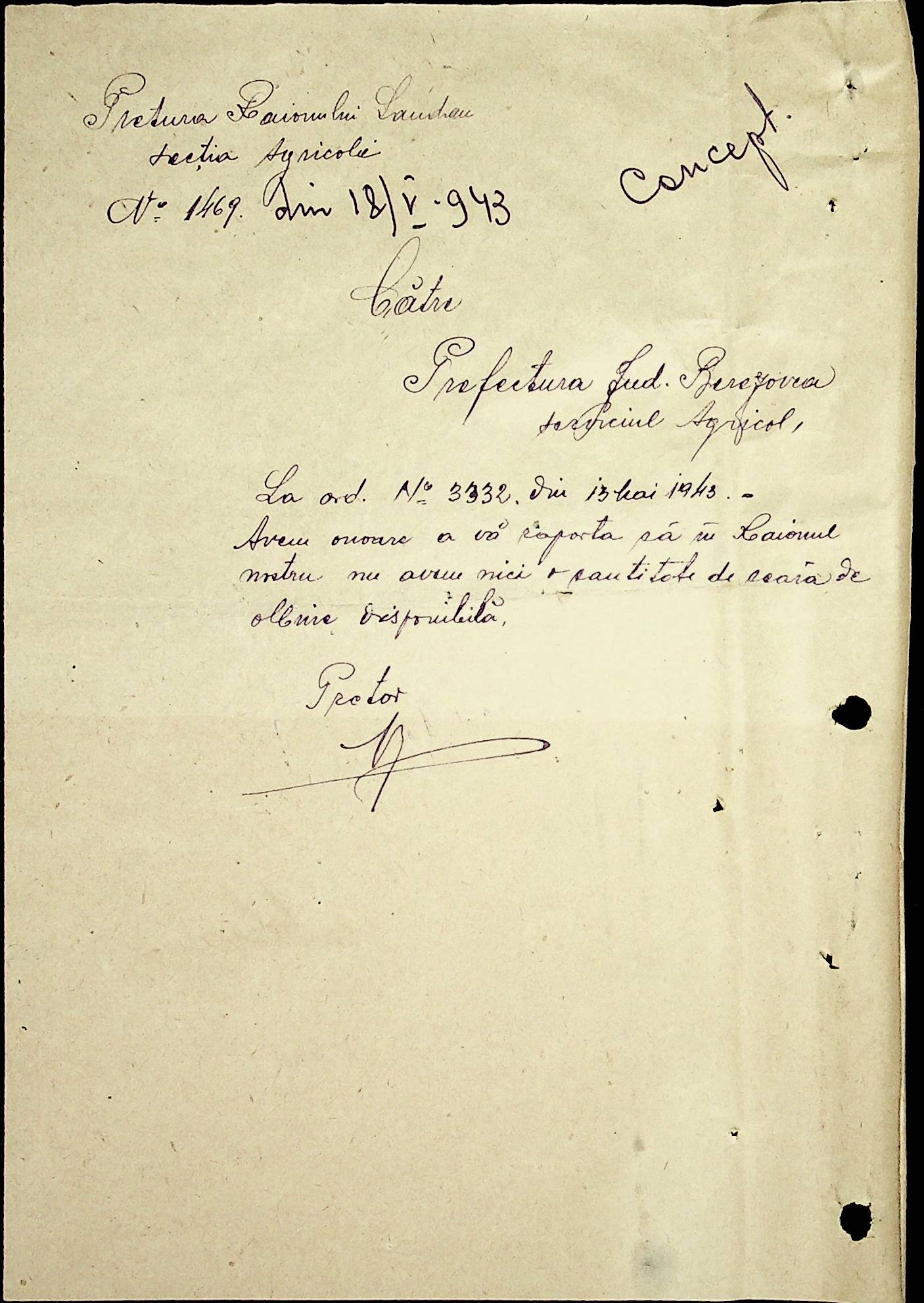 • • • • Справа № 44 Копія наказу цивільного губернатора Трансністрії про порядок підготовки і відправки вуликів в країну (Румунію) залізницею, листування з сільгоспслужбою префектури про видачу цукру для підживлення бджіл
