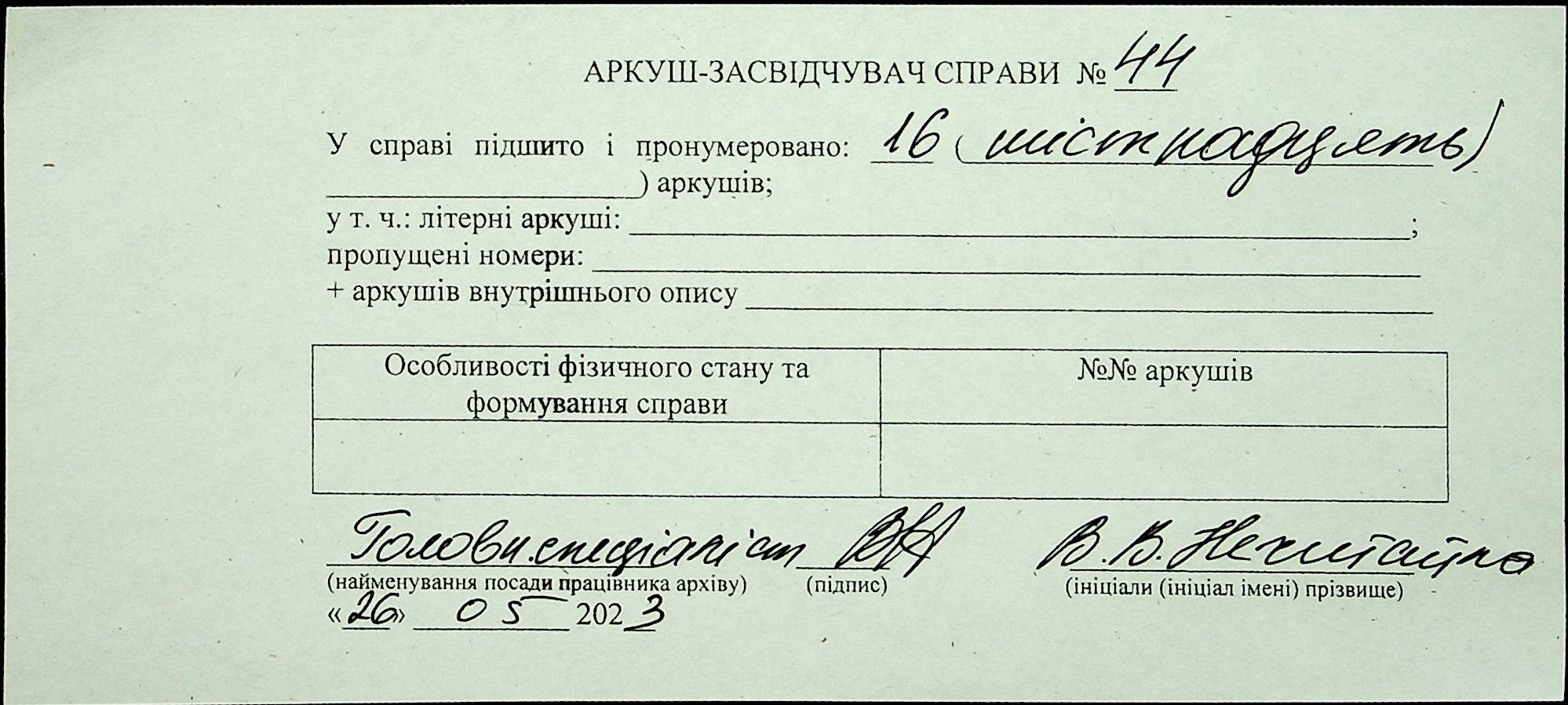 ◦ ◦ ◦ Опис № 3 справ постійного зберігання за 1941–1944 роки