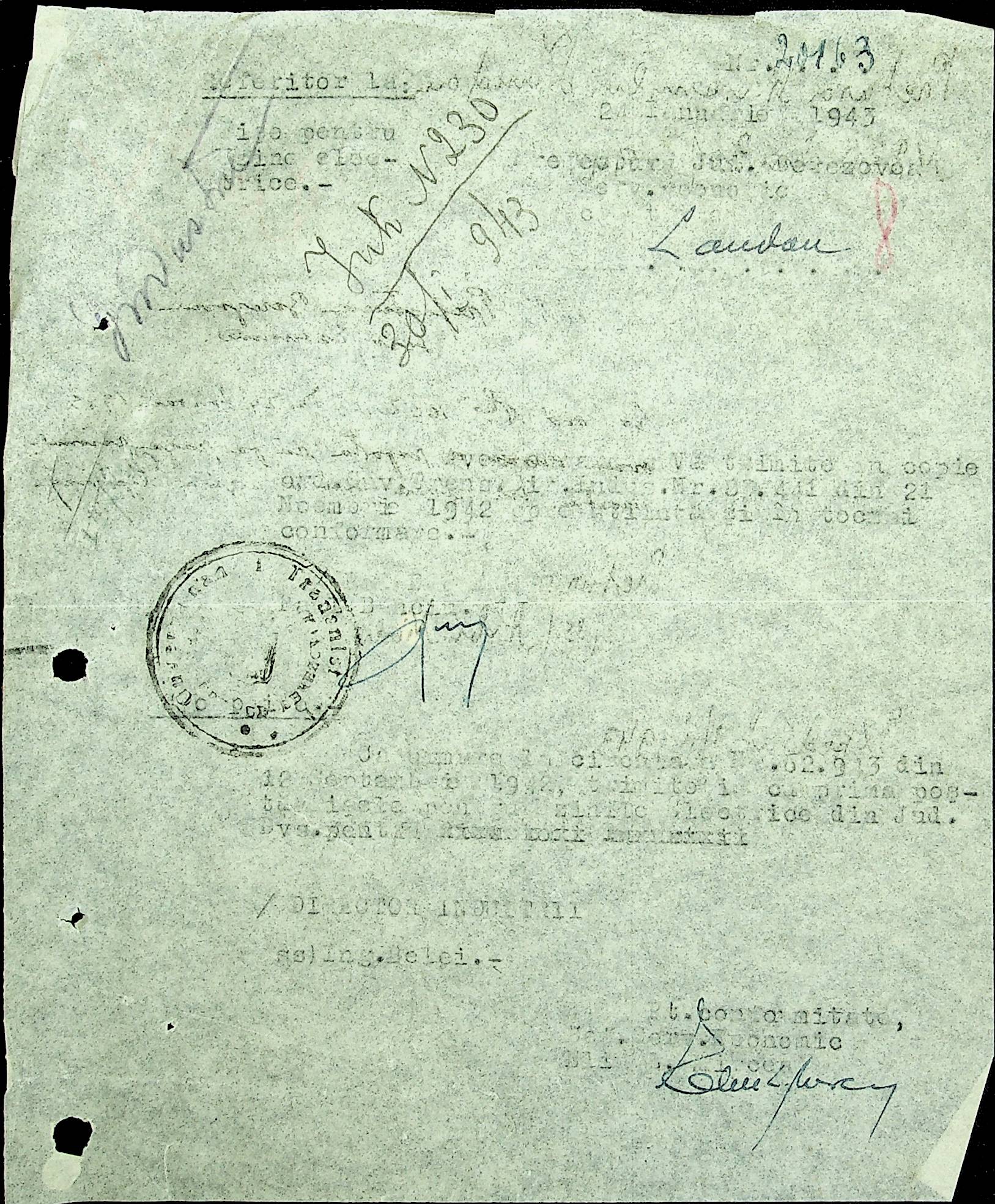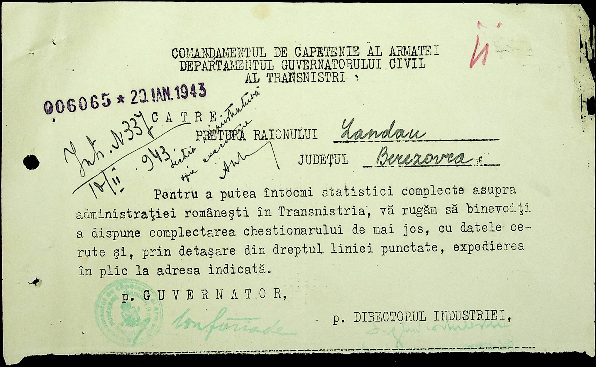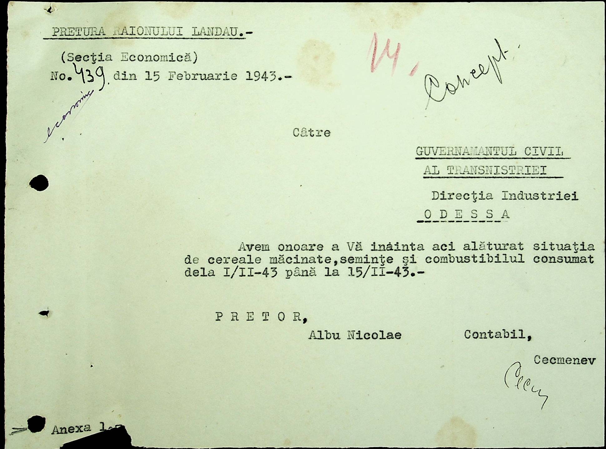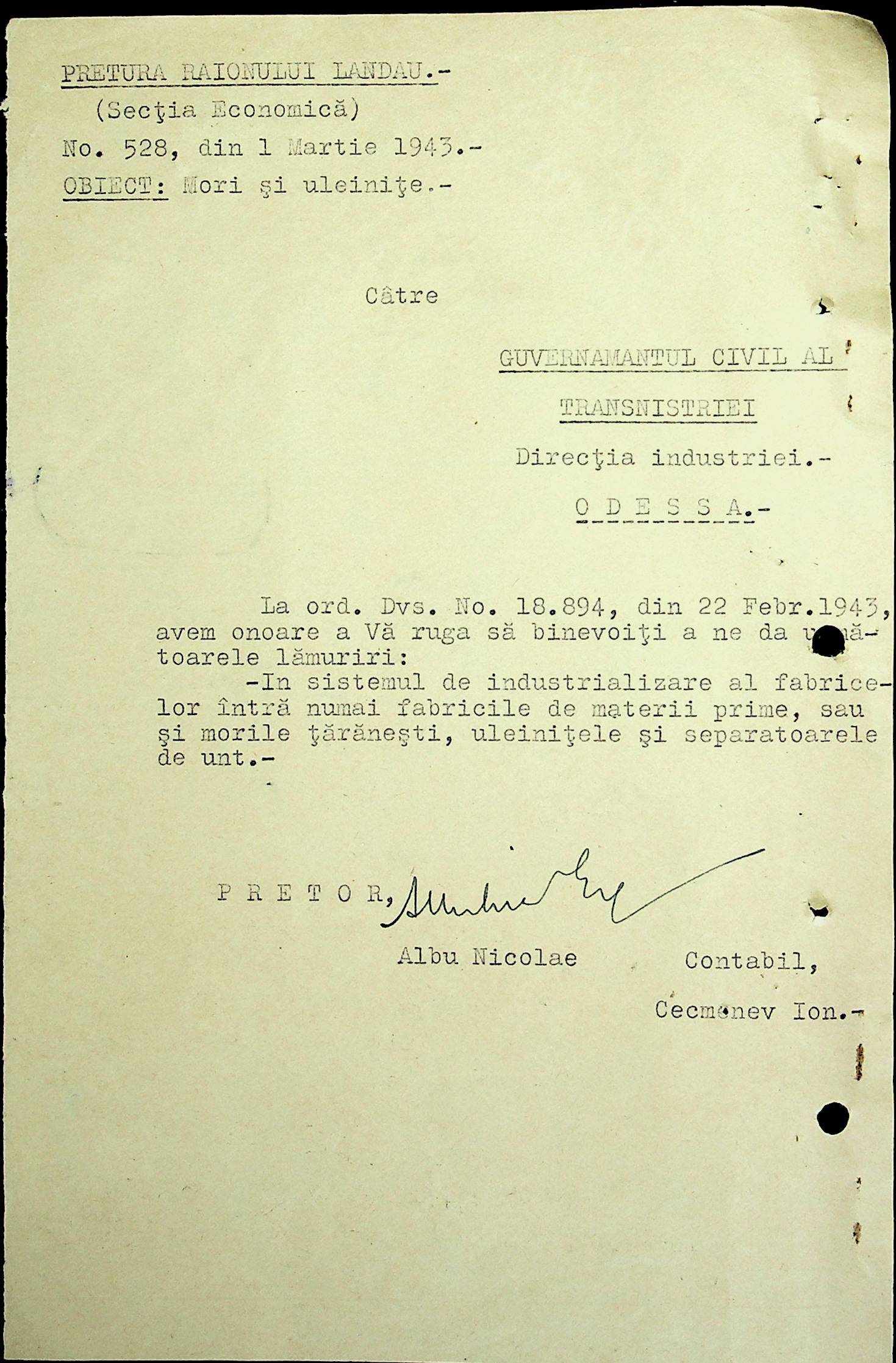• • • • Справа № 48 Копії постанов цивільного губернатора Трансністрії та претора Ландауського району, листування з економічним відділом префектури про наявність млинів і олійниць в районі, вилучення у мешканців району 50 % висівок після переробки зерна в фонд румунської влади