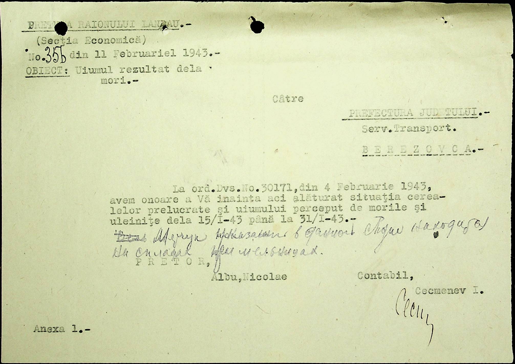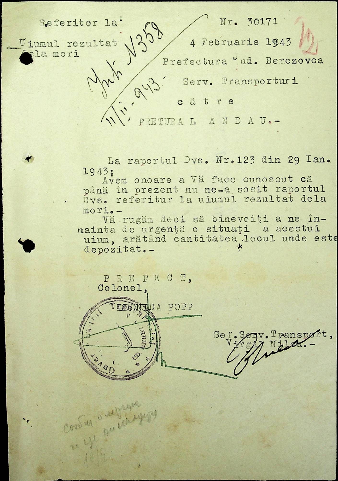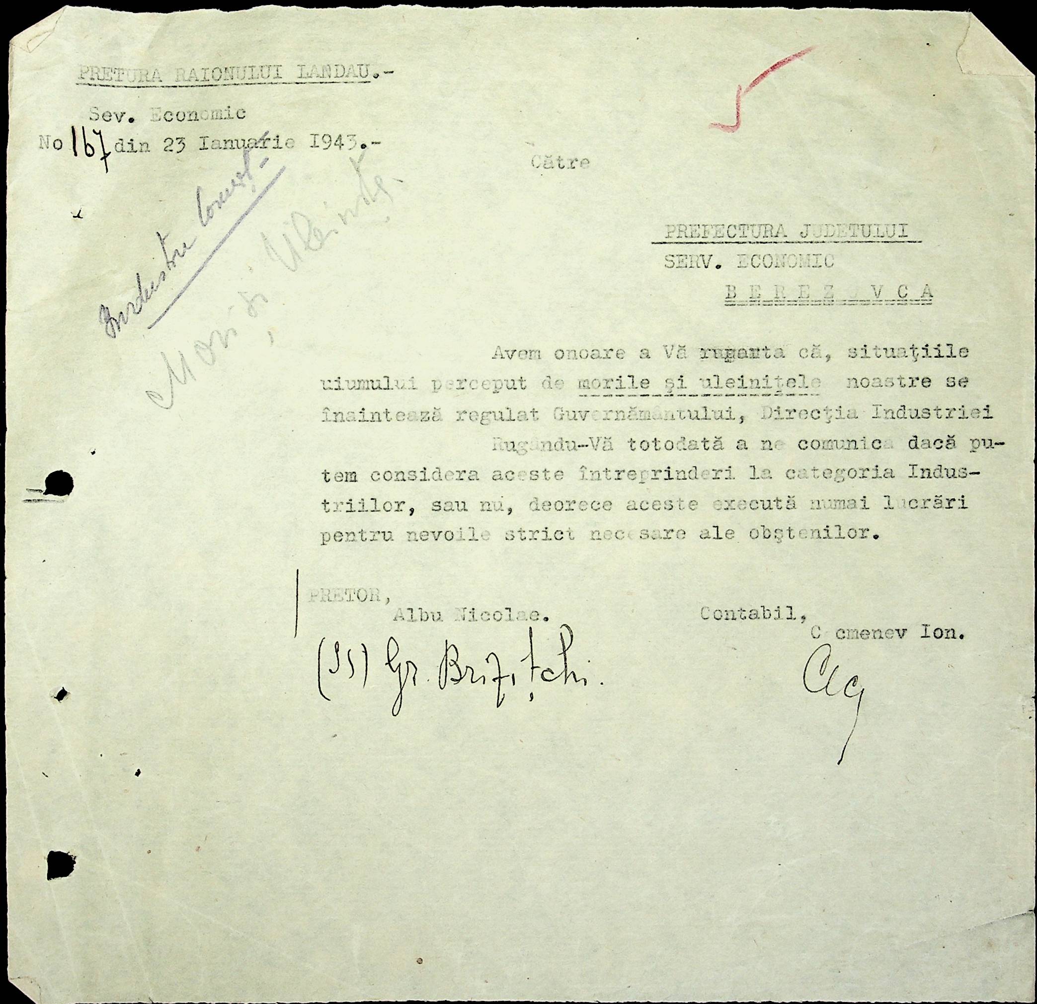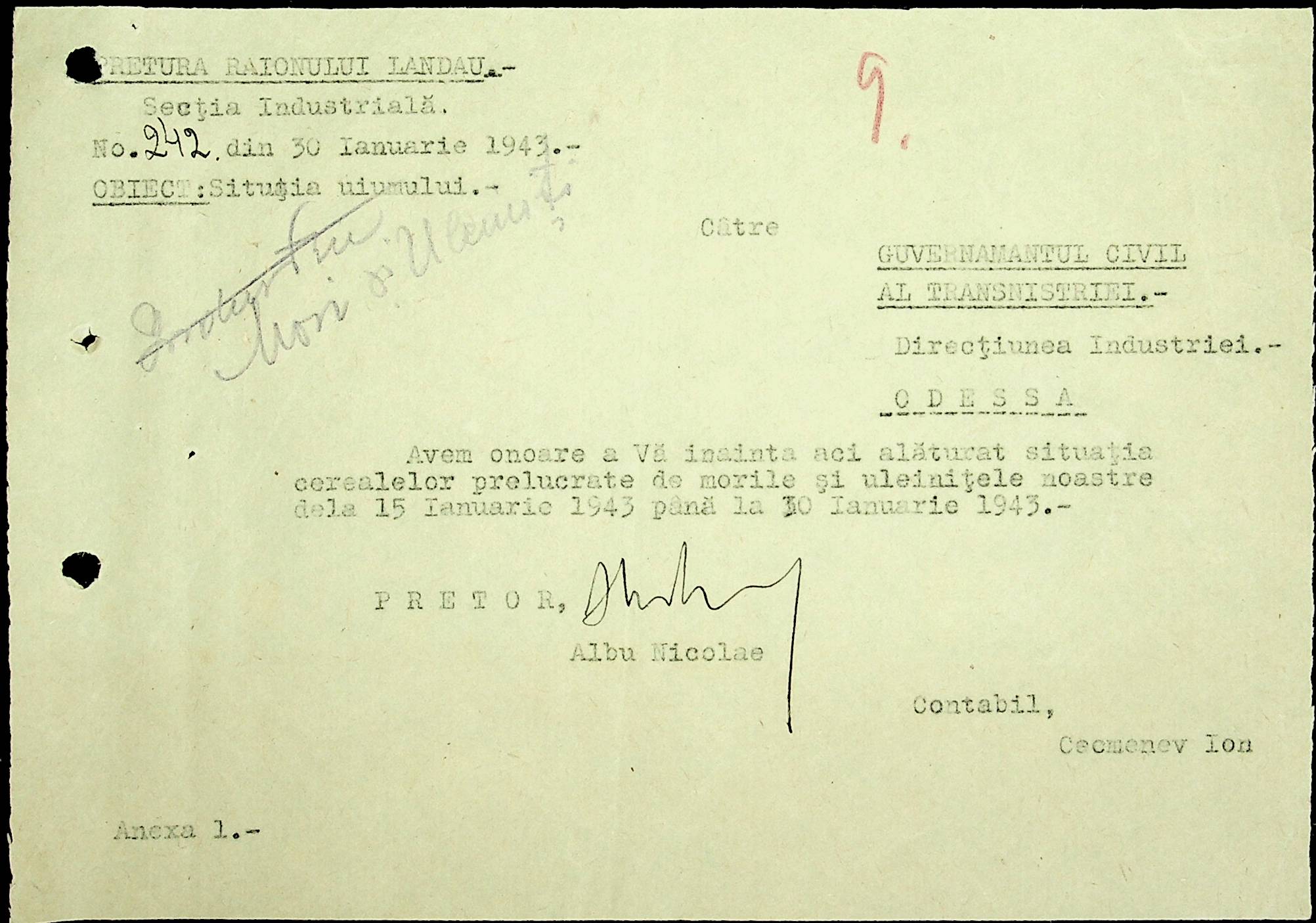 • • • • Справа № 48 Копії постанов цивільного губернатора Трансністрії та претора Ландауського району, листування з економічним відділом префектури про наявність млинів і олійниць в районі, вилучення у мешканців району 50 % висівок після переробки зерна в фонд румунської влади