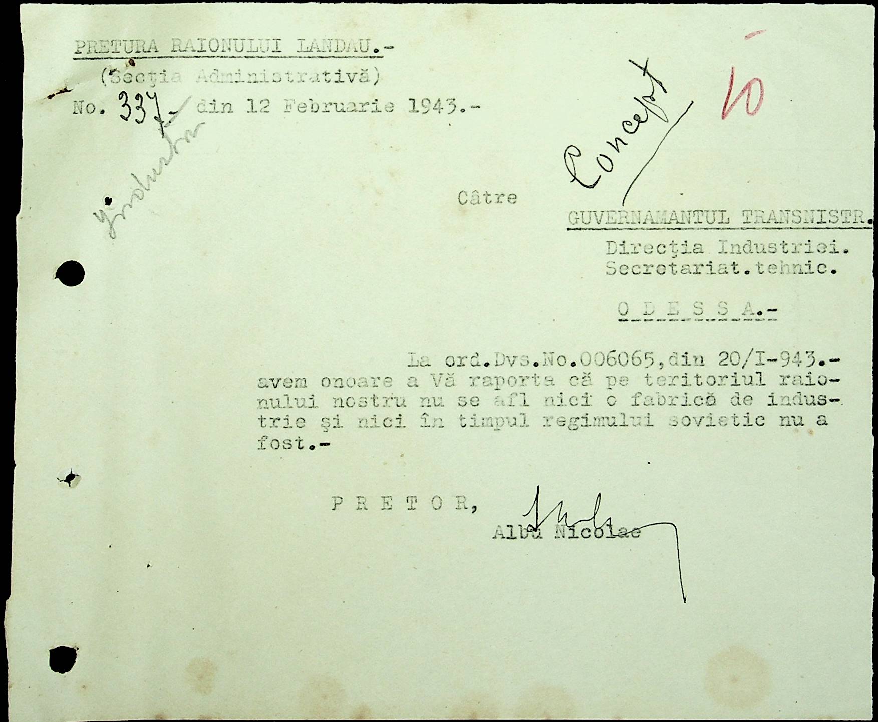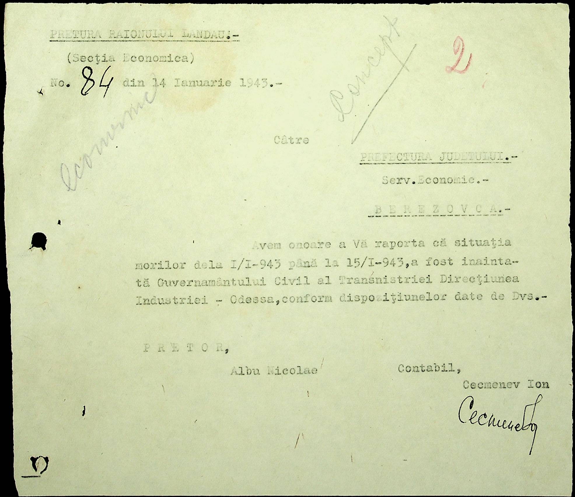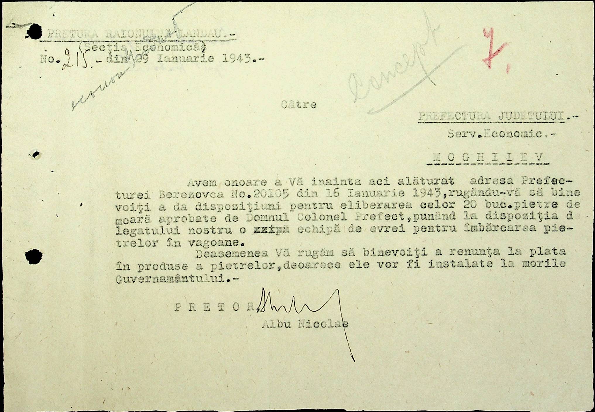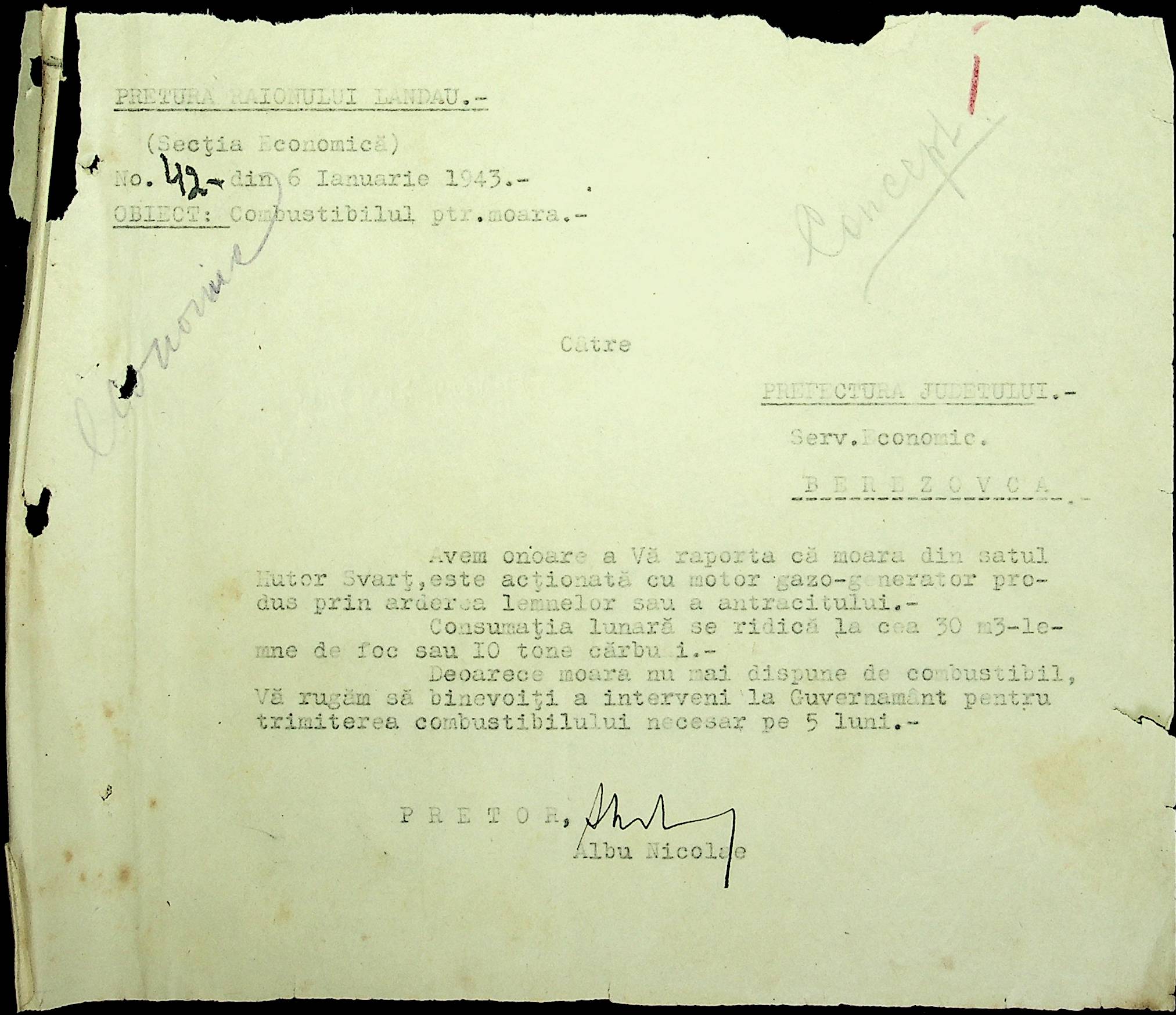• • • • Справа № 48 Копії постанов цивільного губернатора Трансністрії та претора Ландауського району, листування з економічним відділом префектури про наявність млинів і олійниць в районі, вилучення у мешканців району 50 % висівок після переробки зерна в фонд румунської влади