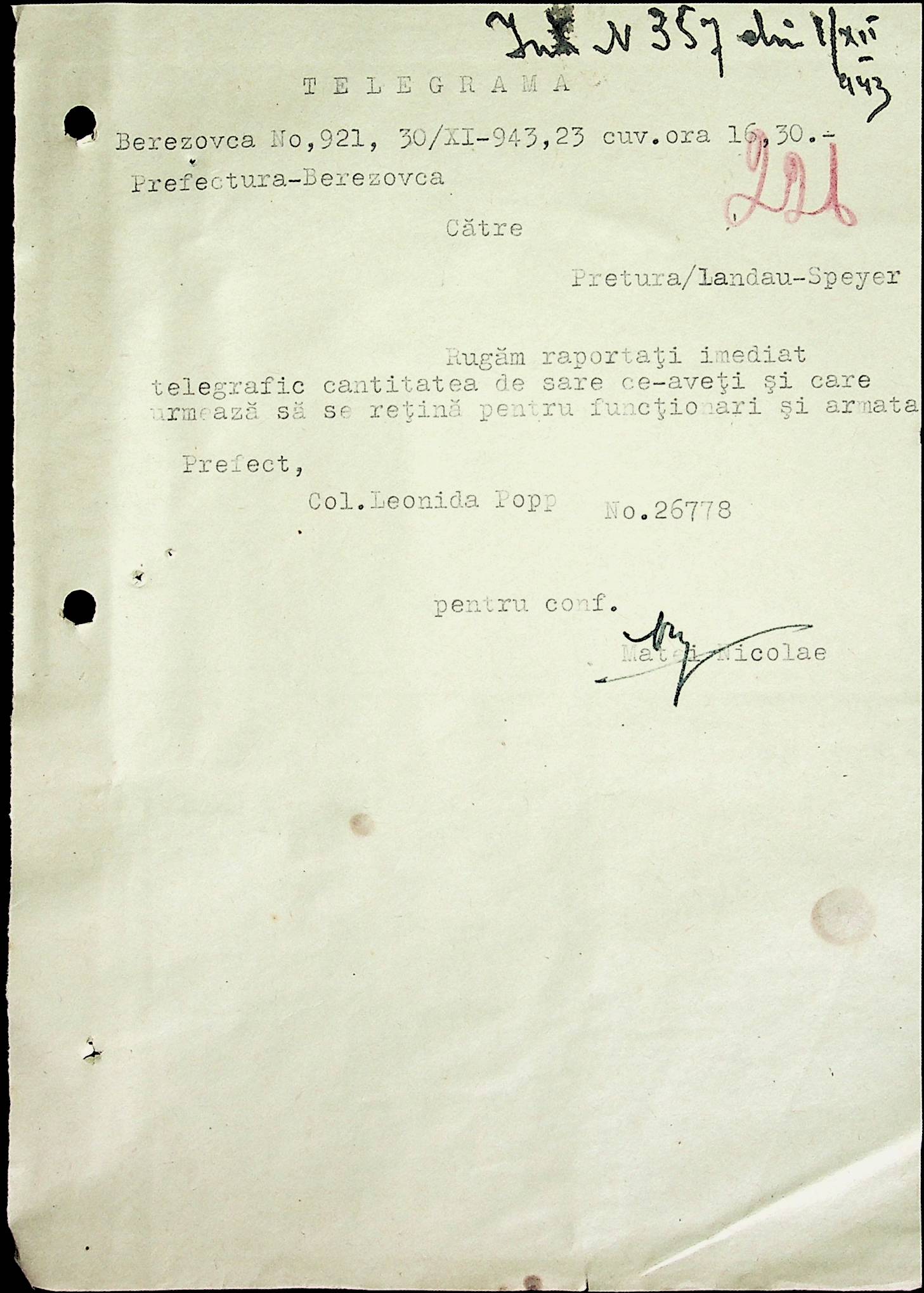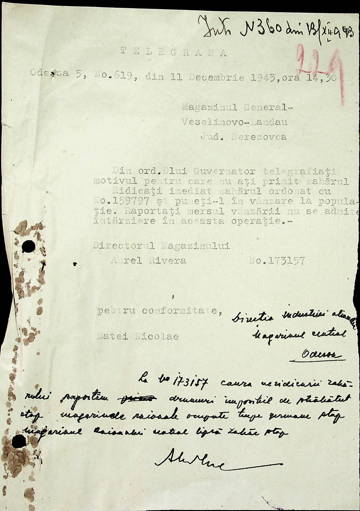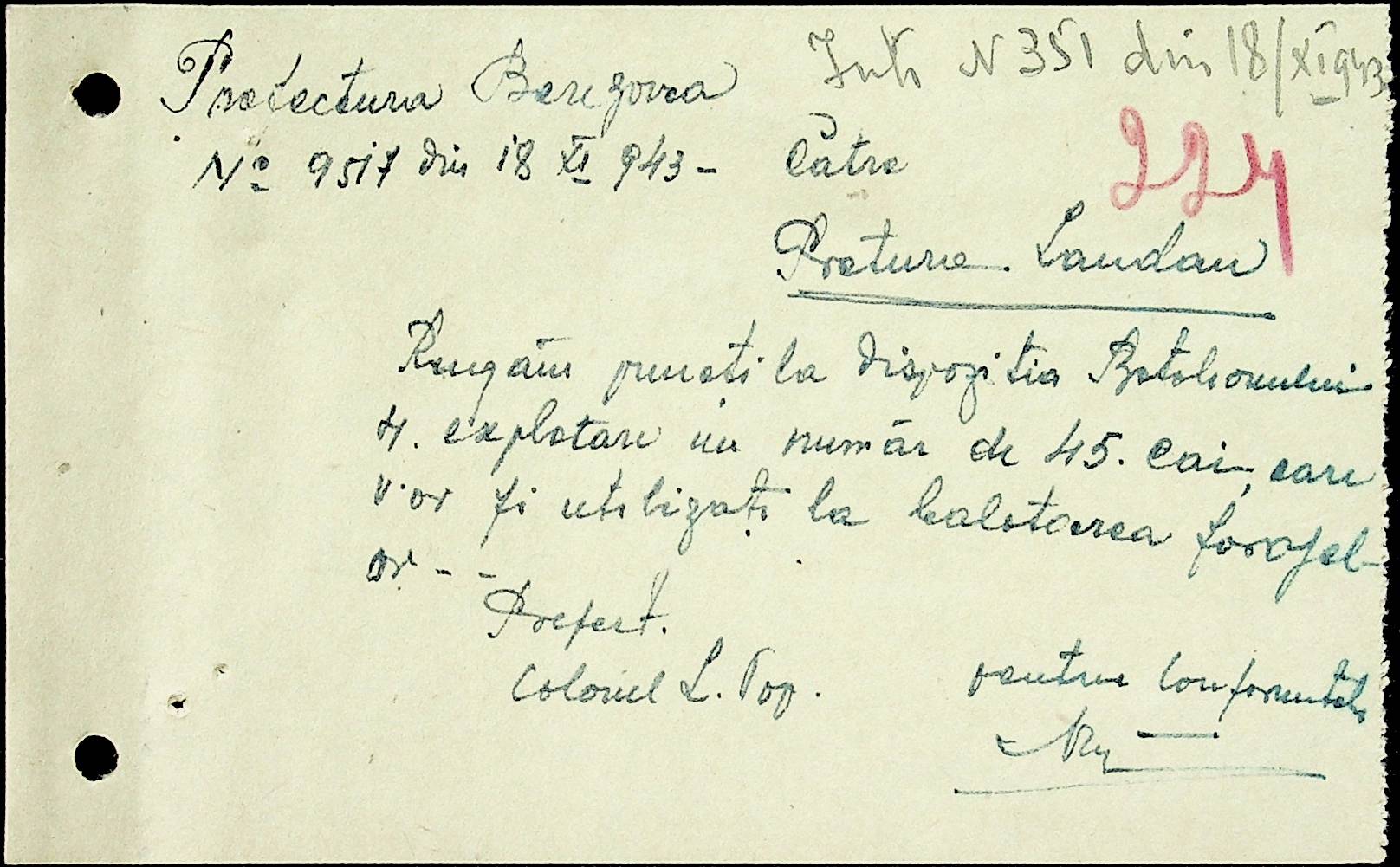 • • • • Справа № 52 Листування з префектурою Березівського повіту про відправку худоби в Румунію, надання інформації щодо наявності продуктів у районі