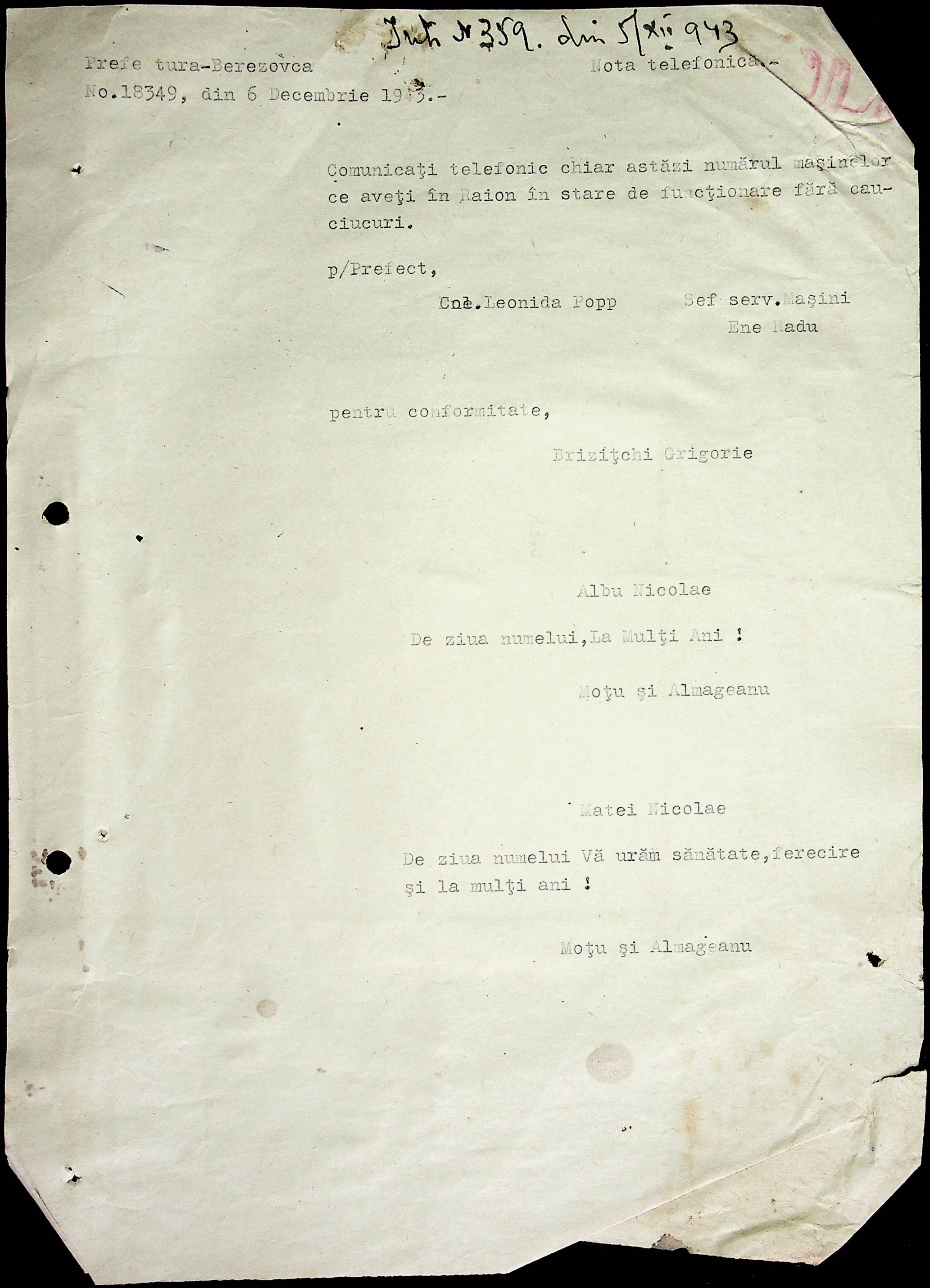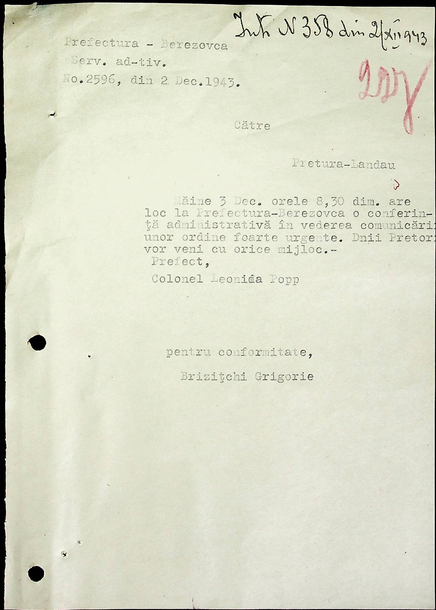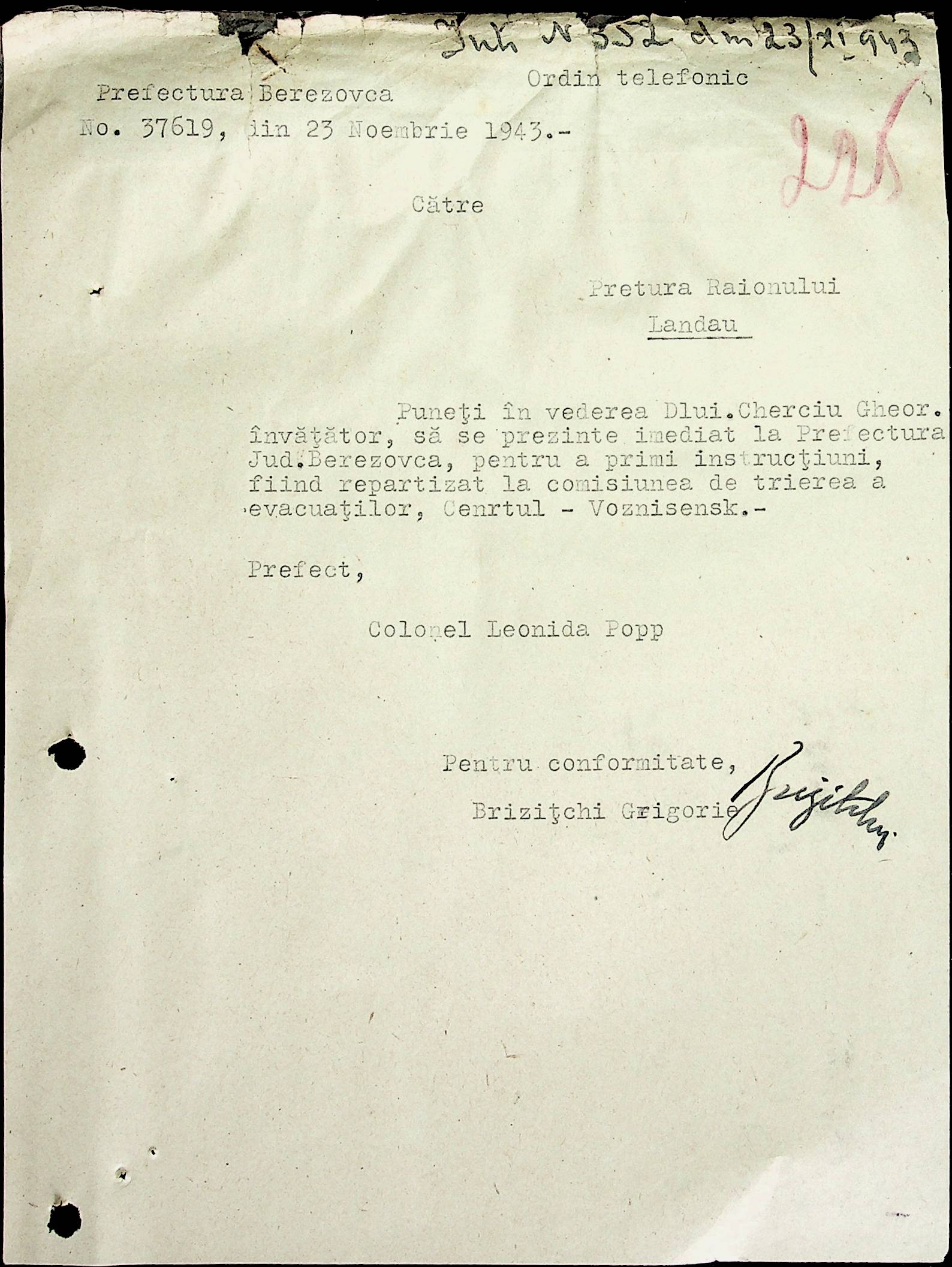 • • • • Справа № 52 Листування з префектурою Березівського повіту про відправку худоби в Румунію, надання інформації щодо наявності продуктів у районі