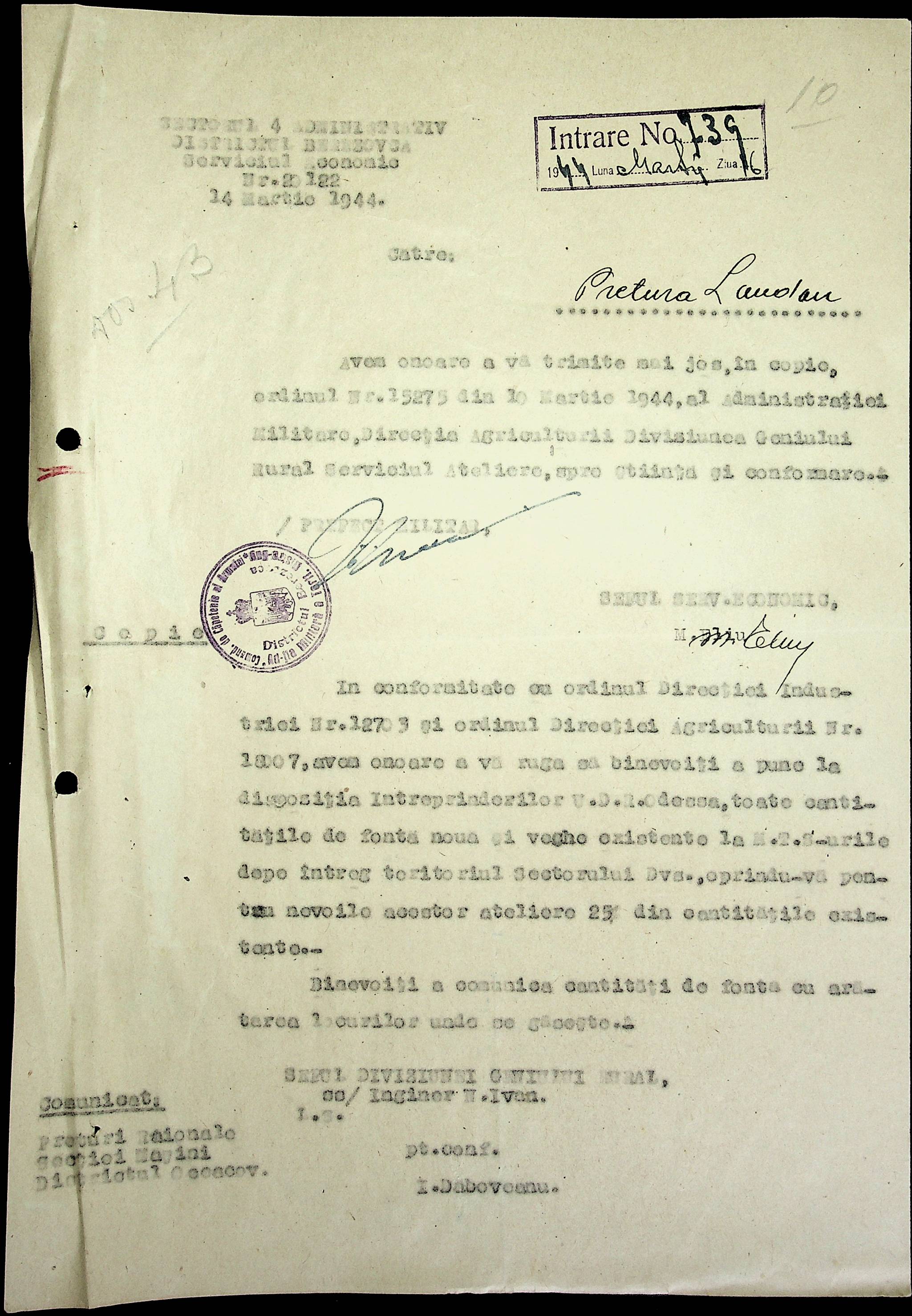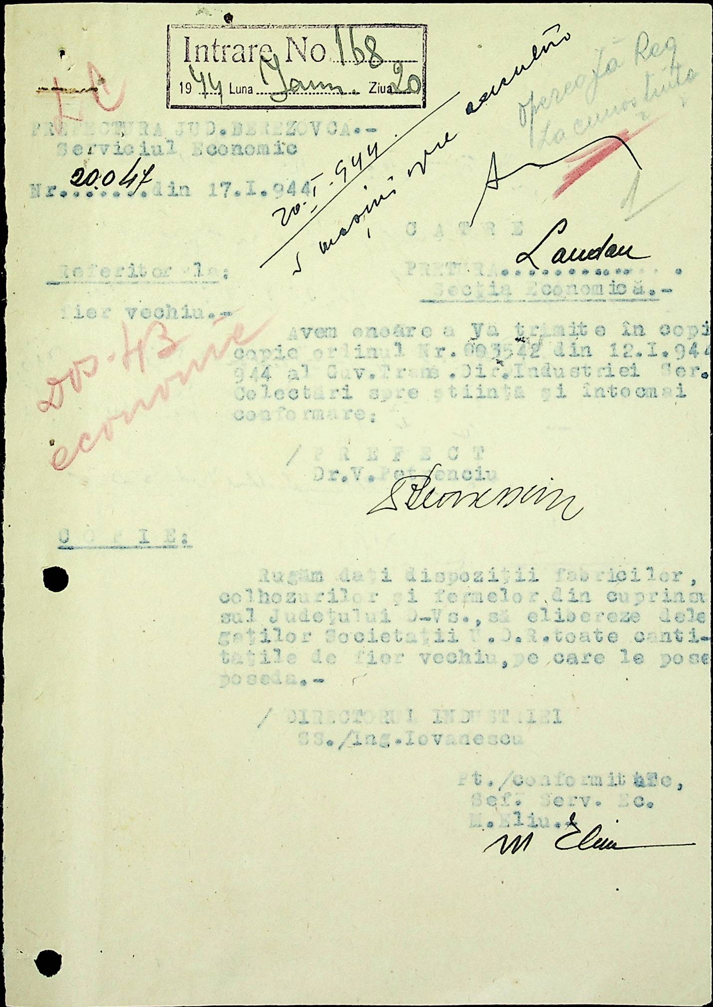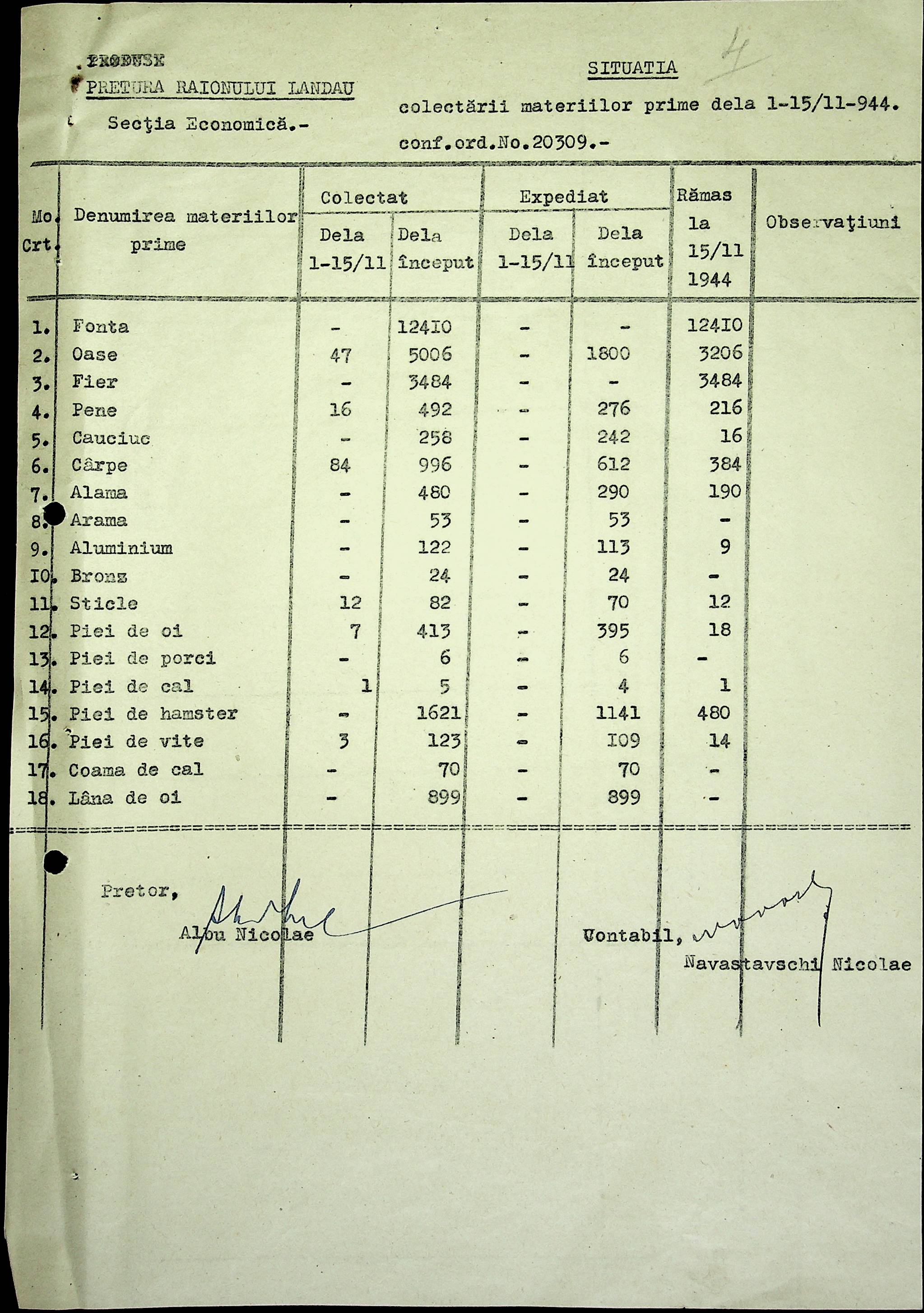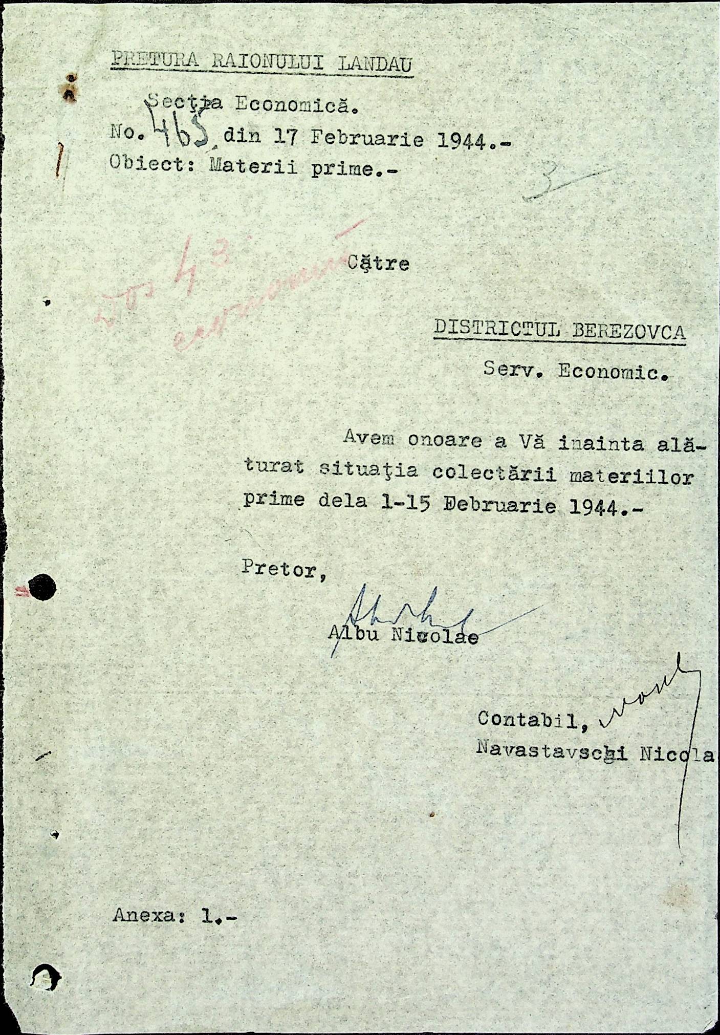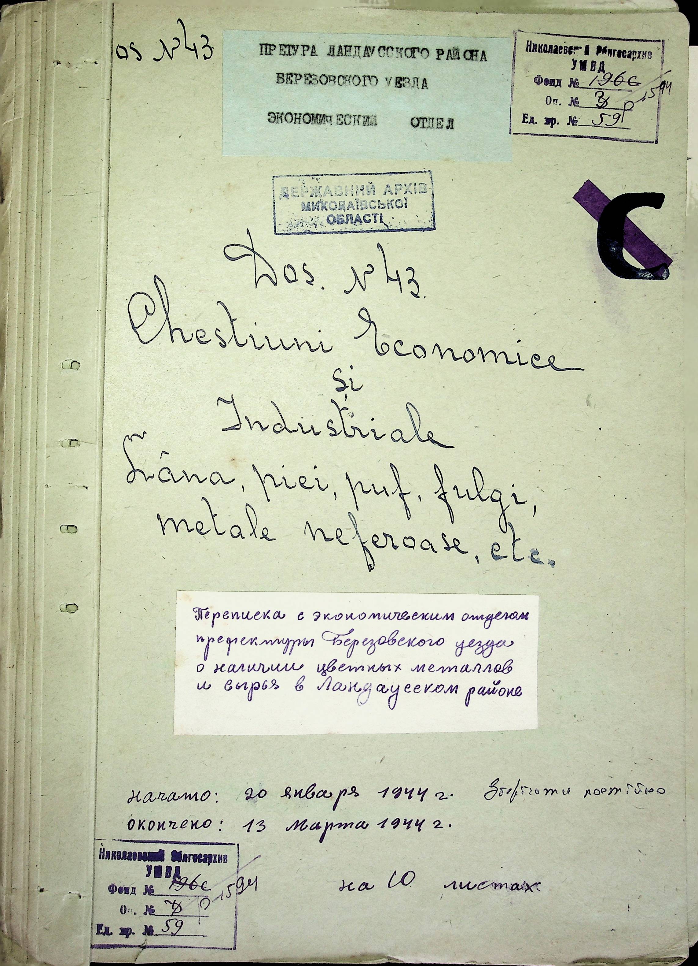 • • • • Справа № 59 Листування з економічним відділом префектури Березівського повіту про наявність кольорових металів, збір металобрухту і сировини в Ландауському районі; положення про збір сировини