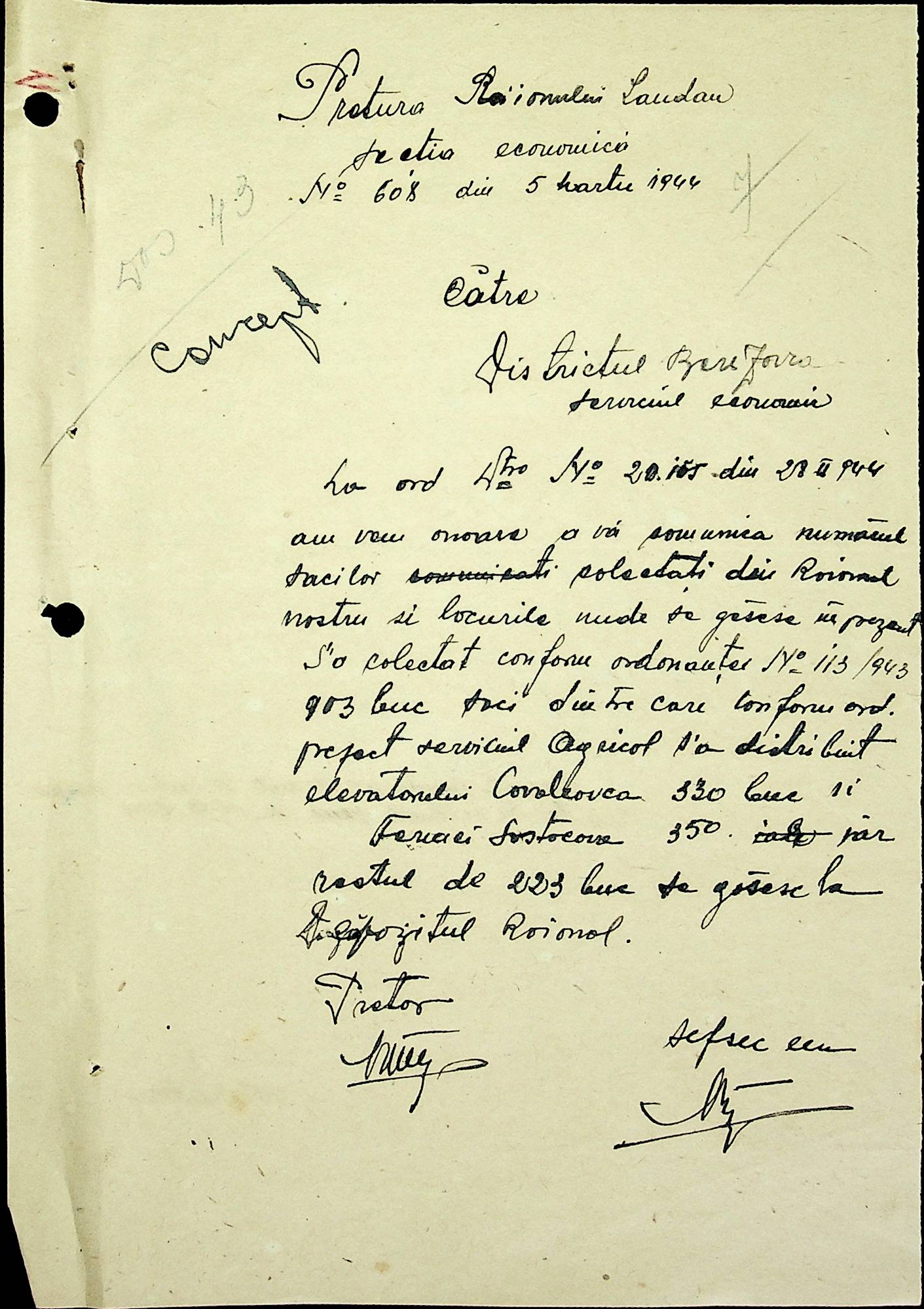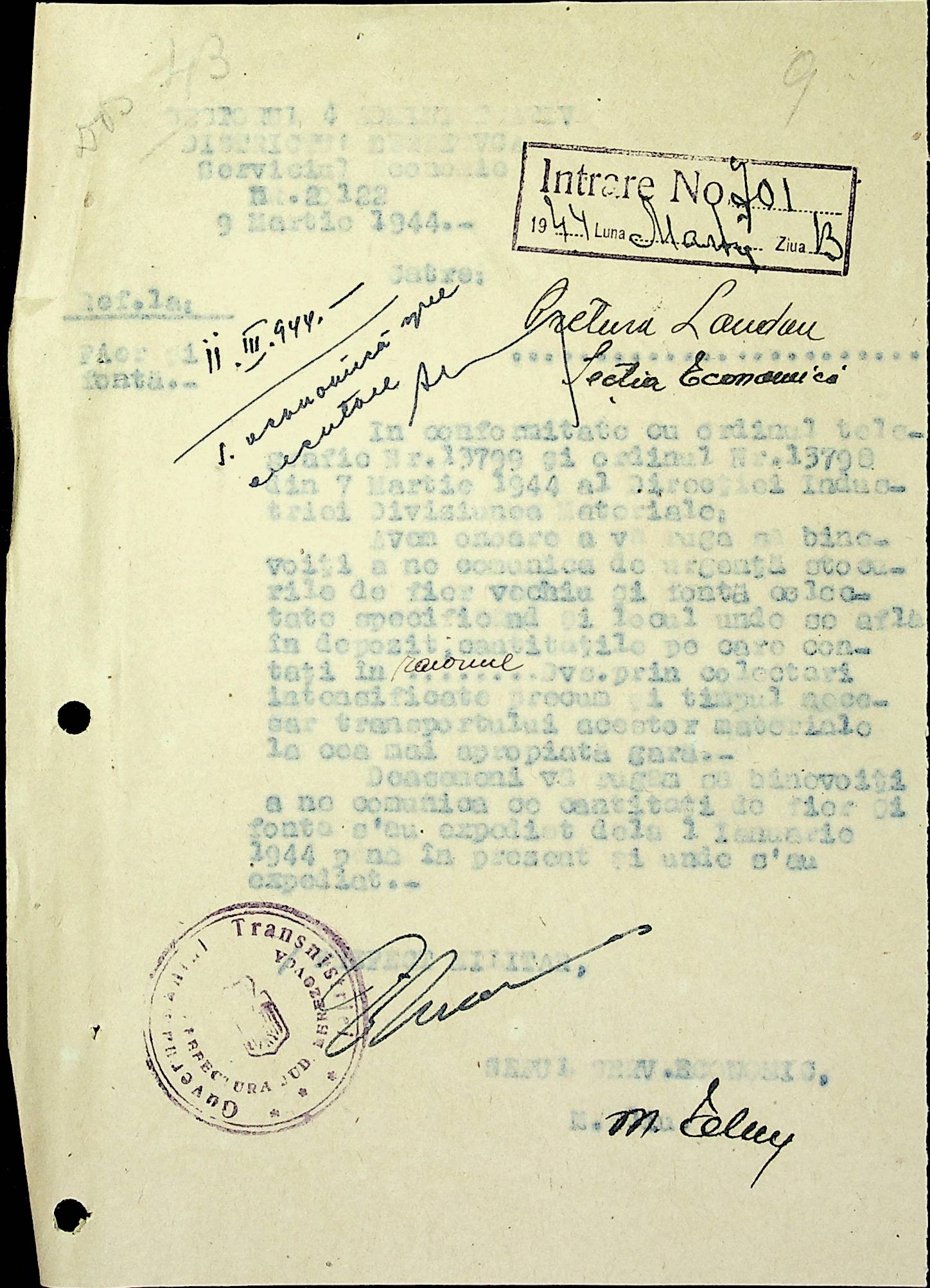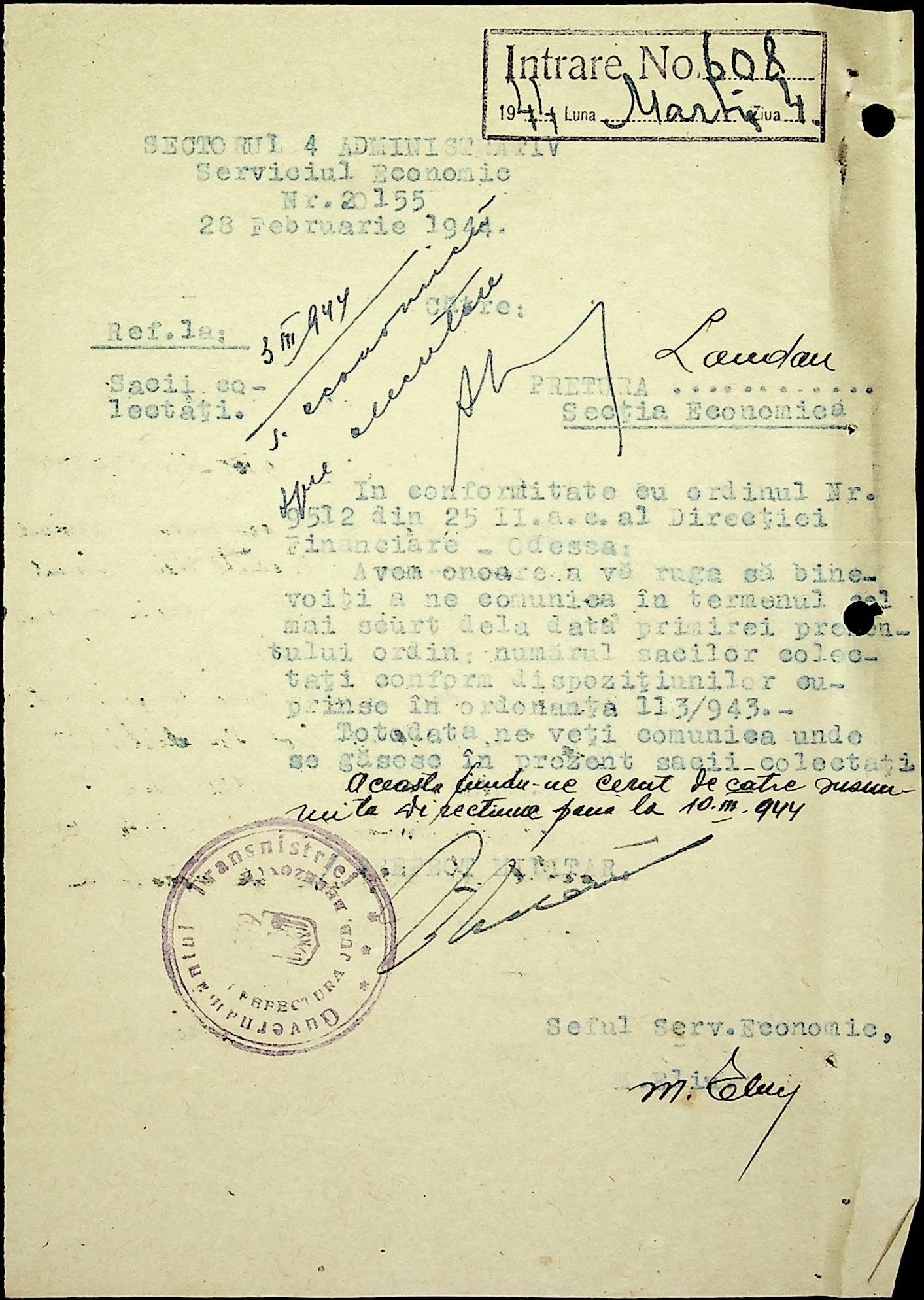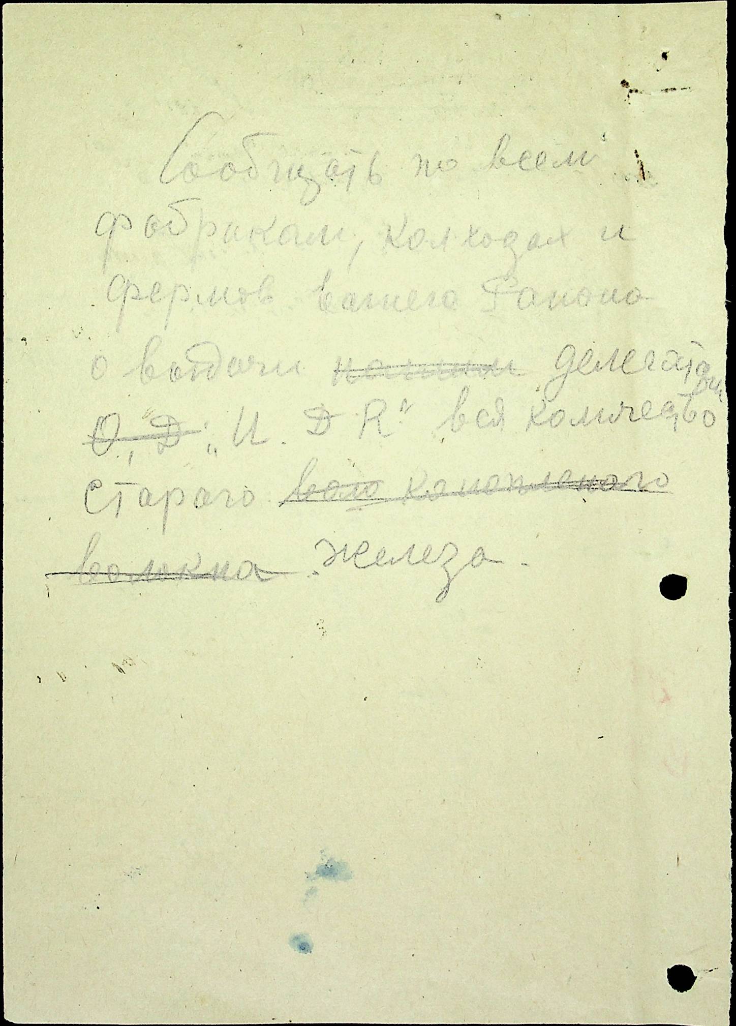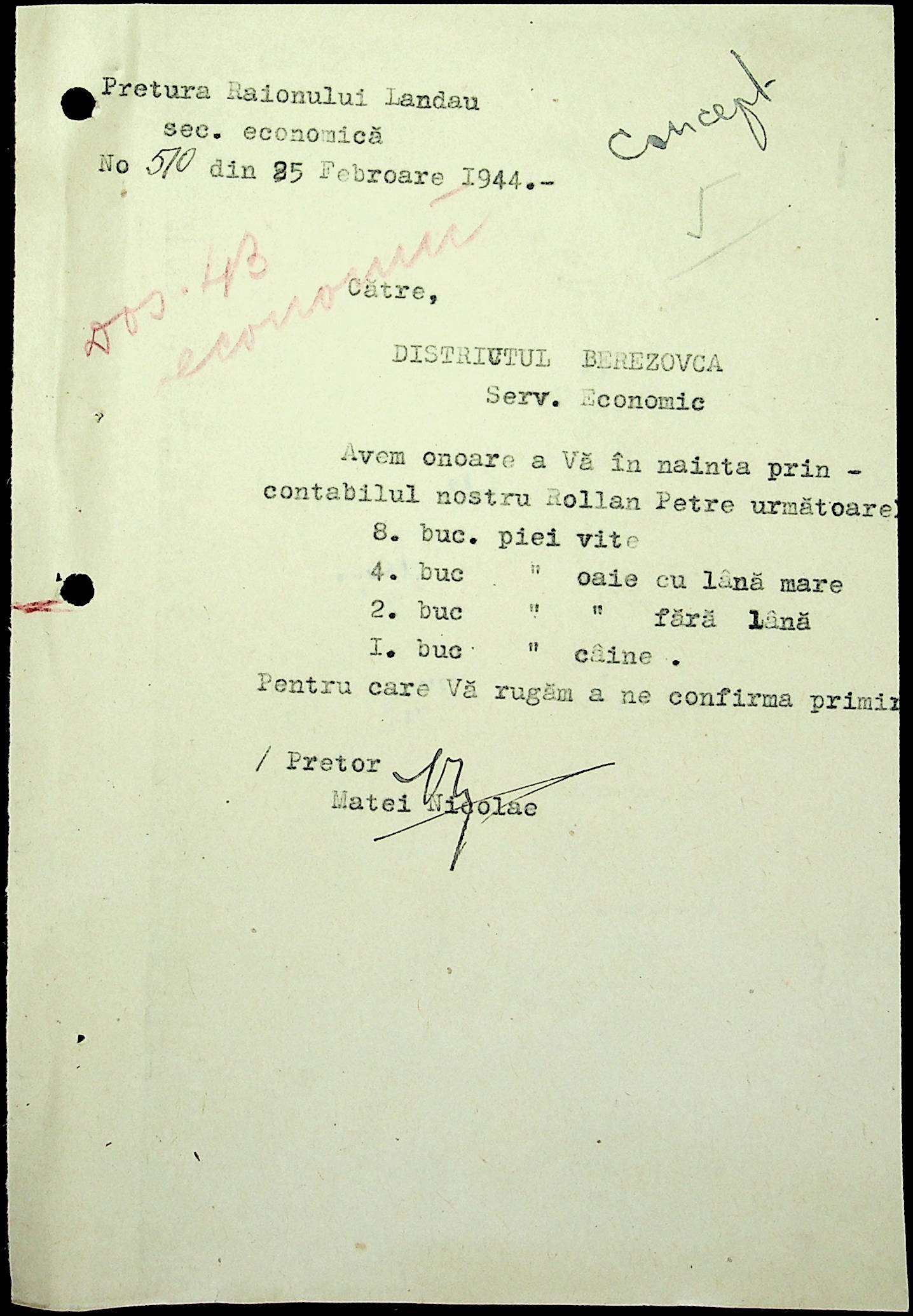 • • • • Справа № 59 Листування з економічним відділом префектури Березівського повіту про наявність кольорових металів, збір металобрухту і сировини в Ландауському районі; положення про збір сировини
