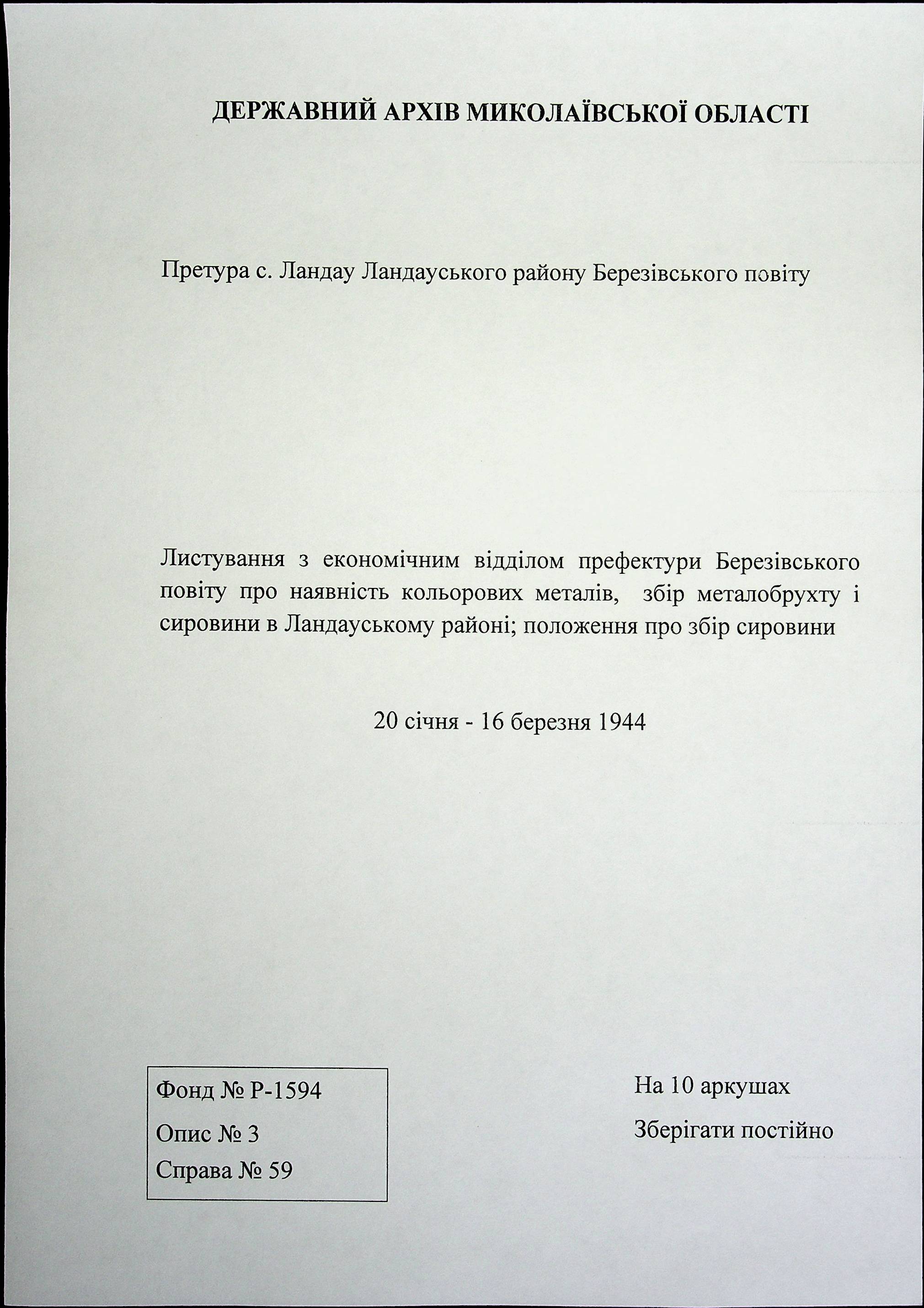 ◦ ◦ Фонд № Н-1594 “Претура Ландауського району”