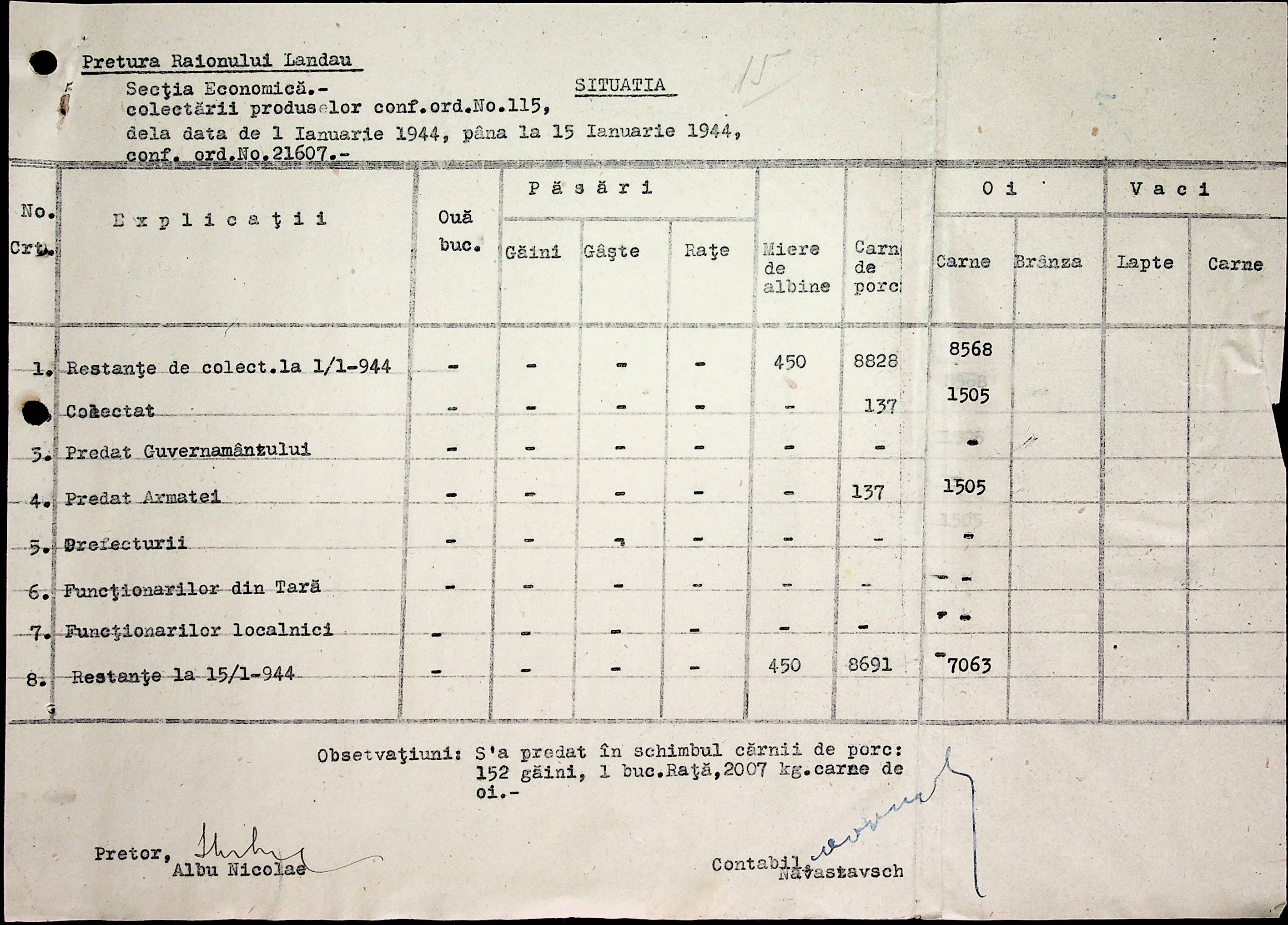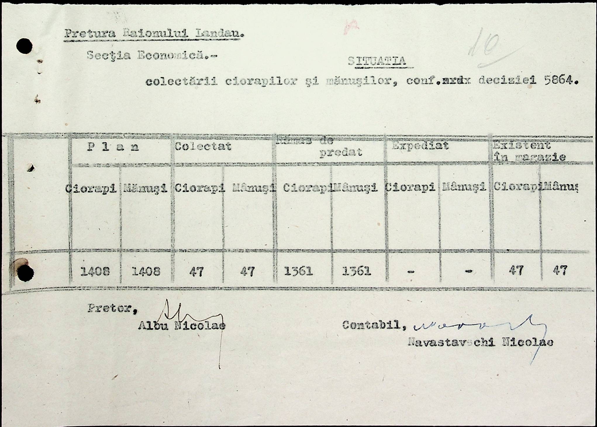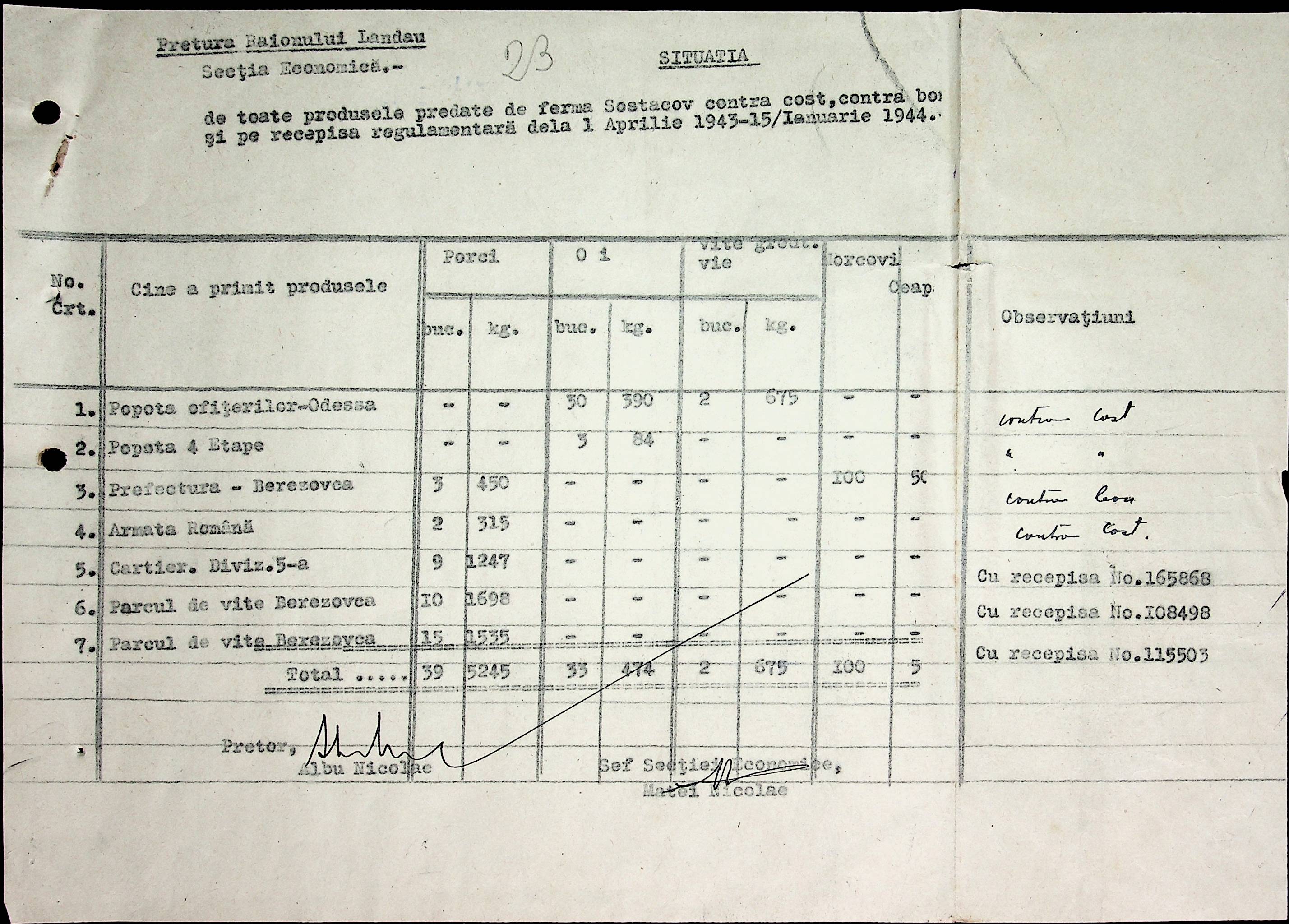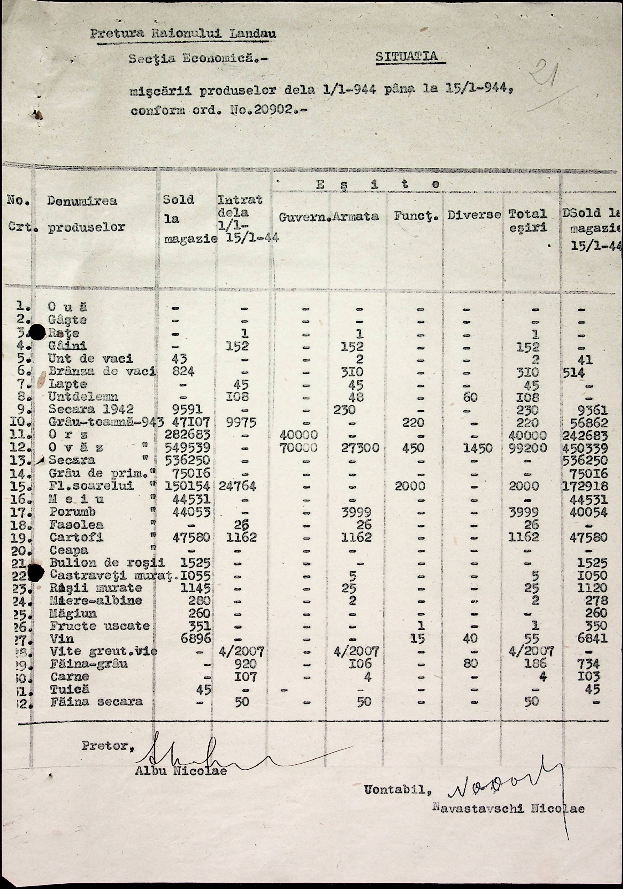 • • • • Справа № 65 Відомості про продукти, що зберігаються на складах, що передані губернаторству і армії; про відправлені шкарпетки, панчохи, рукавички; листування з економічним відділом Березівської префектури про положення щодо збору сировини та промислових матеріалів