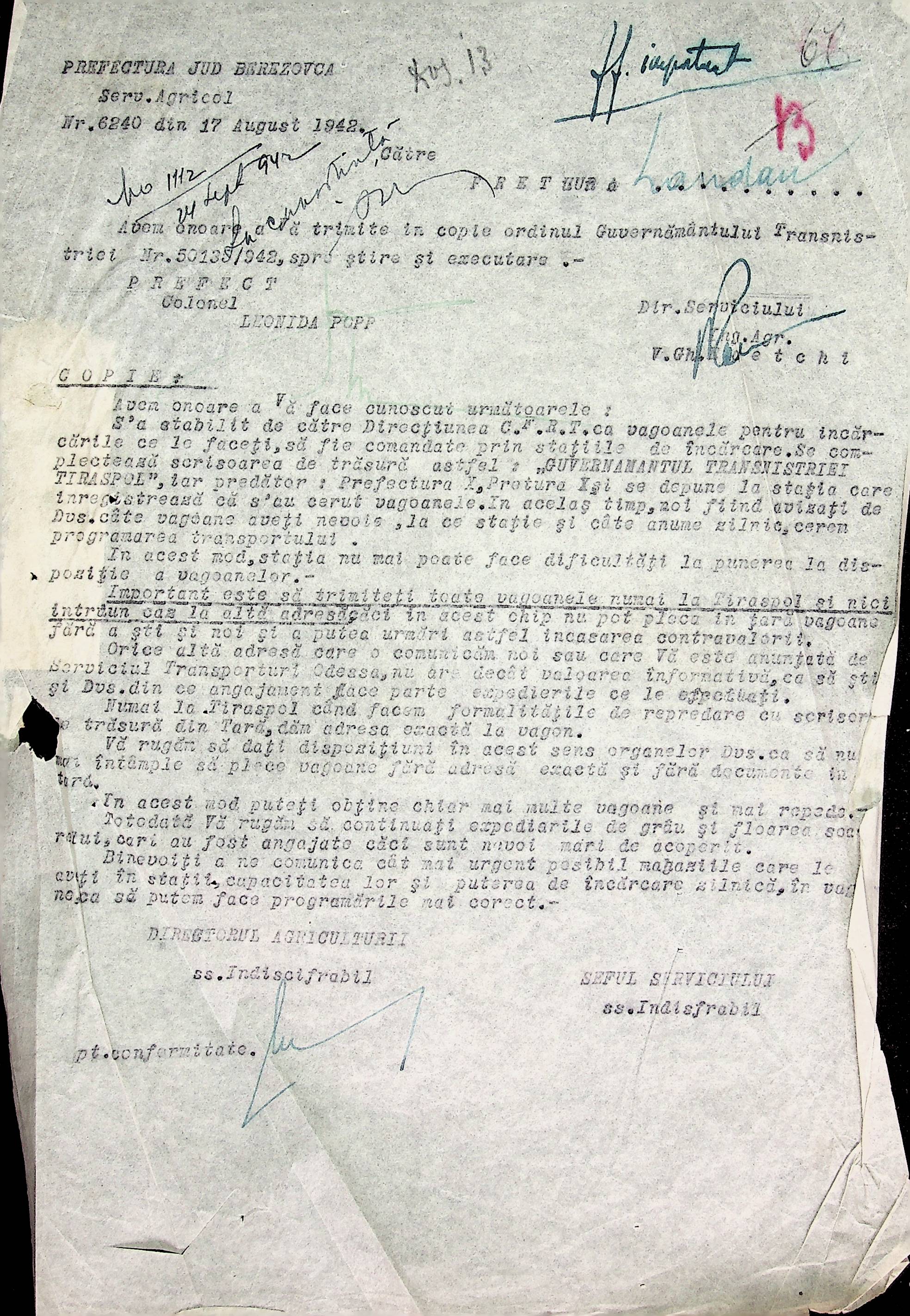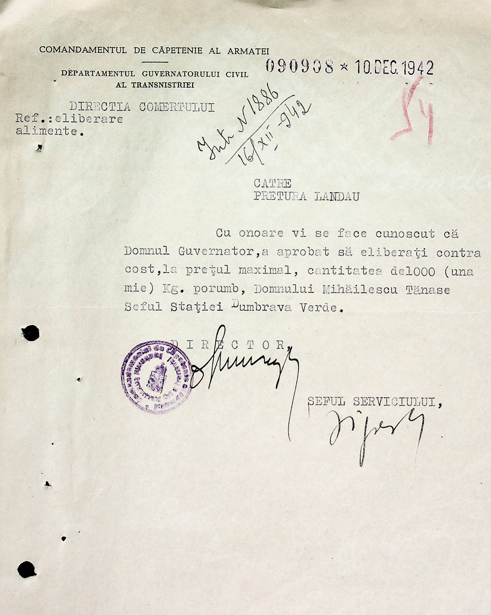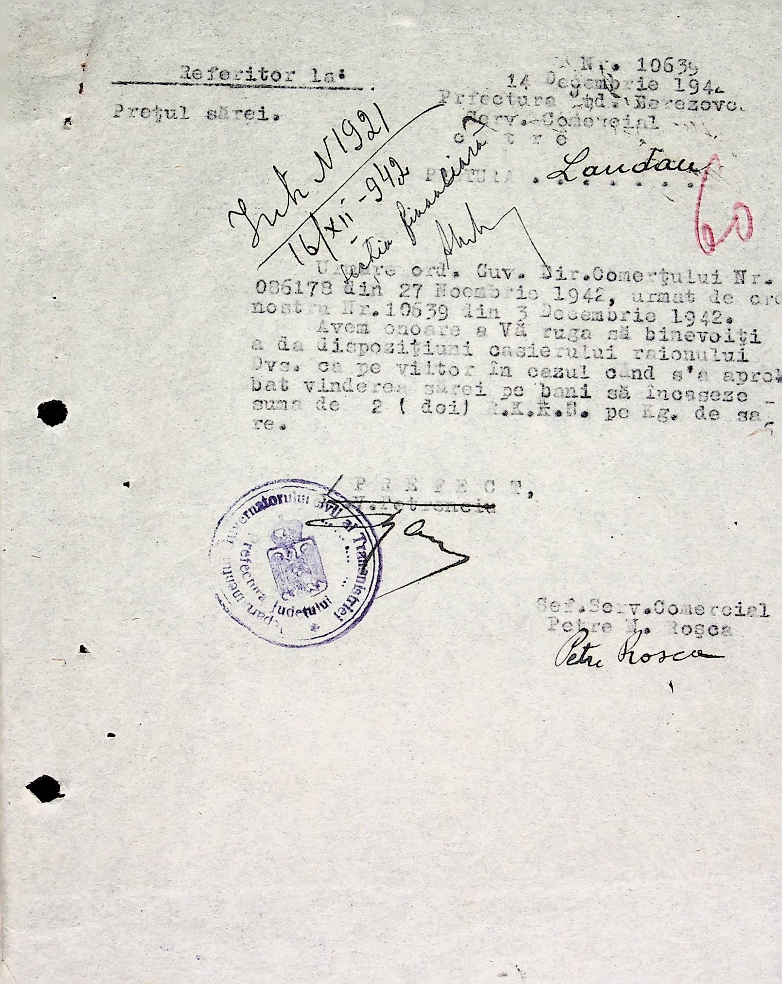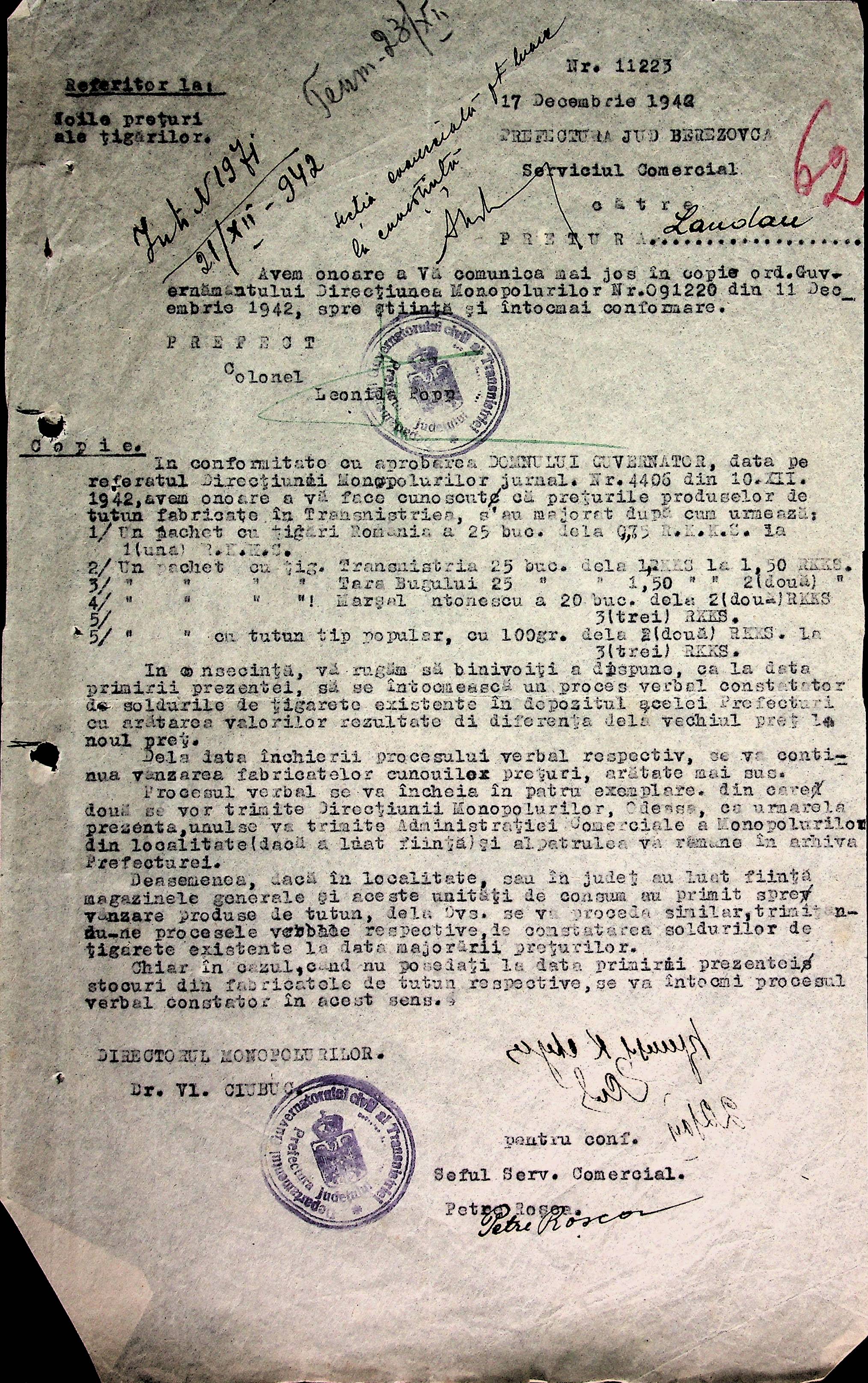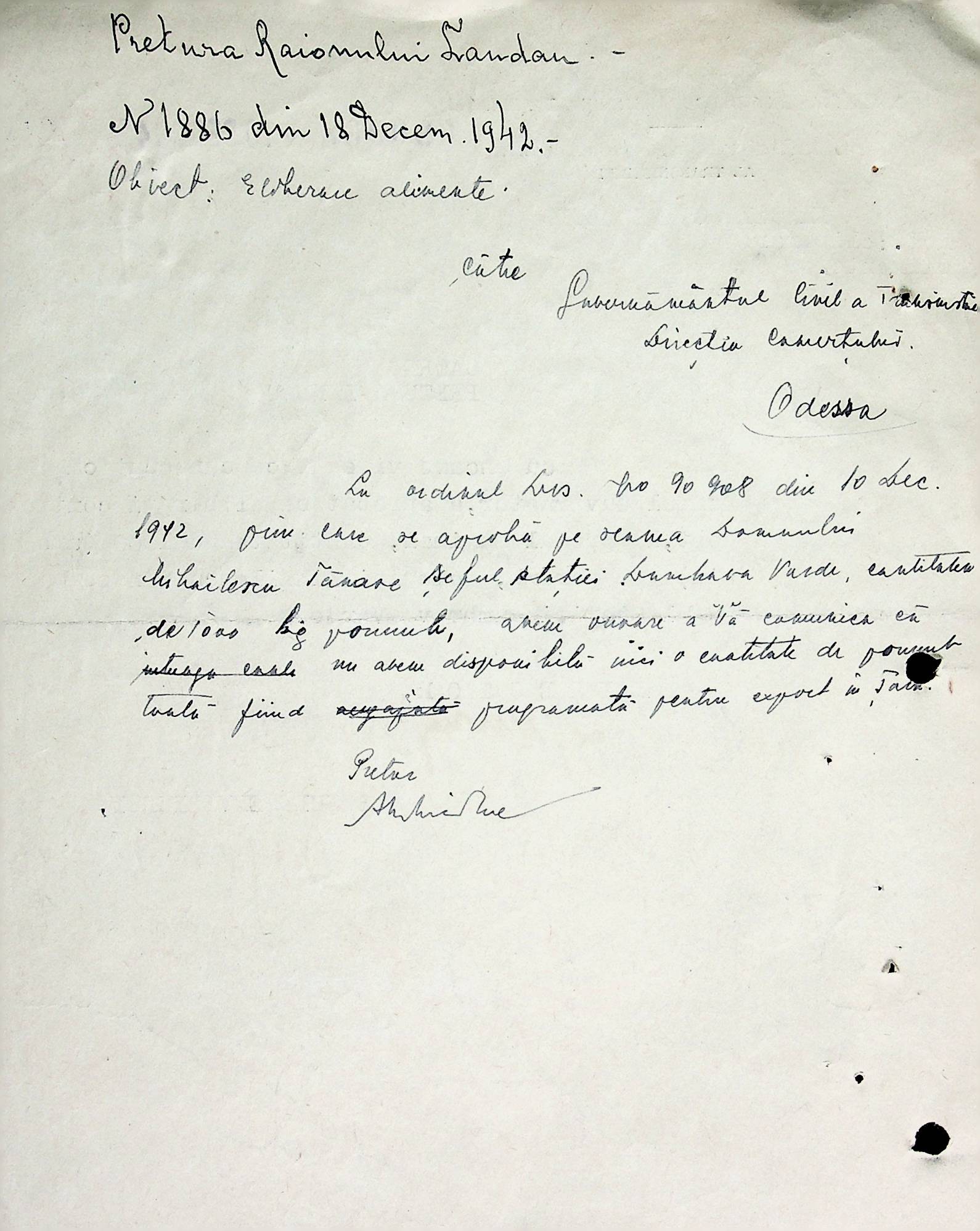 • • • • Справа № 66 Копії інструкцій, накази та постанови цивільного губернатора Трансністрії, листування з комерційним відділом префектури Березівського повіту про організацію торгівлі в районі, списки необхідних продуктів для забезпечення Ландауського району