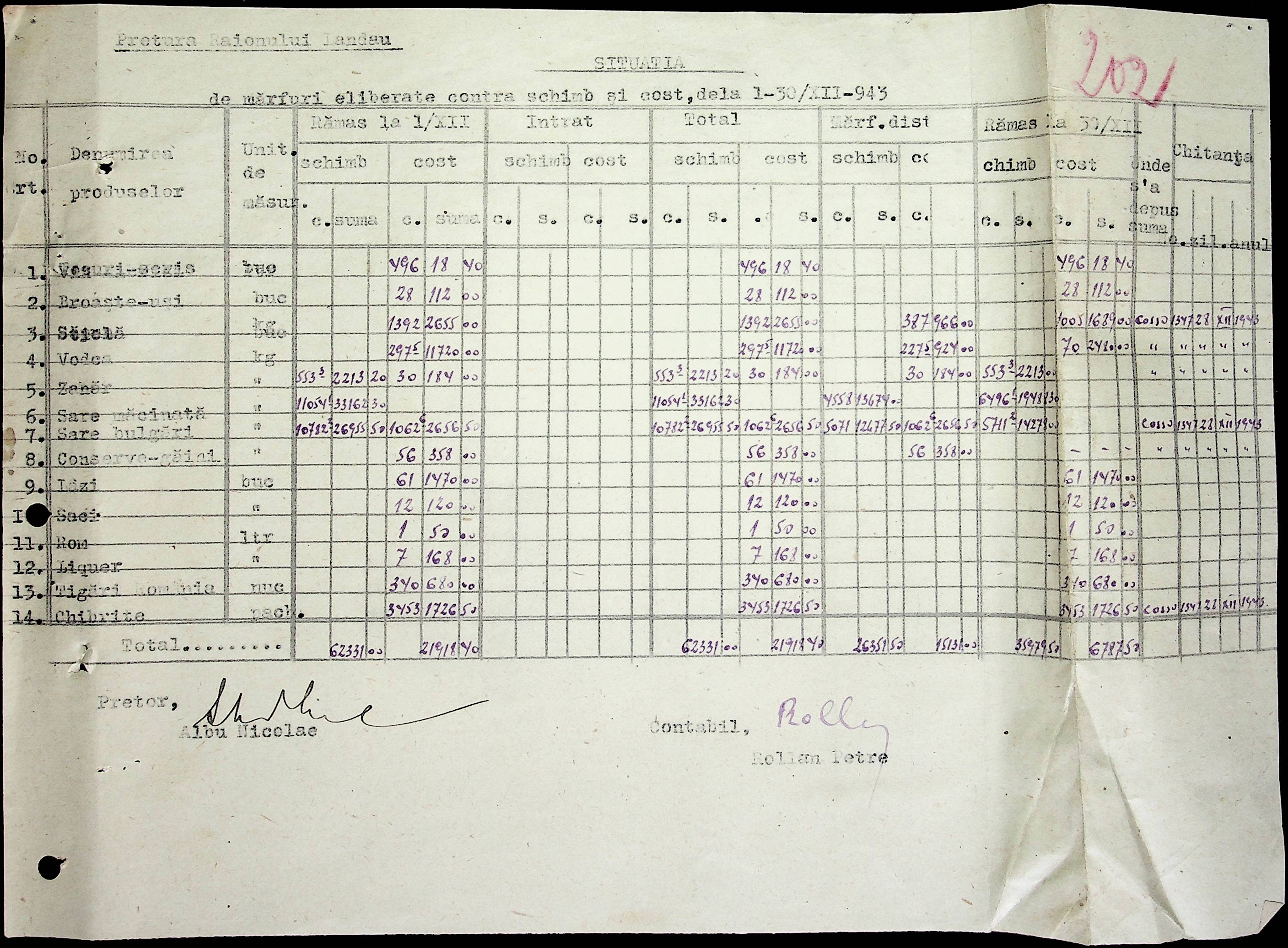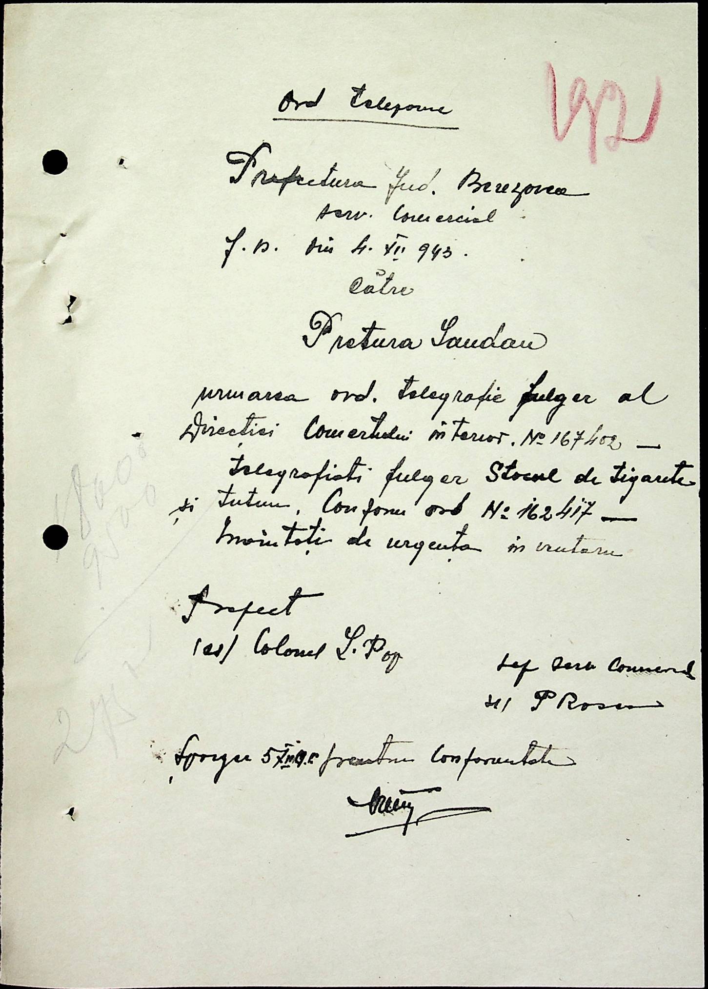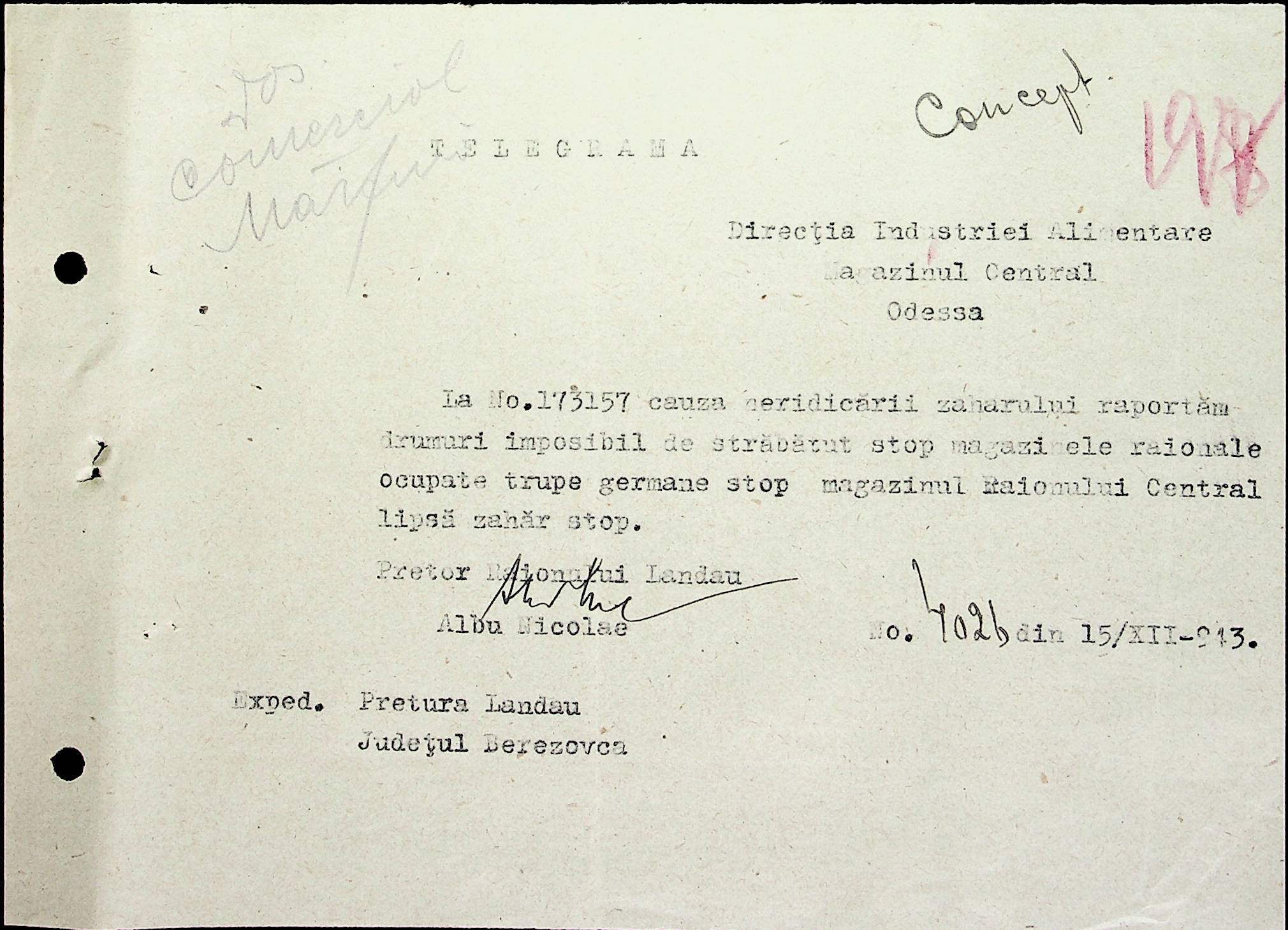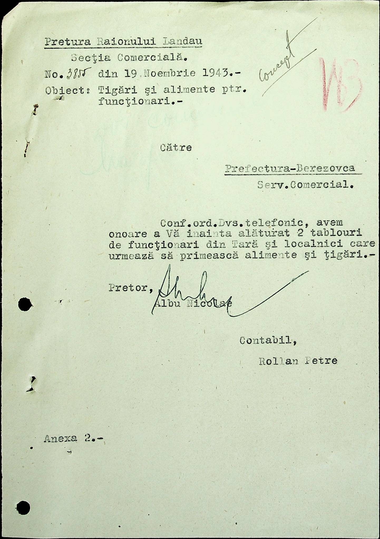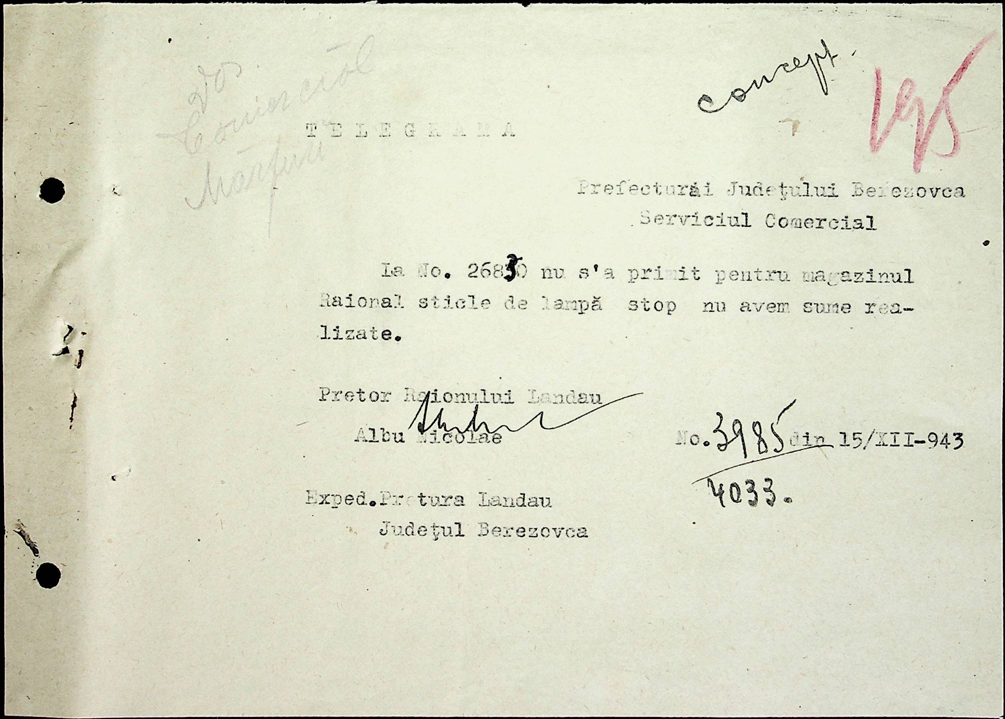 • • • • Справа № 69 Листування з комерційним відділом префектури Березівського повіту про видачу солі службовцям, продаж тютюну і цигарок в районному магазині; про перерахування до держбанку Трансністрії інкасованих коштів за продані товари. Список службовців Ландауської претури