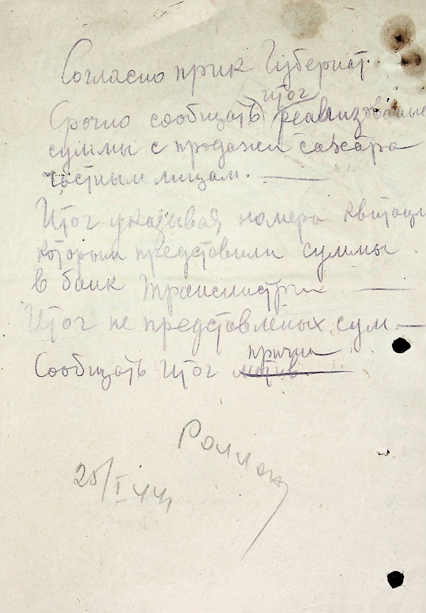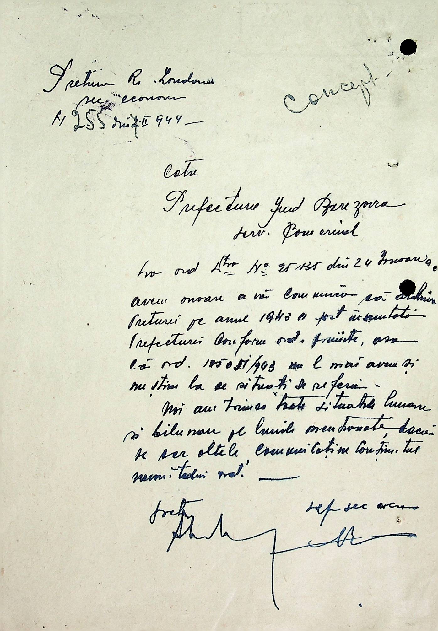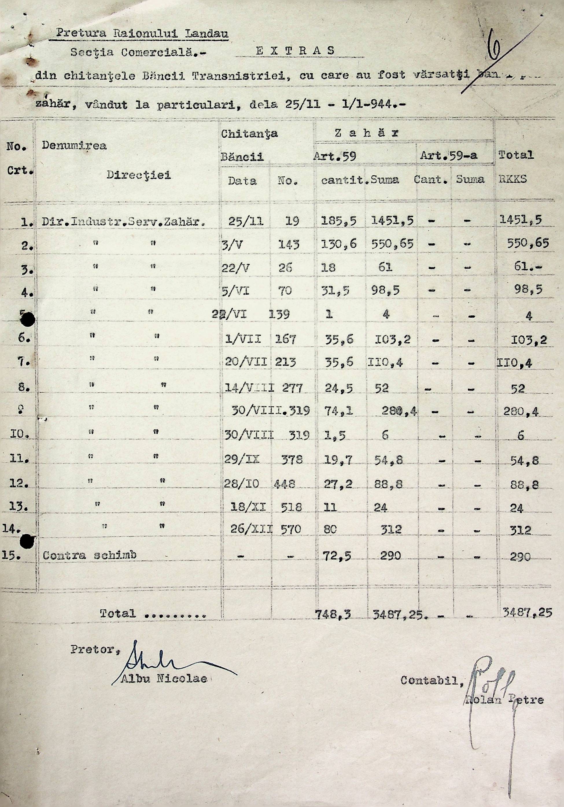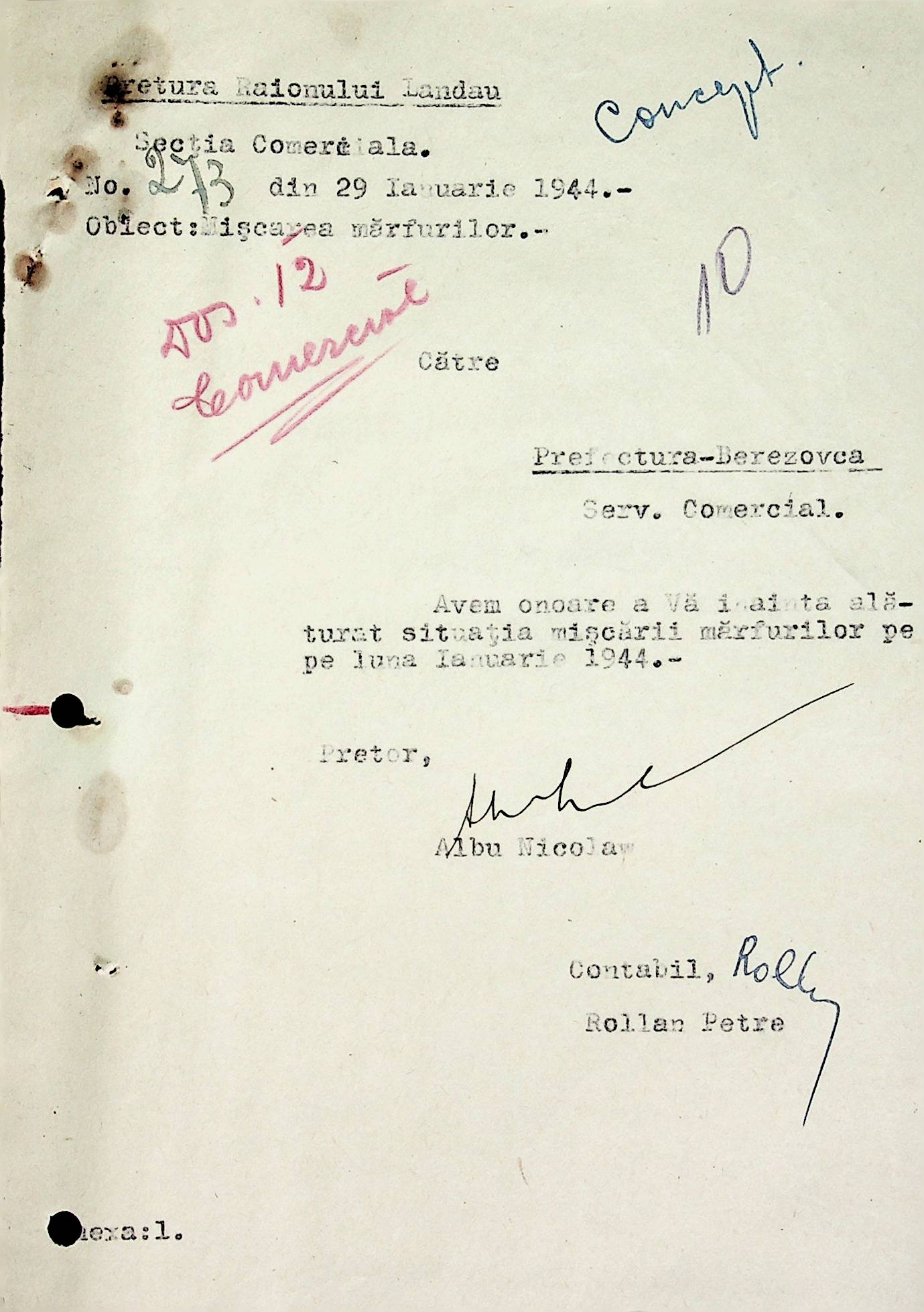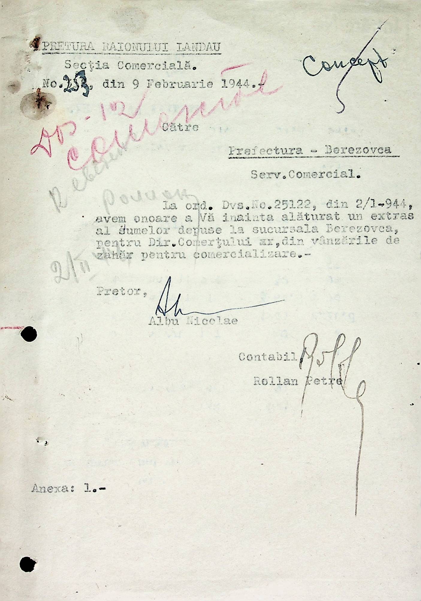 • • • • Справа № 72 Листування з комерційним відділом Березівської префектури про відправку порожнього посуду від спиртних напоїв, реалізацію цукру, рух продуктів і товарів за січень 1944 року