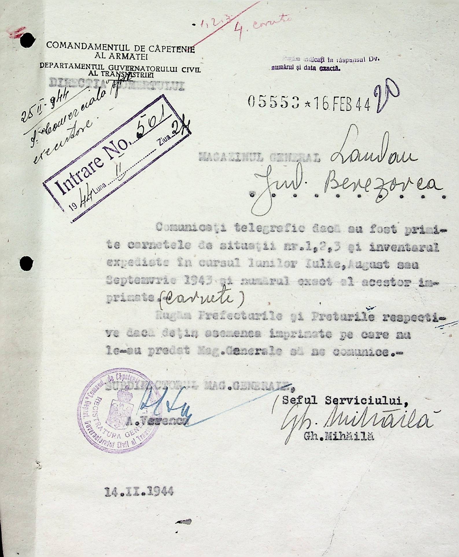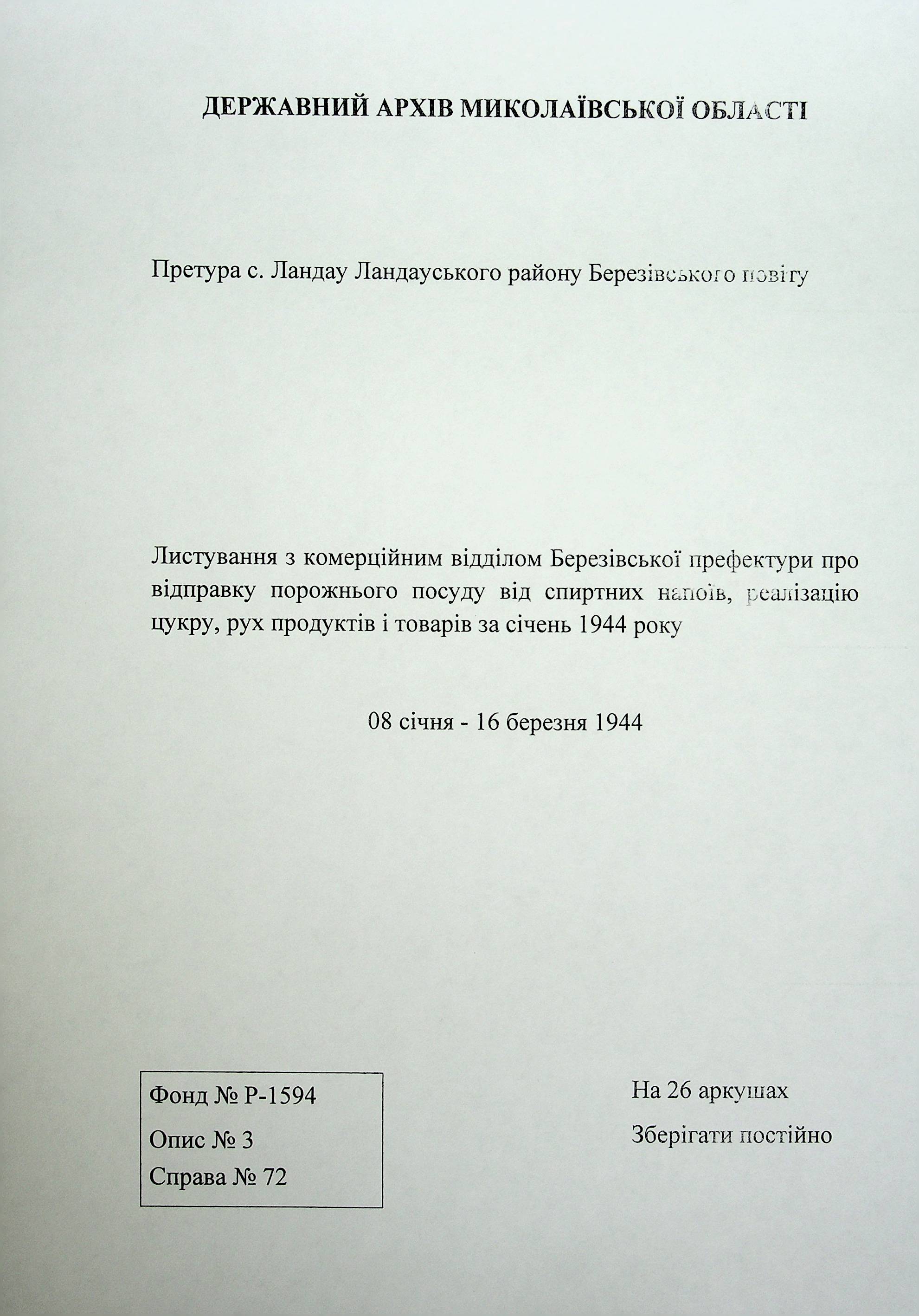 ◦ ◦ Фонд № Н-1594 “Претура Ландауського району”