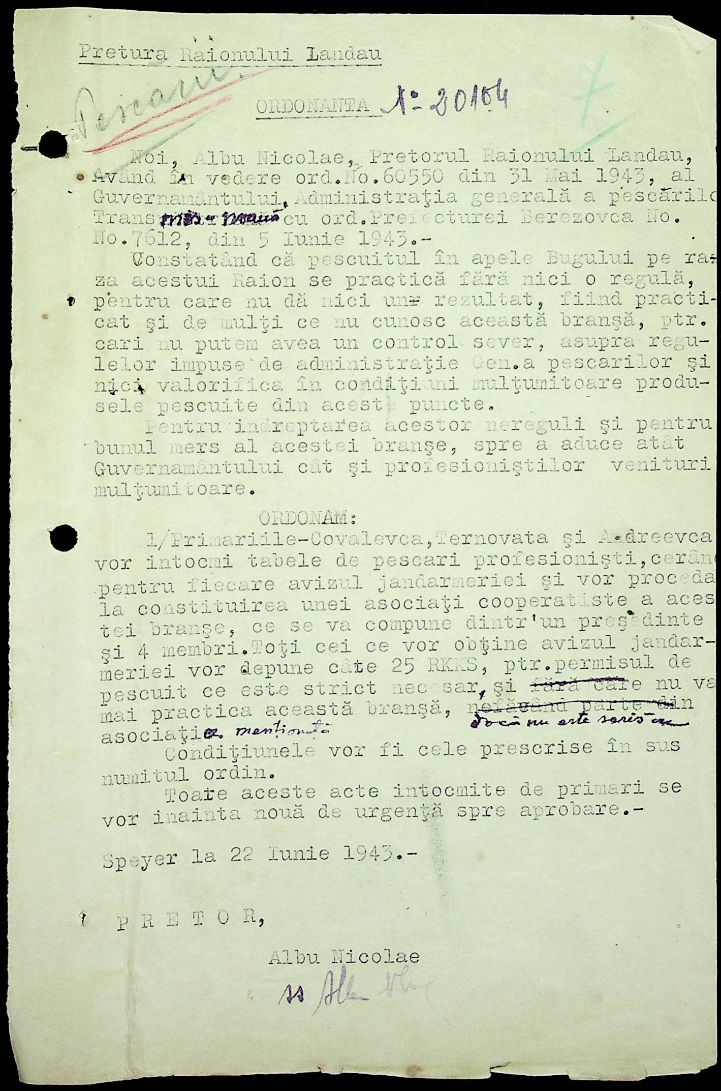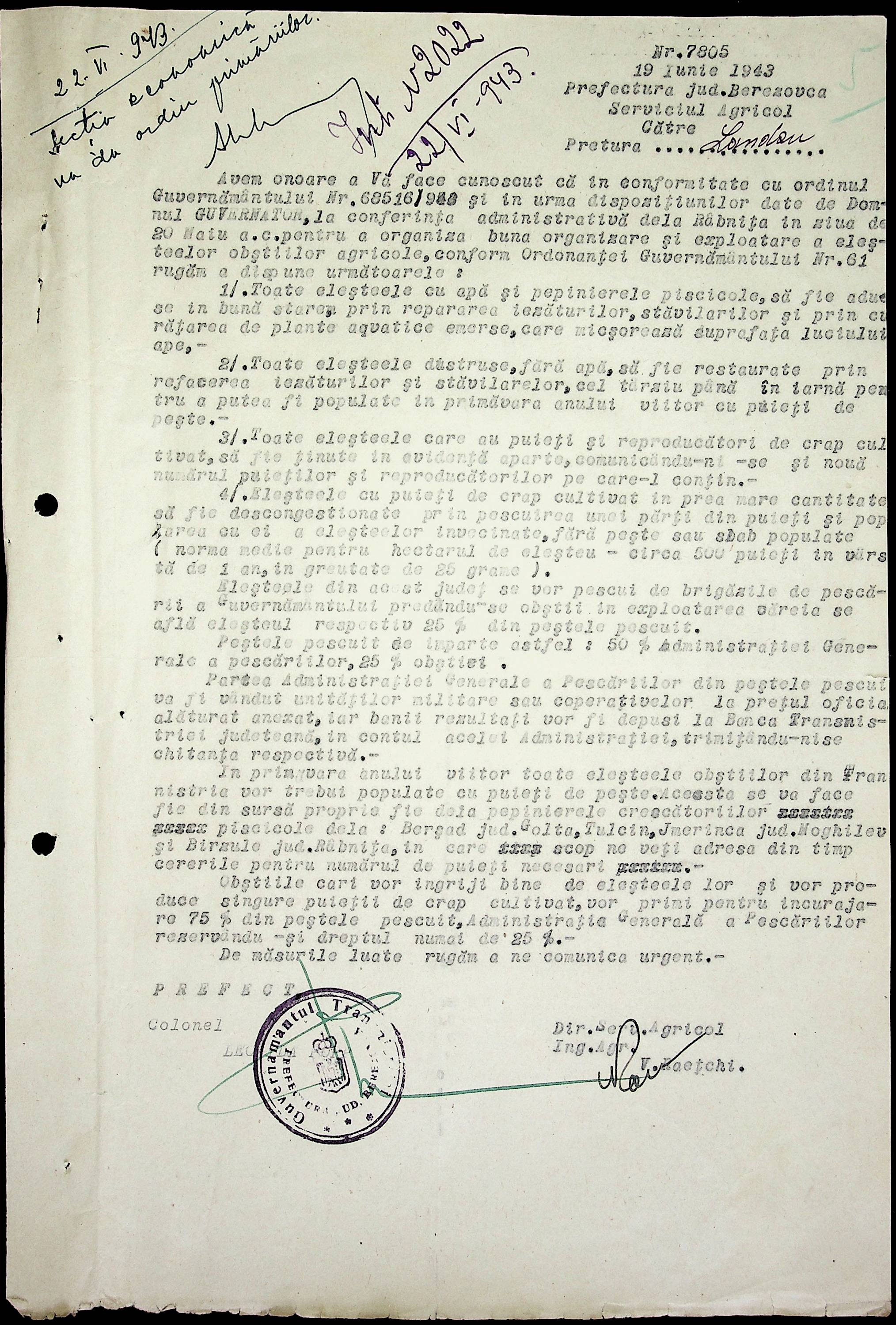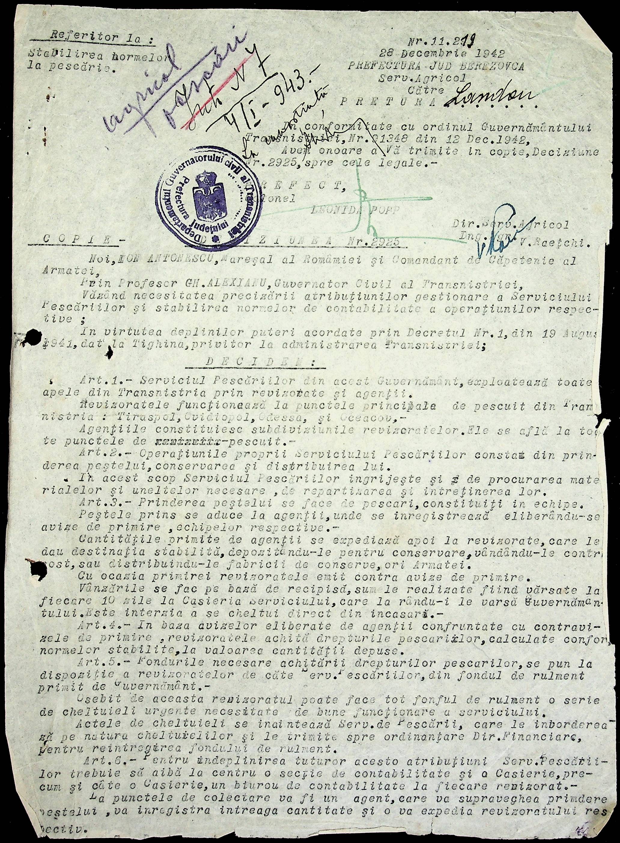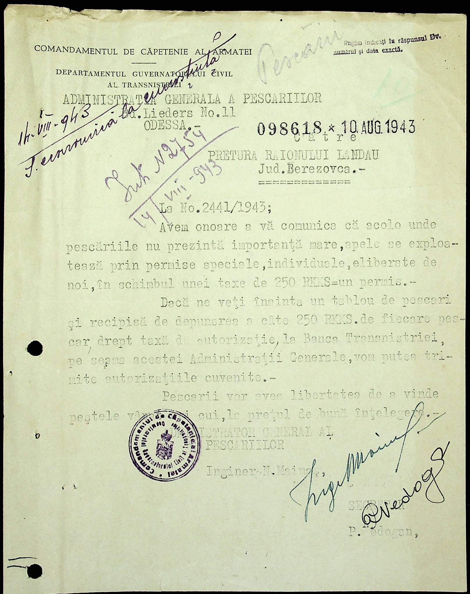 • • • • Справа № 75 Копії постанов та наказів цивільного губернатора Транснітрії, листування з сільськогосподарським відділом про використання річок для рибальства, заборону приватним особам займатися рибальством без дозволу департаменту рибальства, працевлаштування рибалок, встановлення місць для рибальства та цін на рибу; перелік установ на постачання рибною продукцією