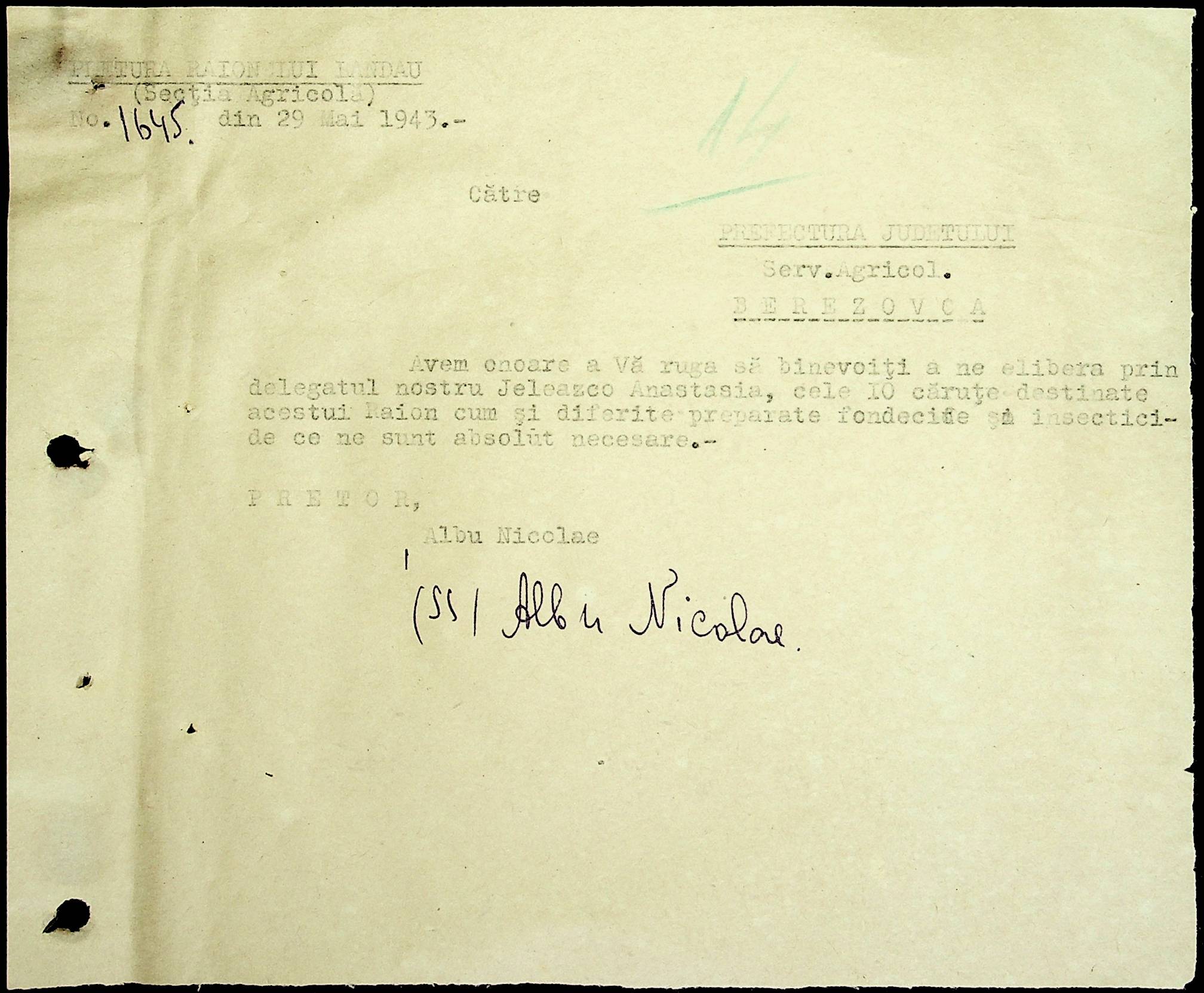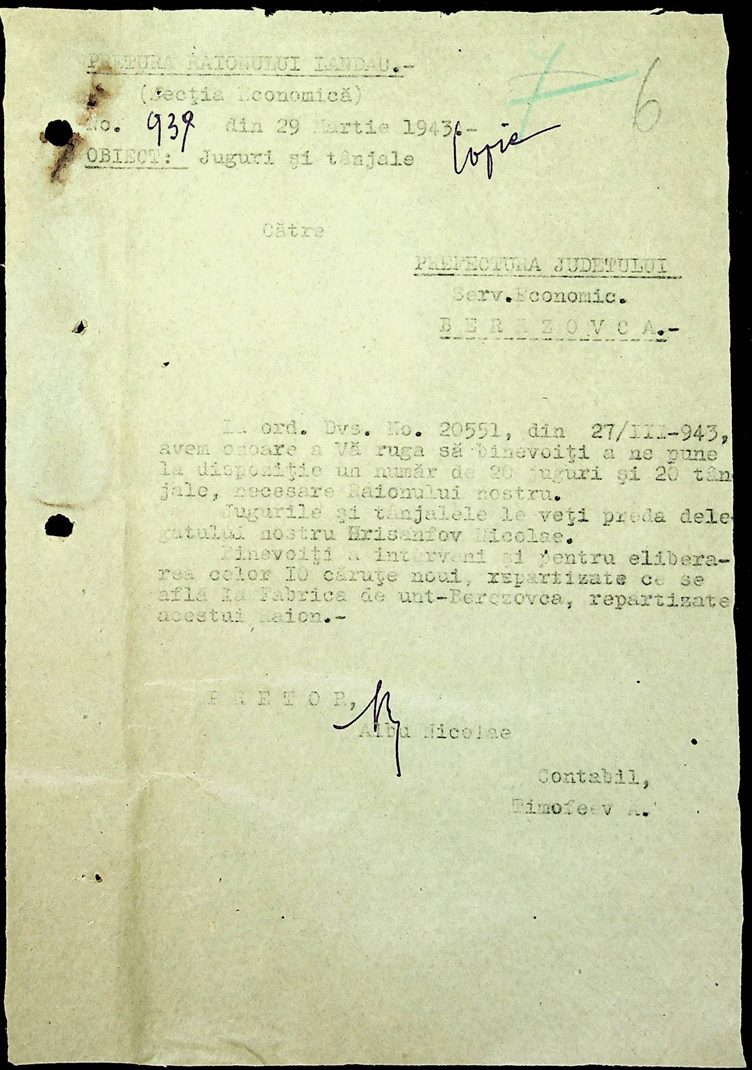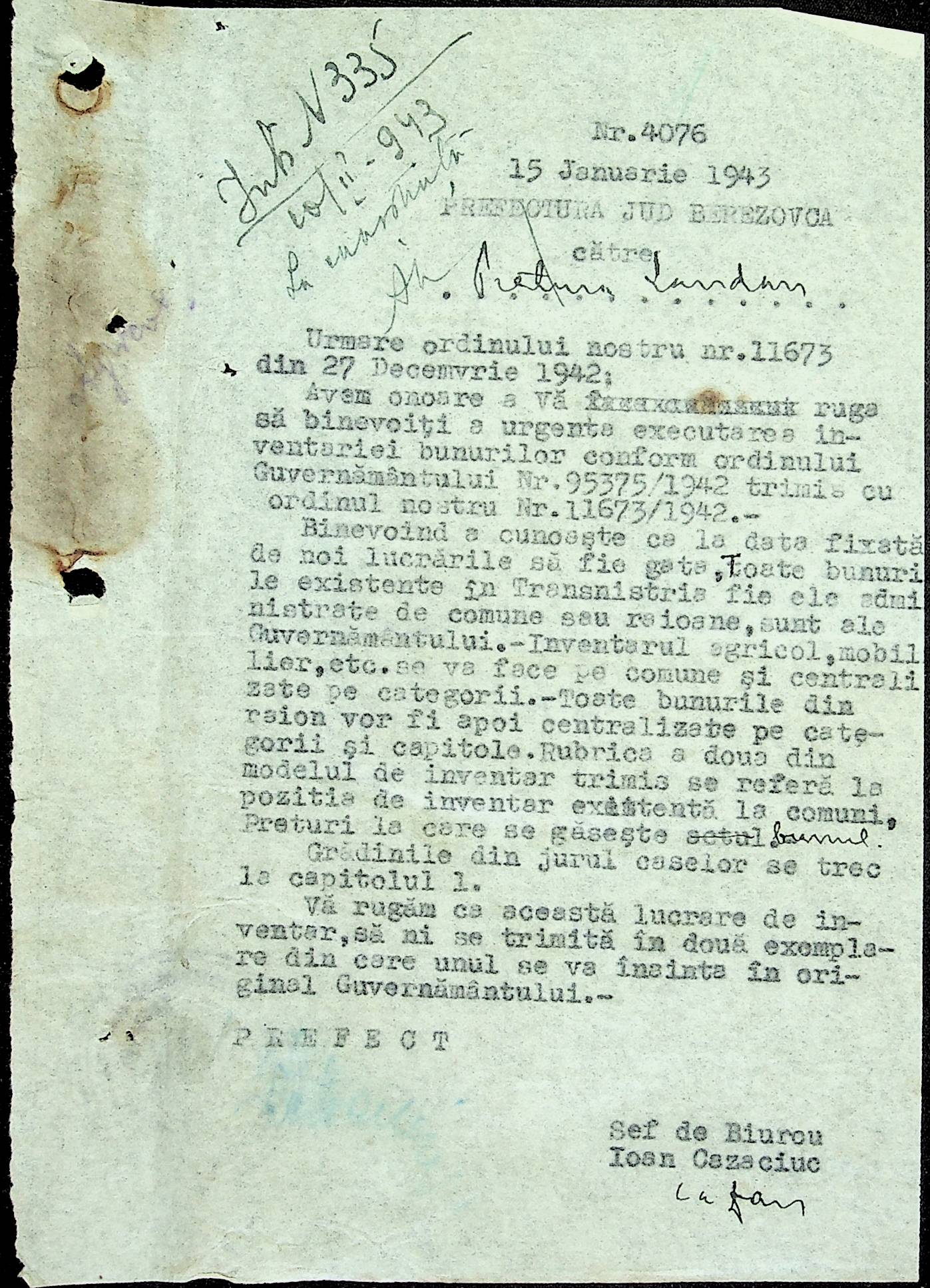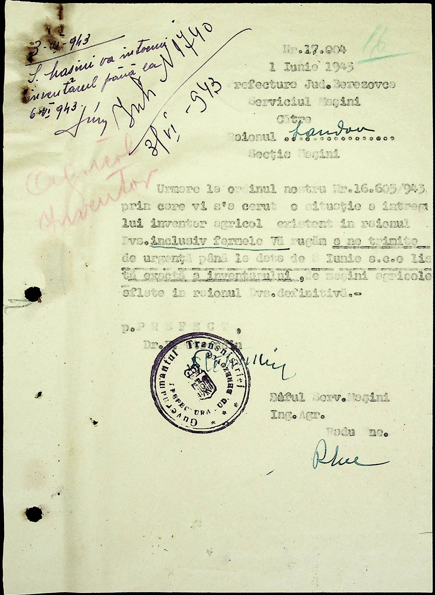 • • • • Справа № 81 Копія постанови цивільного губернатора Трансністрії про перевірку і маркування ваг у Трансністрії; листування з префектурою Березівського повіту про перепис наявного сільськогосподарського реманенту та його мобілізацію румунськими військовими частинами для заготівлі фуражу