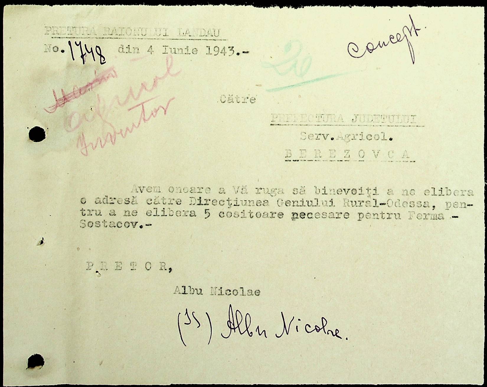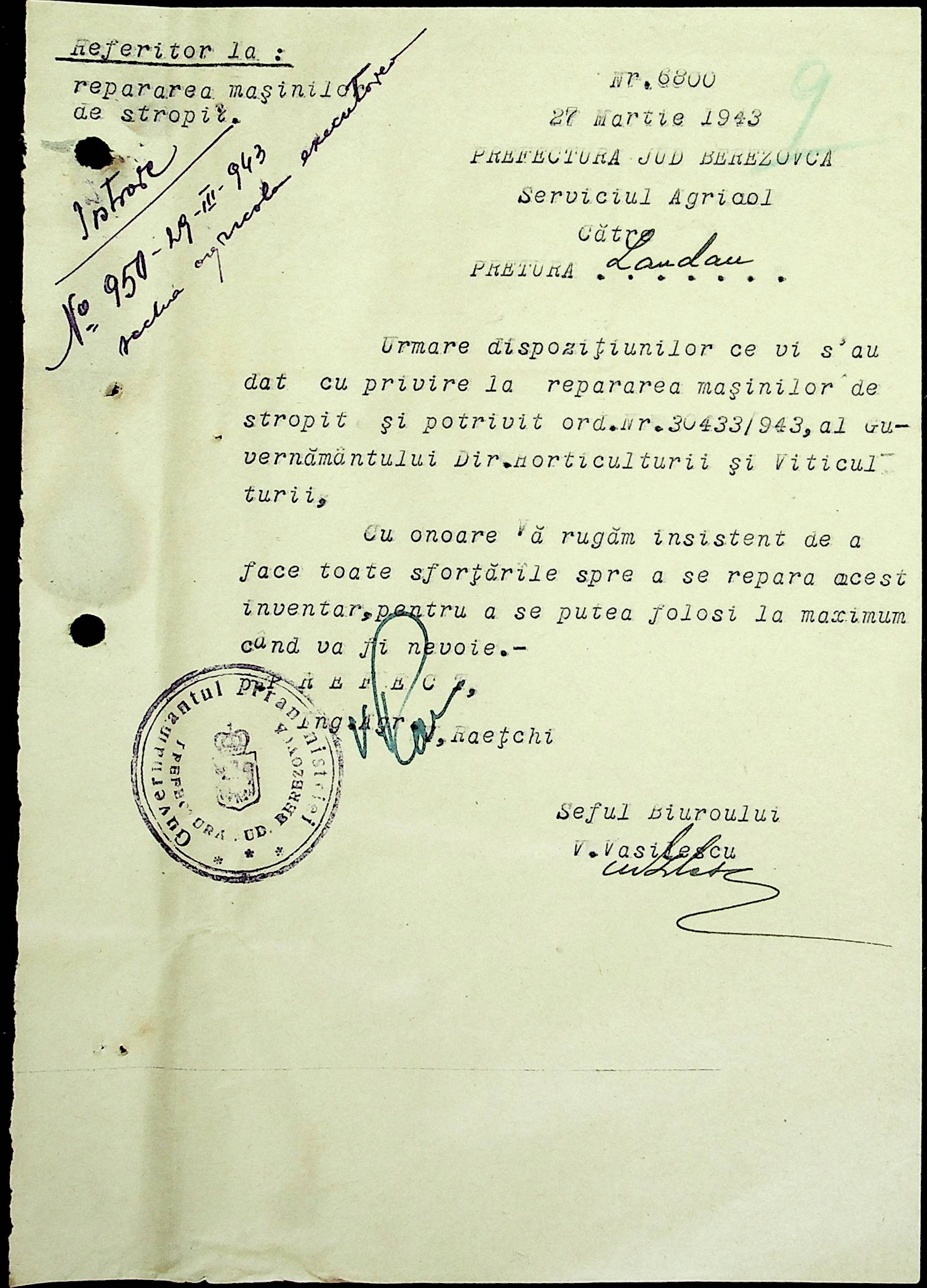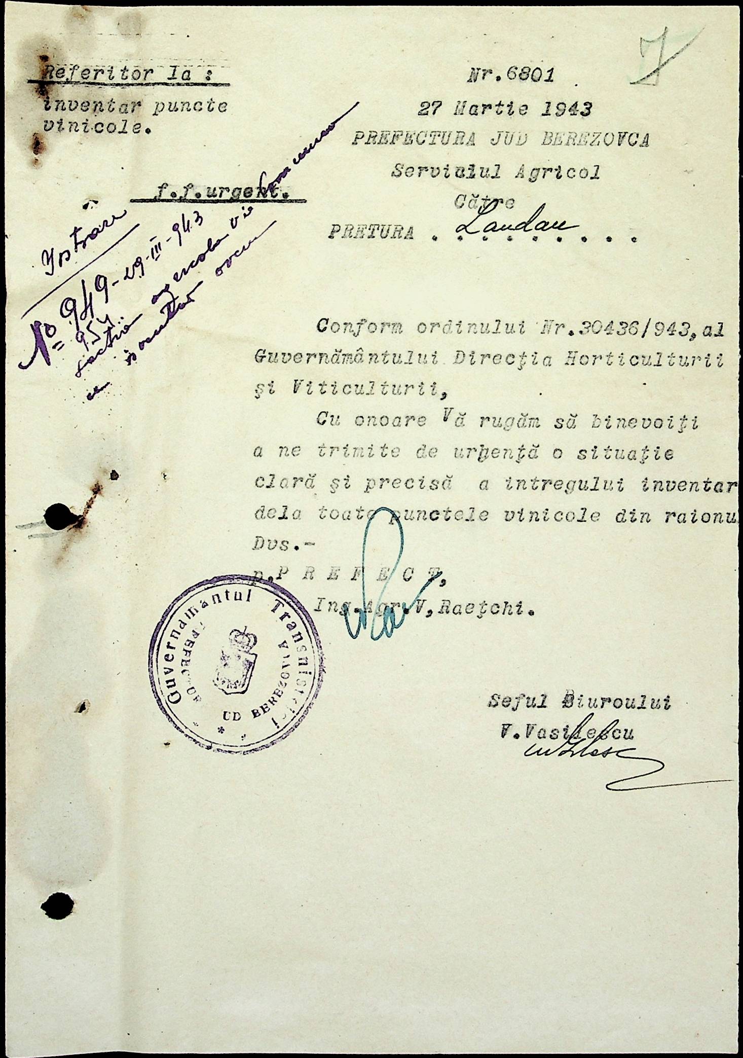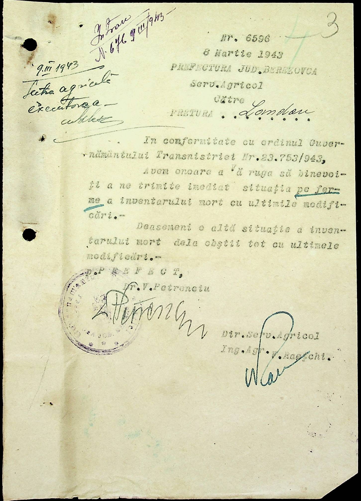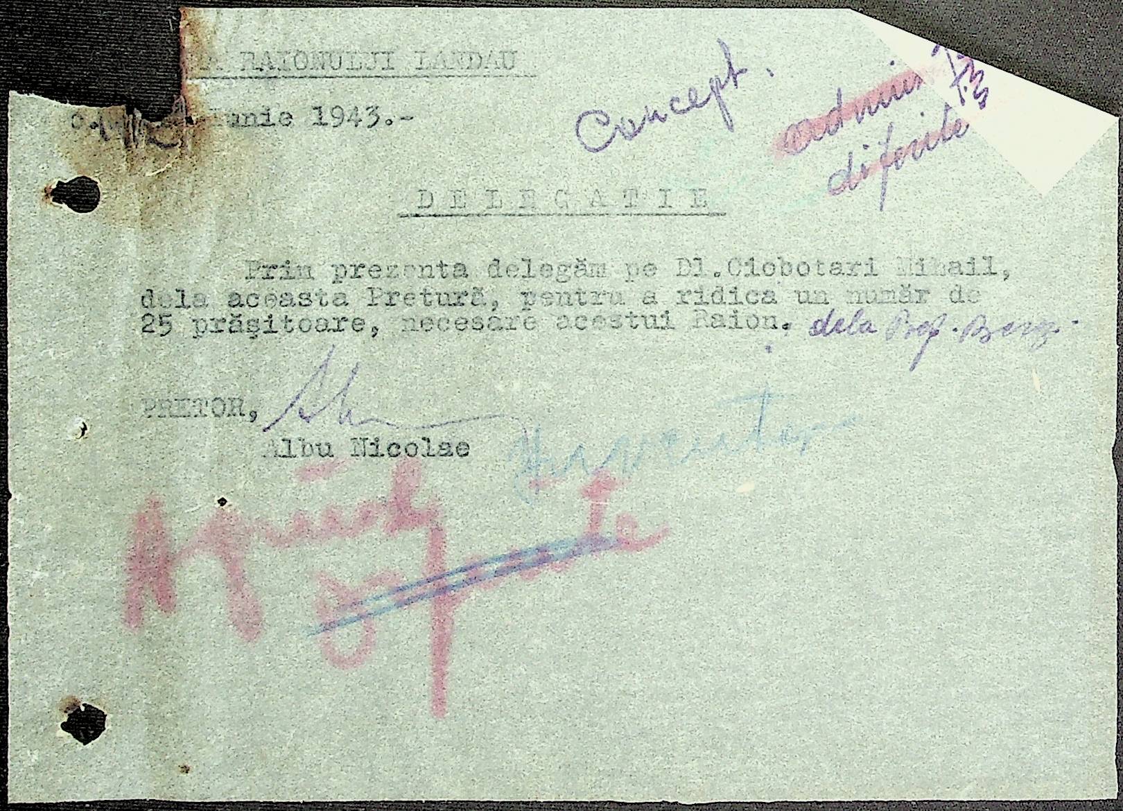 • • • • Справа № 81 Копія постанови цивільного губернатора Трансністрії про перевірку і маркування ваг у Трансністрії; листування з префектурою Березівського повіту про перепис наявного сільськогосподарського реманенту та його мобілізацію румунськими військовими частинами для заготівлі фуражу