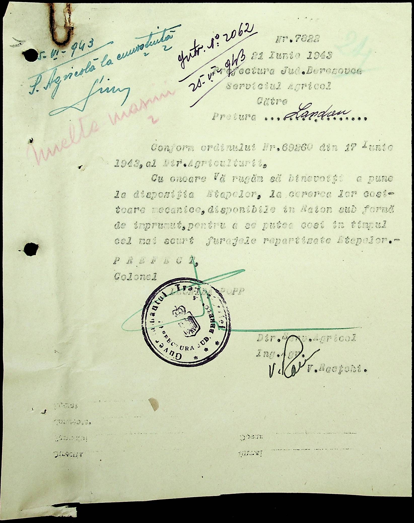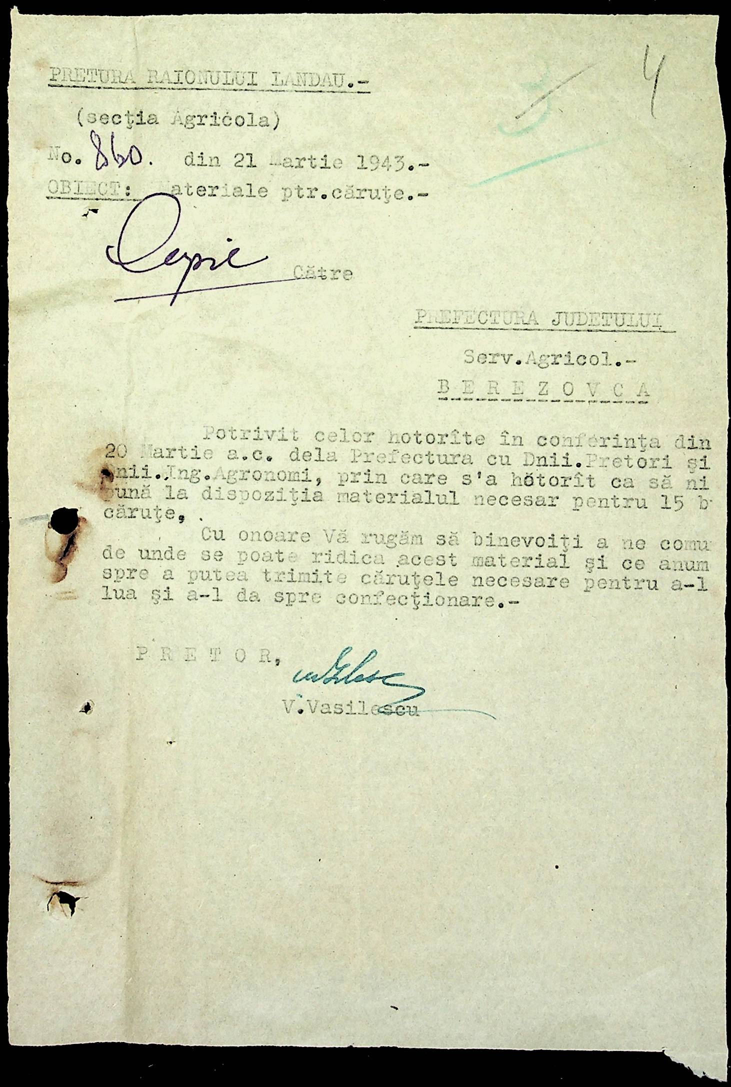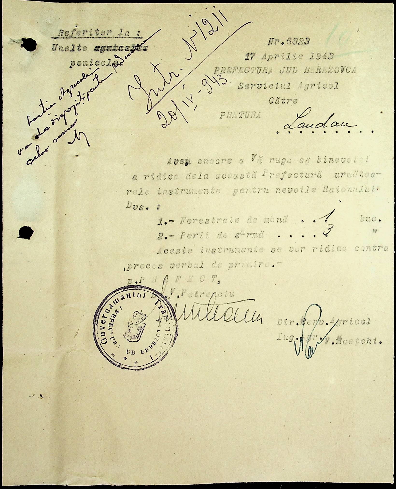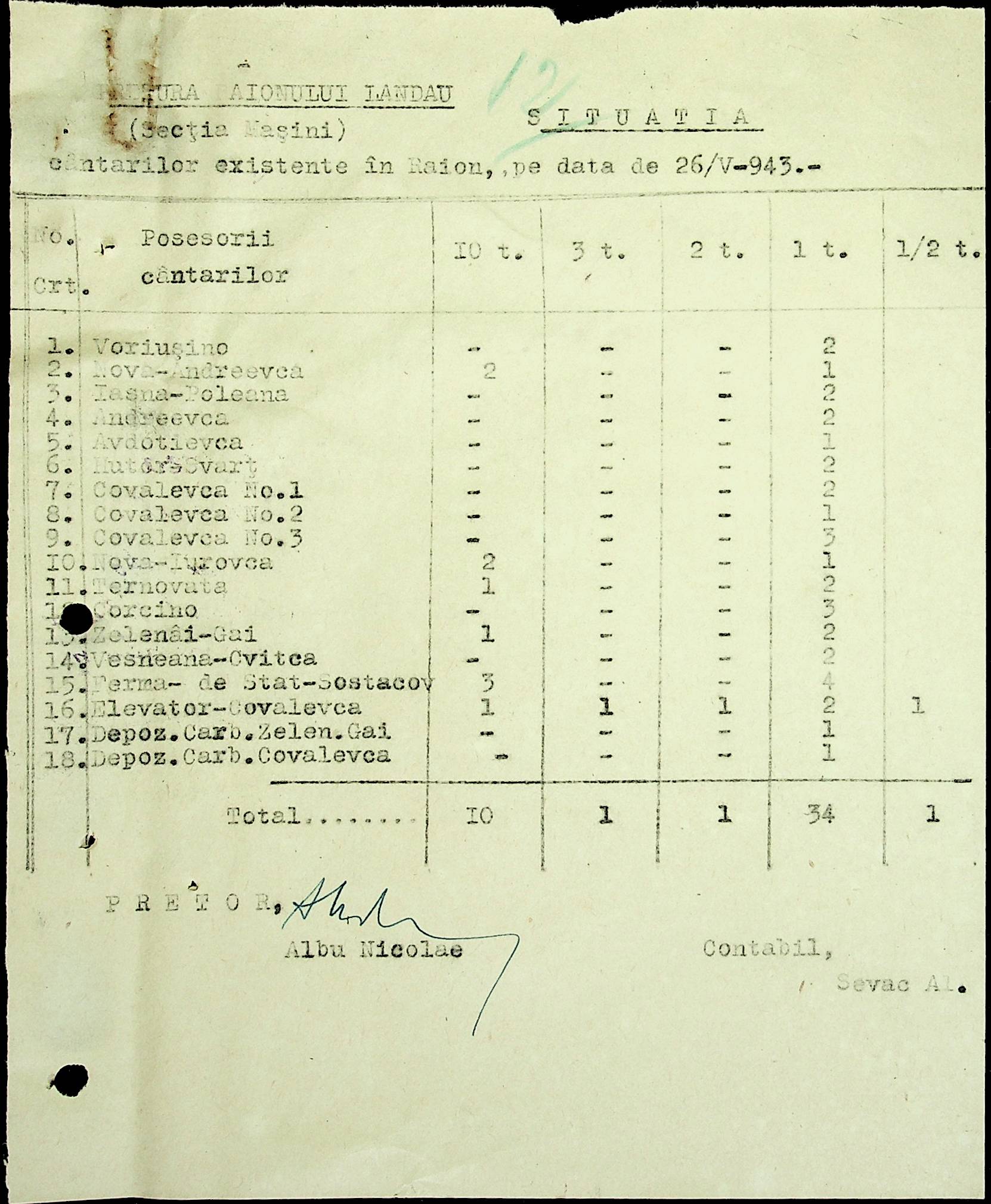 • • • • Справа № 81 Копія постанови цивільного губернатора Трансністрії про перевірку і маркування ваг у Трансністрії; листування з префектурою Березівського повіту про перепис наявного сільськогосподарського реманенту та його мобілізацію румунськими військовими частинами для заготівлі фуражу