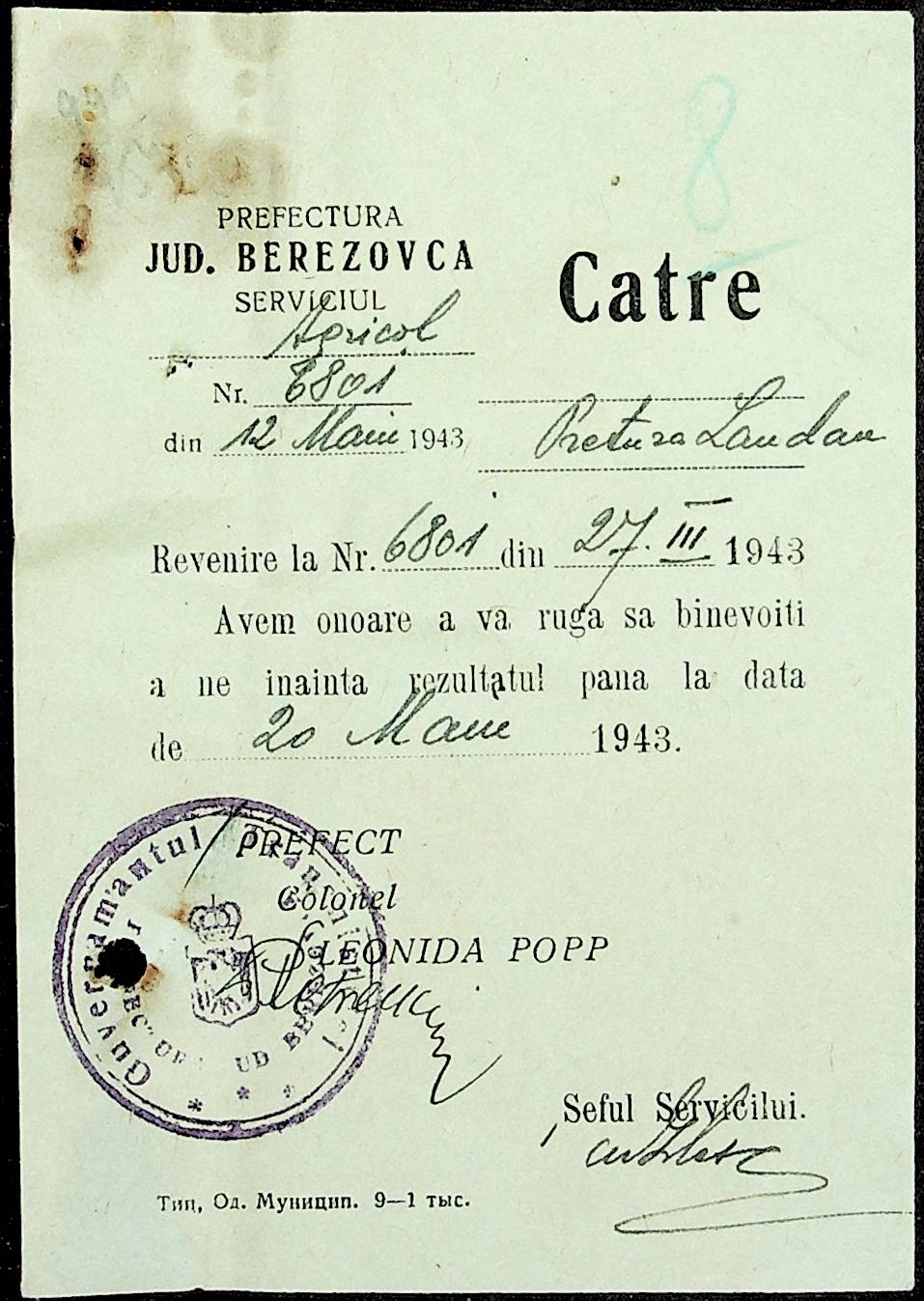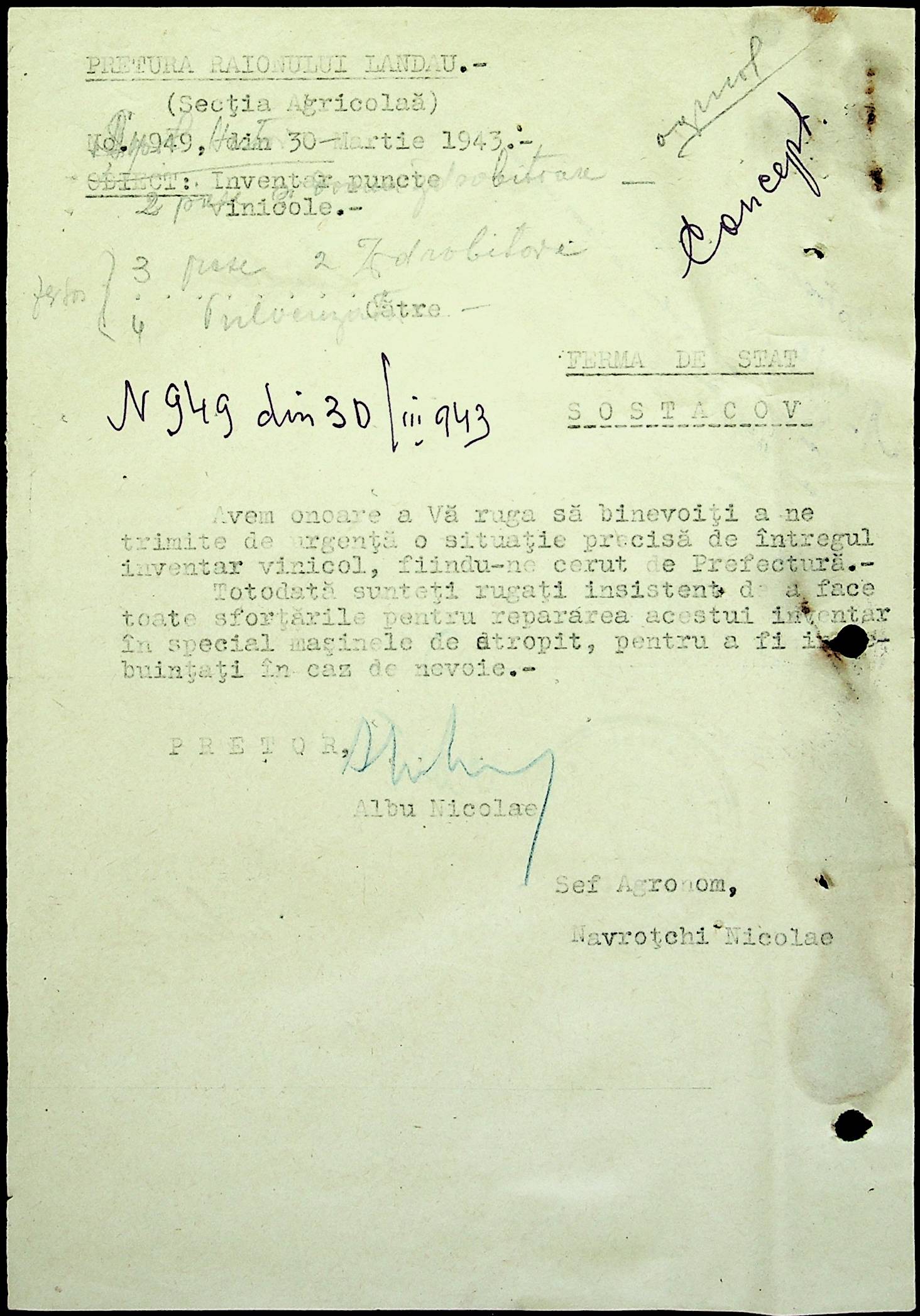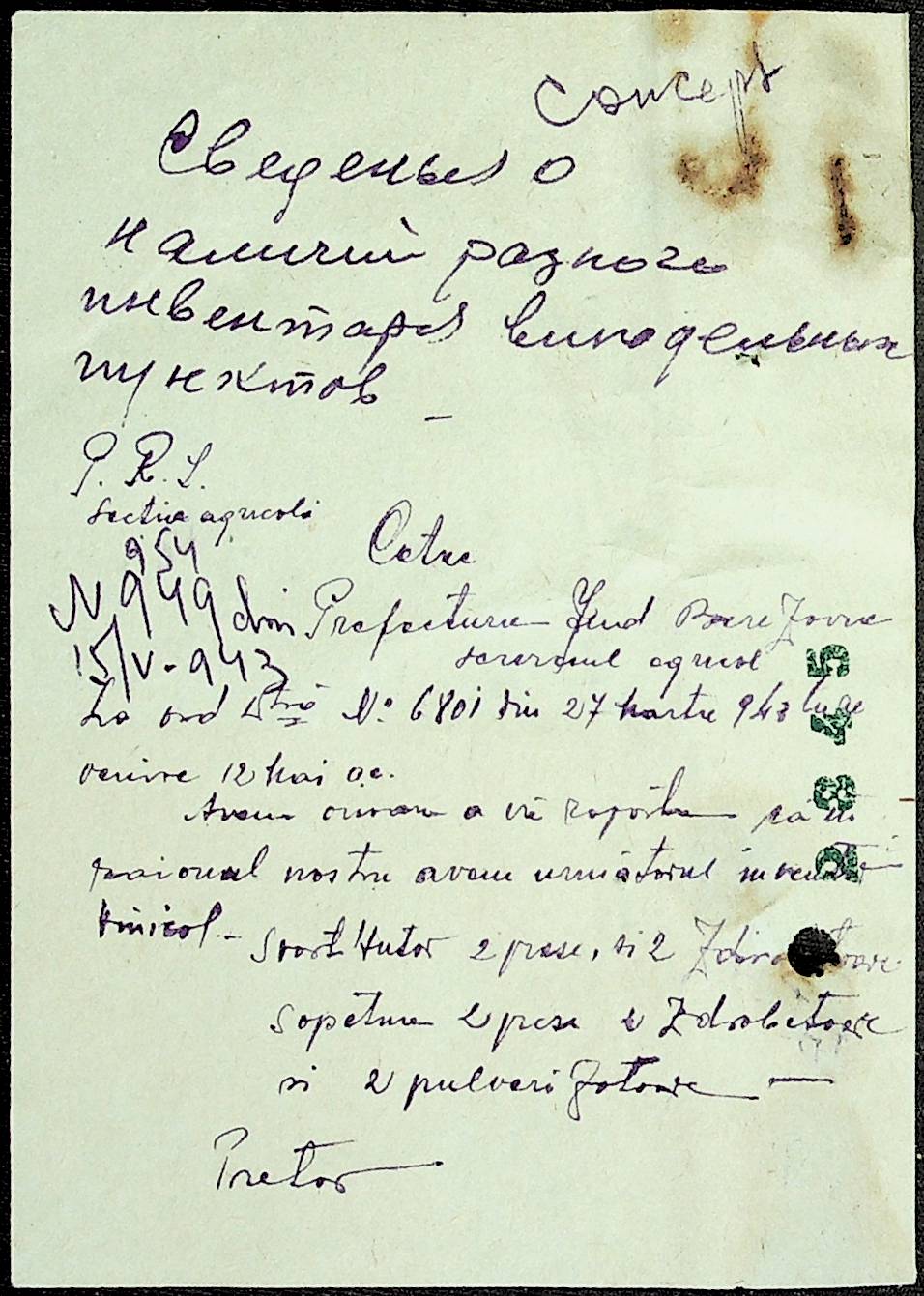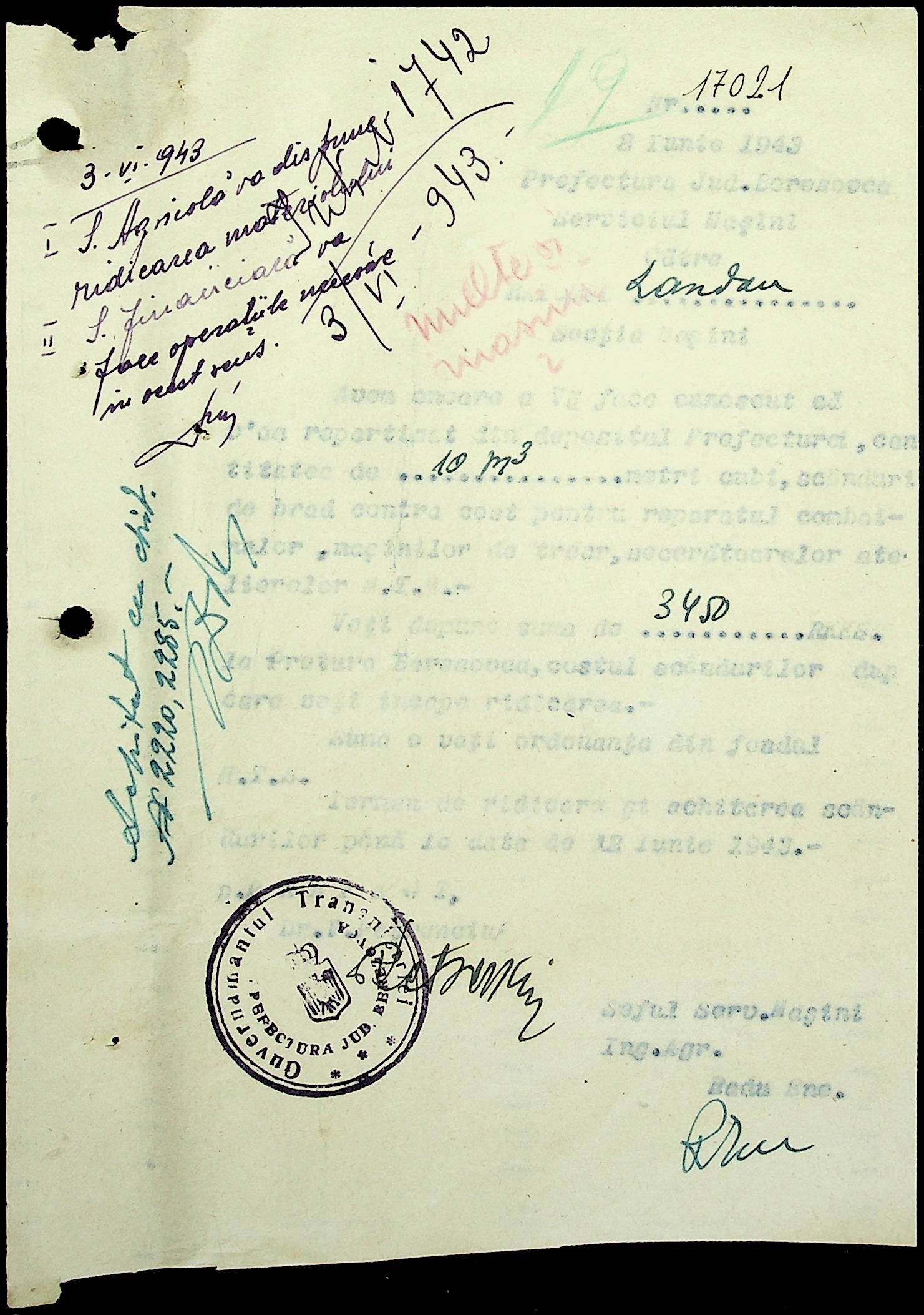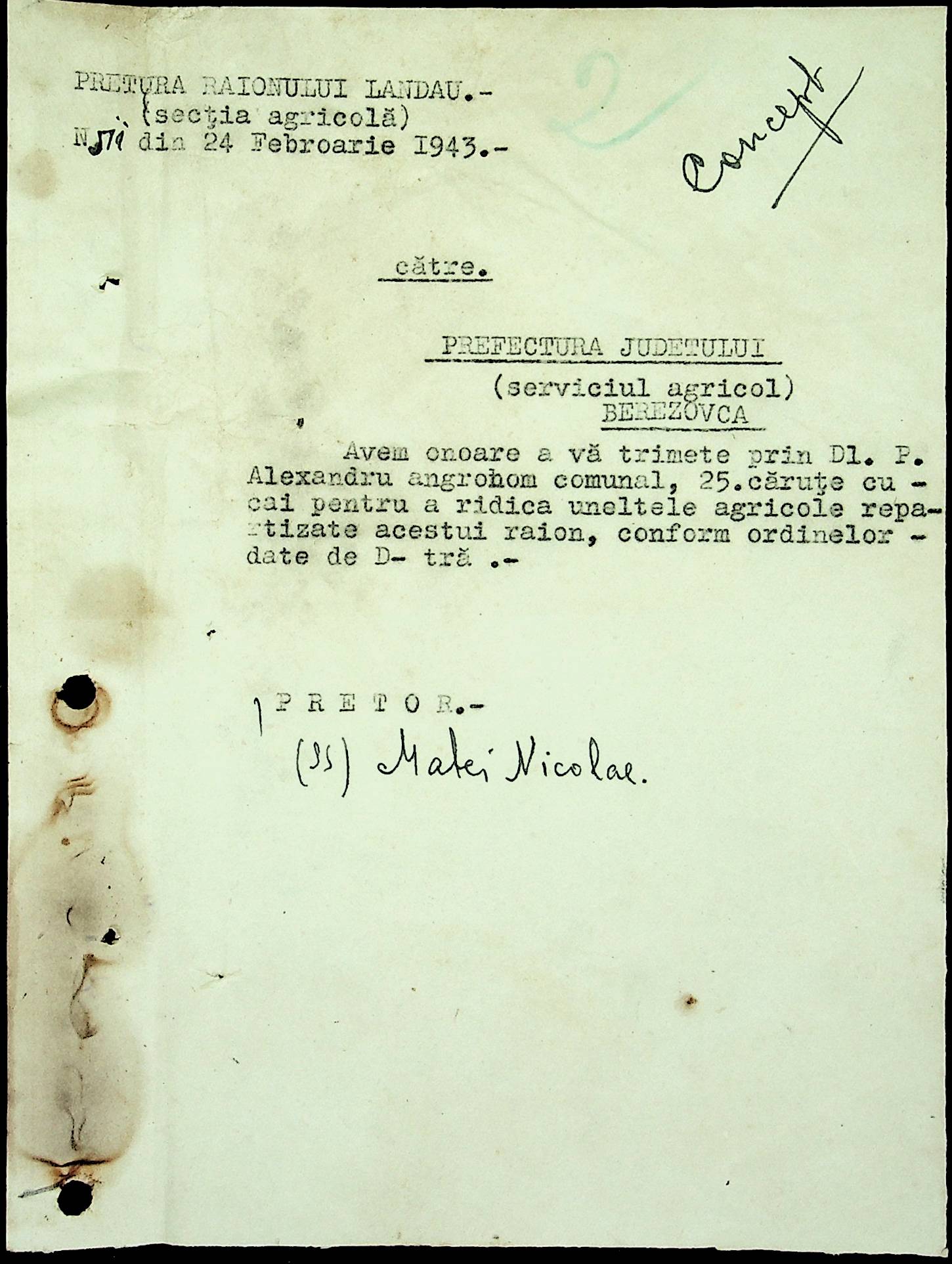 • • • • Справа № 81 Копія постанови цивільного губернатора Трансністрії про перевірку і маркування ваг у Трансністрії; листування з префектурою Березівського повіту про перепис наявного сільськогосподарського реманенту та його мобілізацію румунськими військовими частинами для заготівлі фуражу