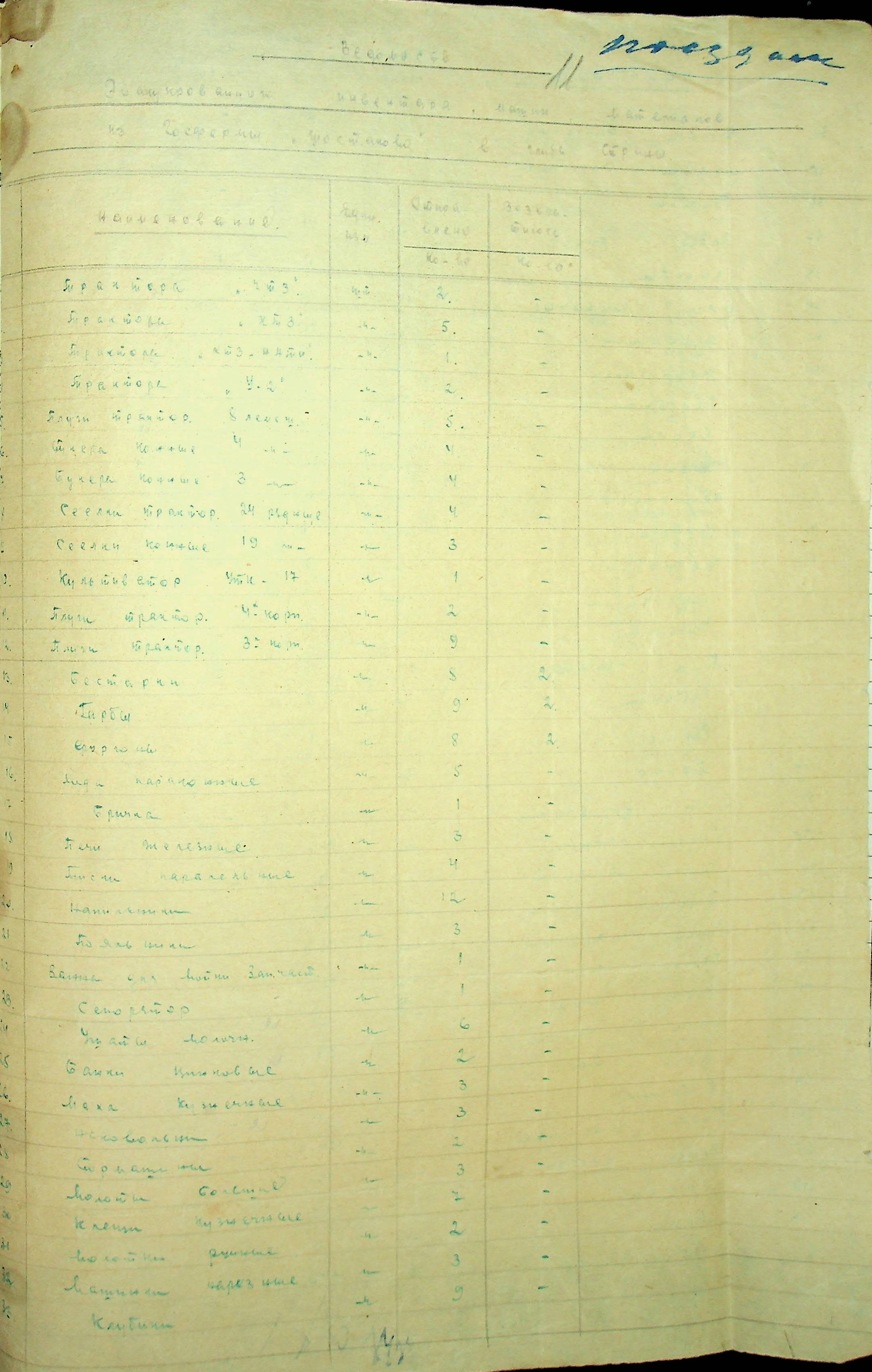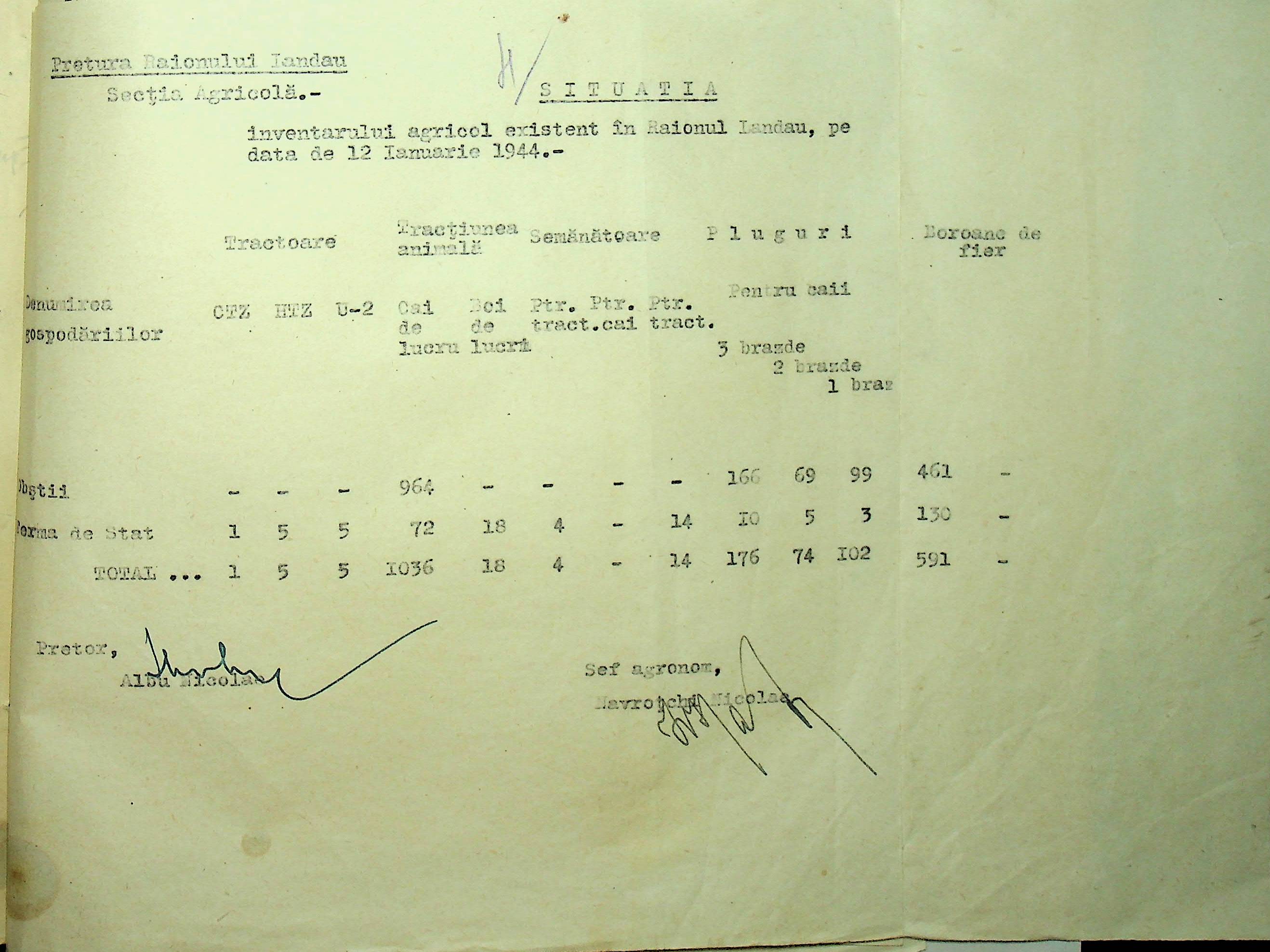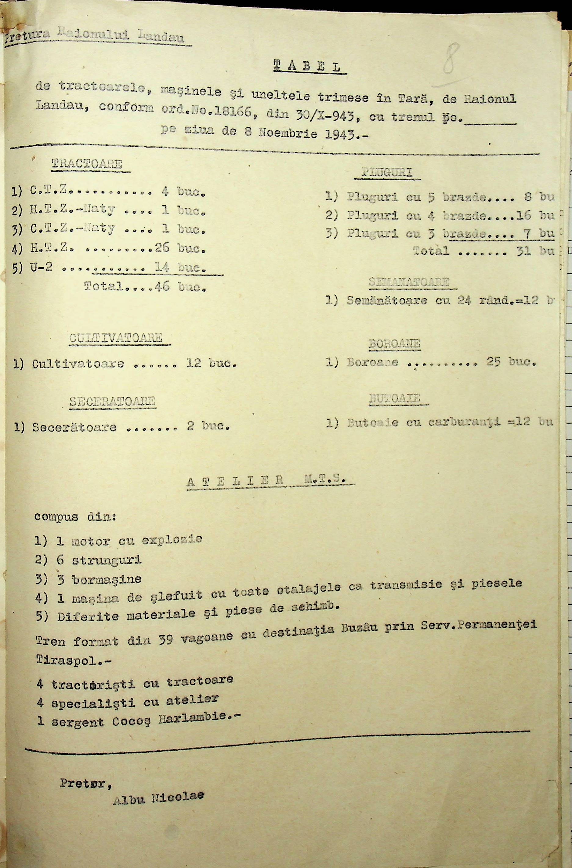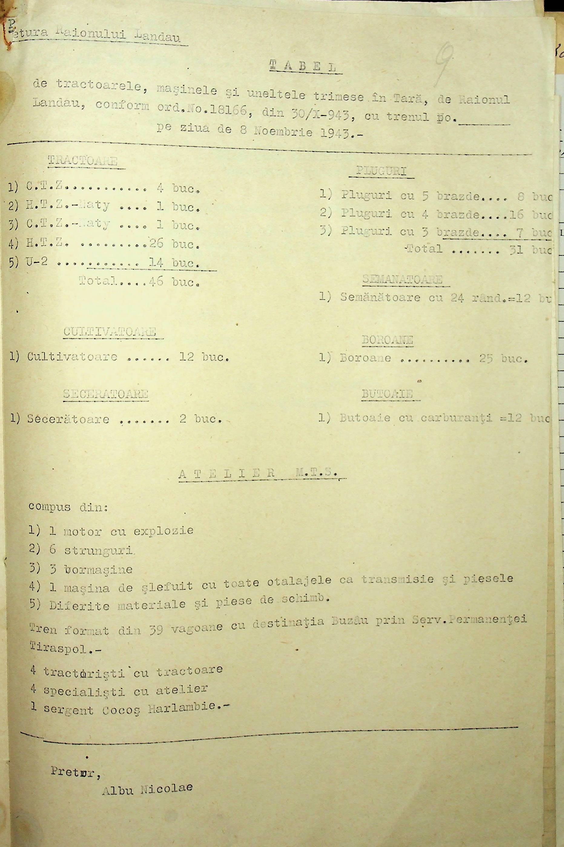 • • • • Справа № 85 Документи (відомості, табелі, листування) про кількість та стан сільськогосподарського реманенту, проект плану весняної посівної кампанії; про відправлені в Румунію трактори, машини і інструменти; про відправлену худобу (корів, телят, свиней, коней)