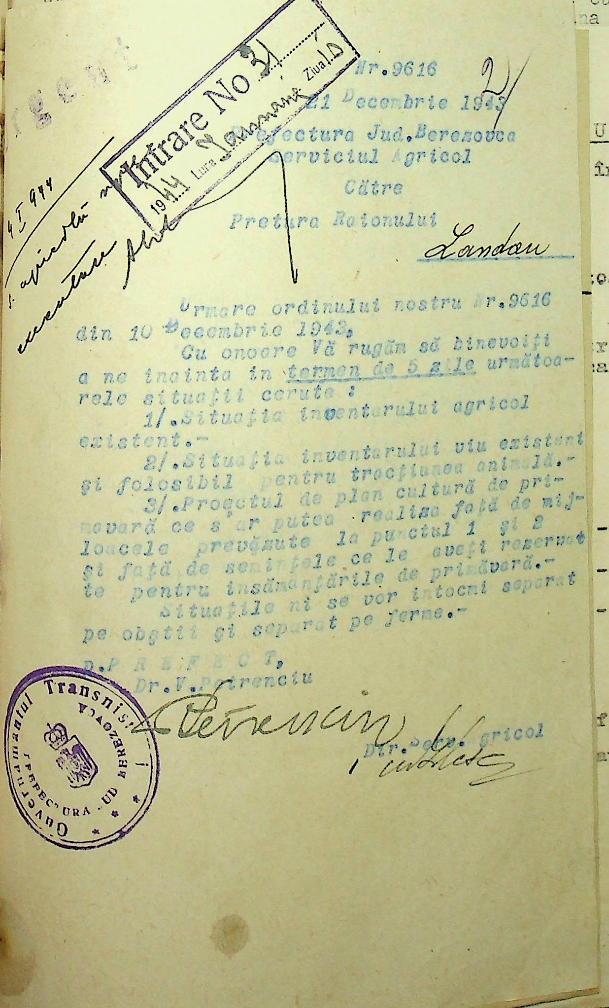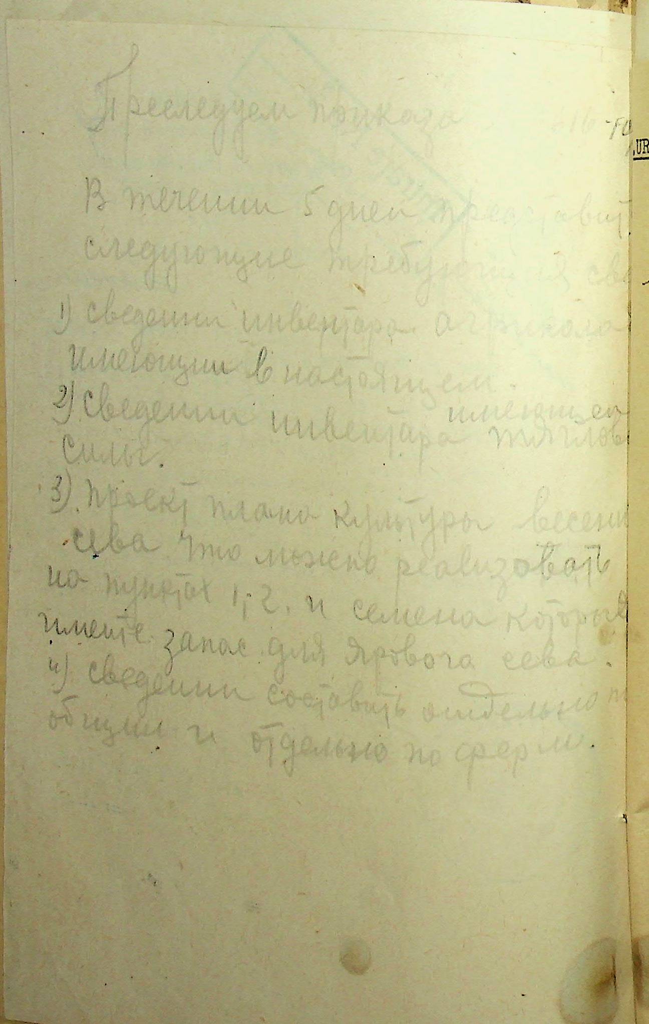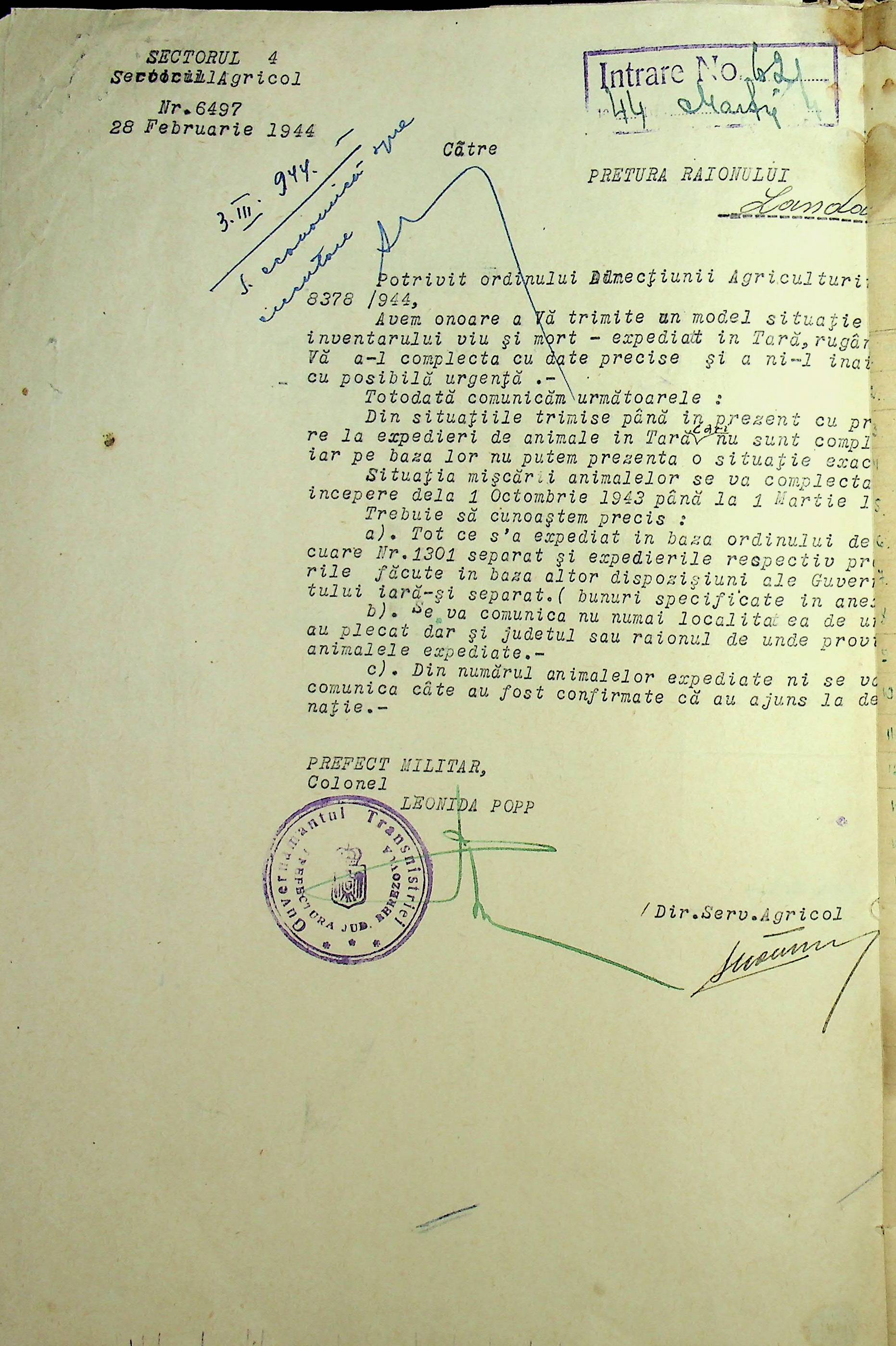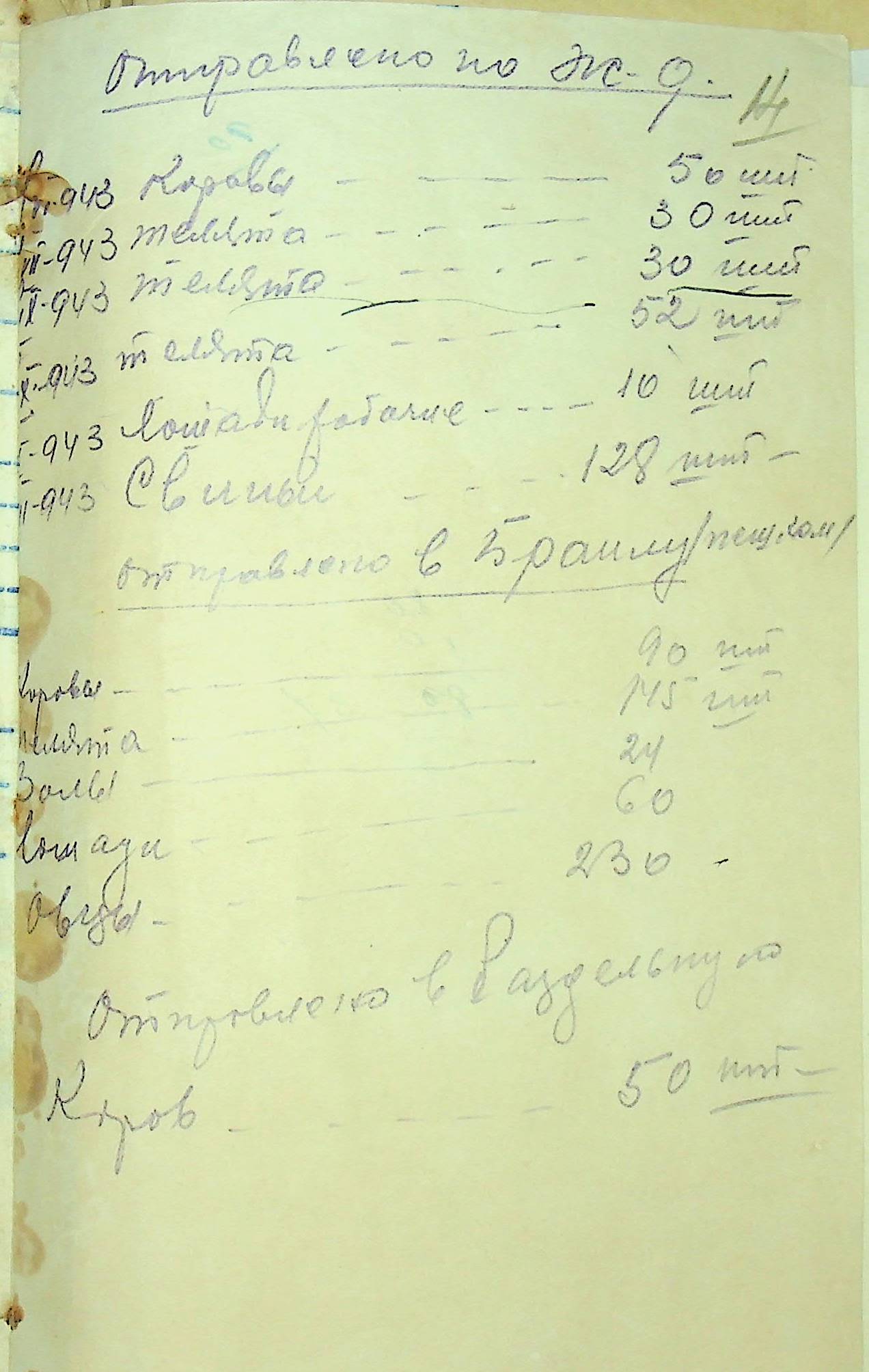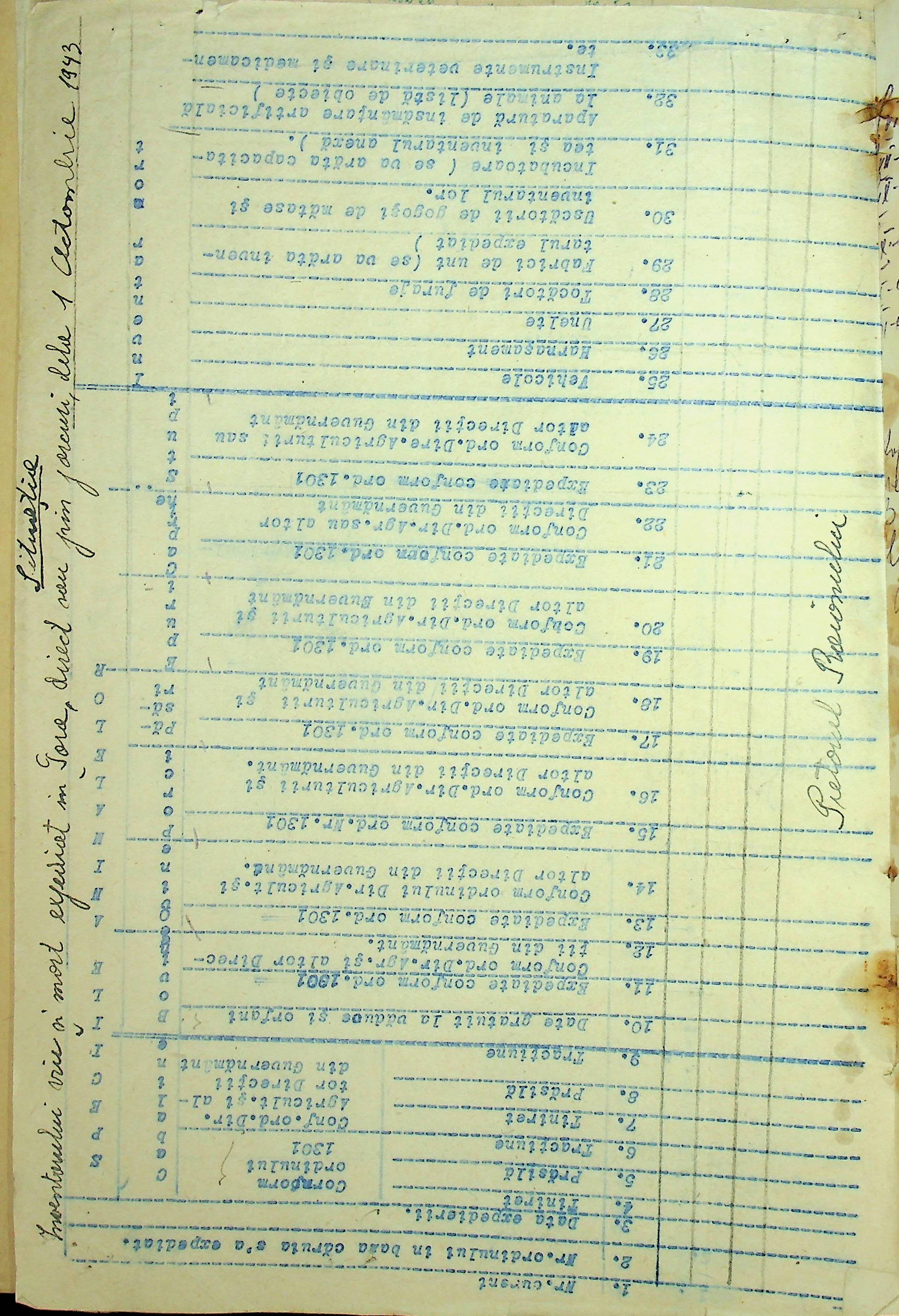 • • • • Справа № 85 Документи (відомості, табелі, листування) про кількість та стан сільськогосподарського реманенту, проект плану весняної посівної кампанії; про відправлені в Румунію трактори, машини і інструменти; про відправлену худобу (корів, телят, свиней, коней)