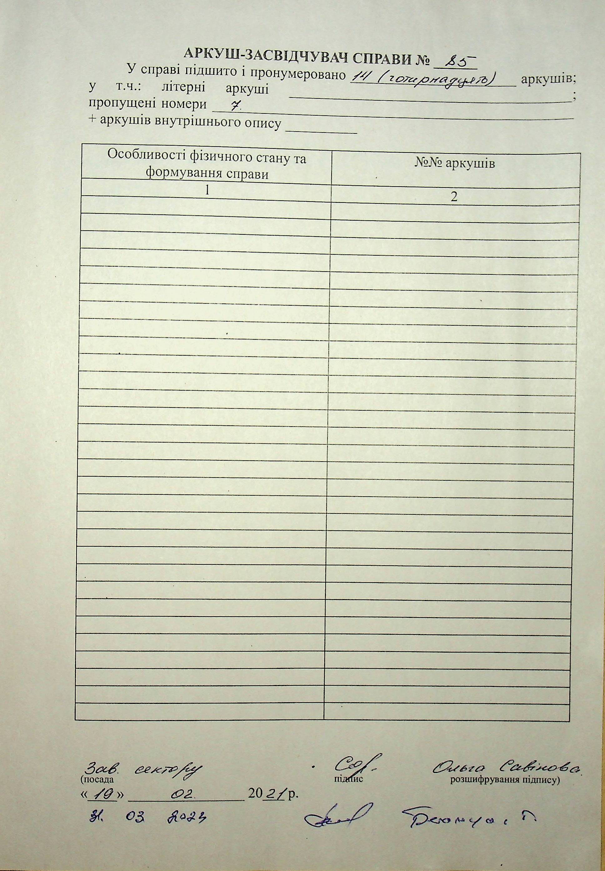 Фонд Н-1594 / Опис 3 / Справа 085