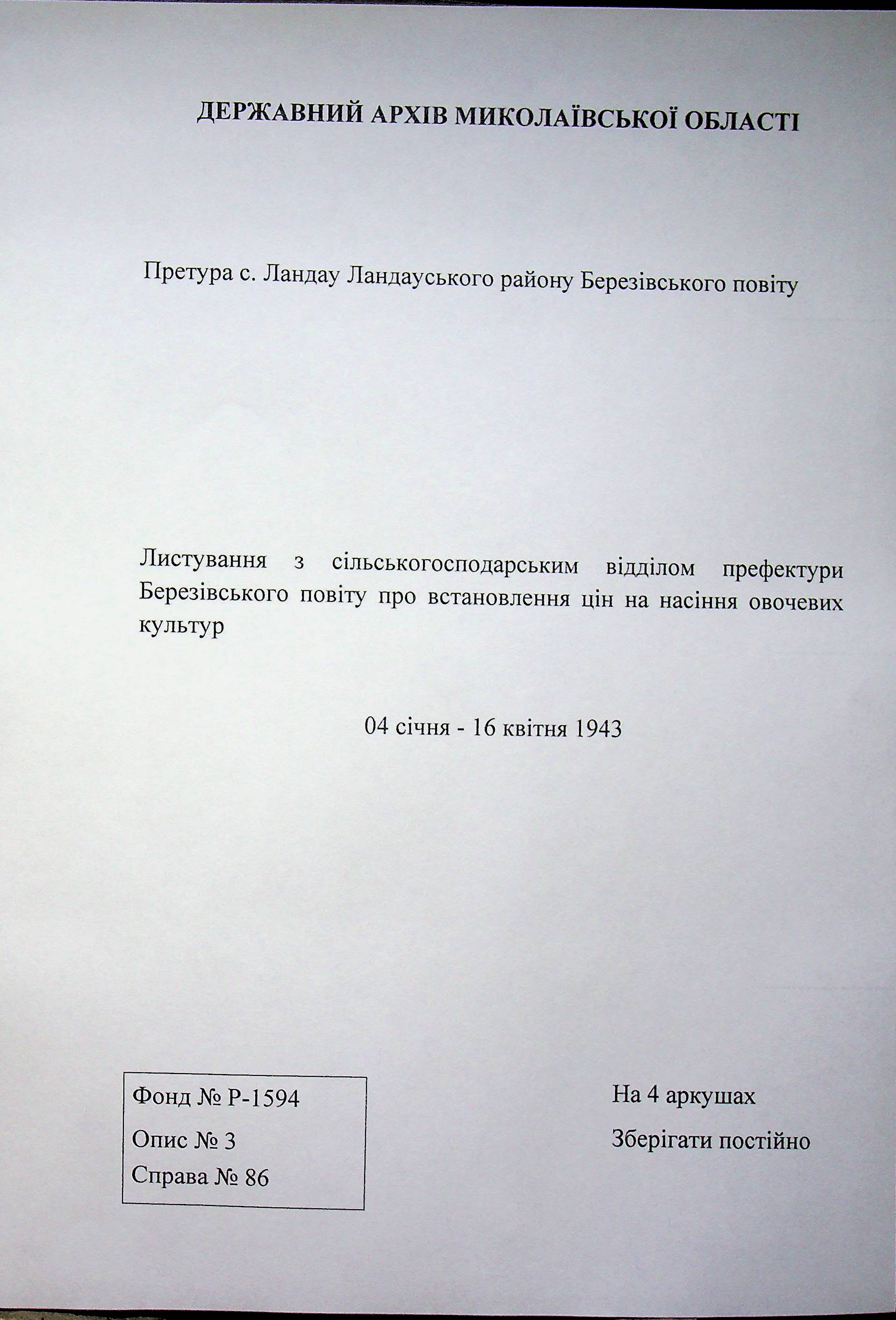 Фонд Н-1594 / Опис 3 / Справа 086