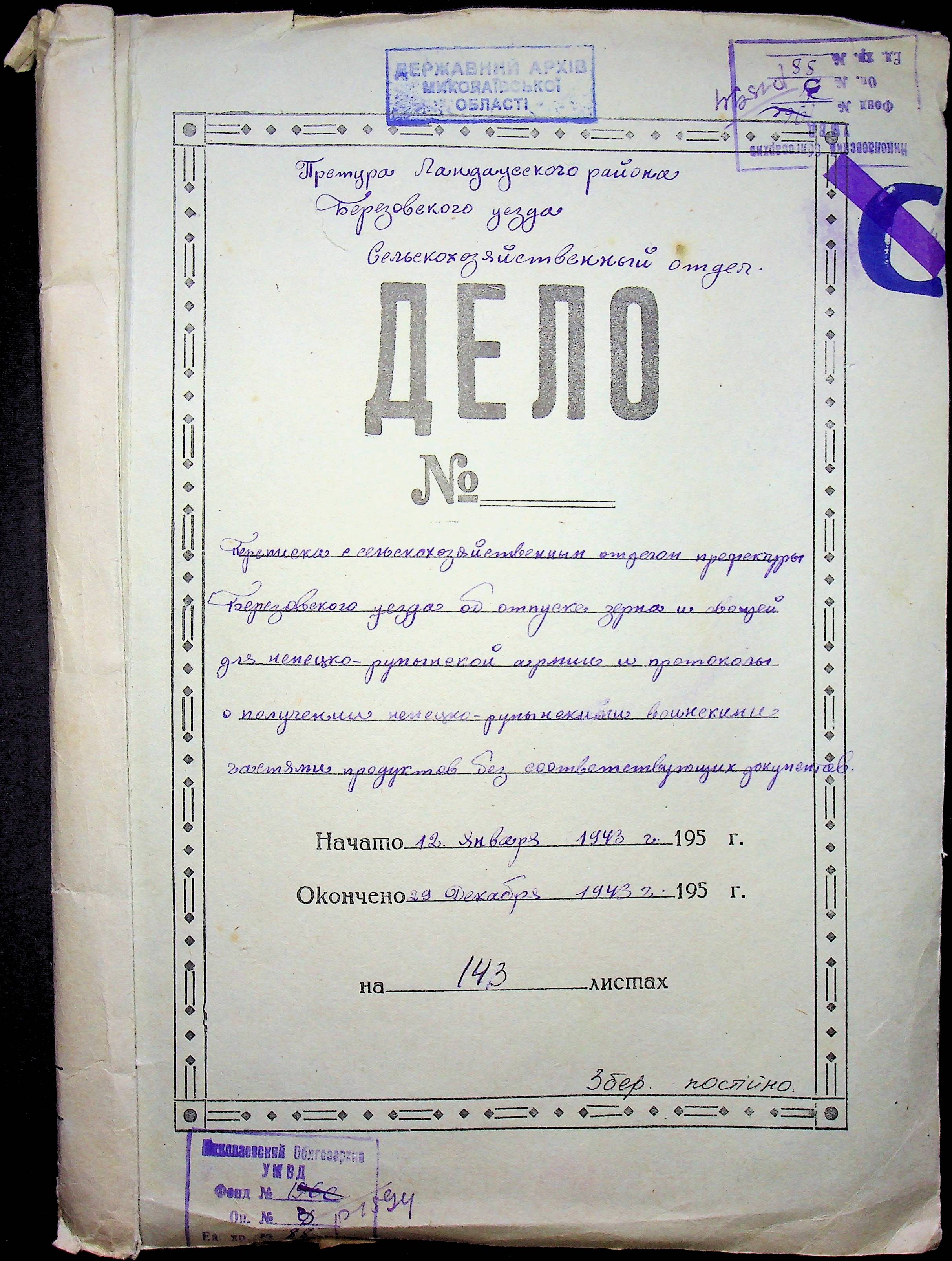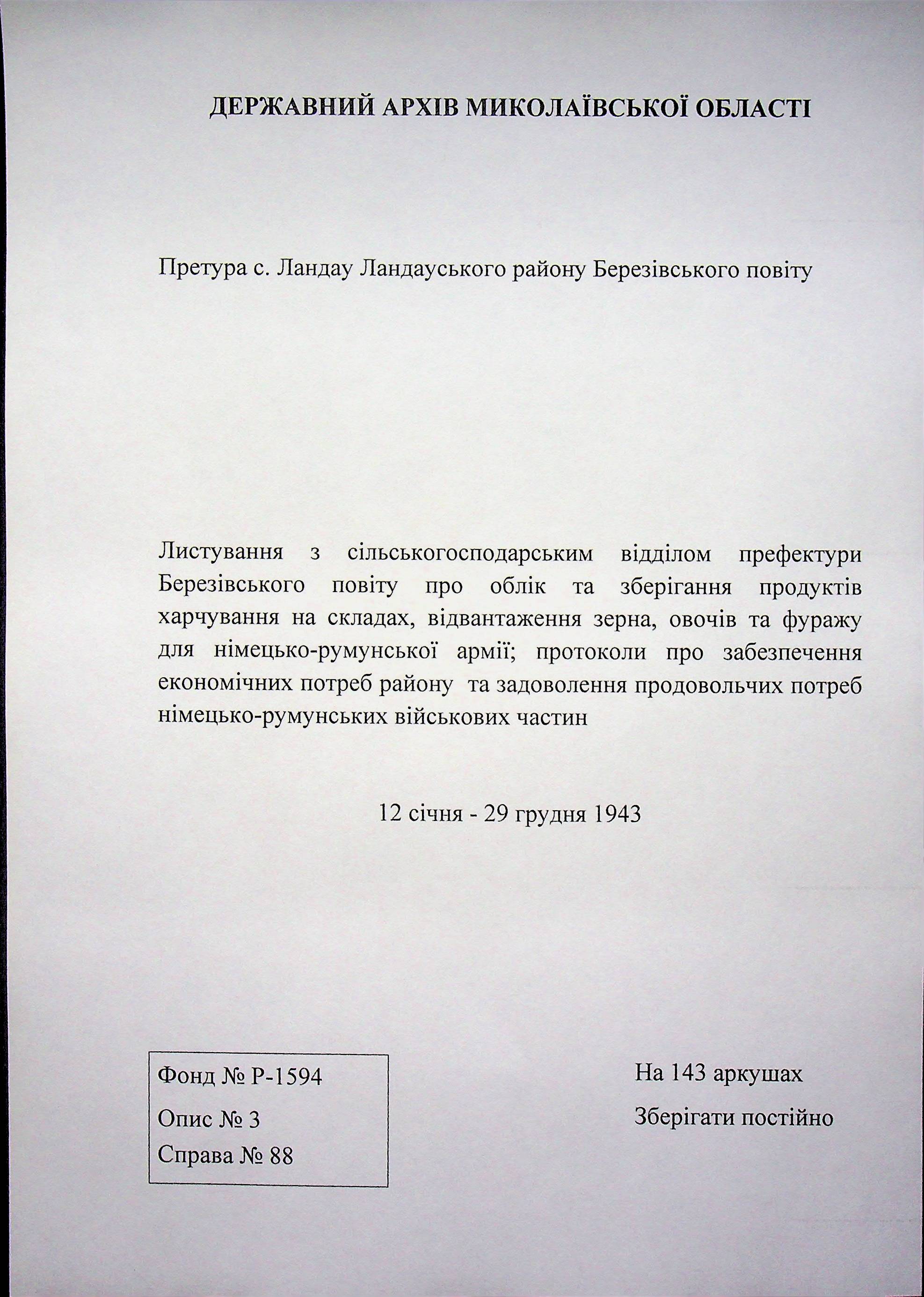 ◦ ◦ Фонд № Н-1594 “Претура Ландауського району”