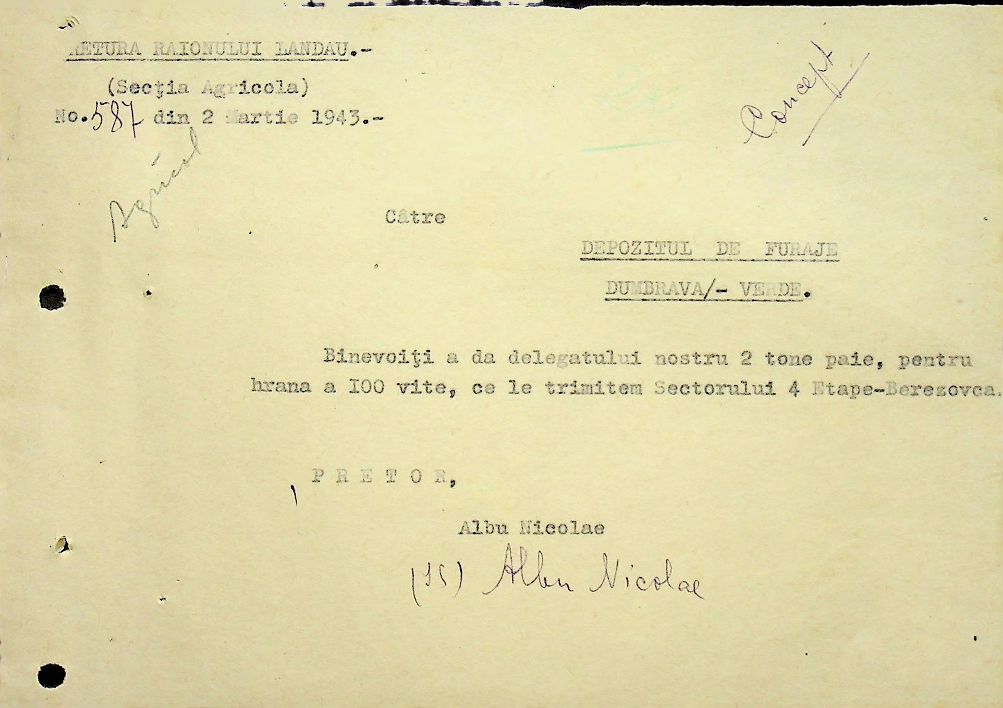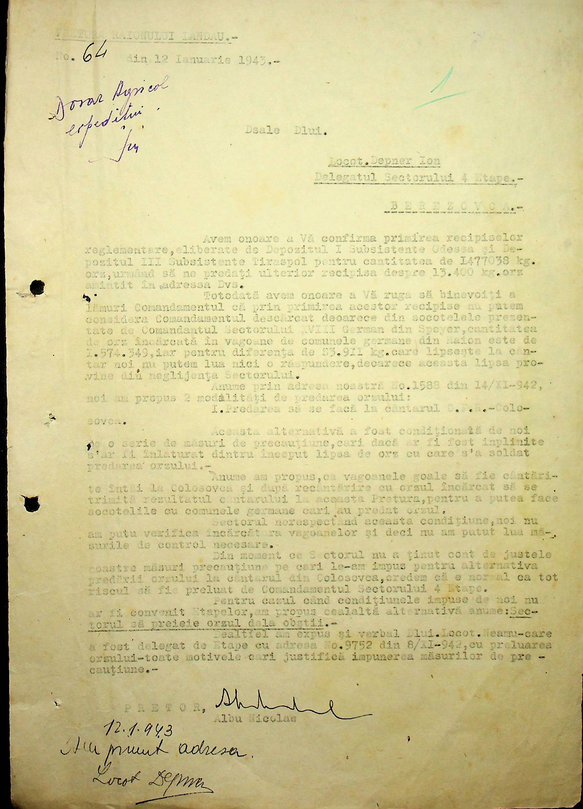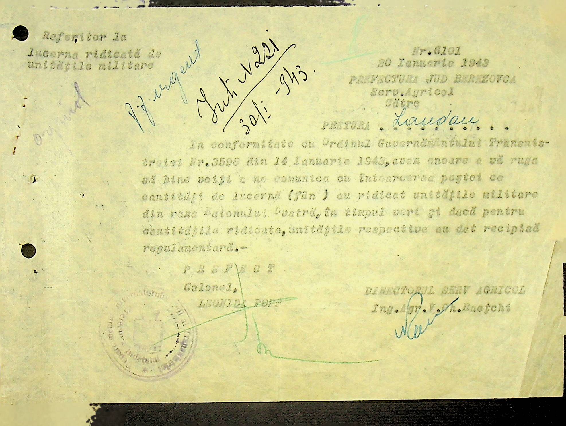 • • • • Справа № 88 Листування з сільськогосподарським відділом префектури Березівського повіту про облік та зберігання продуктів харчування на складах, відвантаження зерна, овочів та фуражу для німецько-румунської армії; протоколи про забезпечення економічних потреб району та задоволення продовольчих потреб німецько-румунських військових частин
