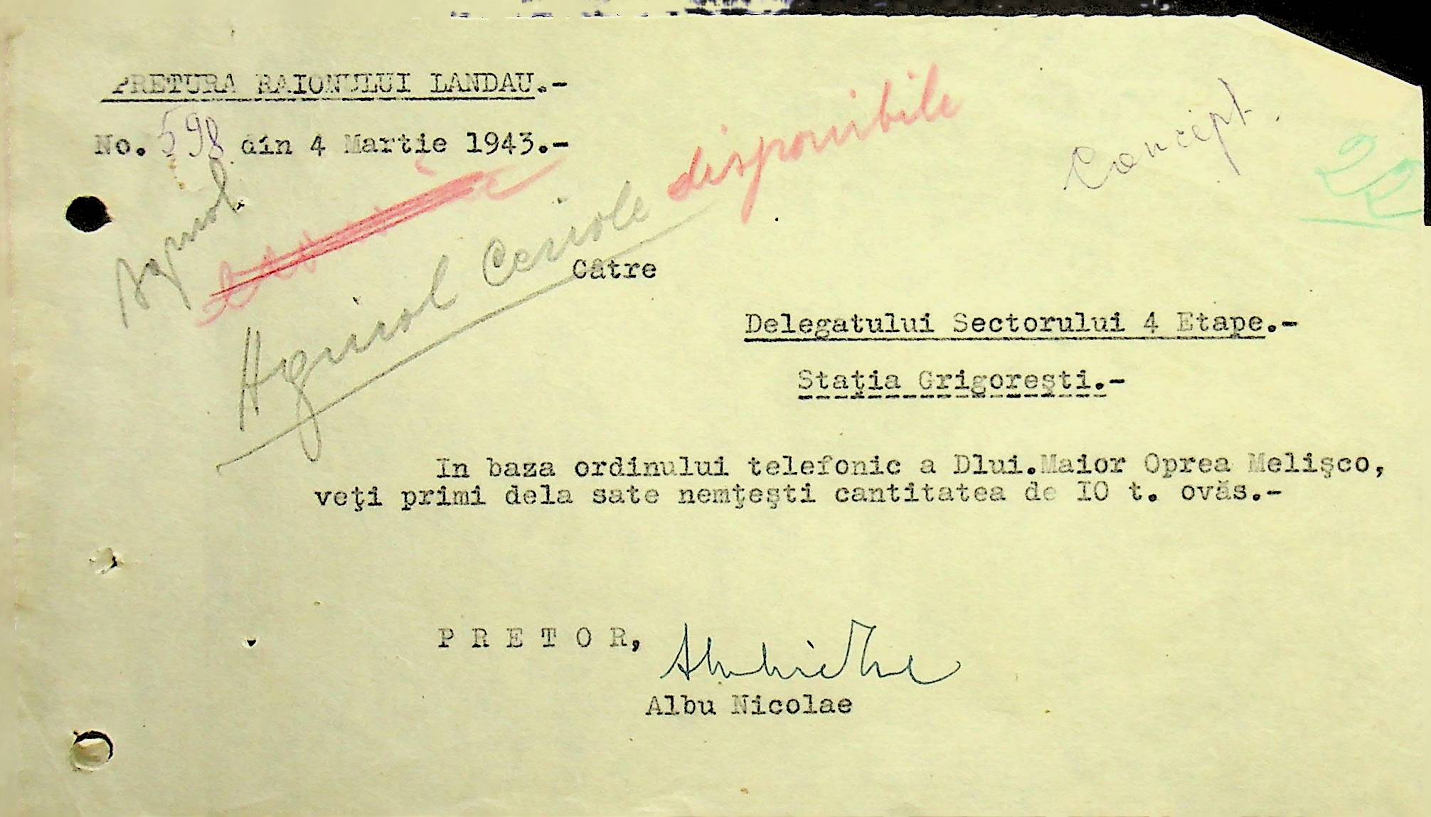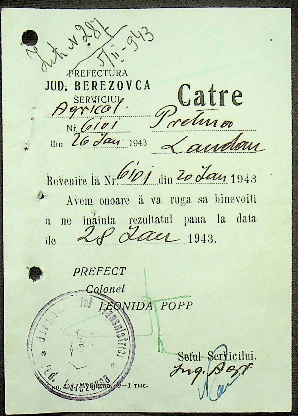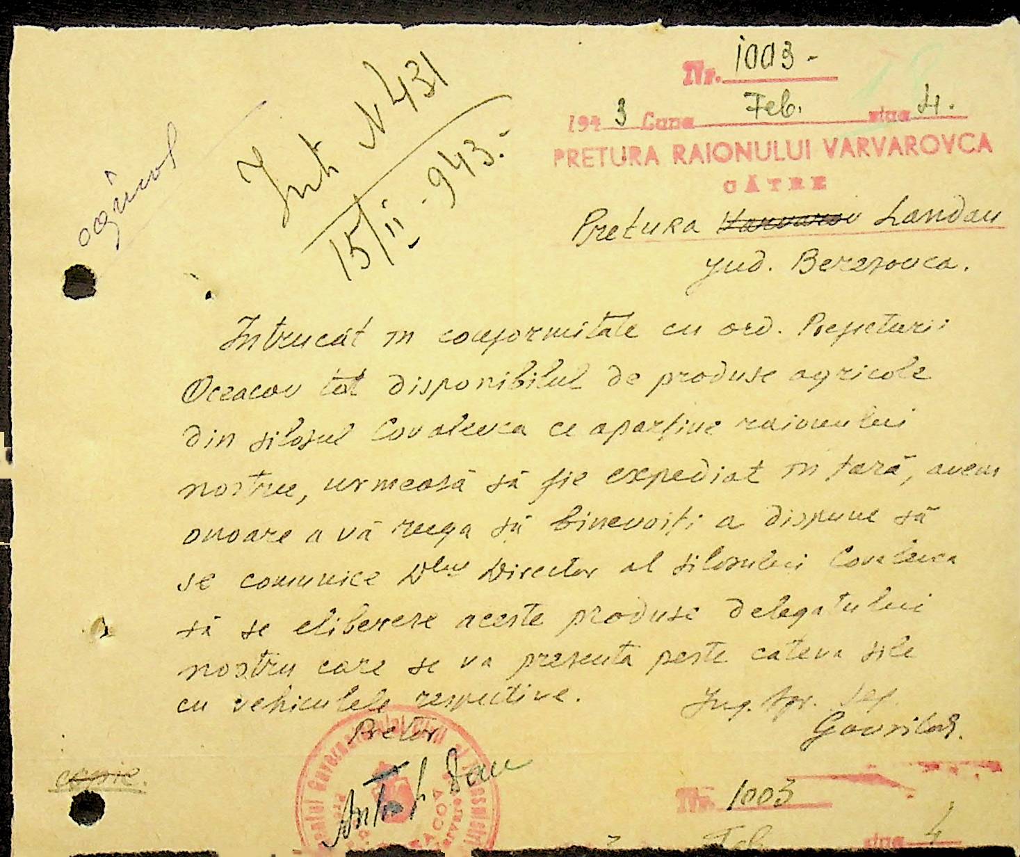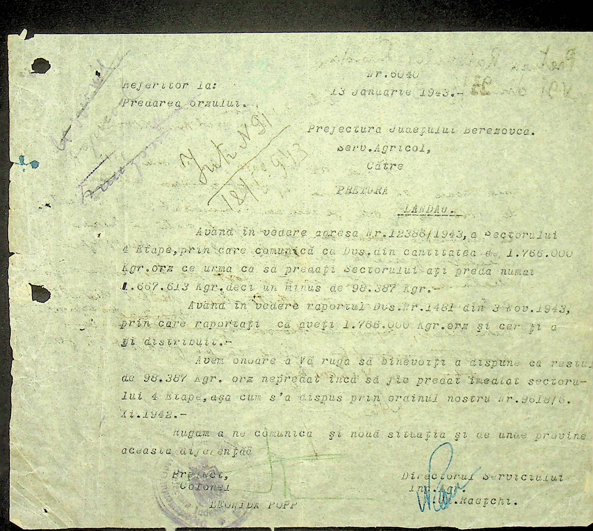 • • • • Справа № 88 Листування з сільськогосподарським відділом префектури Березівського повіту про облік та зберігання продуктів харчування на складах, відвантаження зерна, овочів та фуражу для німецько-румунської армії; протоколи про забезпечення економічних потреб району та задоволення продовольчих потреб німецько-румунських військових частин