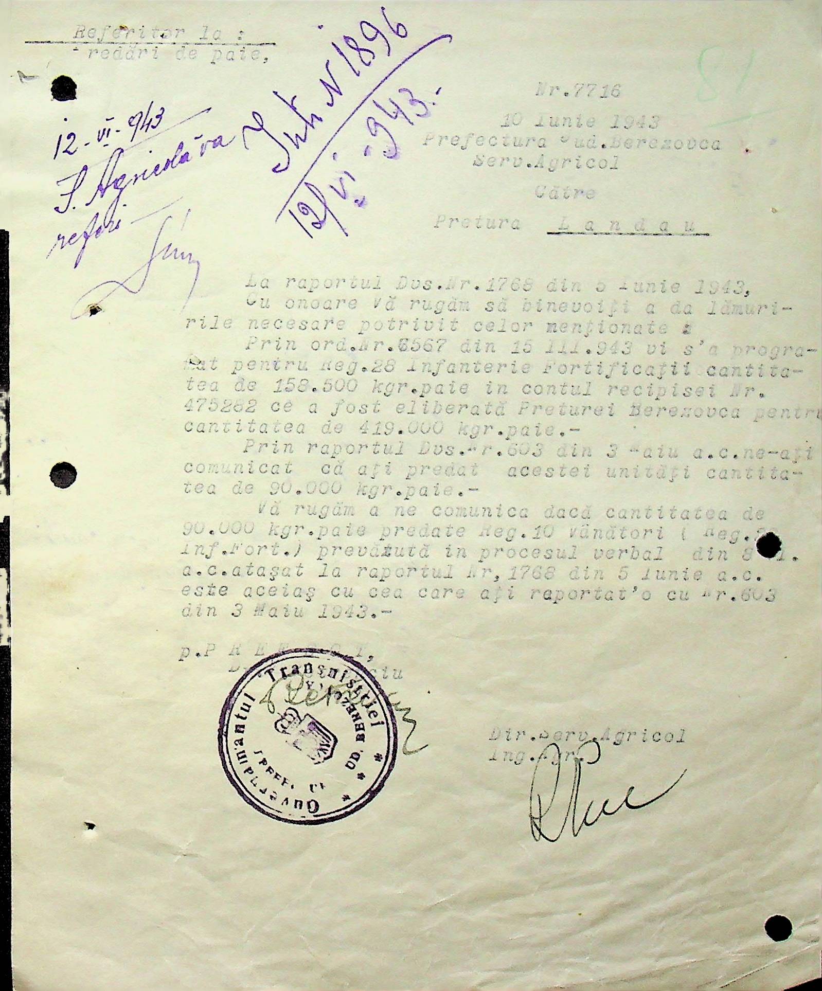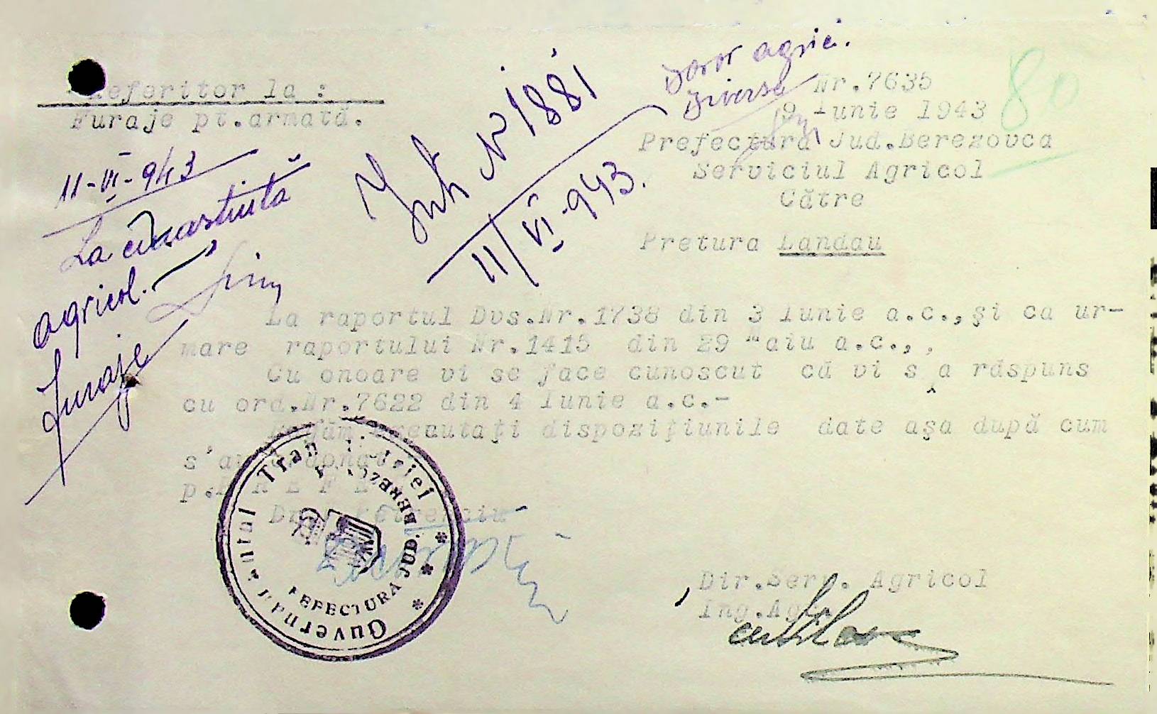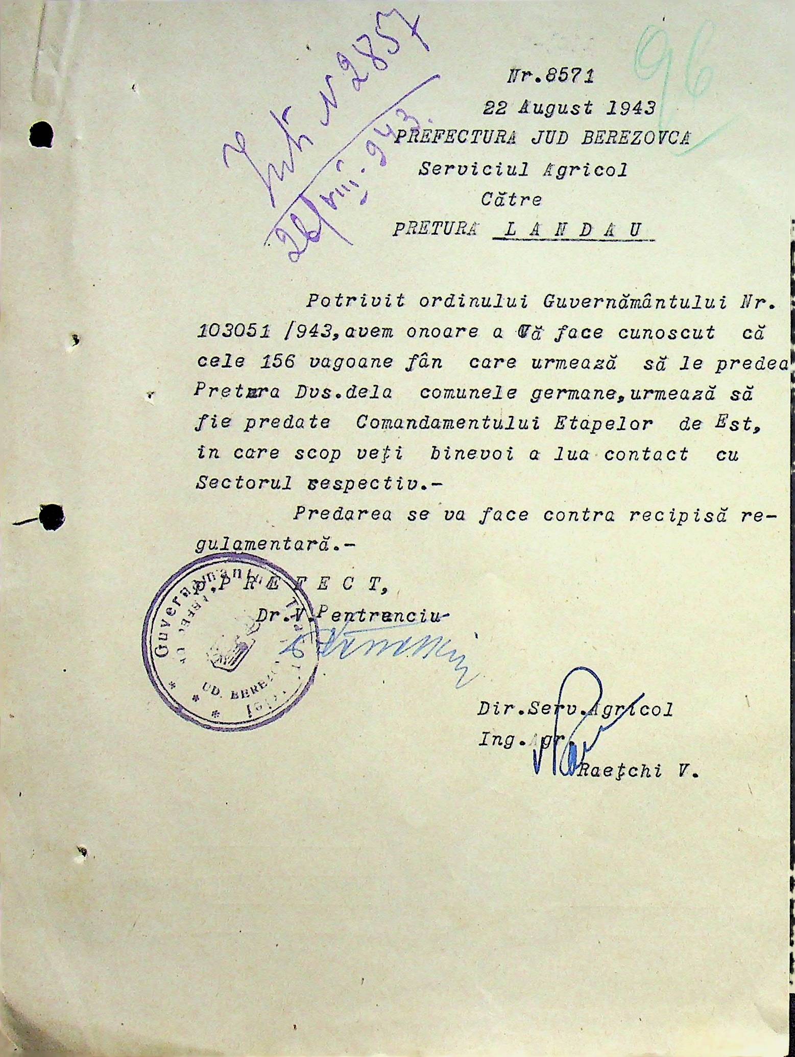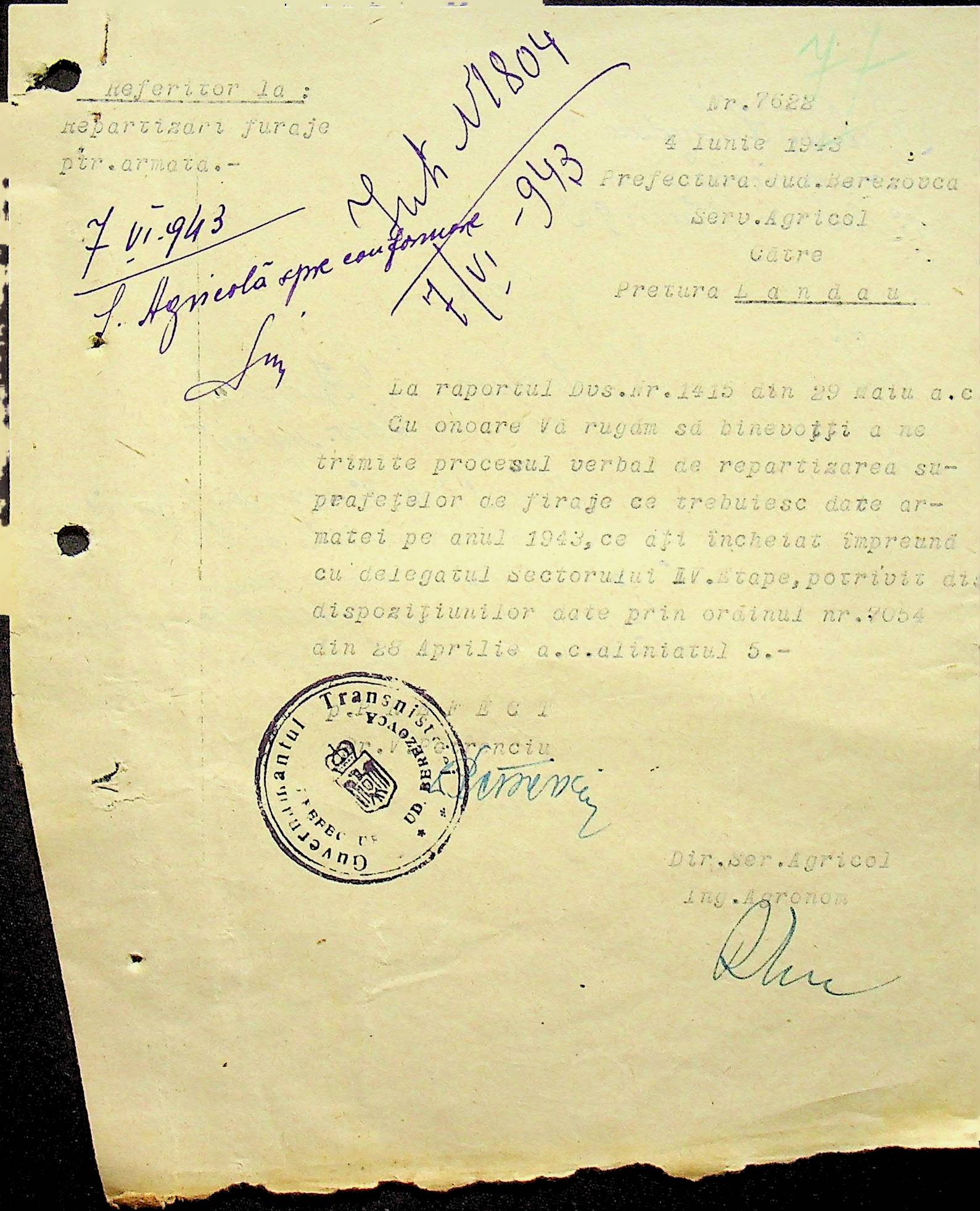 • • • • Справа № 88 Листування з сільськогосподарським відділом префектури Березівського повіту про облік та зберігання продуктів харчування на складах, відвантаження зерна, овочів та фуражу для німецько-румунської армії; протоколи про забезпечення економічних потреб району та задоволення продовольчих потреб німецько-румунських військових частин