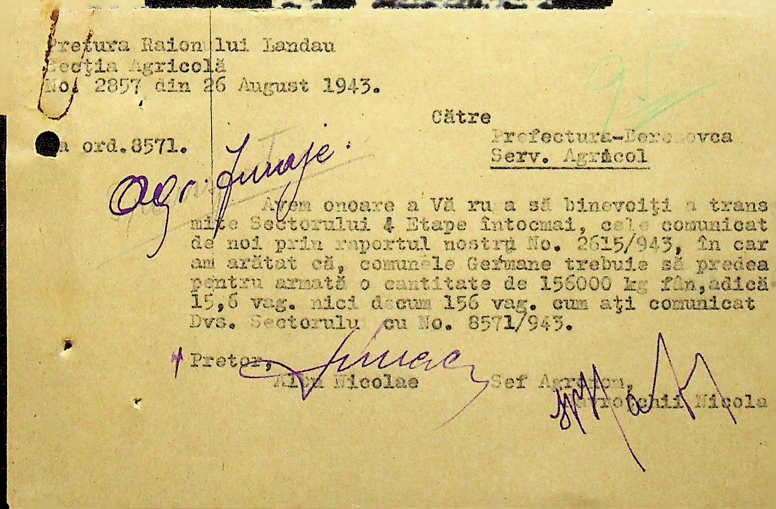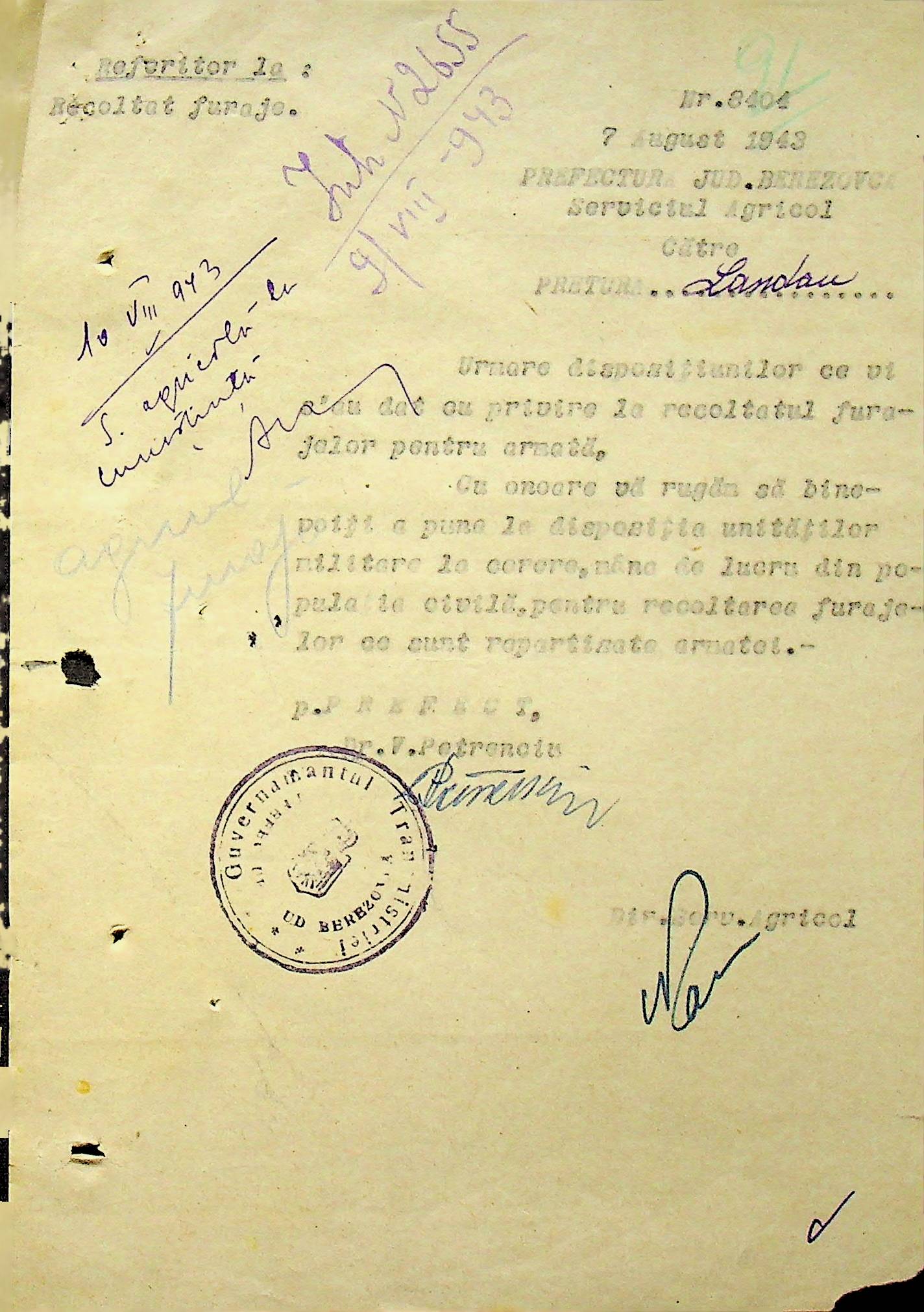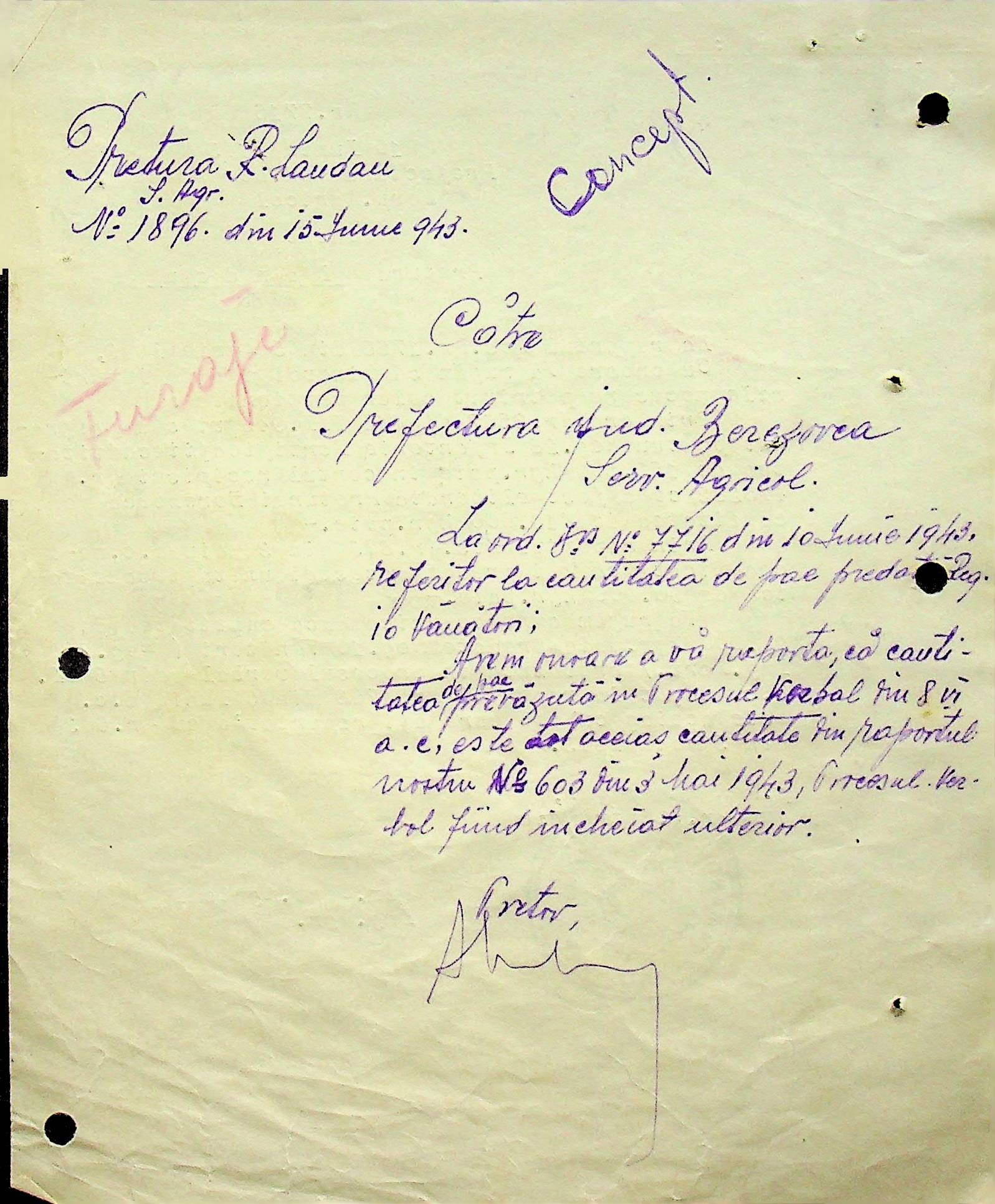 • • • • Справа № 88 Листування з сільськогосподарським відділом префектури Березівського повіту про облік та зберігання продуктів харчування на складах, відвантаження зерна, овочів та фуражу для німецько-румунської армії; протоколи про забезпечення економічних потреб району та задоволення продовольчих потреб німецько-румунських військових частин